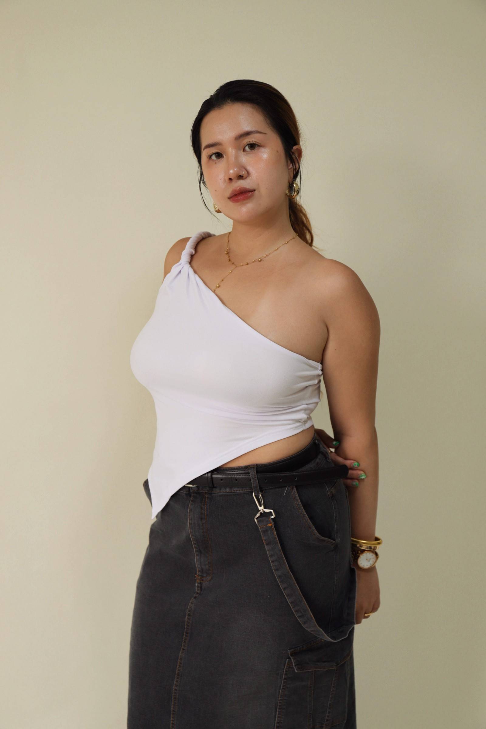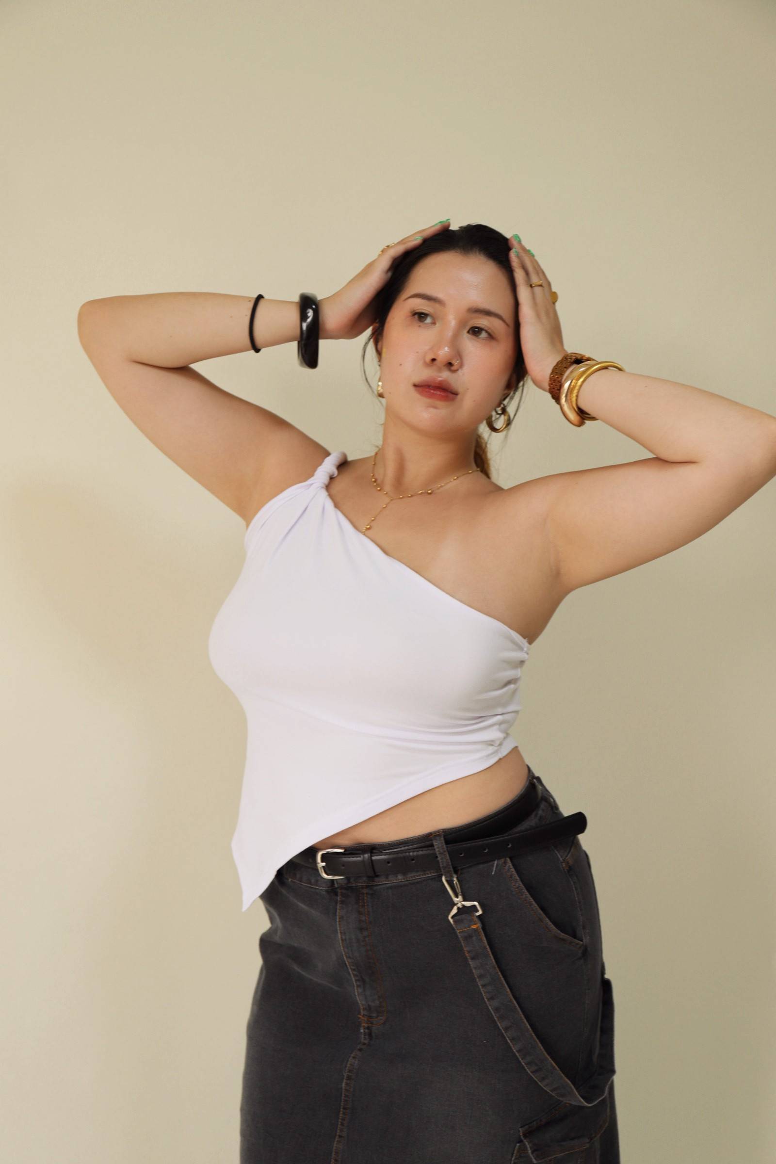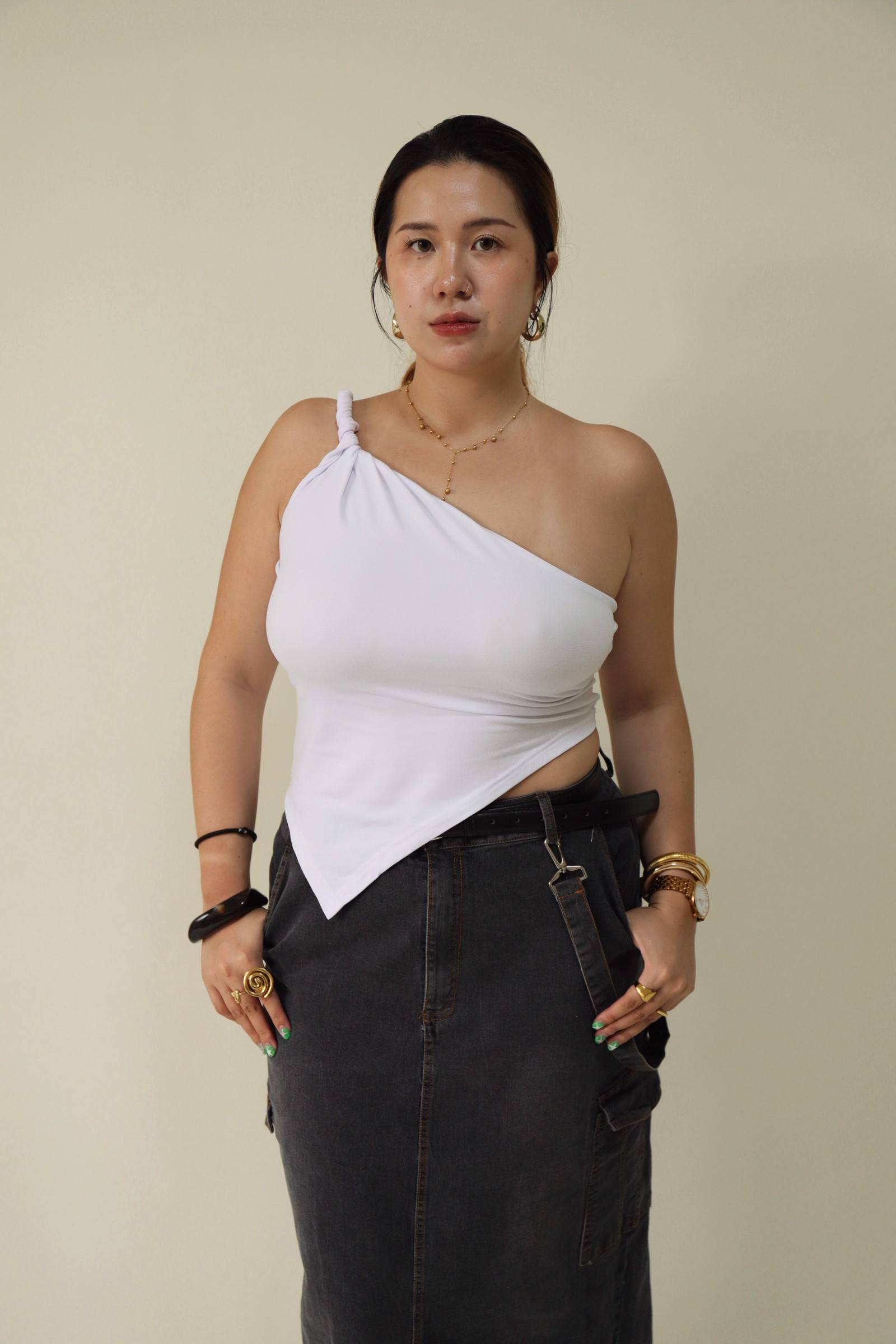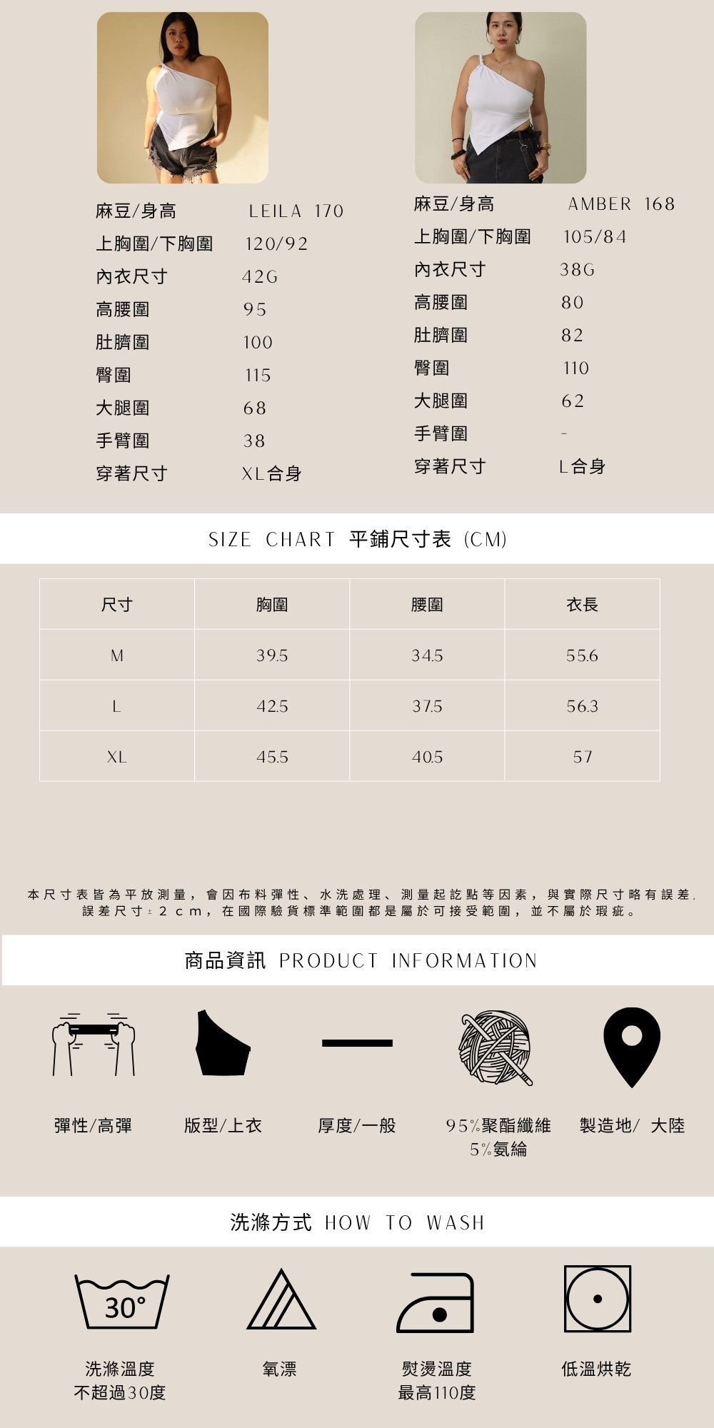 單肩不規則收腰上衣,LEILASHAW 你的美不該被數字綁架
