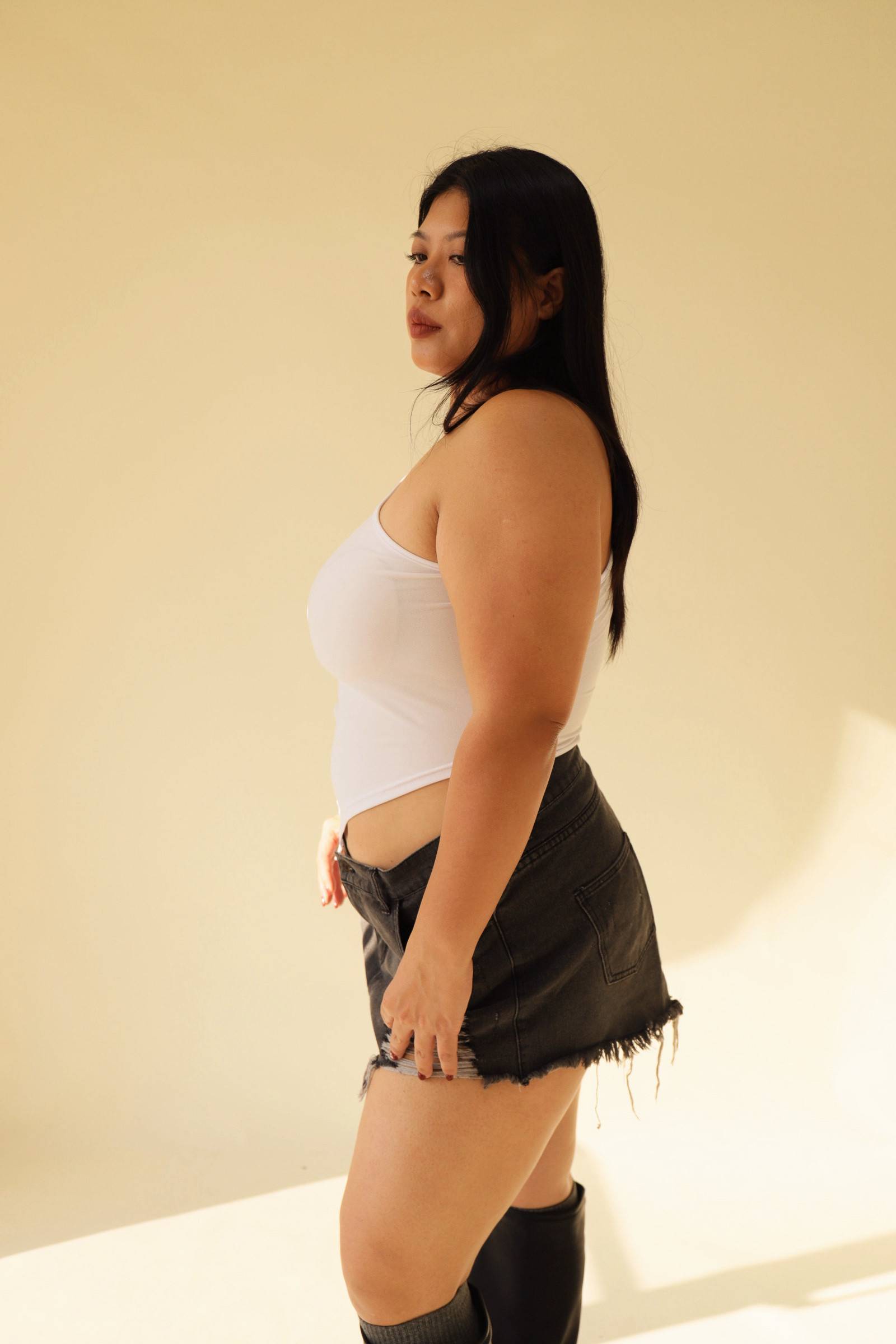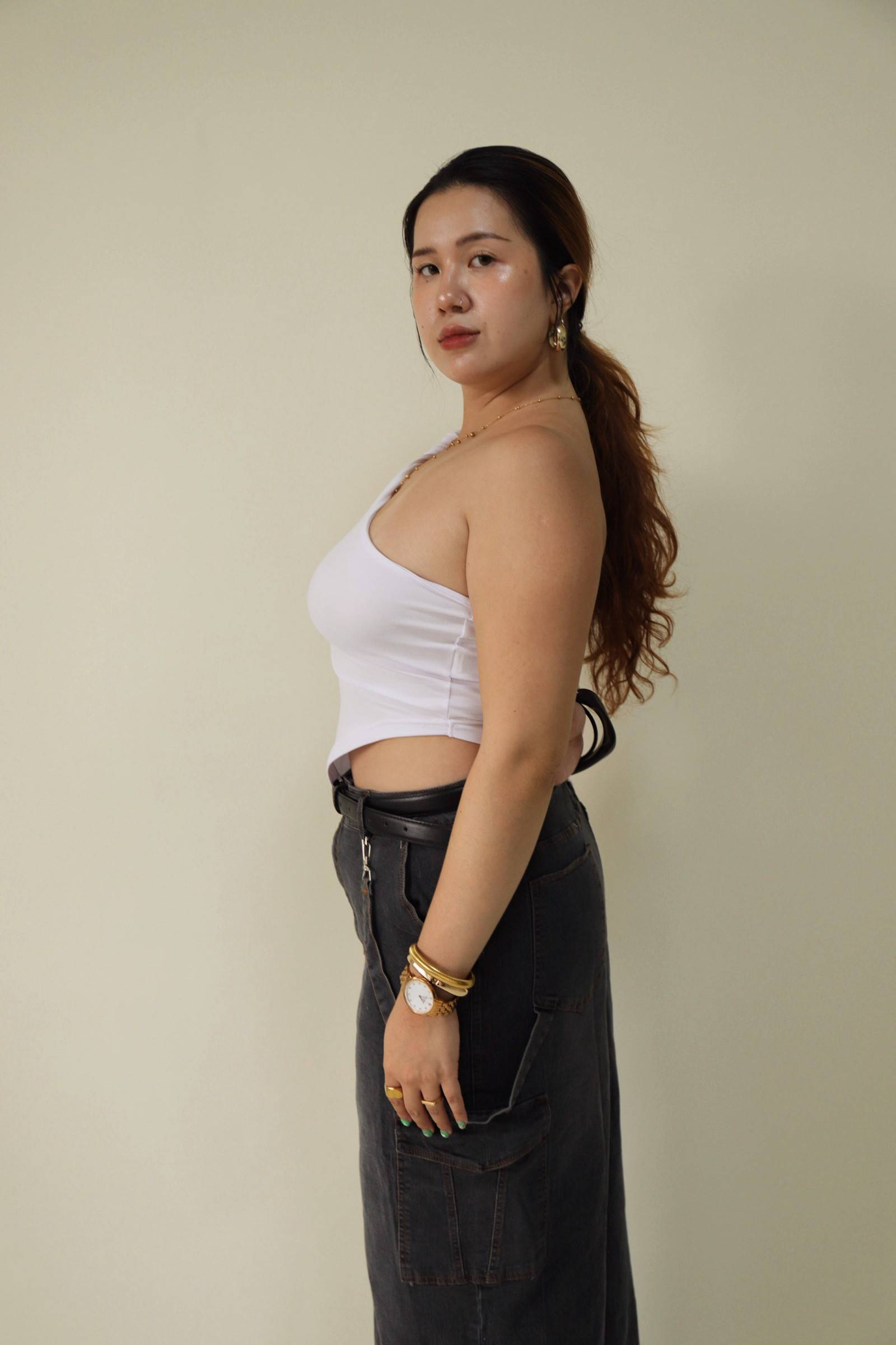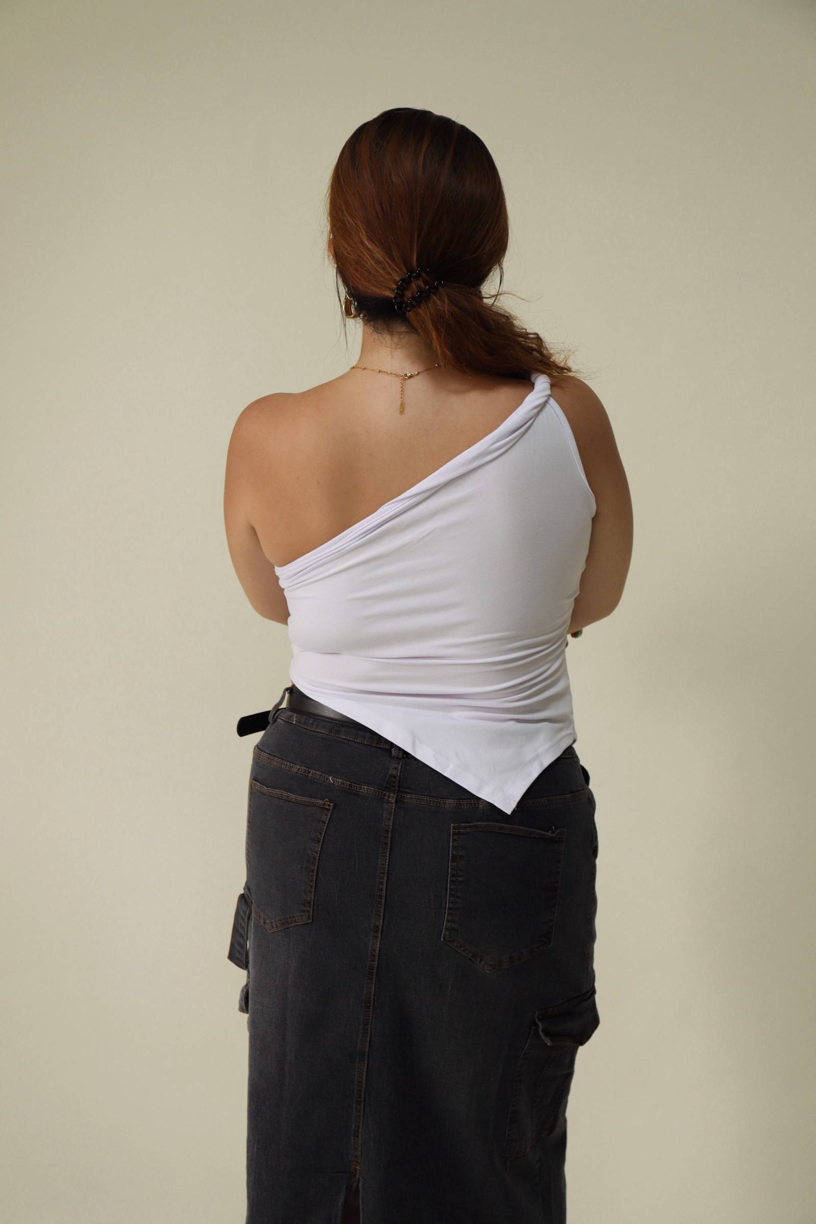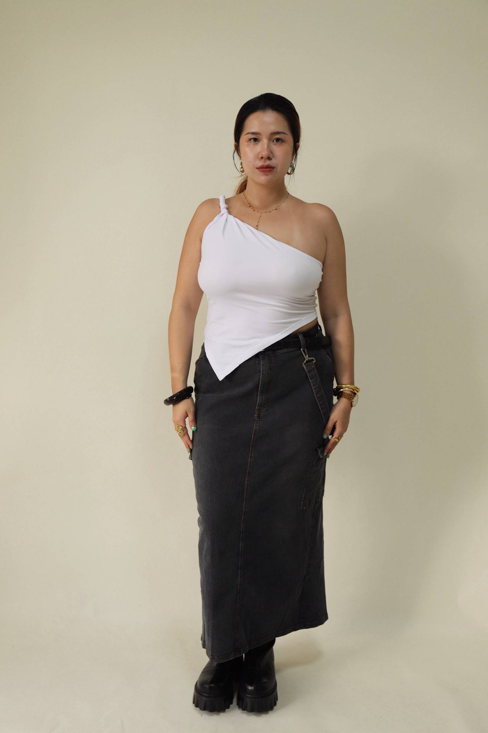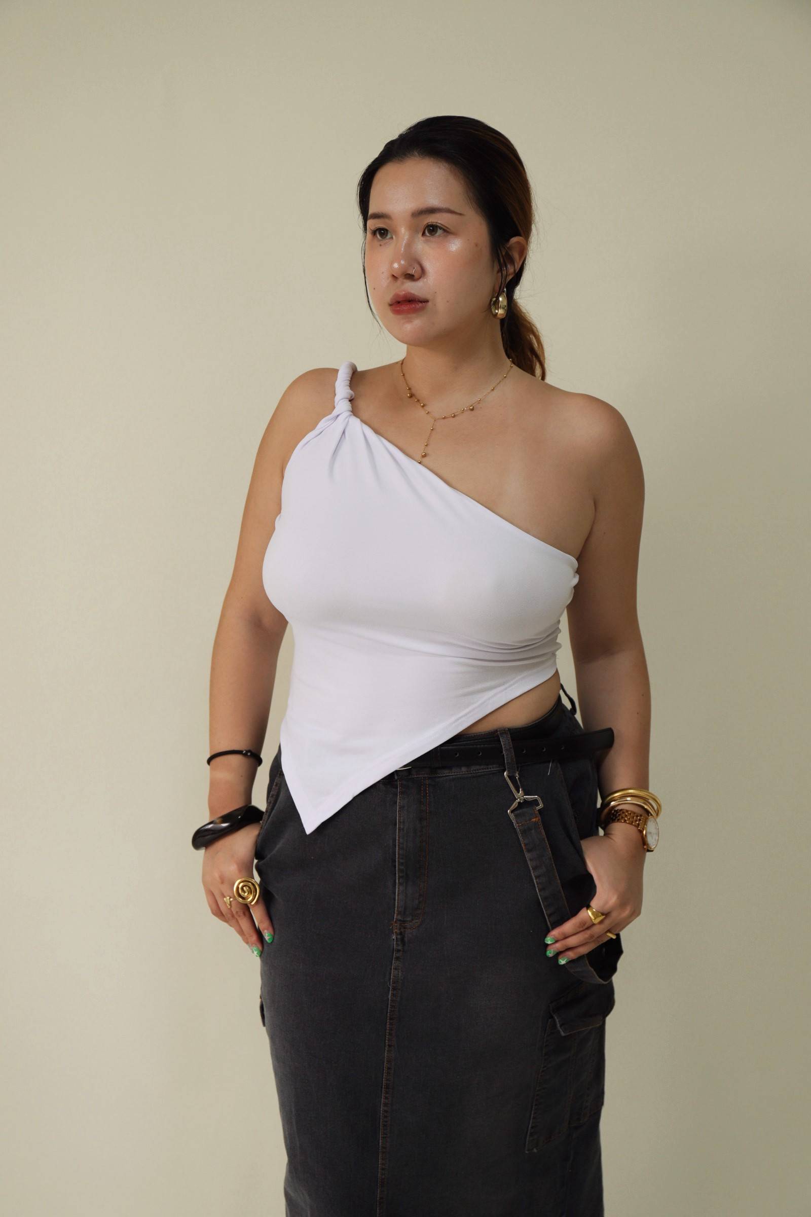單肩不規則收腰上衣,LEILASHAW 你的美不該被數字綁架