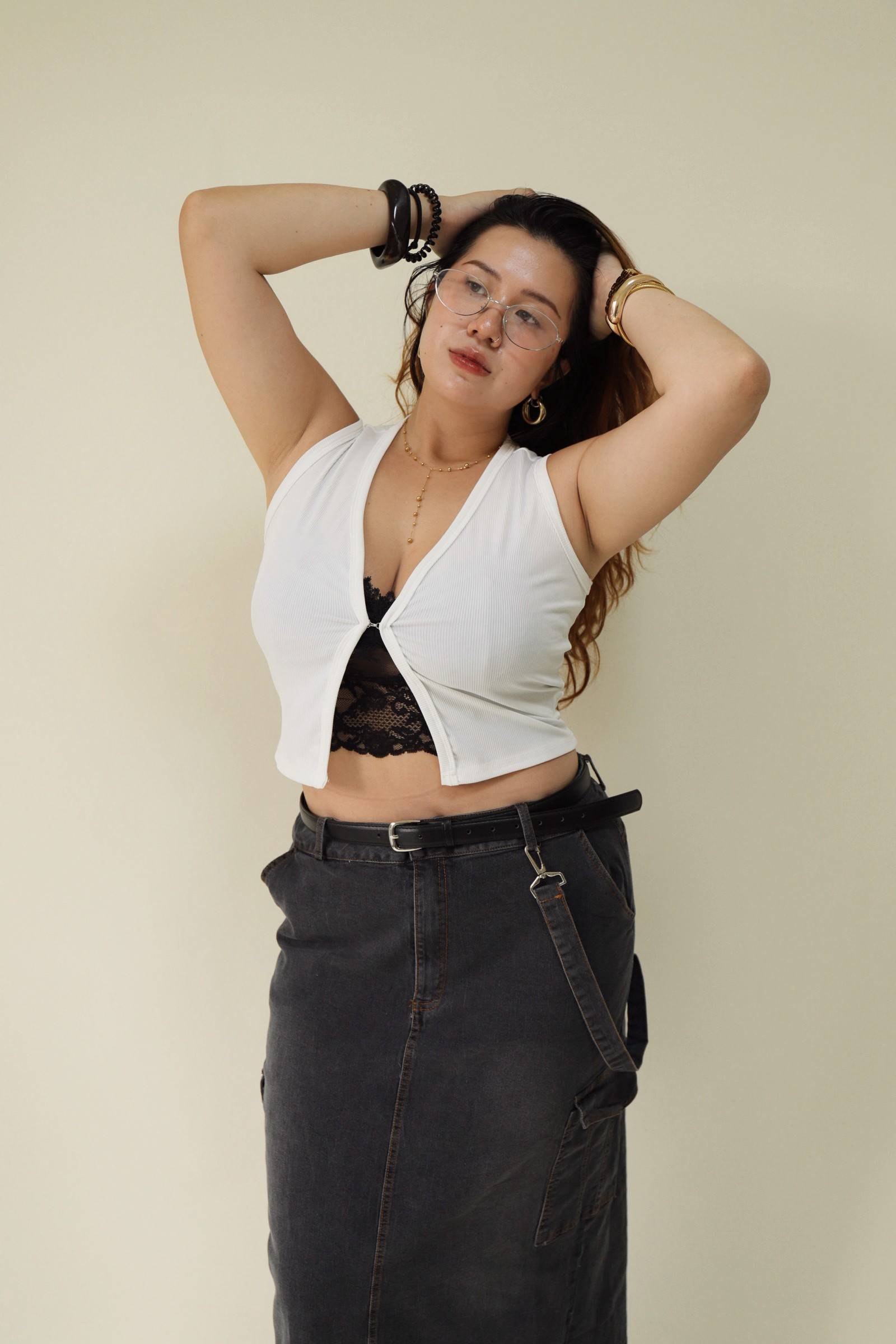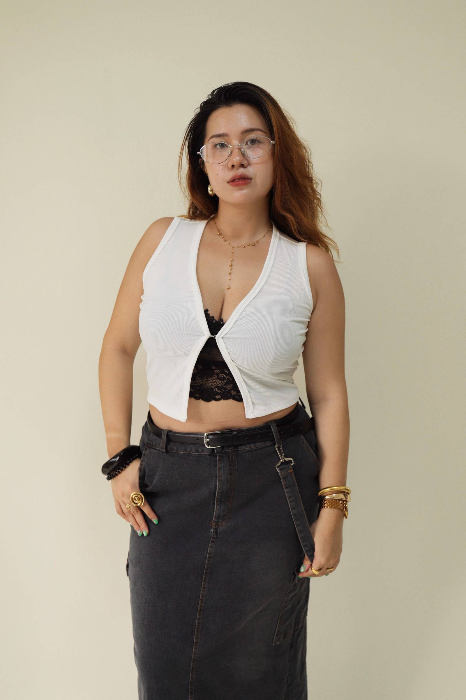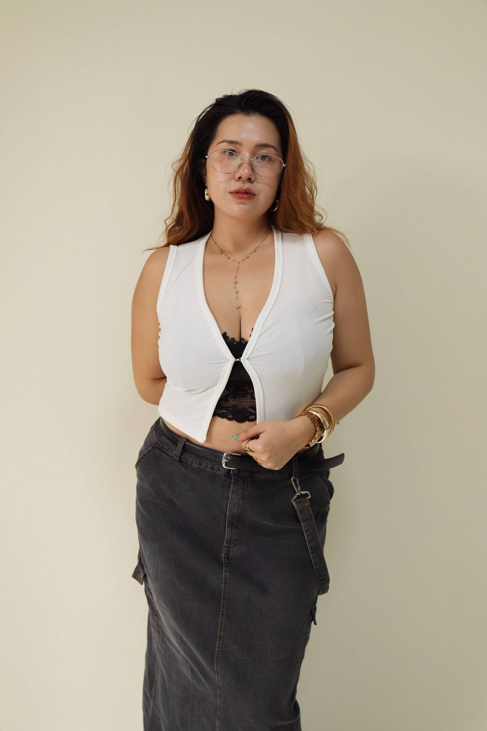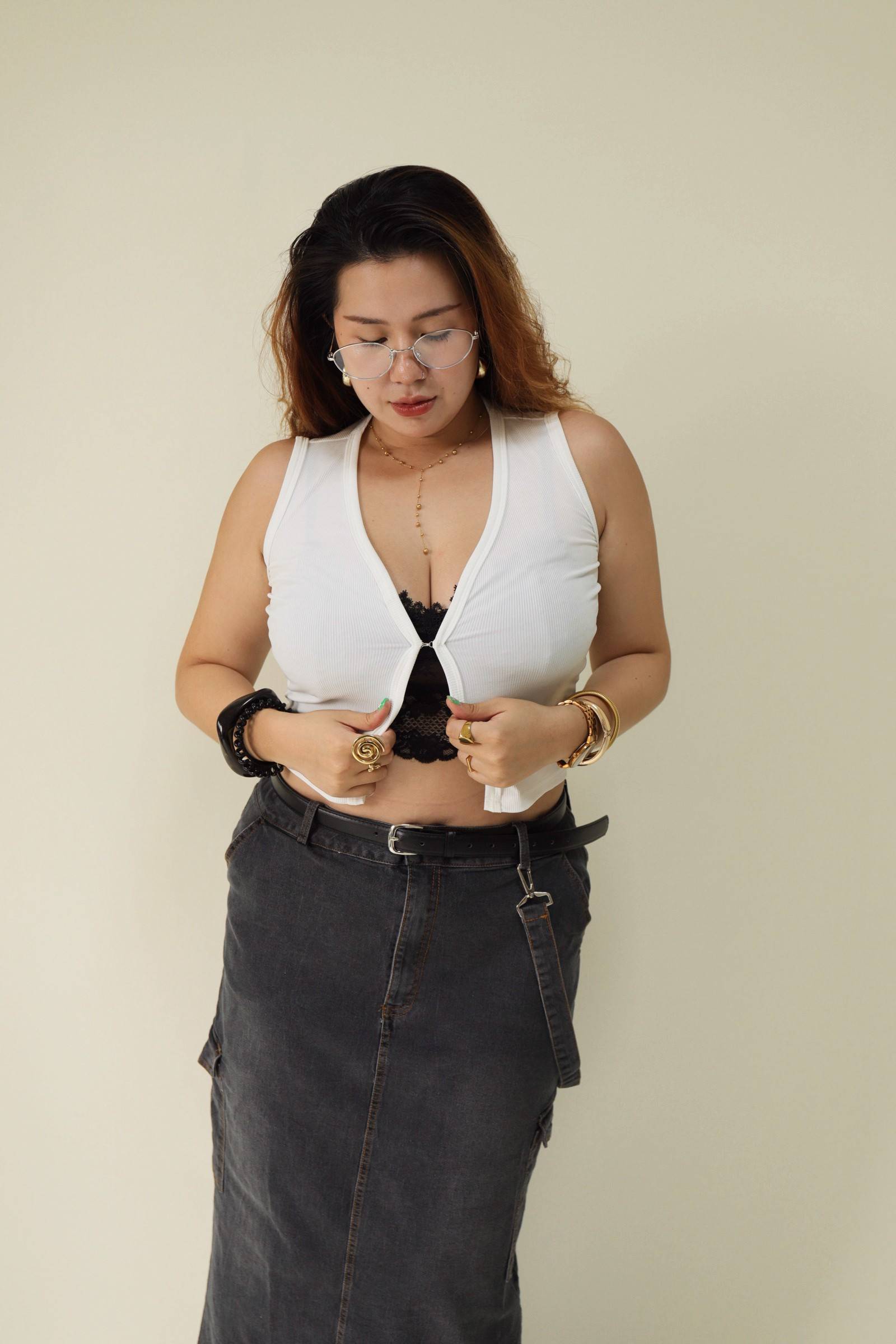 全開釦粗肩短版上衣,LEILASHAW 你的美不該被數字綁架