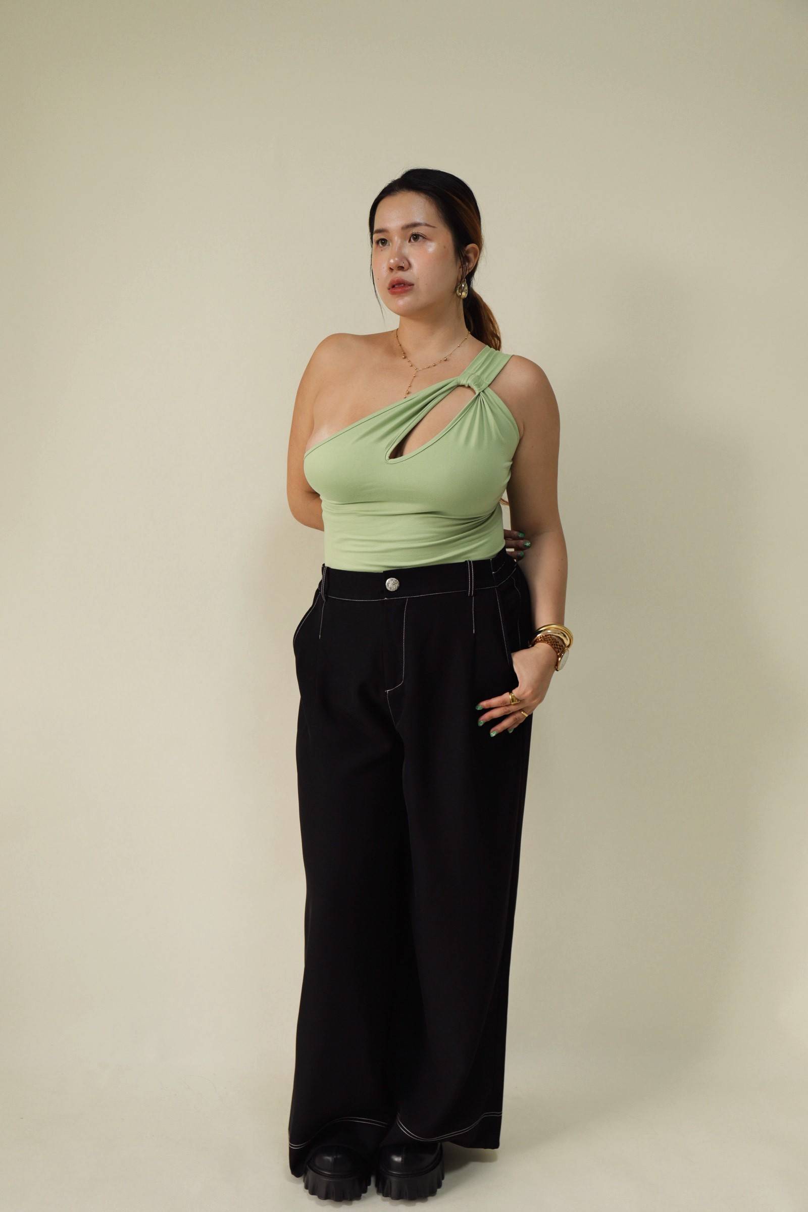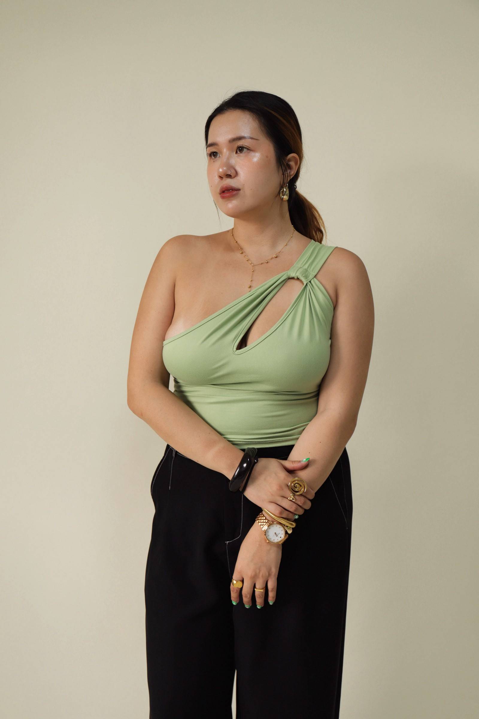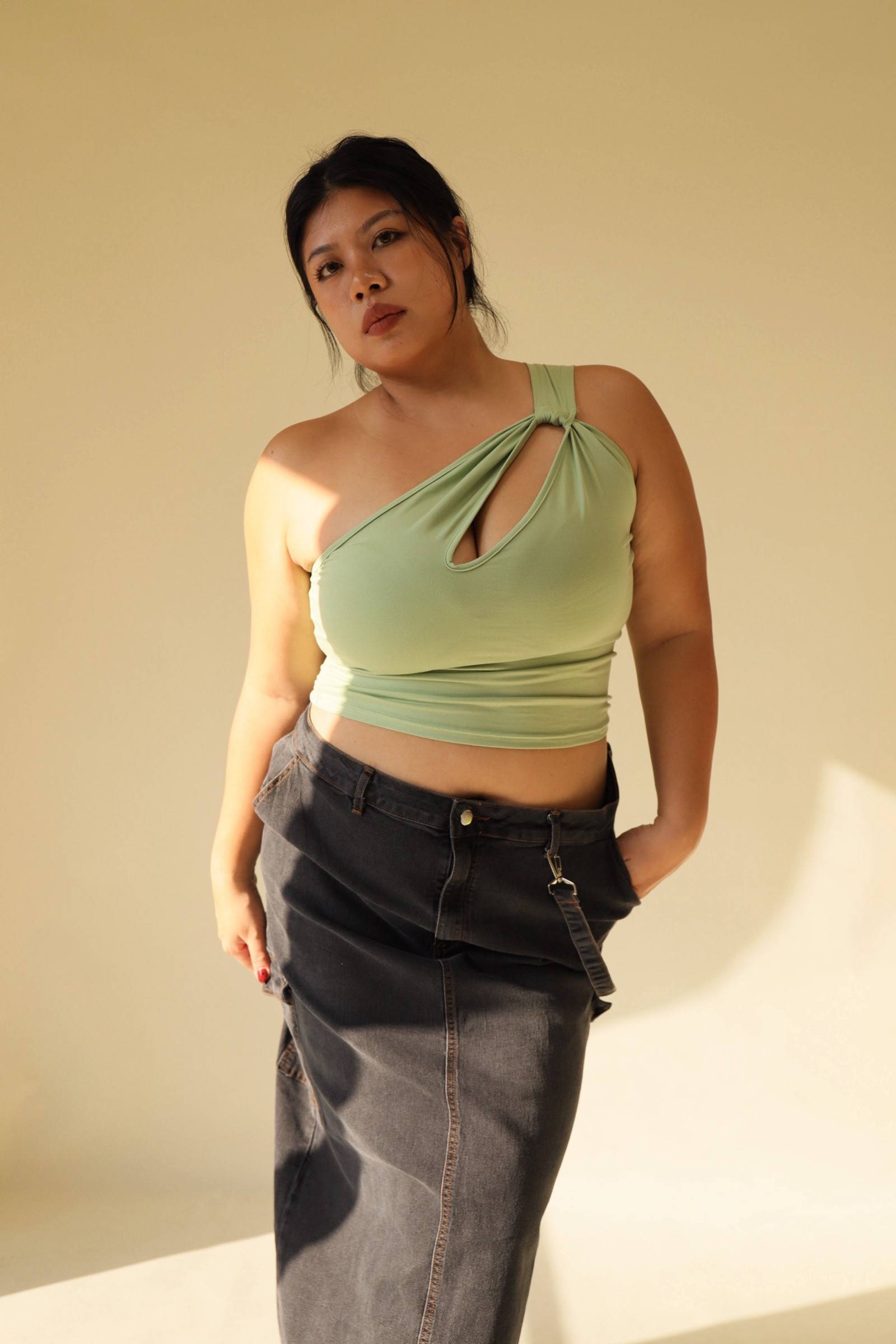 單肩小開洞酪梨綠上衣,LEILASHAW 你的美不該被數字綁架