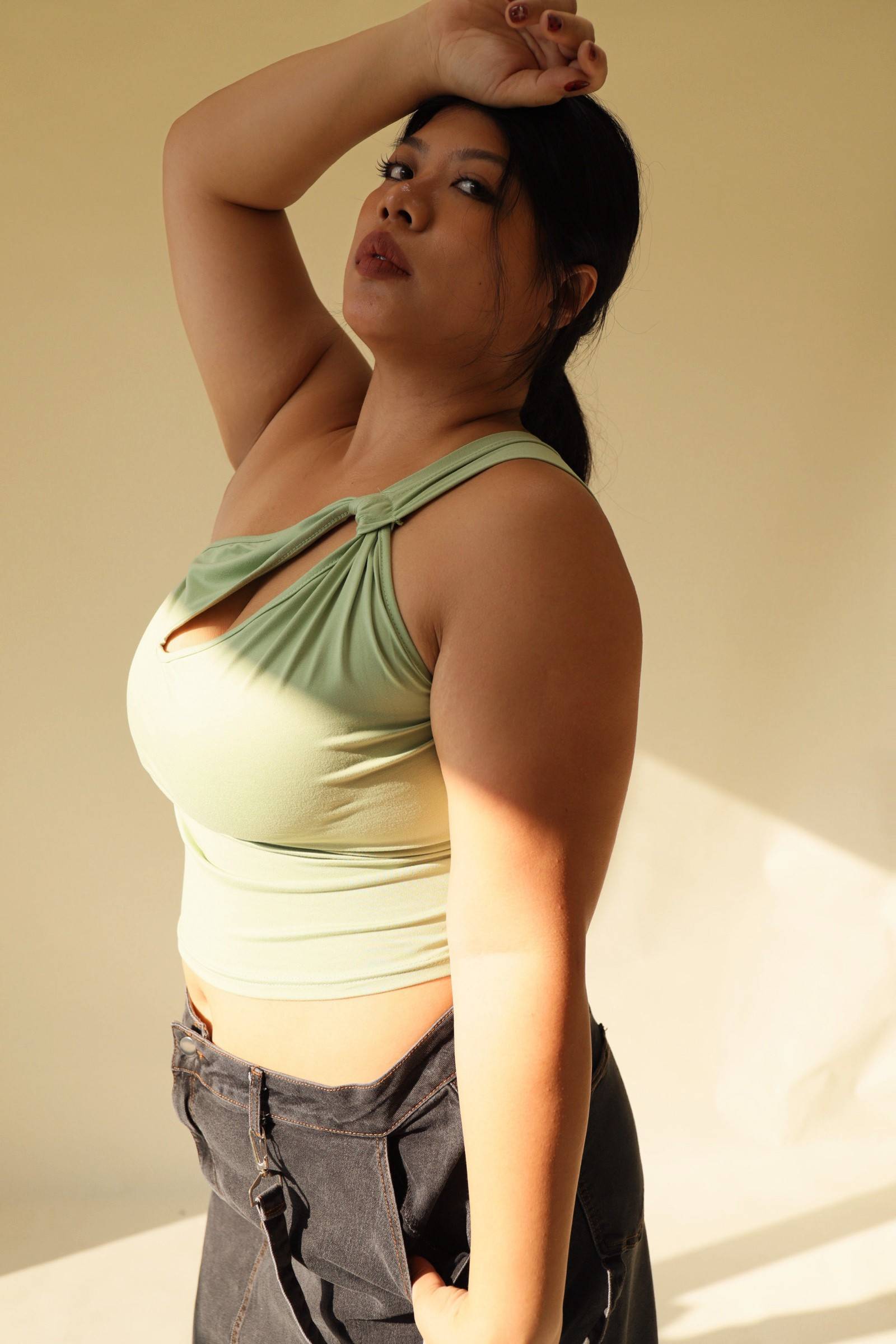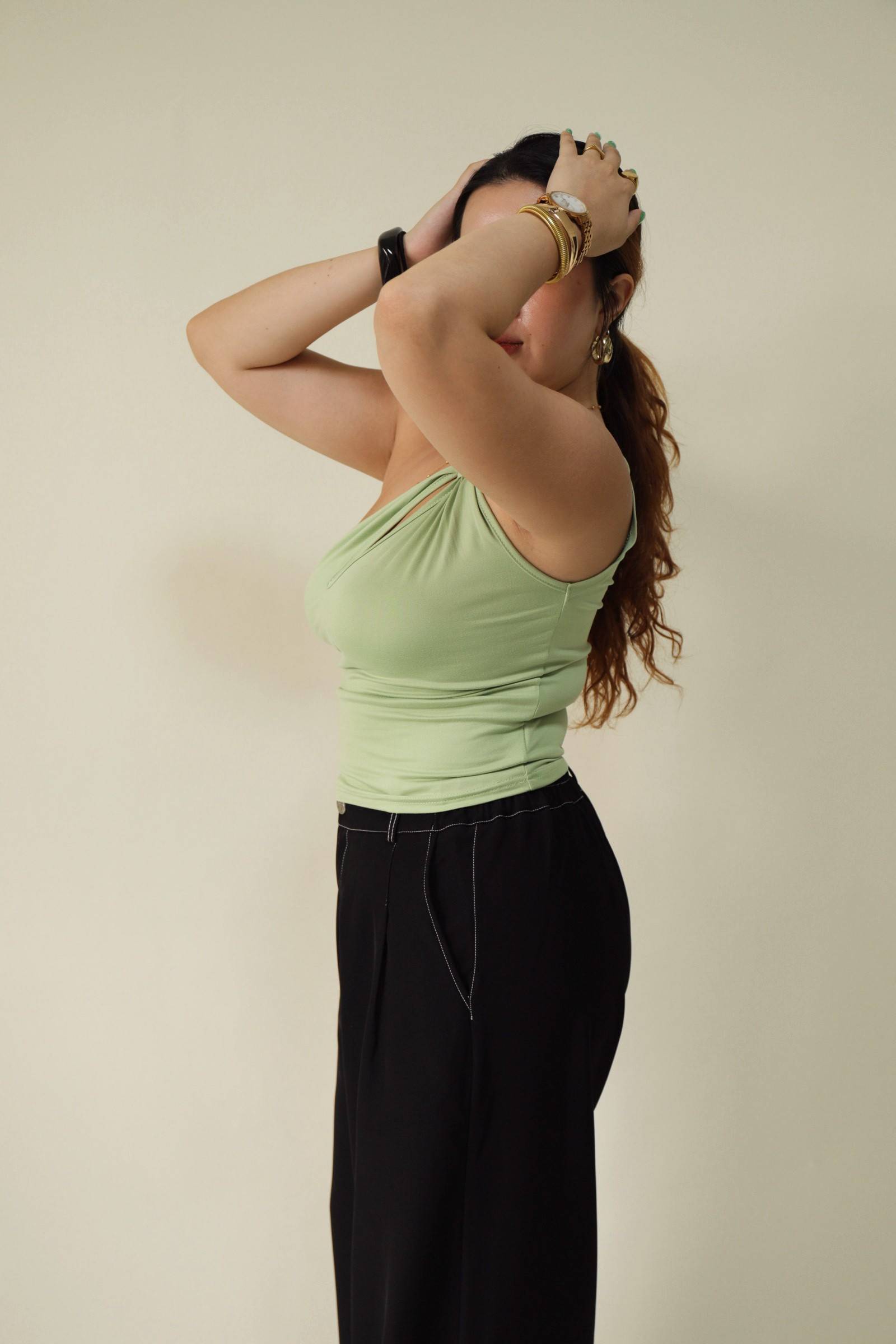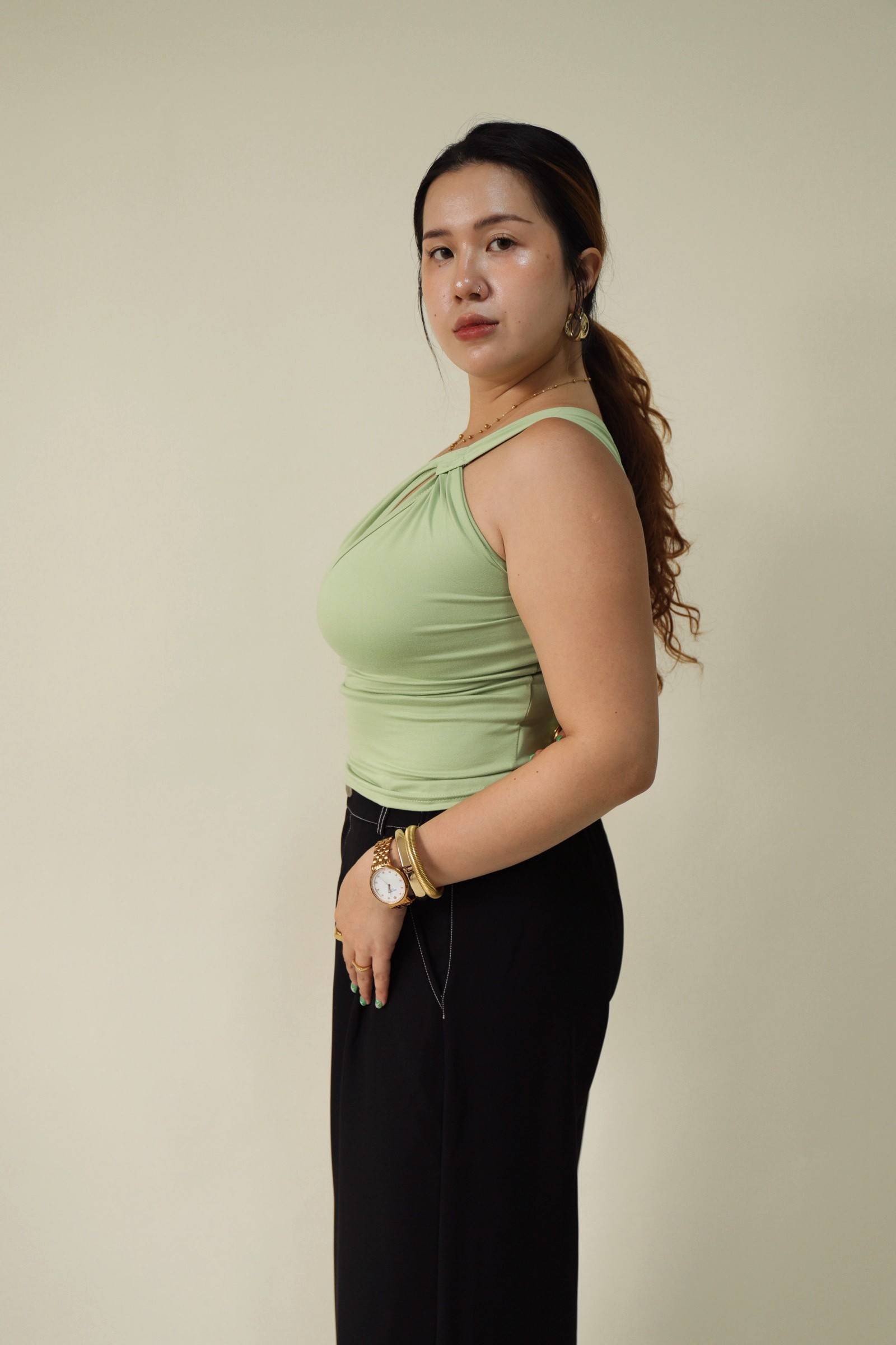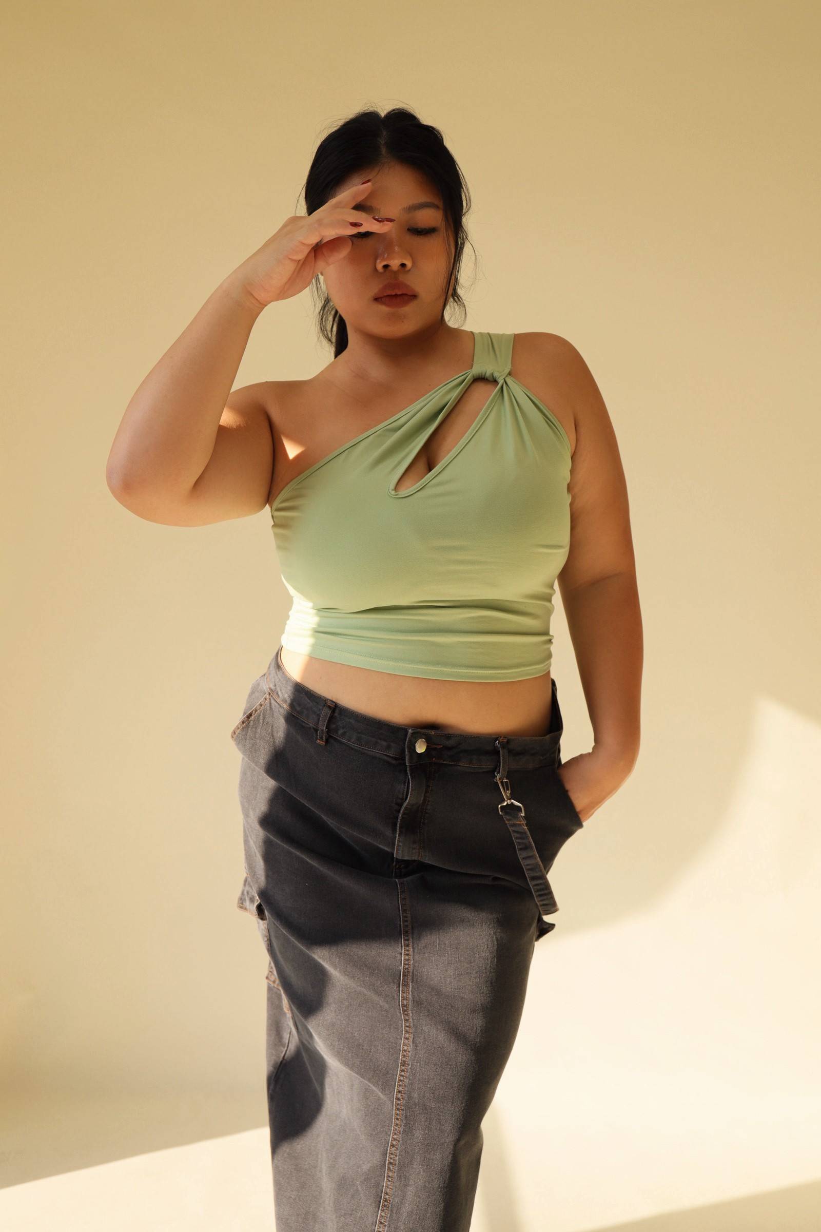 單肩小開洞酪梨綠上衣,LEILASHAW 你的美不該被數字綁架