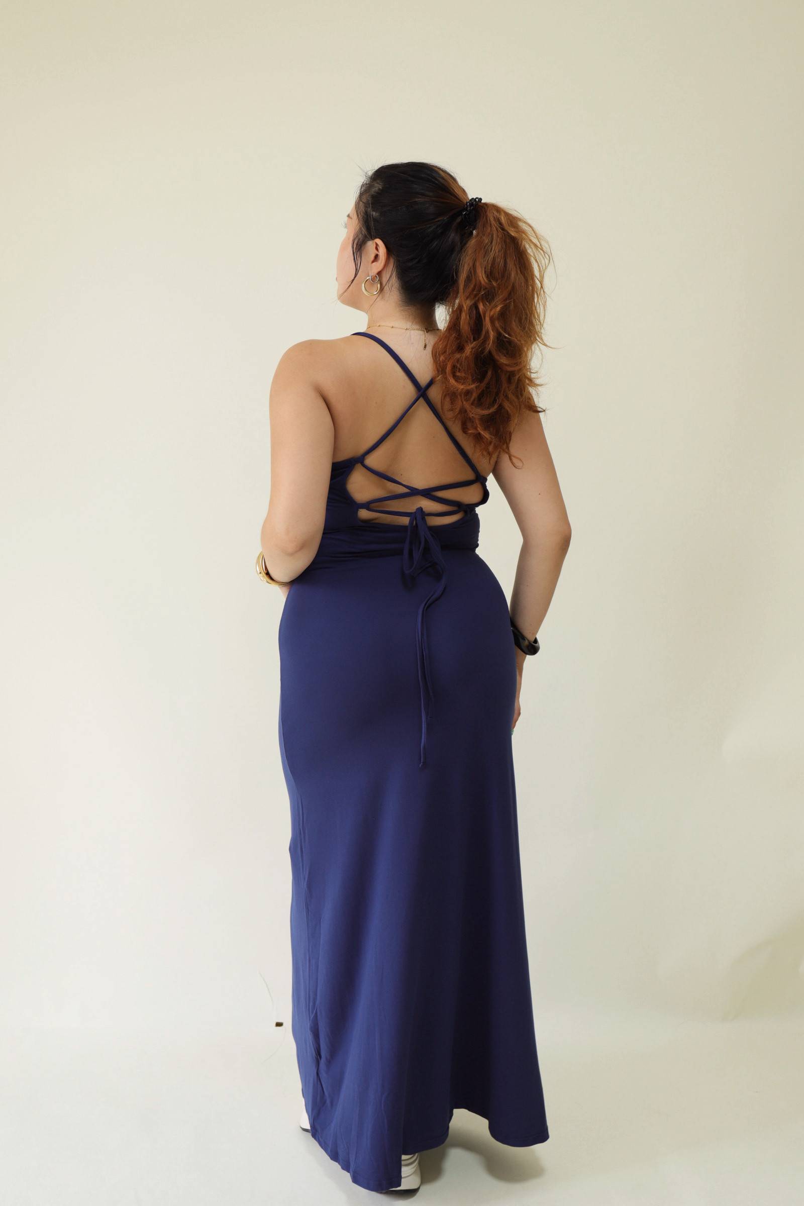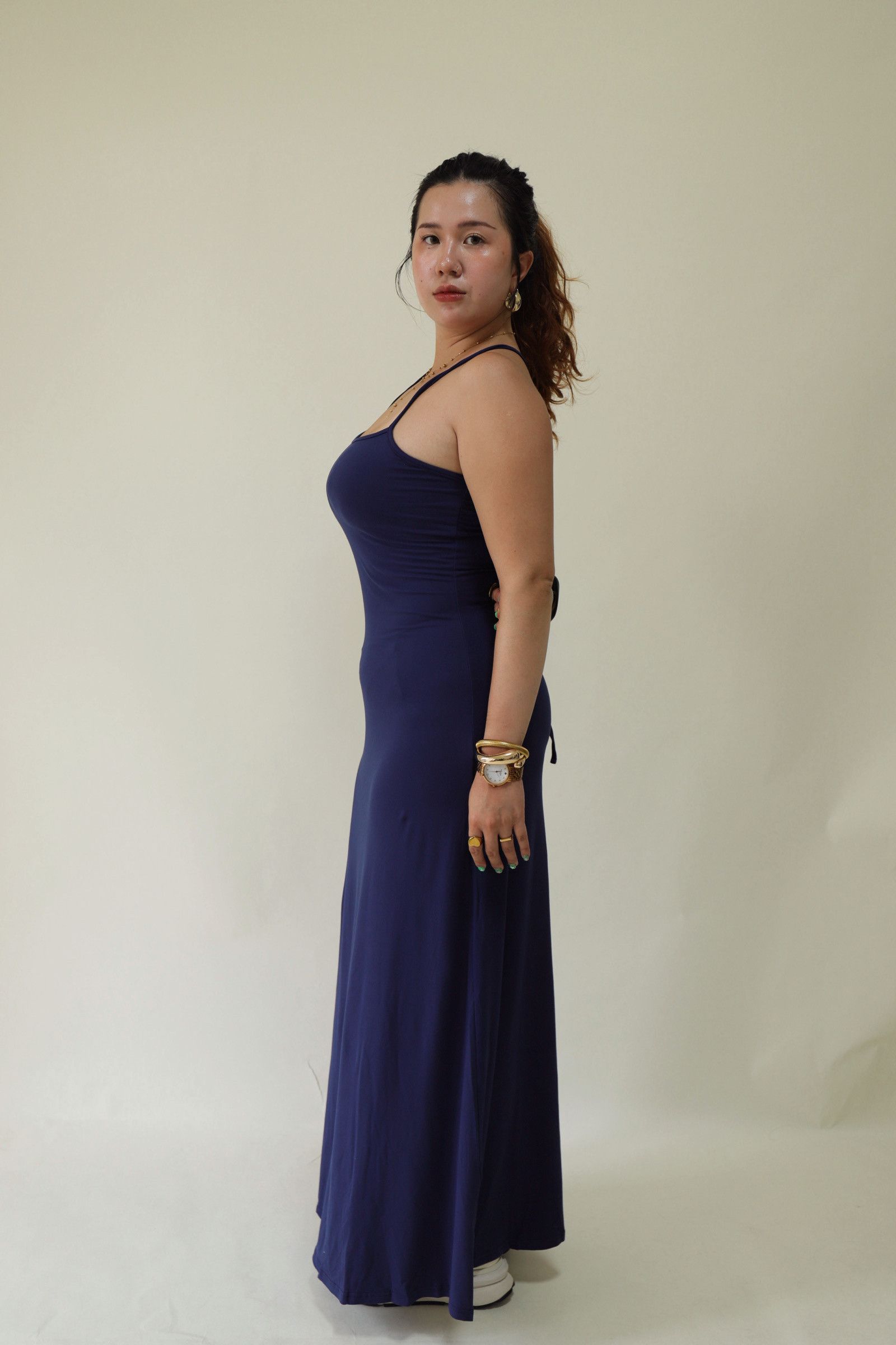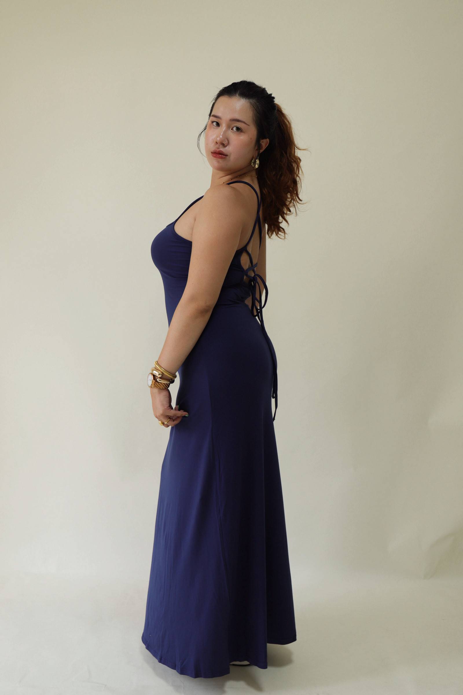 極簡後綁帶收腰長洋裝,LEILASHAW 你的美不該被數字綁架