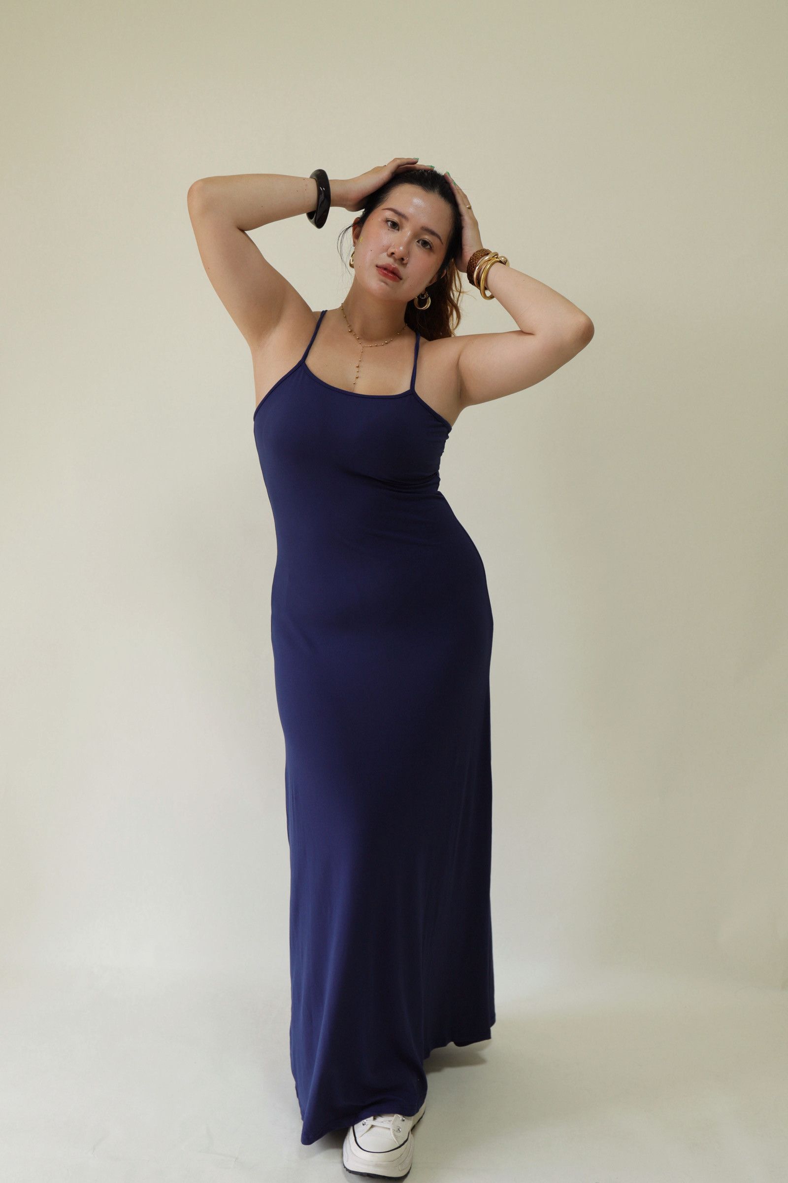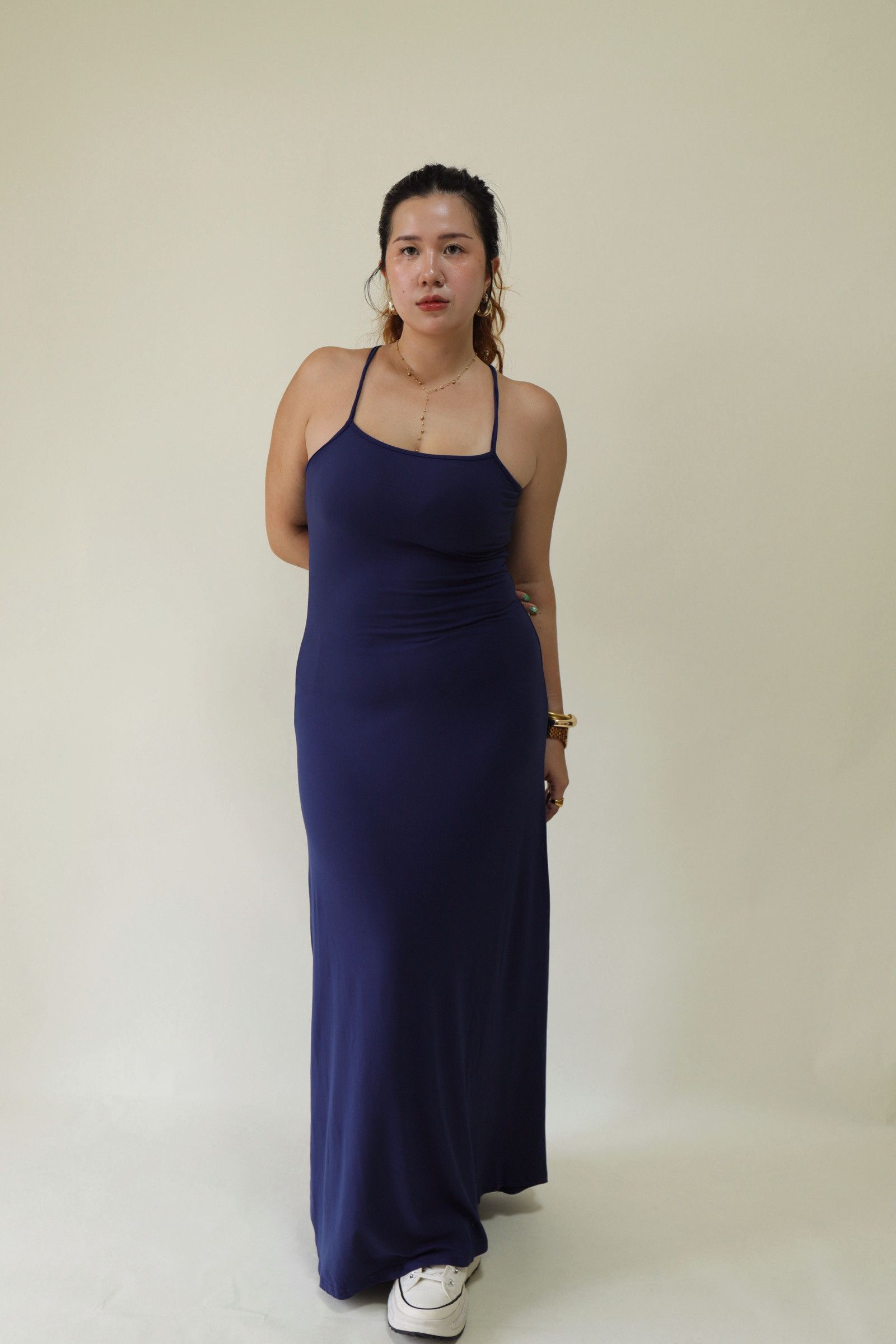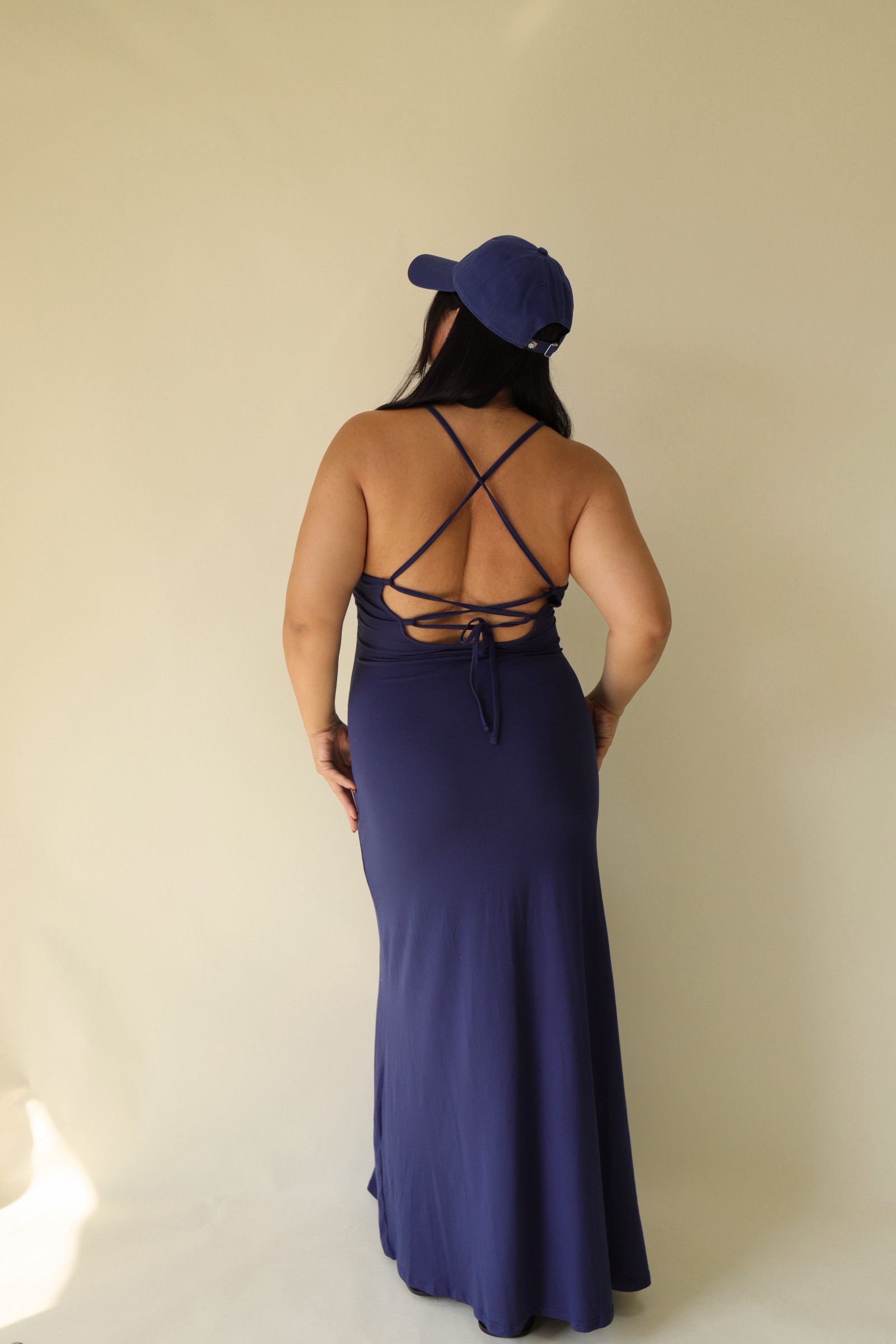 極簡後綁帶收腰長洋裝,LEILASHAW 你的美不該被數字綁架