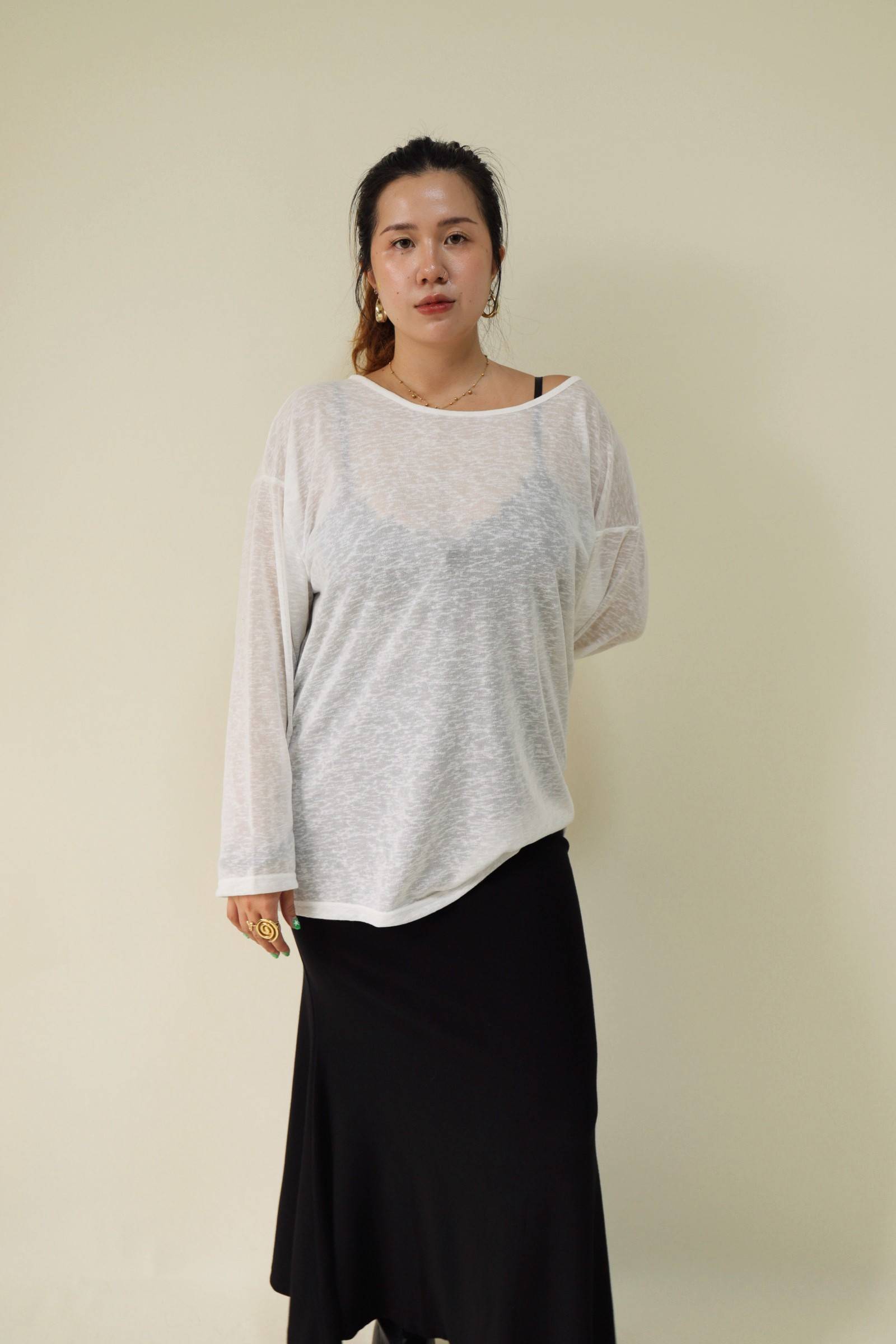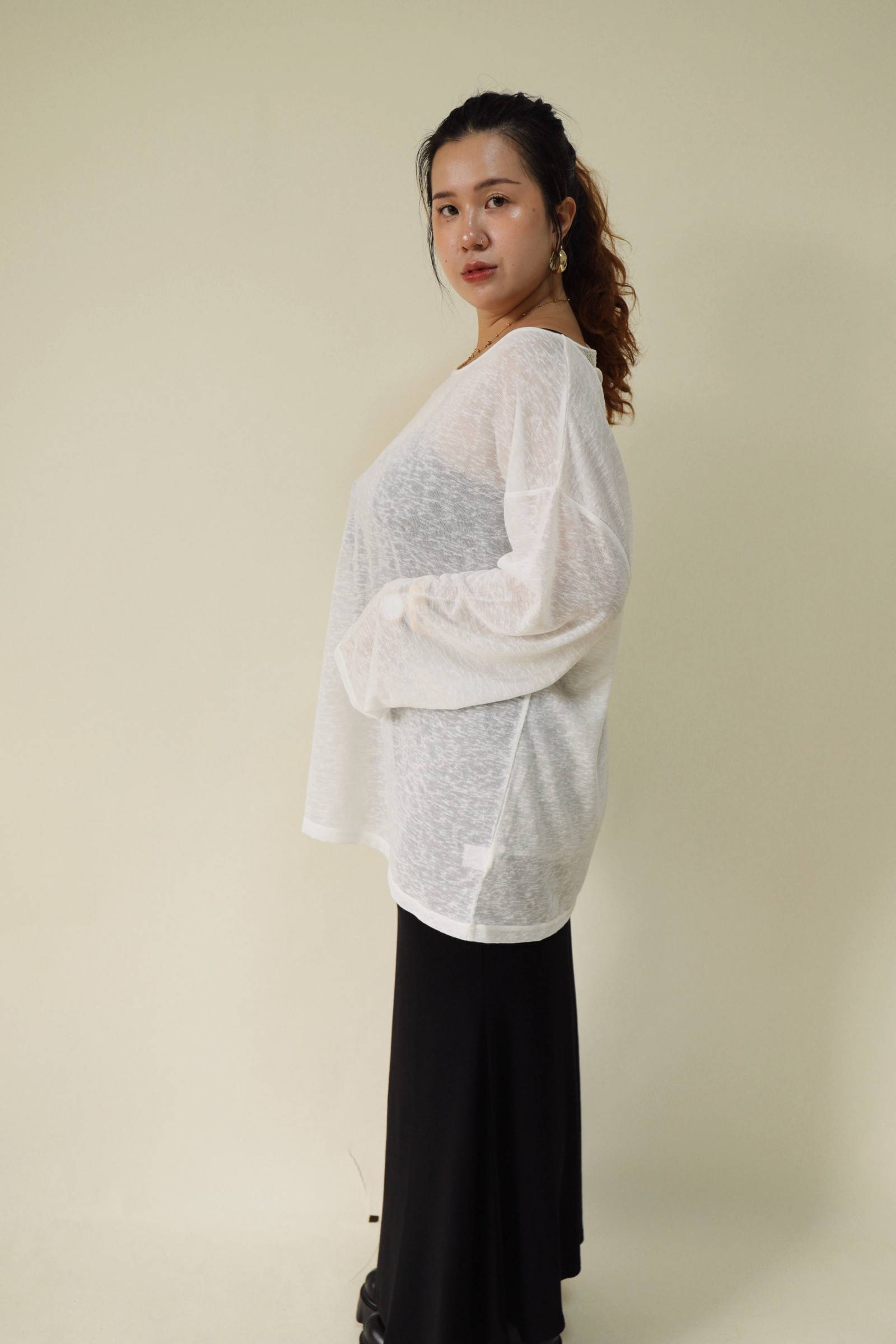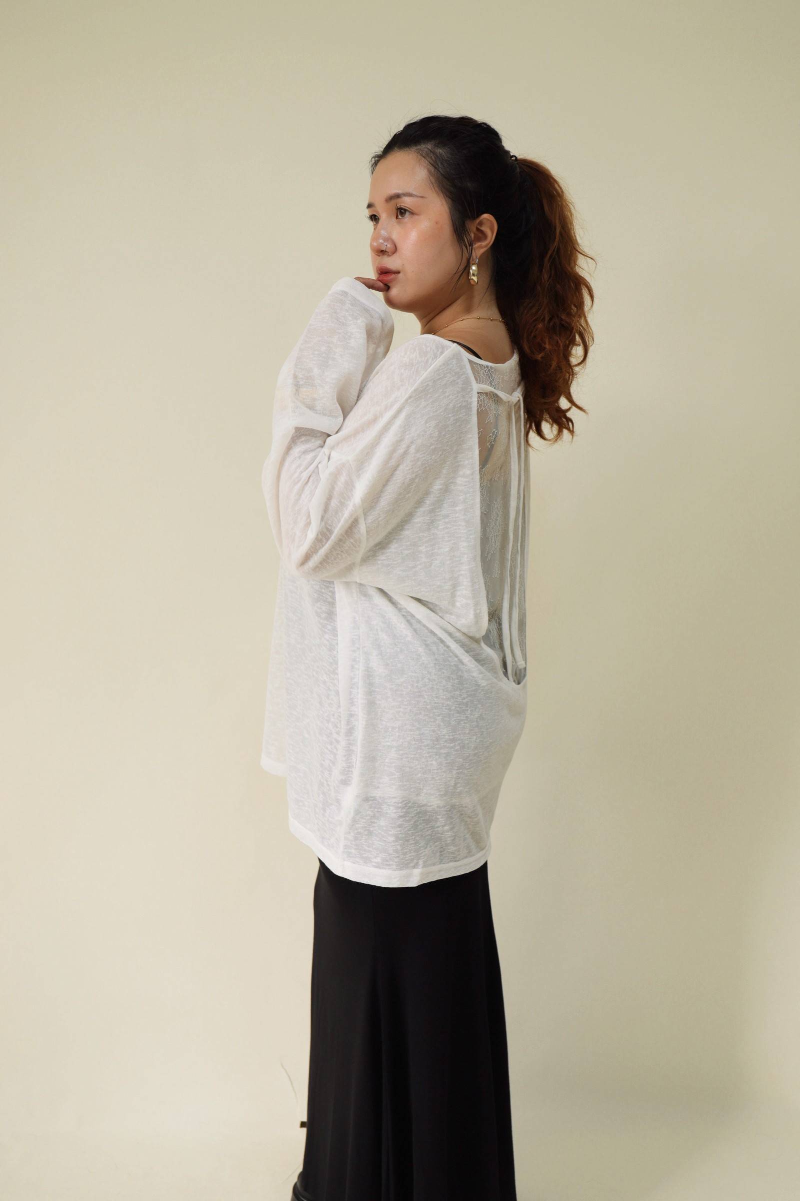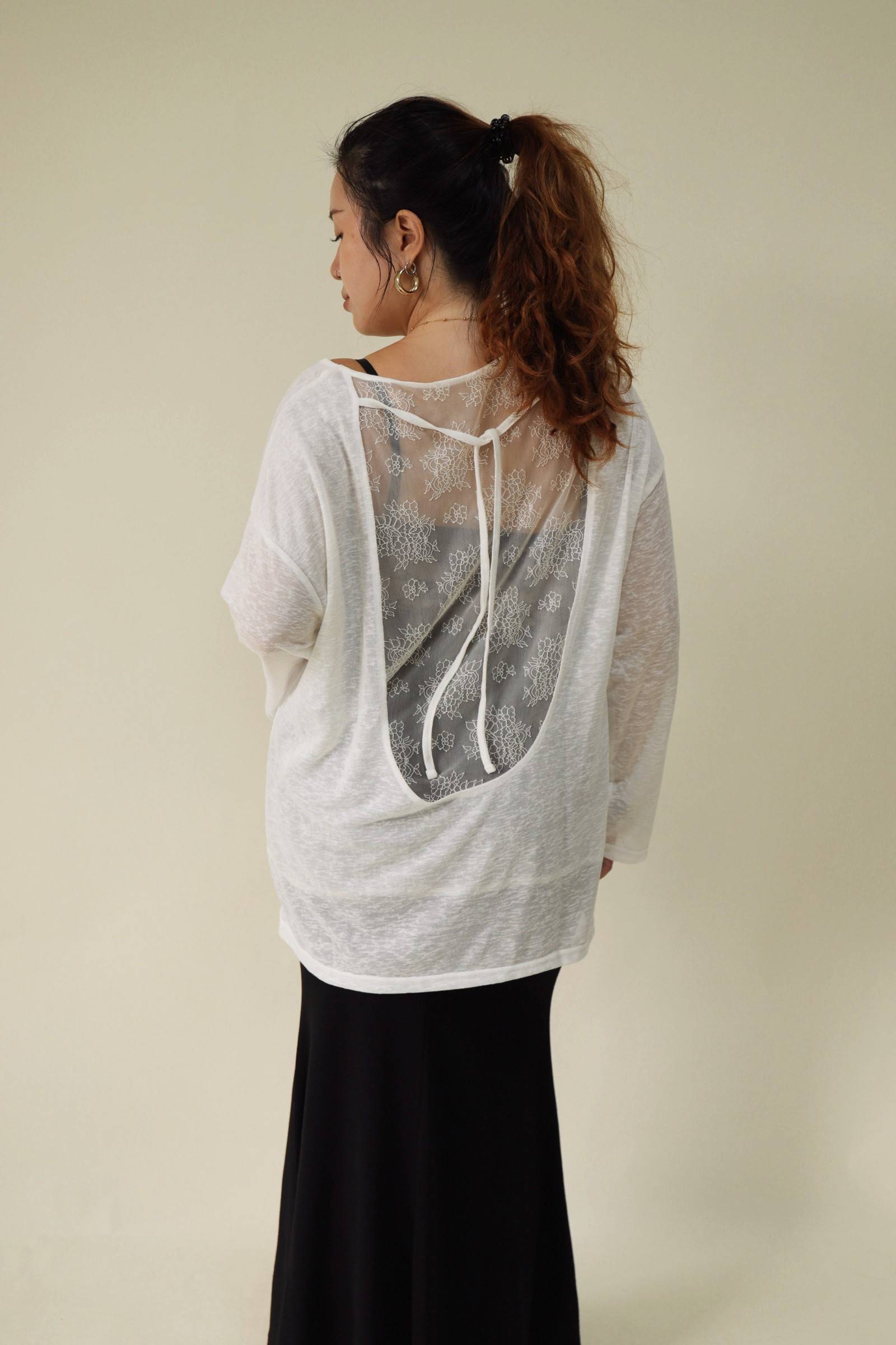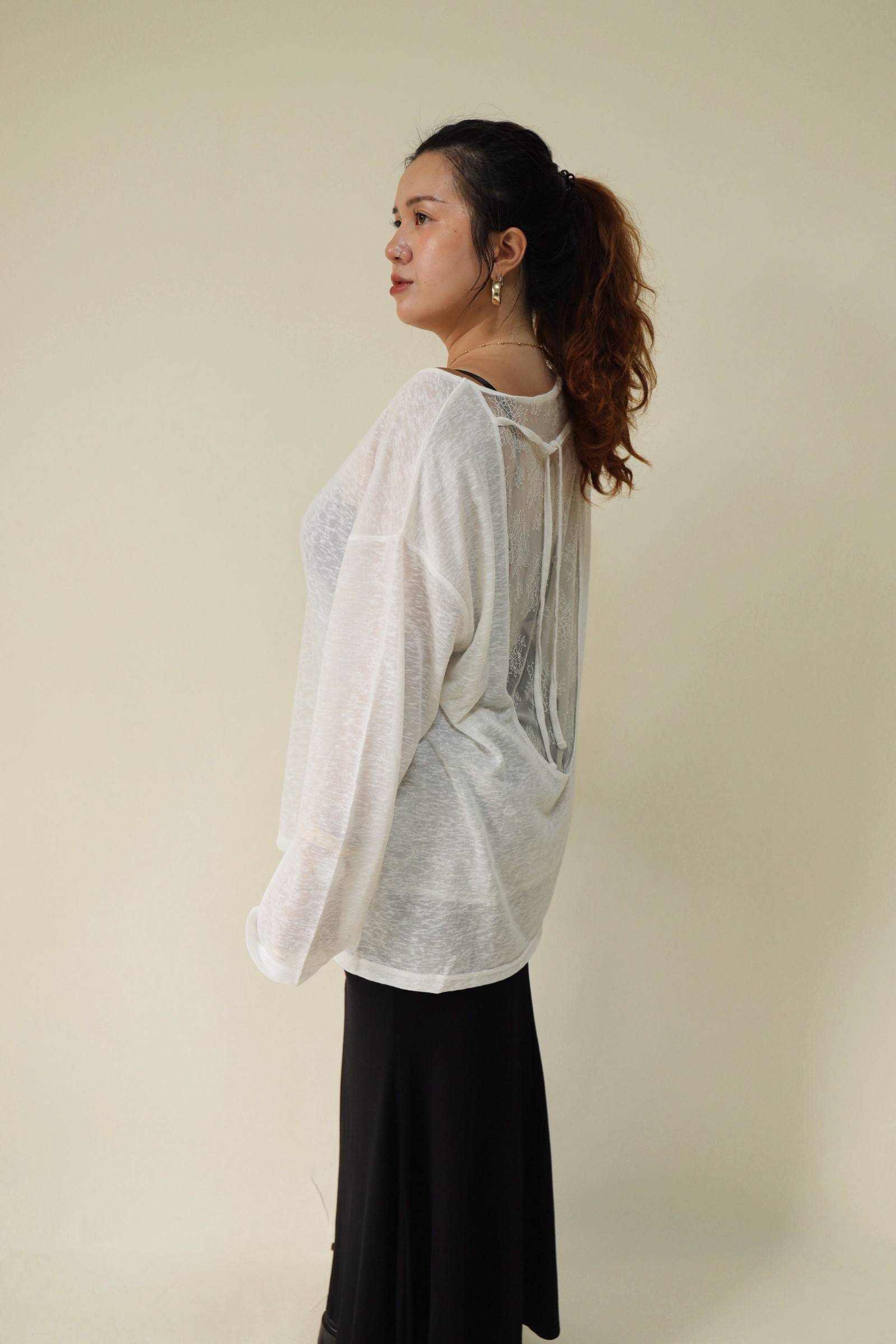 【EASE】微透針織蕾絲拼接上衣-白,LEILASHAW 你的美不該被數字綁架