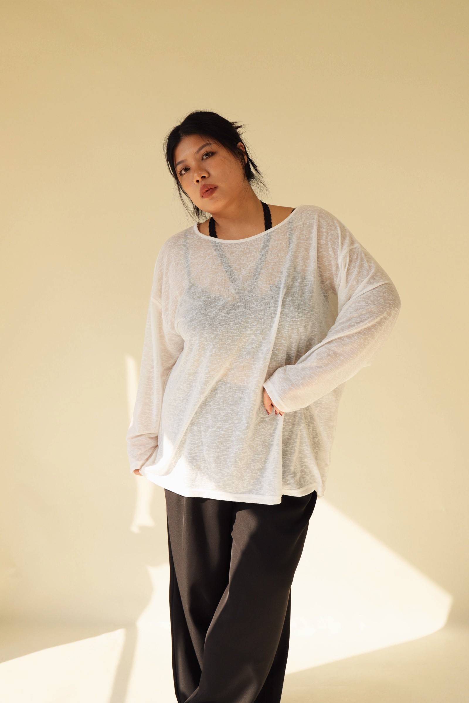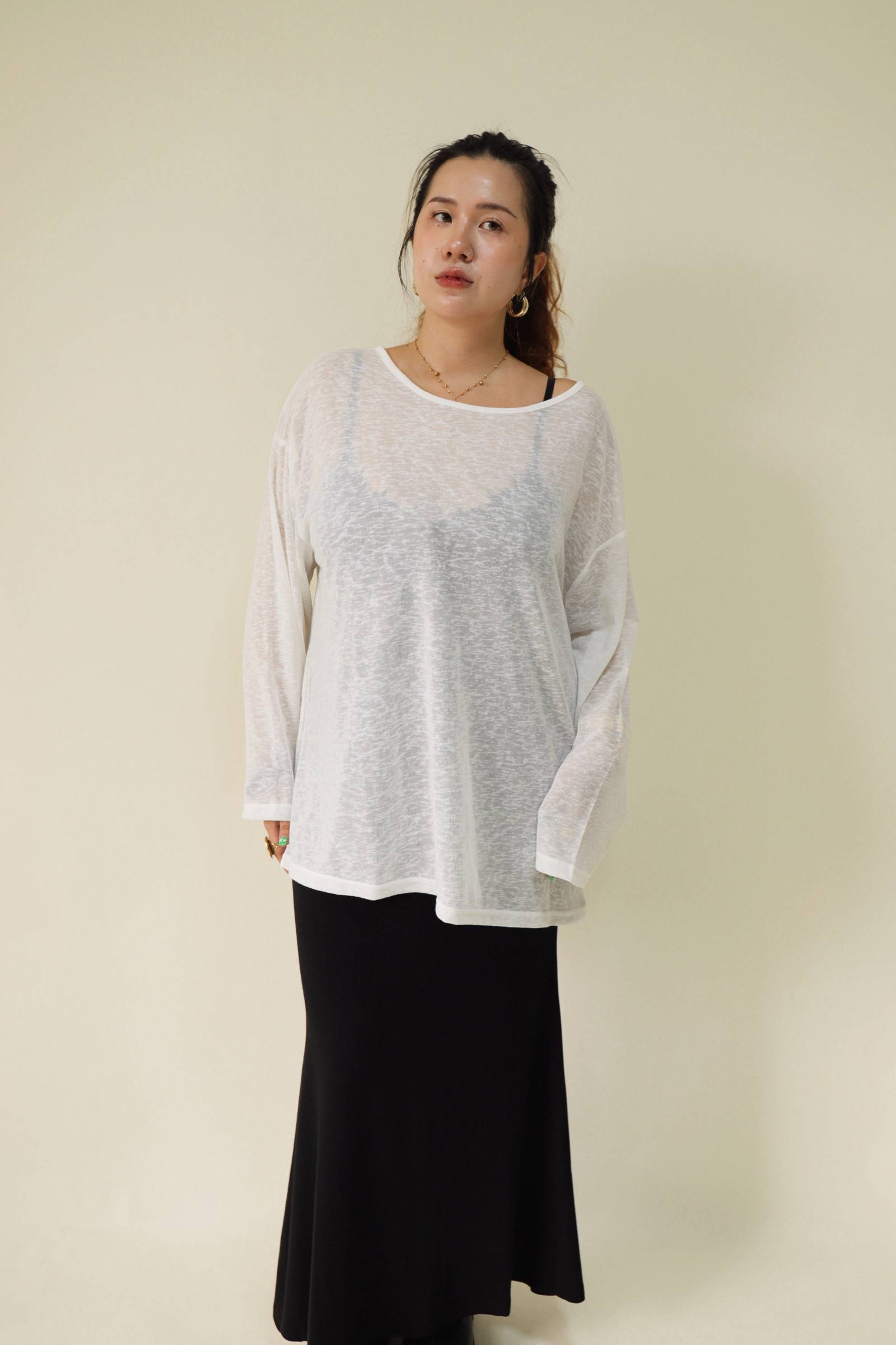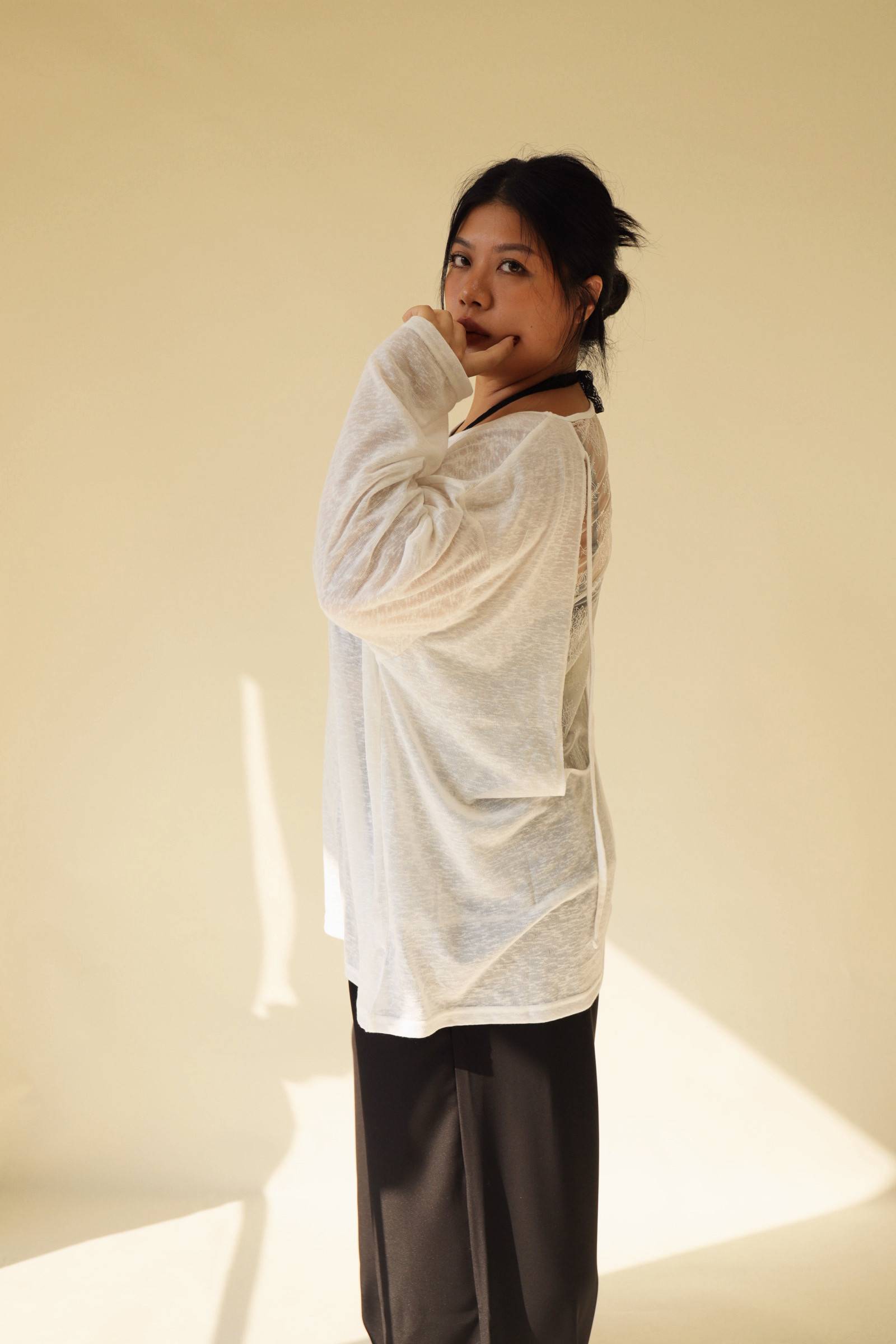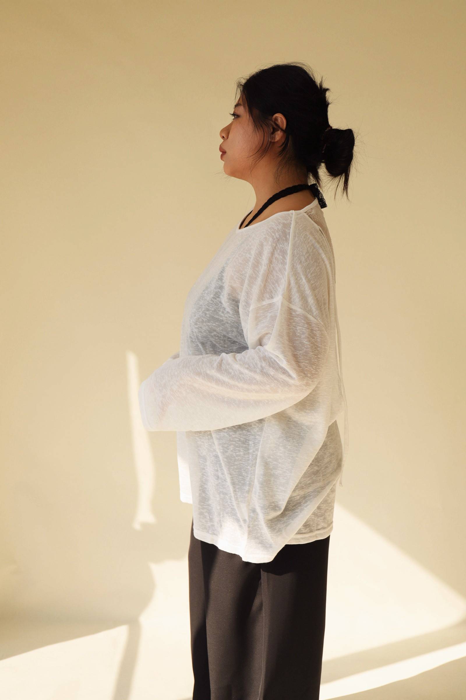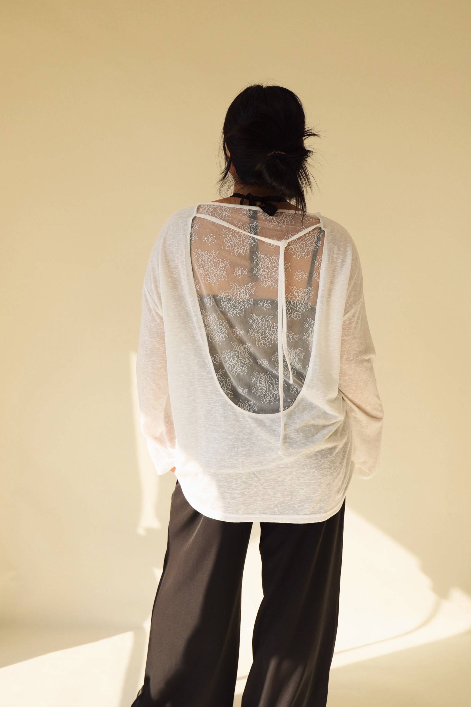 【EASE】微透針織蕾絲拼接上衣-白,LEILASHAW 你的美不該被數字綁架