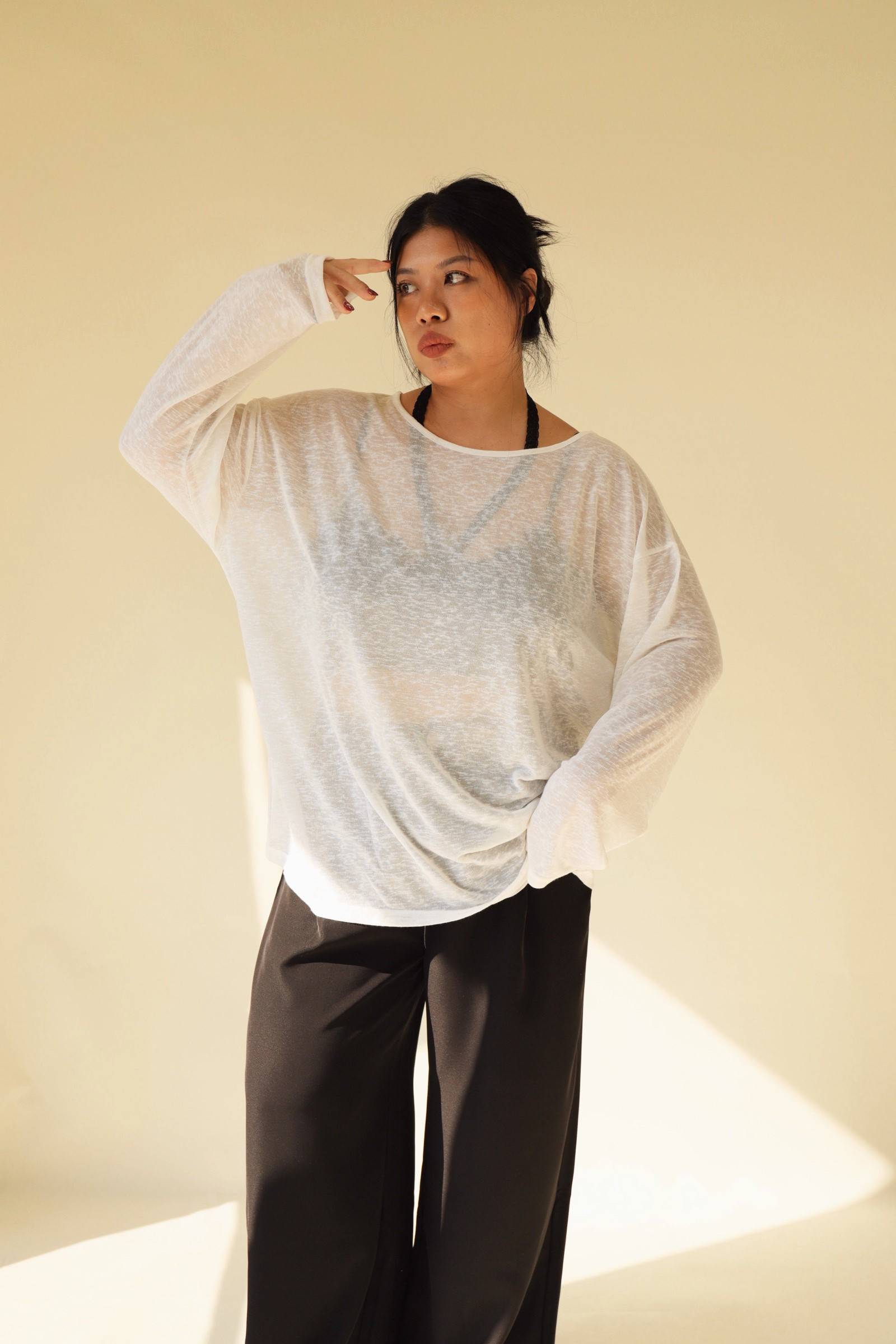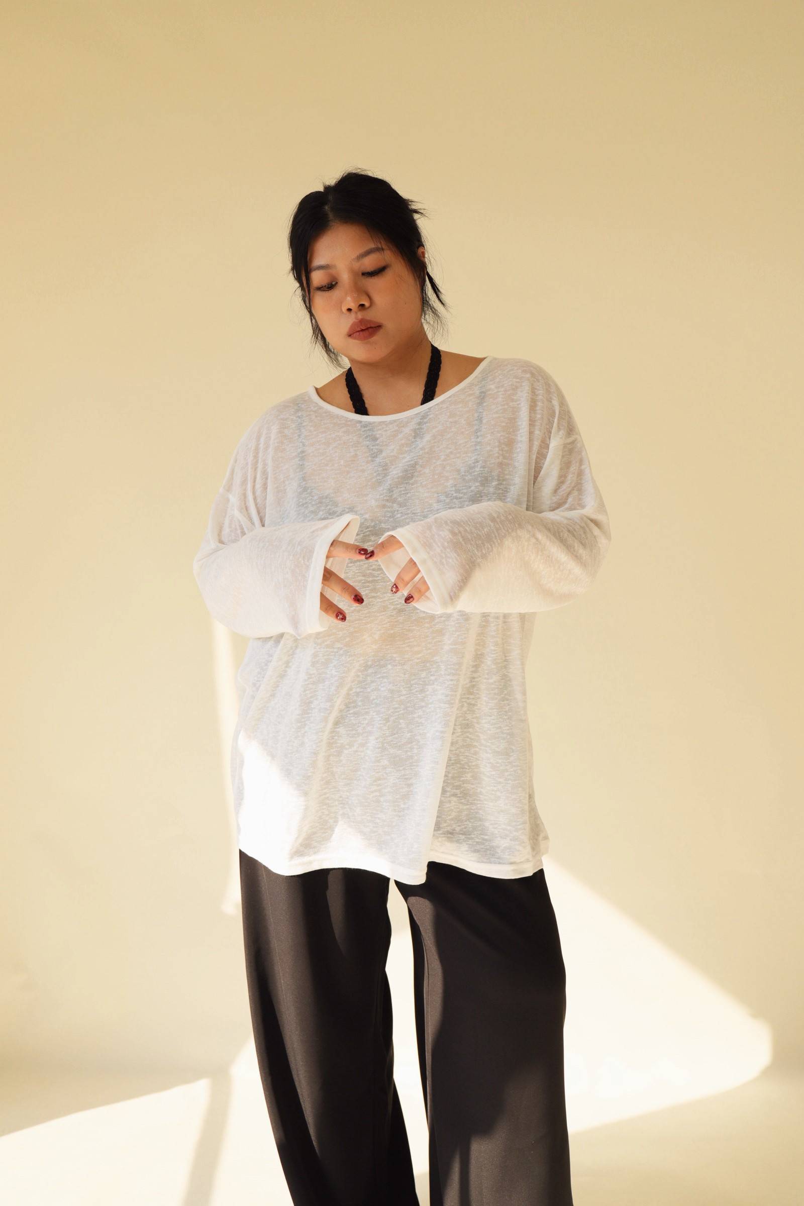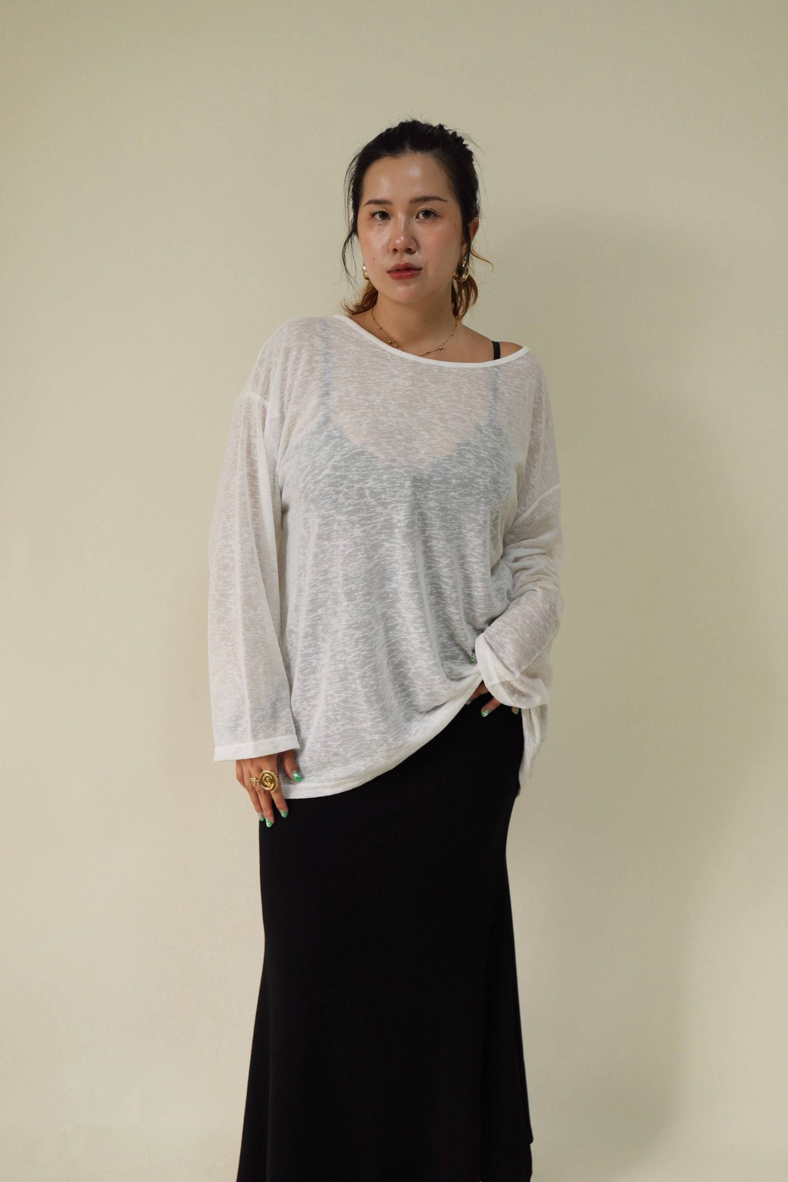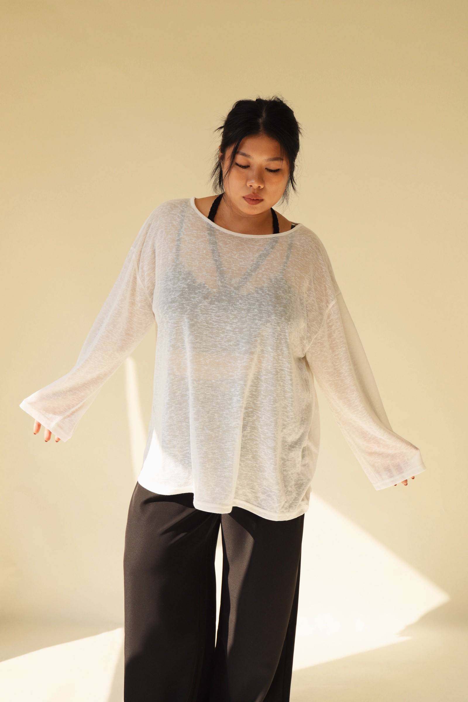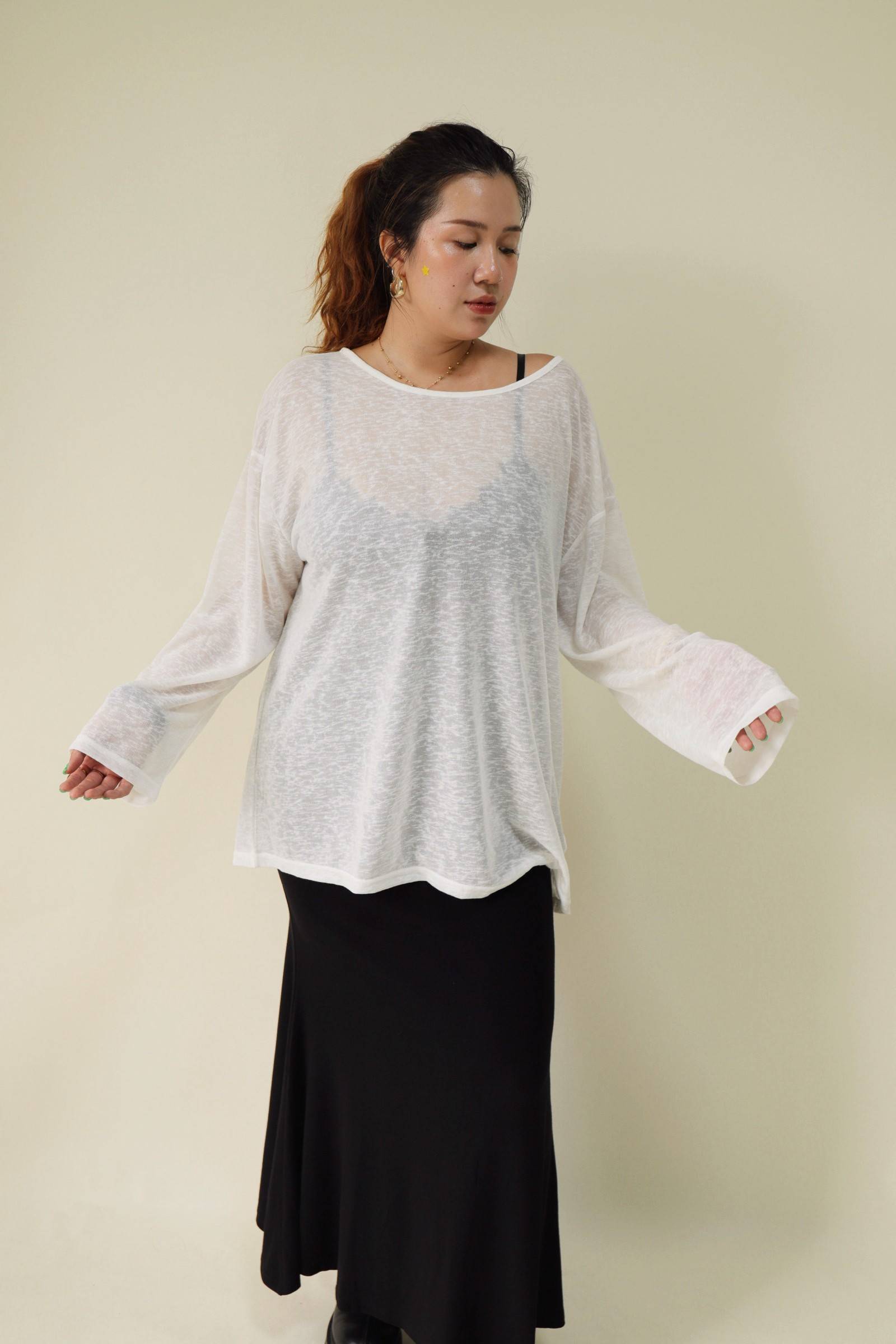 【EASE】微透針織蕾絲拼接上衣-白,LEILASHAW 你的美不該被數字綁架