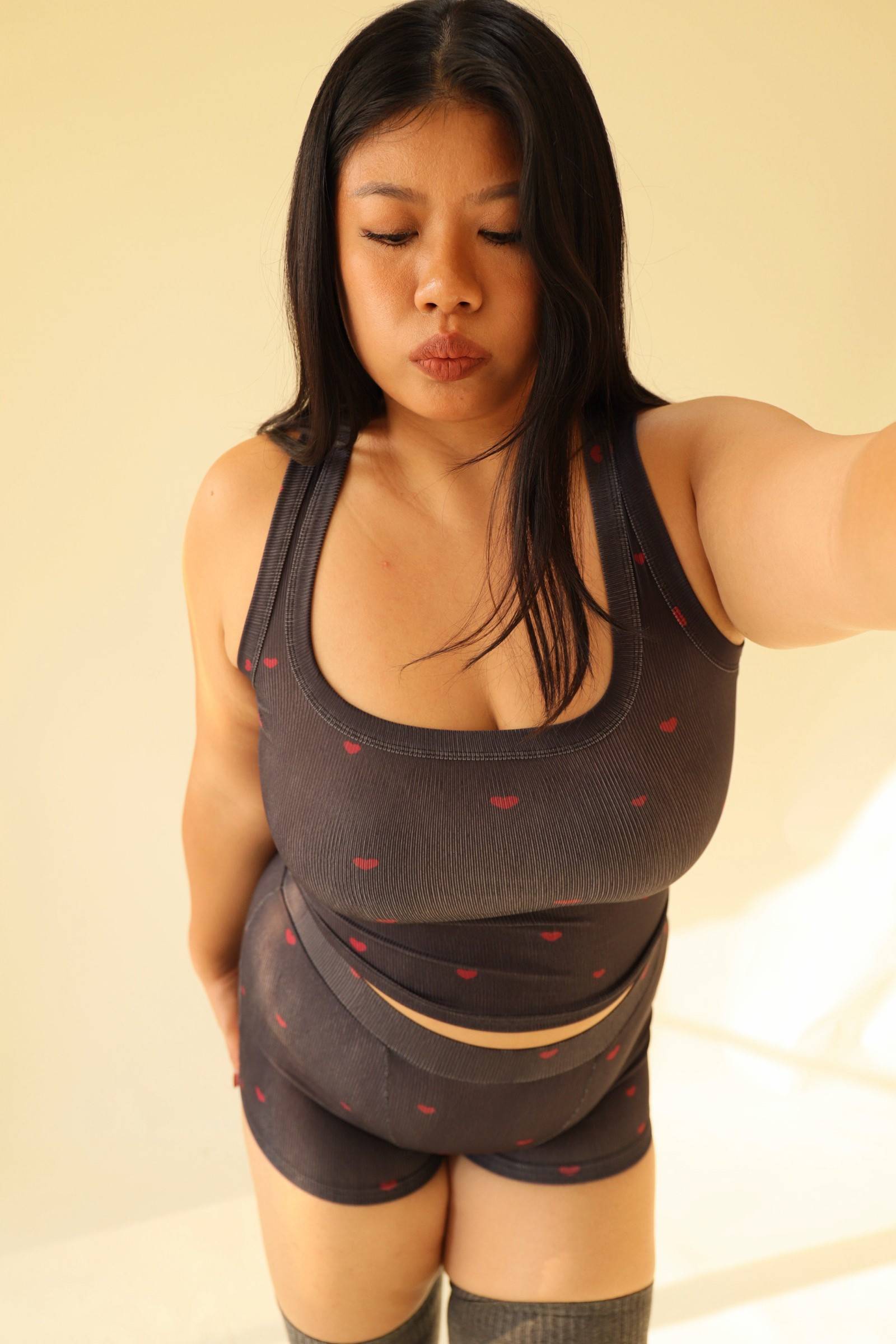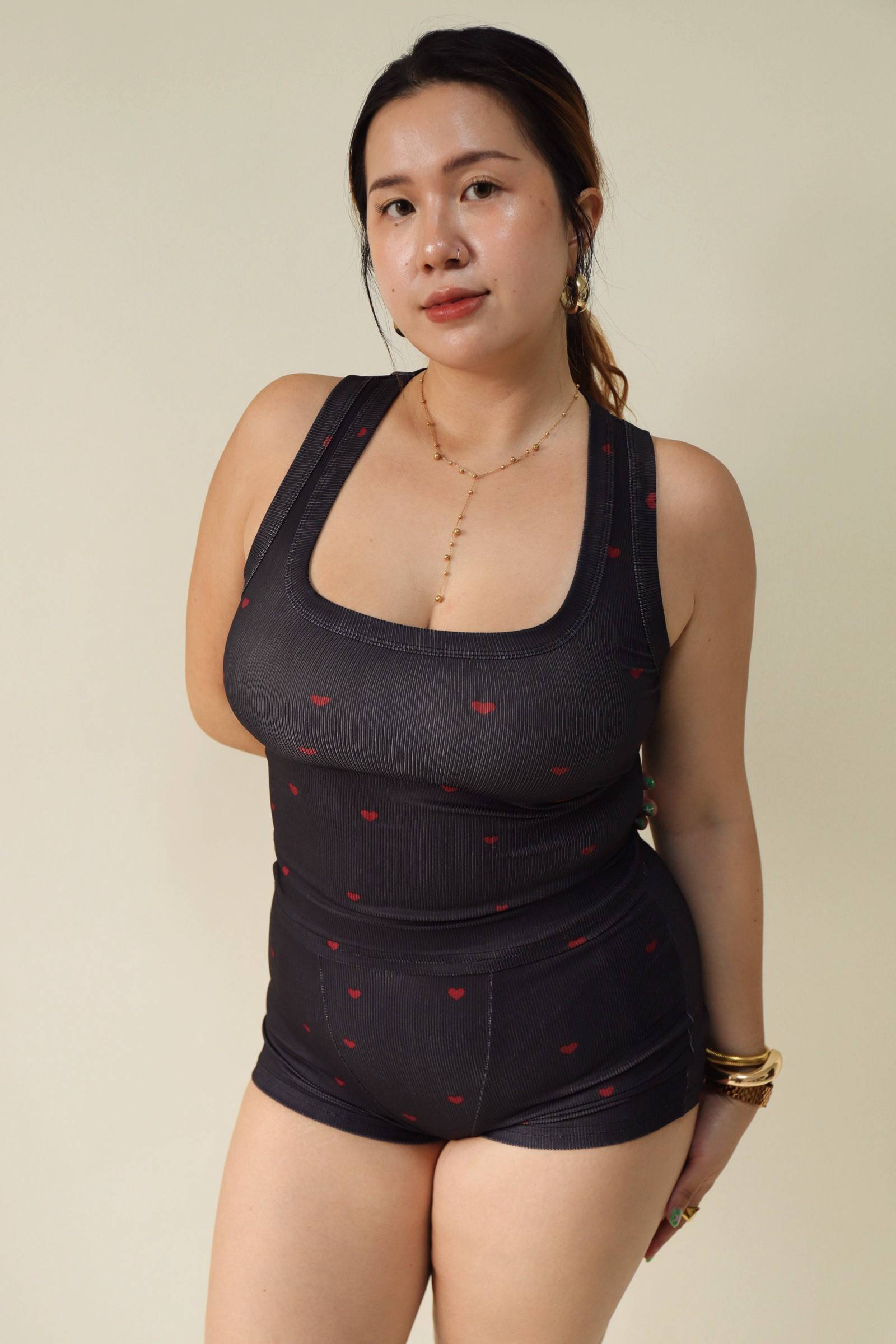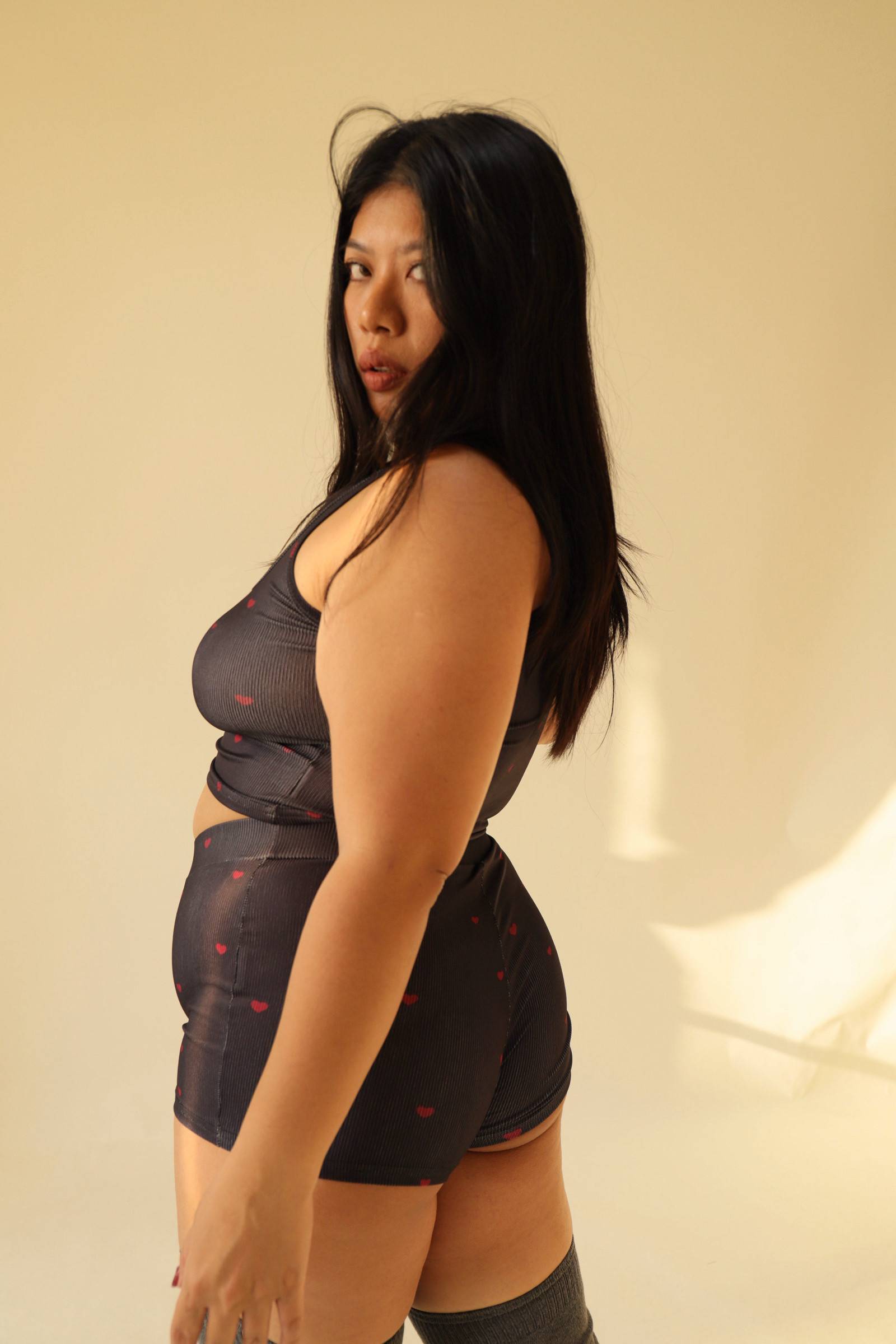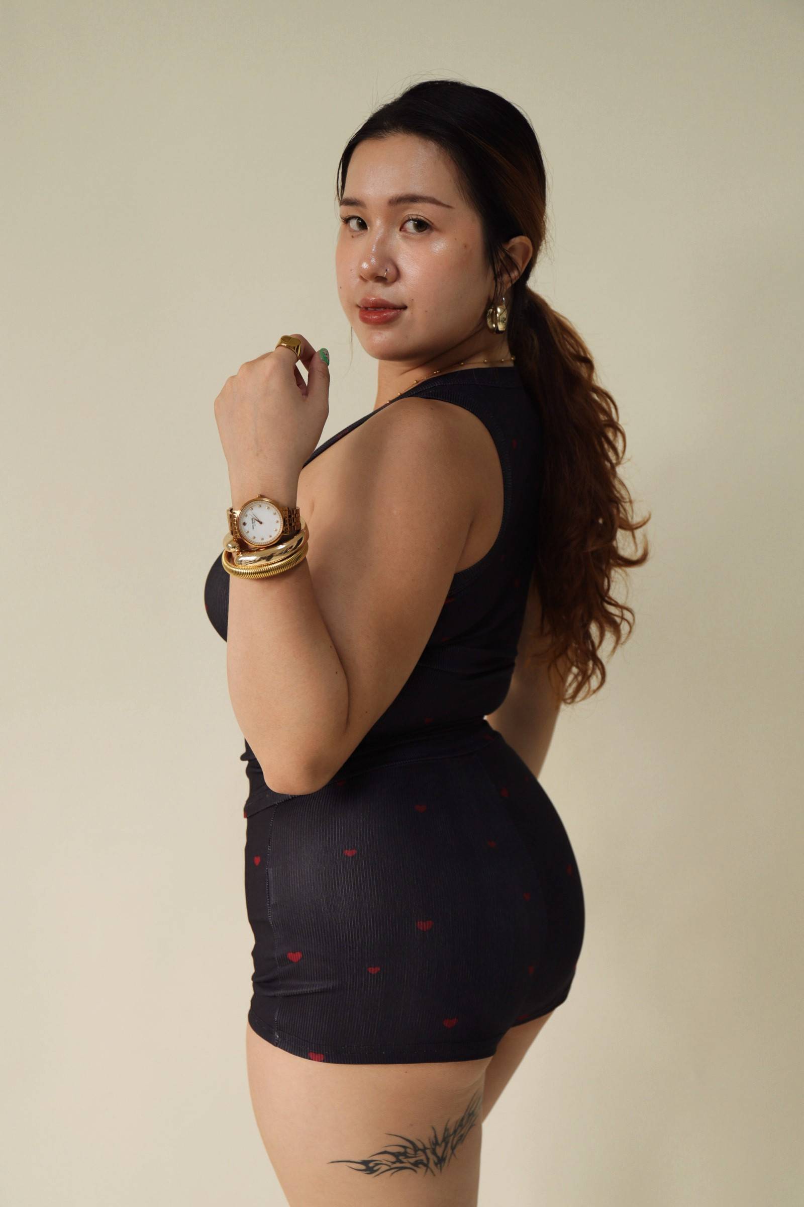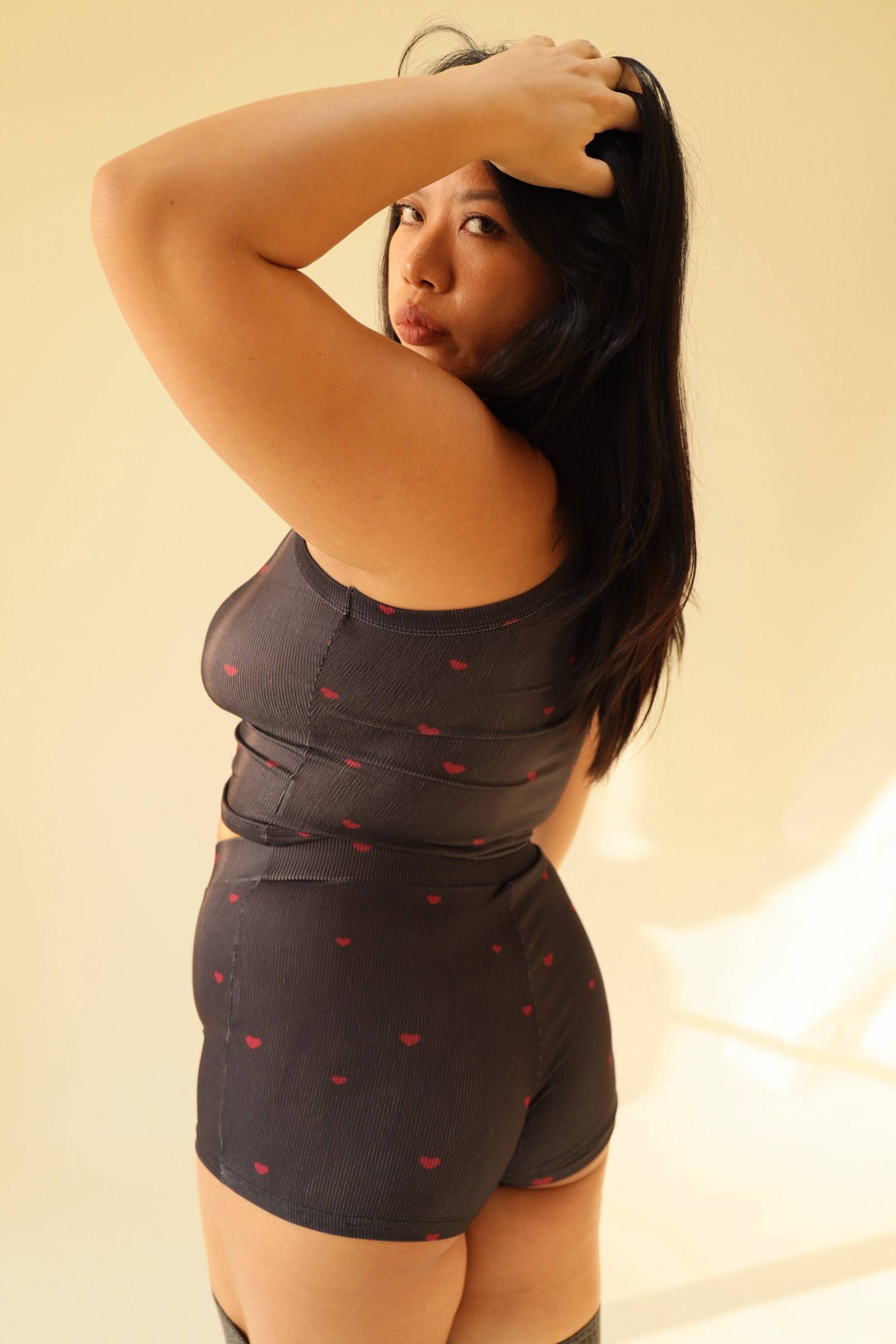 可愛愛心兩件式居家套裝-黑,LEILASHAW 你的美不該被數字綁架