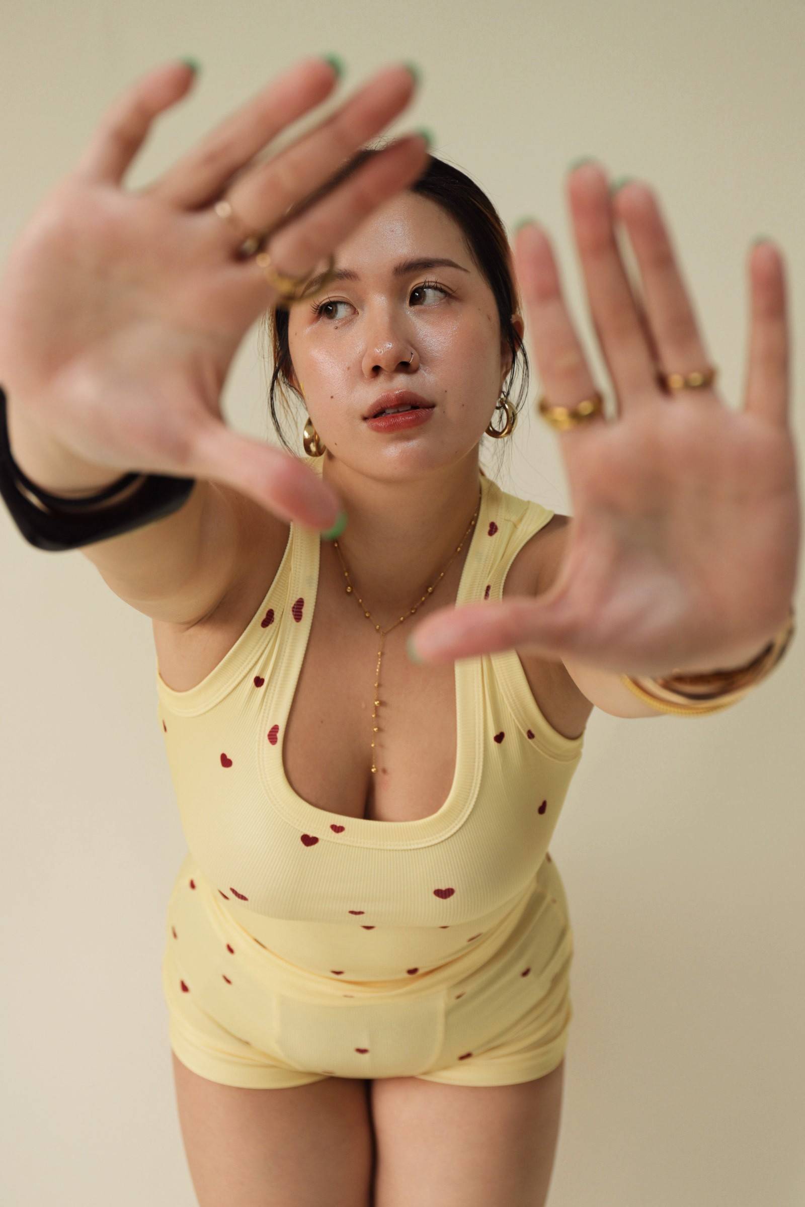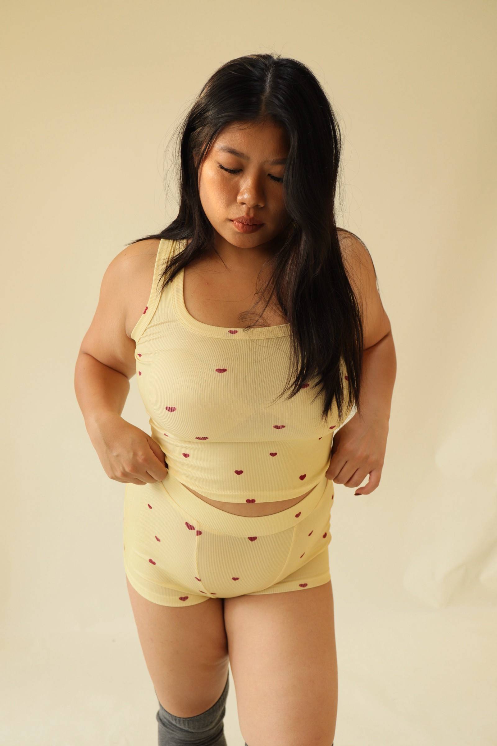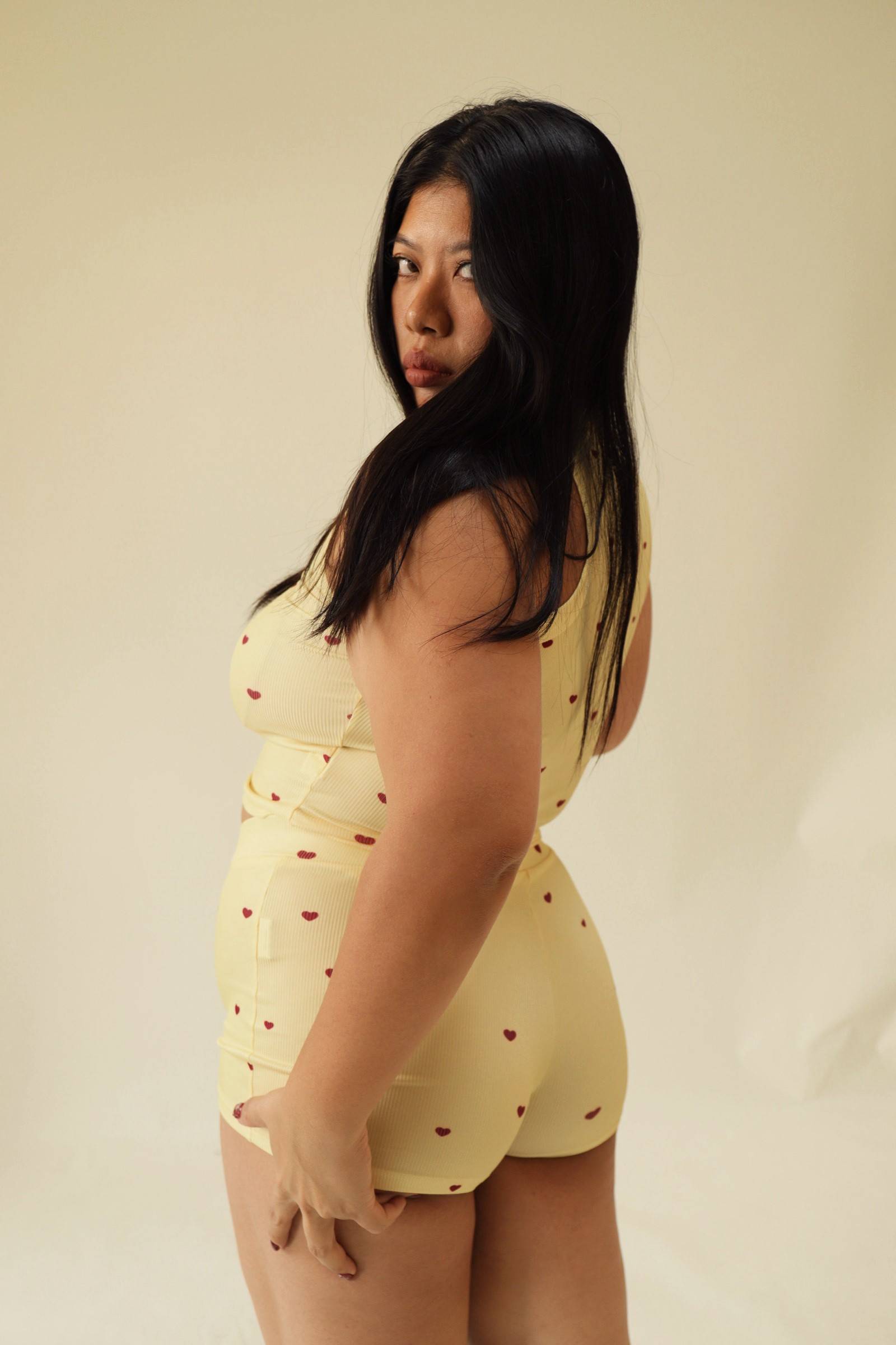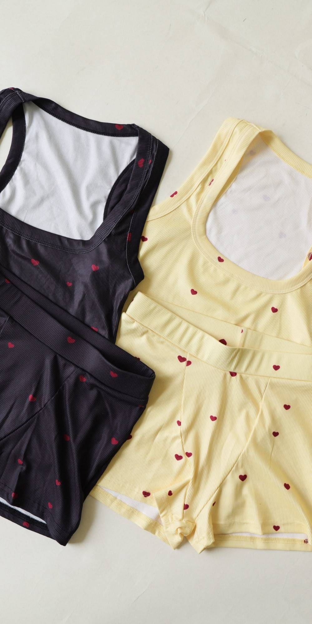 可愛愛心兩件式居家套裝-黃,LEILASHAW 你的美不該被數字綁架