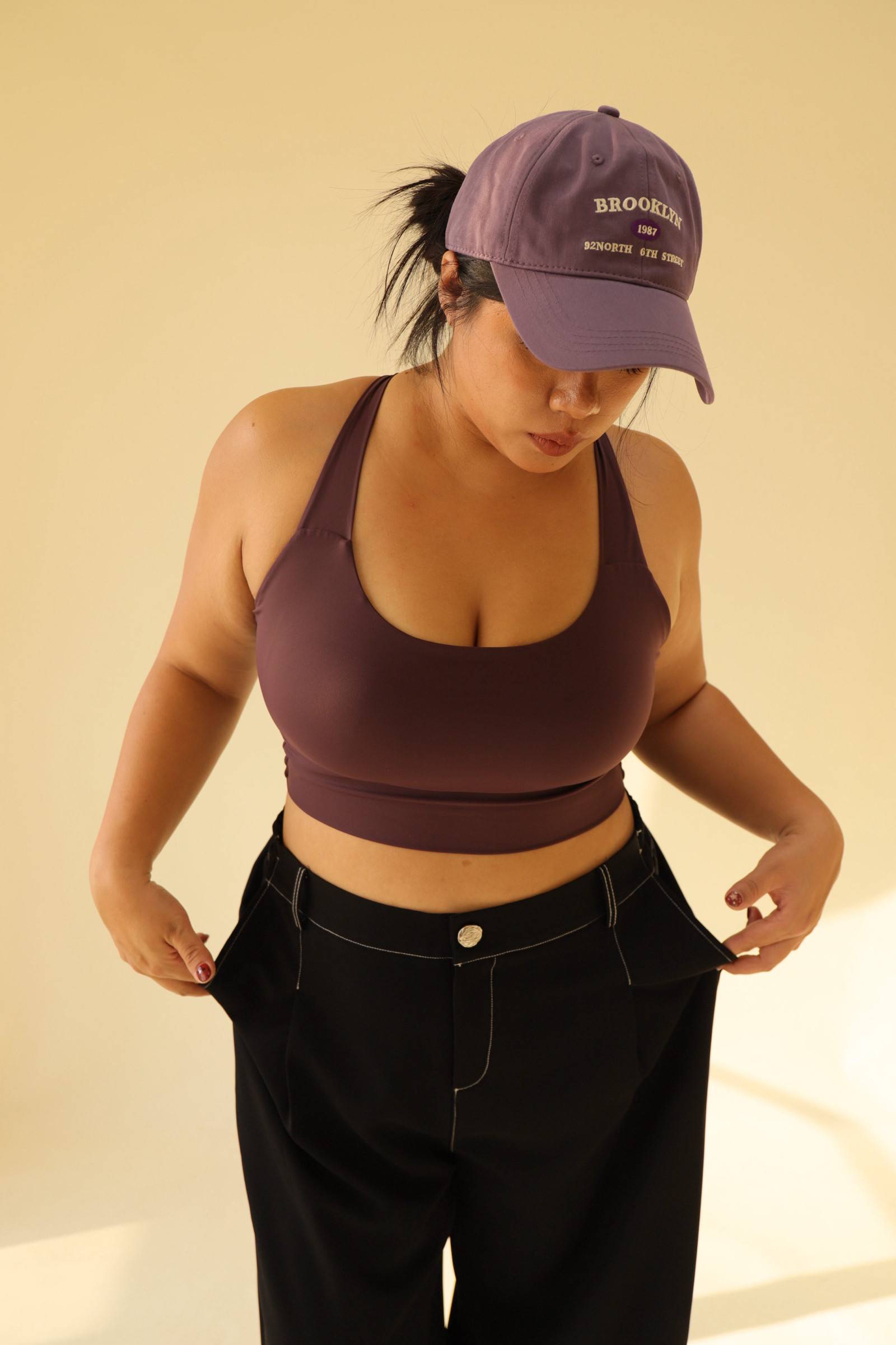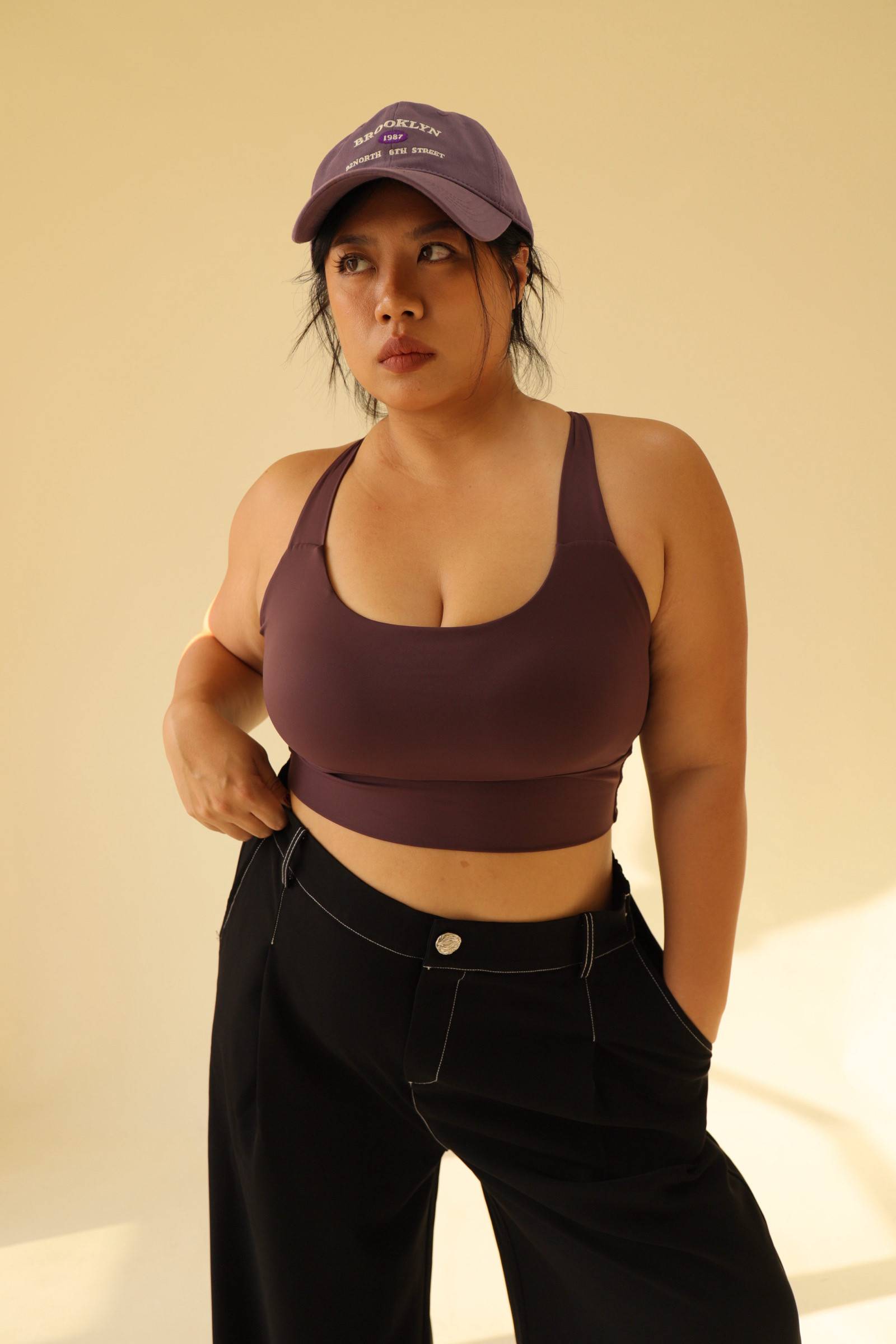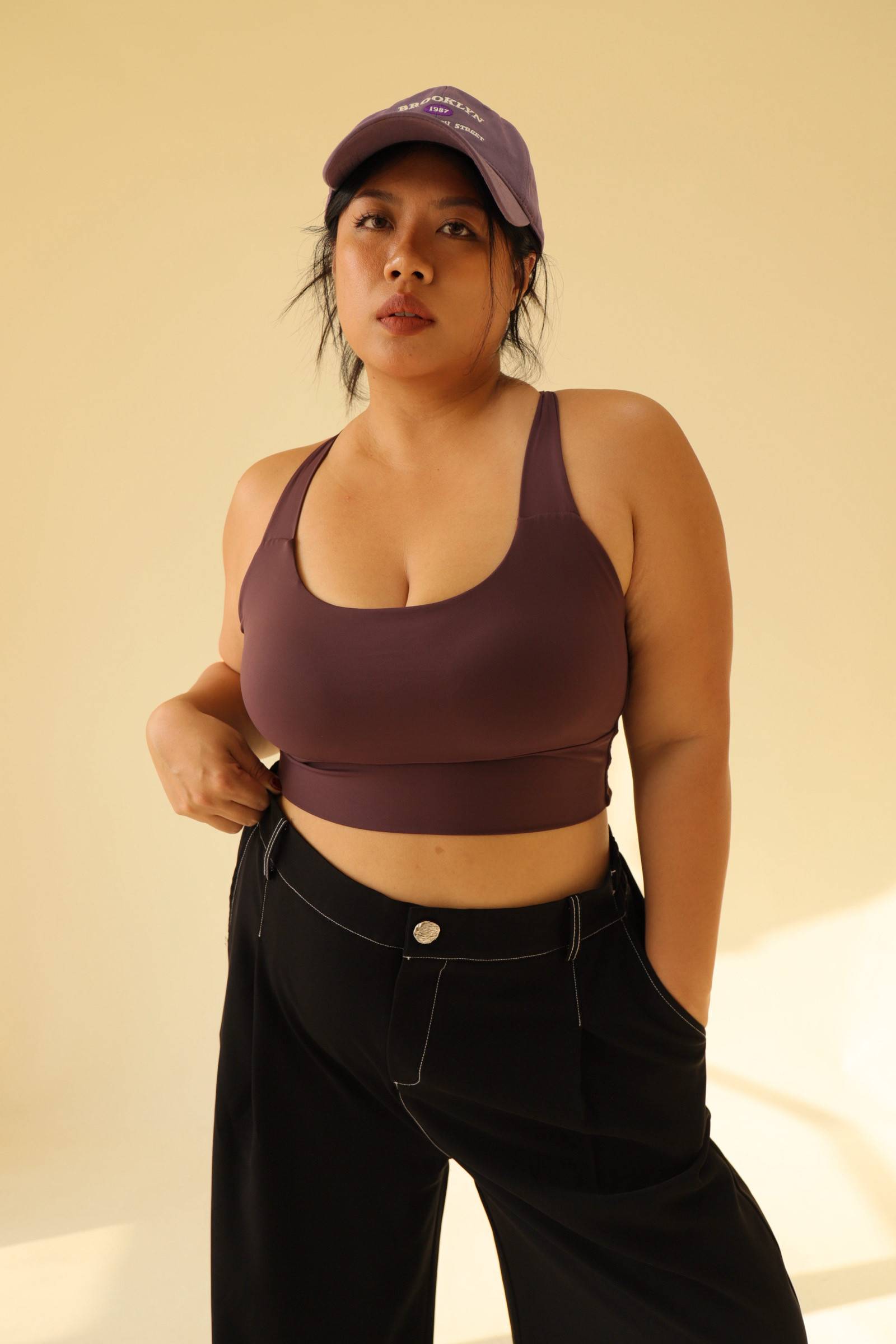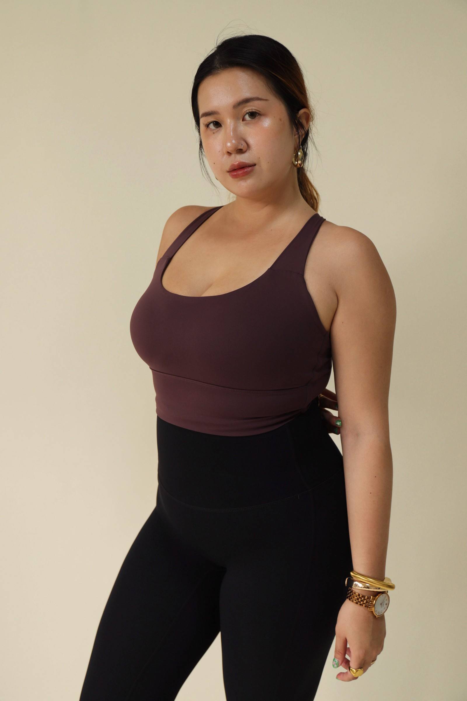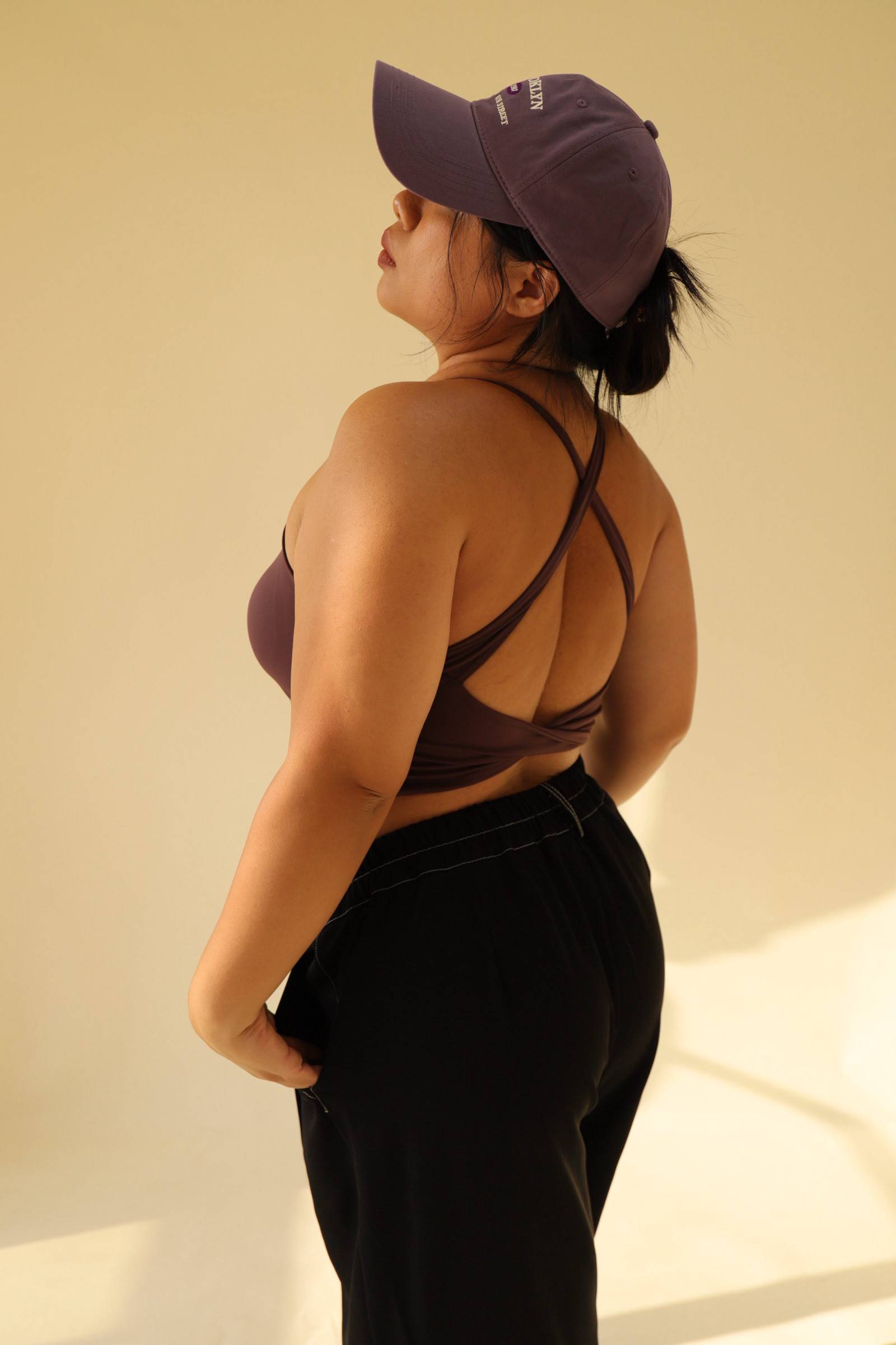 寬肩無勒感扭結美背運動內衣-紫,LEILASHAW 你的美不該被數字綁架