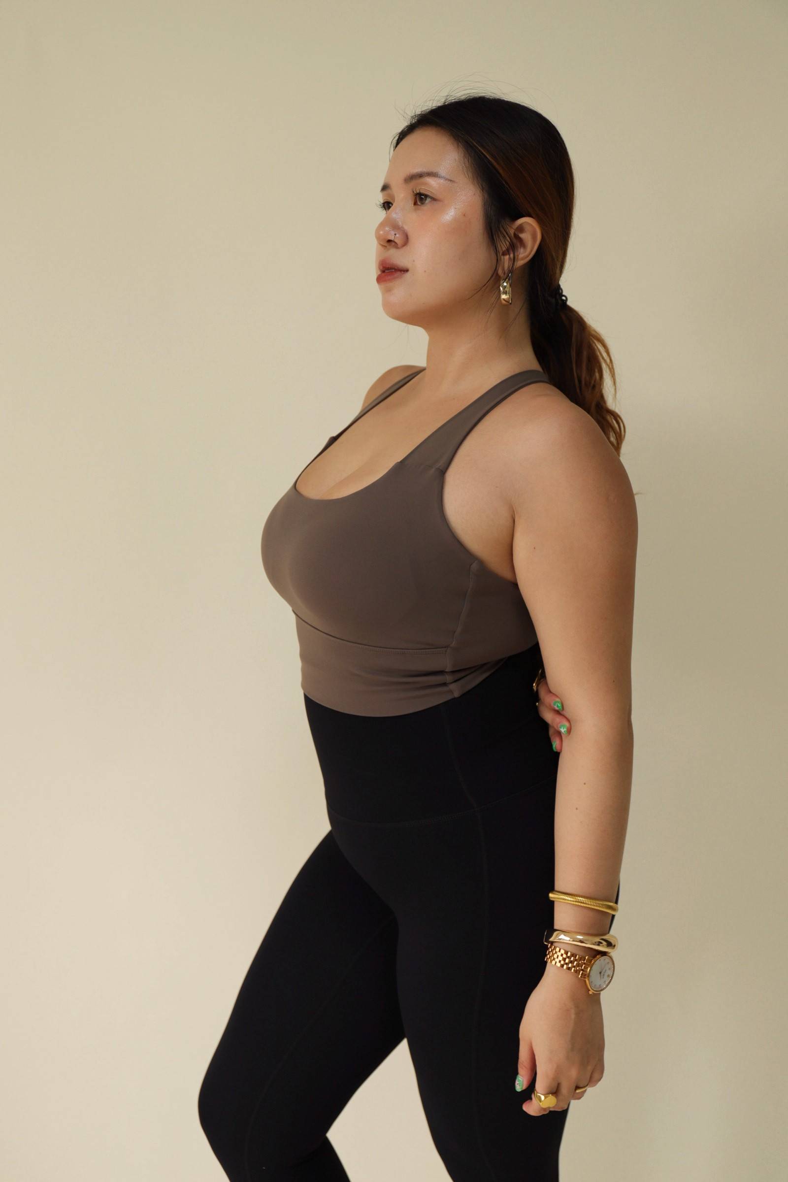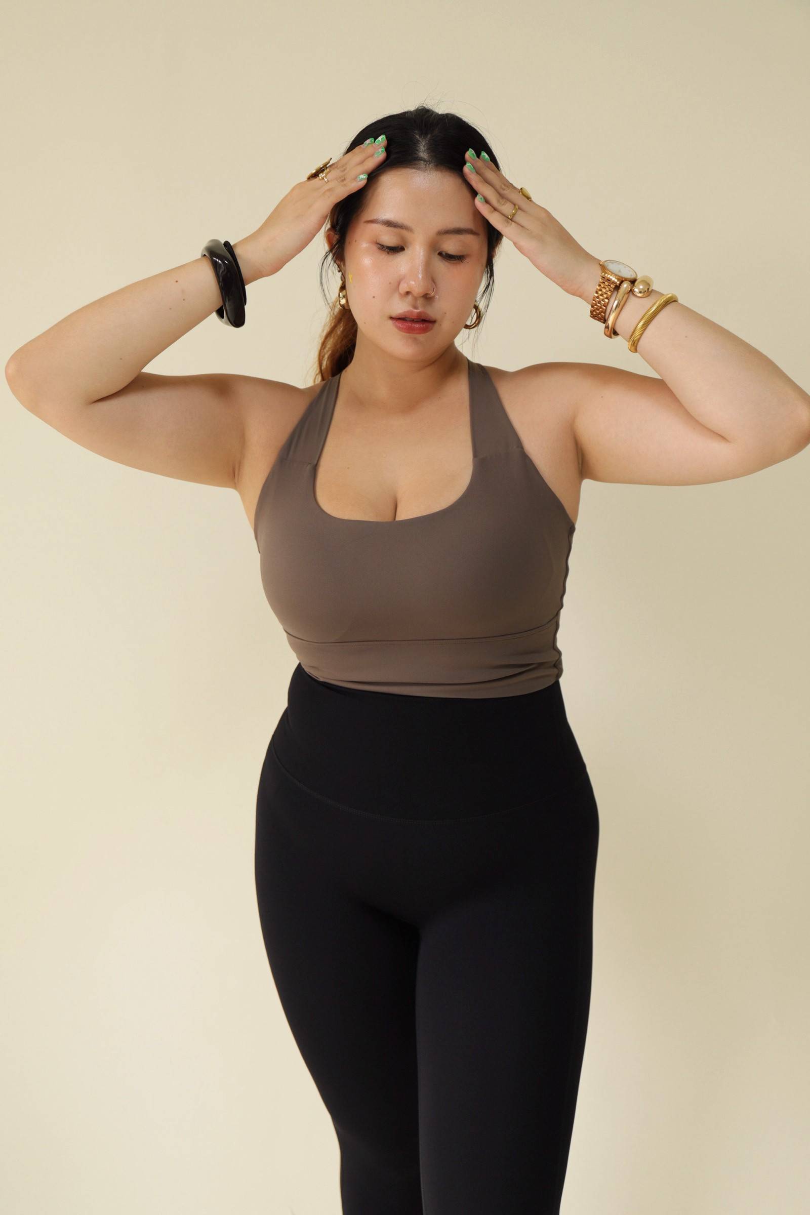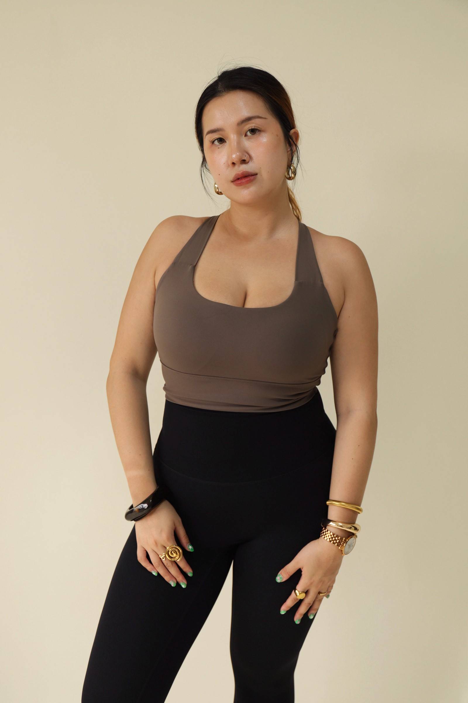 寬肩無勒感扭結美背運動內衣-咖,LEILASHAW 你的美不該被數字綁架
