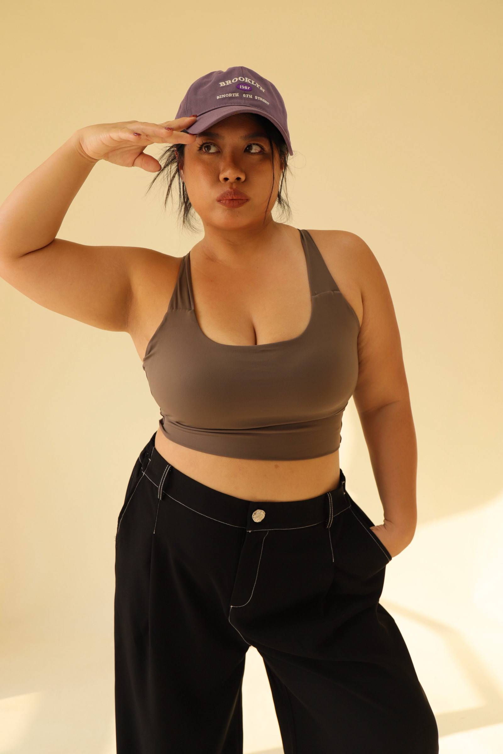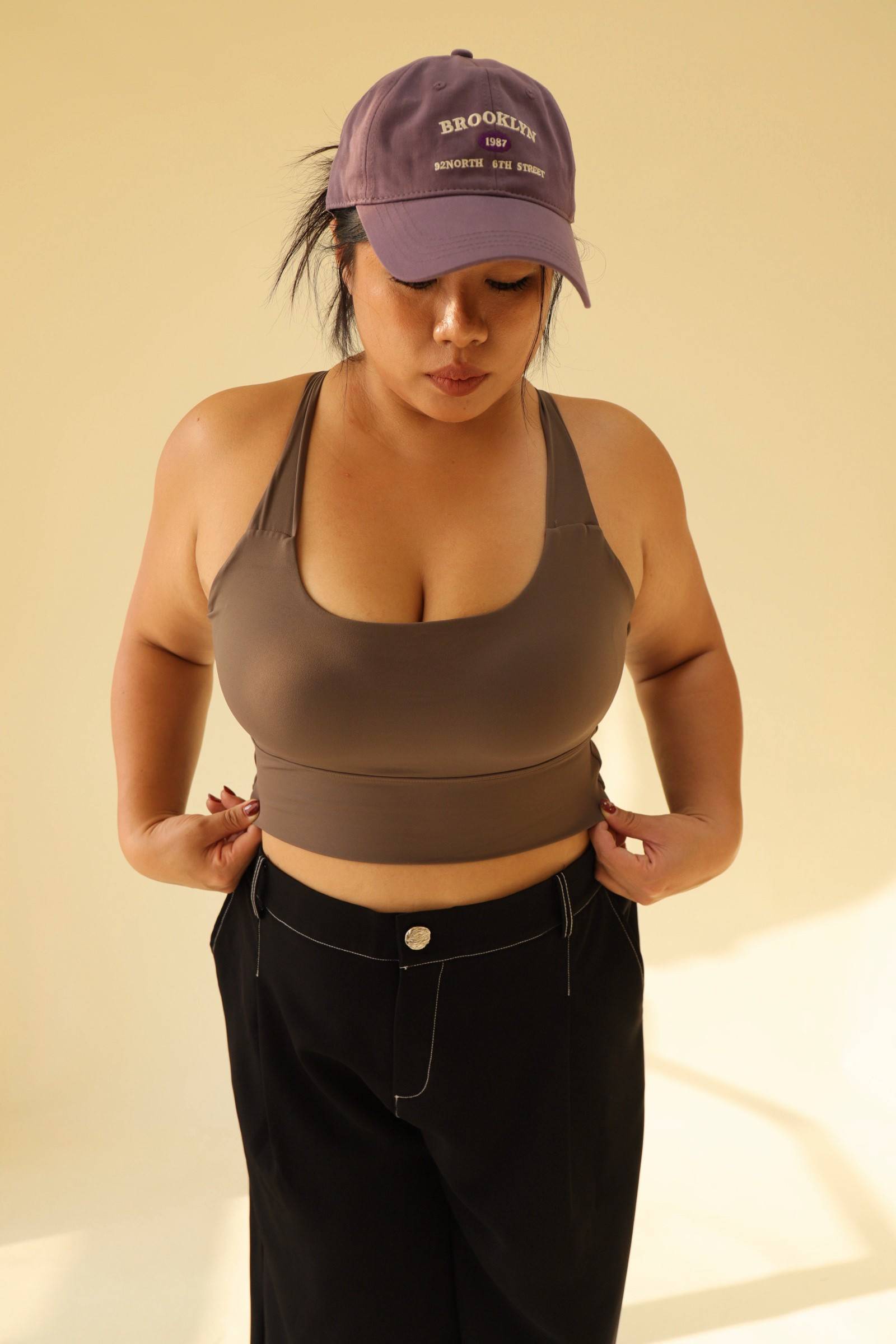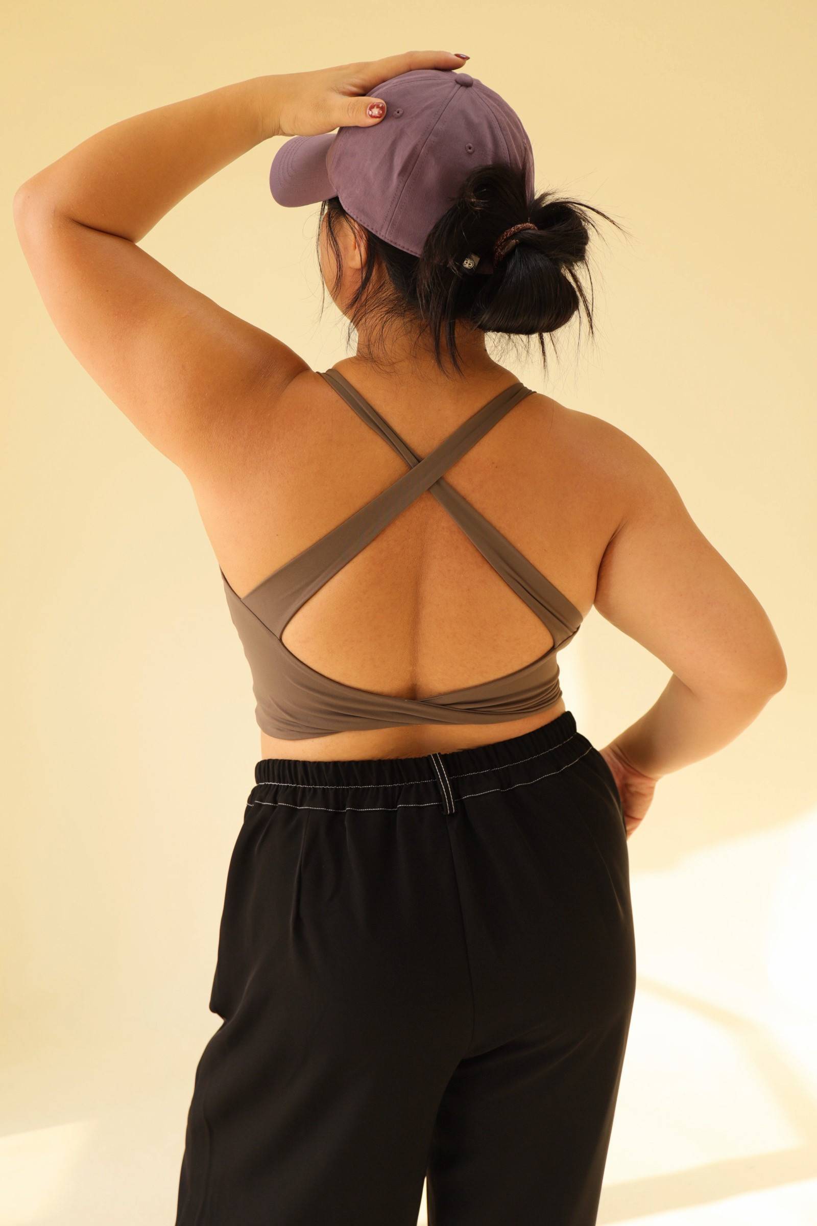 寬肩無勒感扭結美背運動內衣-咖,LEILASHAW 你的美不該被數字綁架