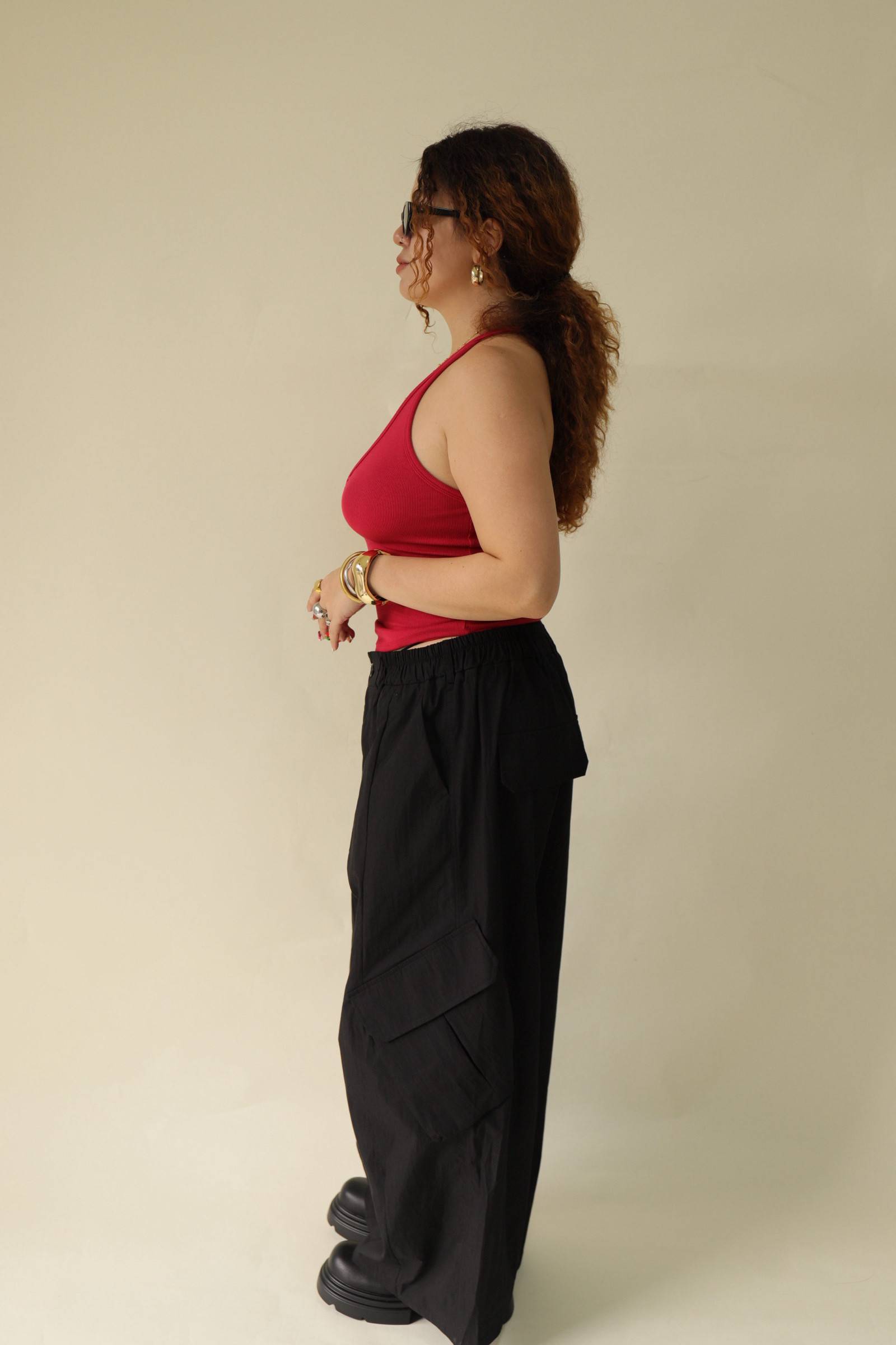 【EASE】大口袋寬鬆工裝褲(黑),LEILASHAW 你的美不該被數字綁架