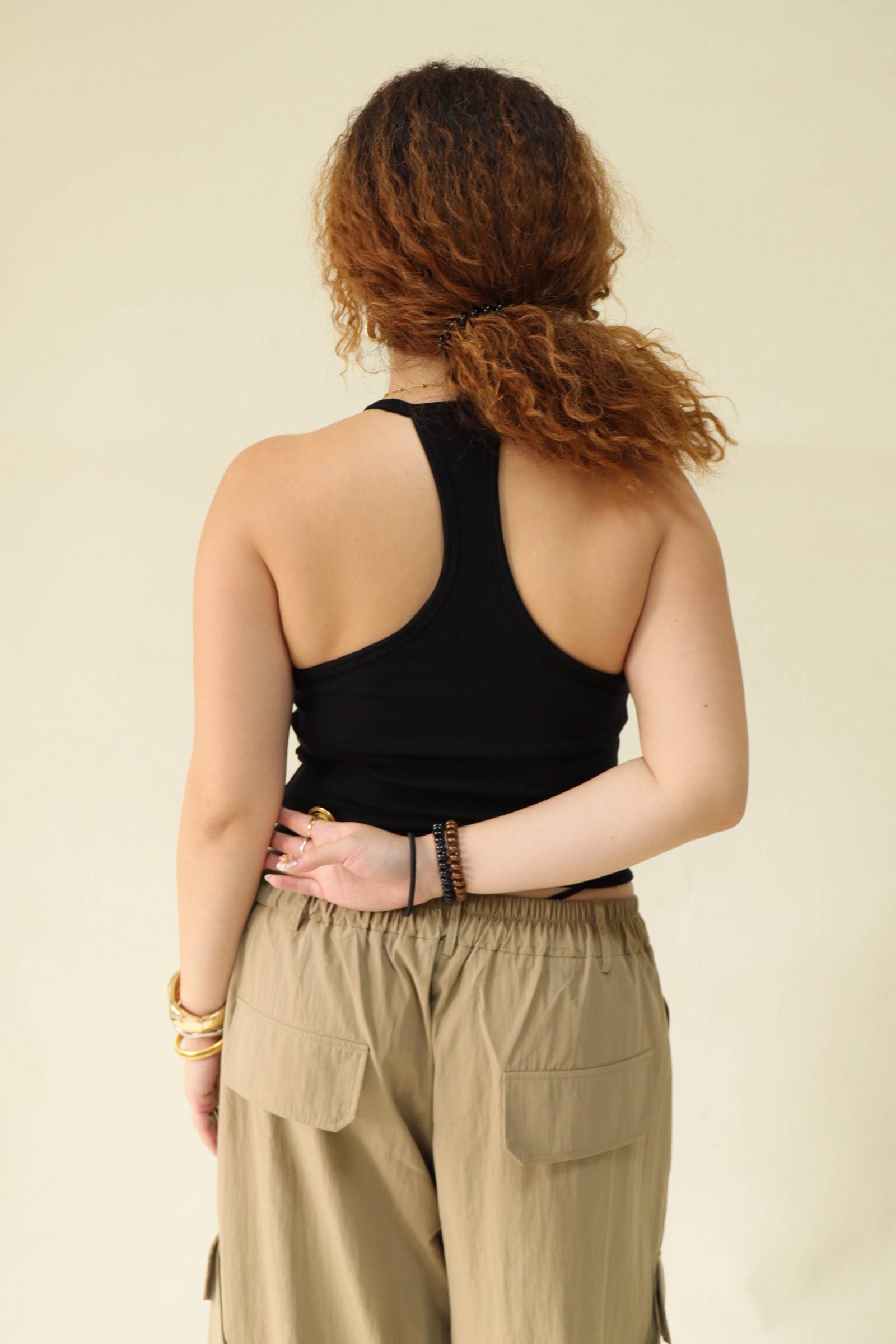 大鏤空掛脖彈力背心(黑)
