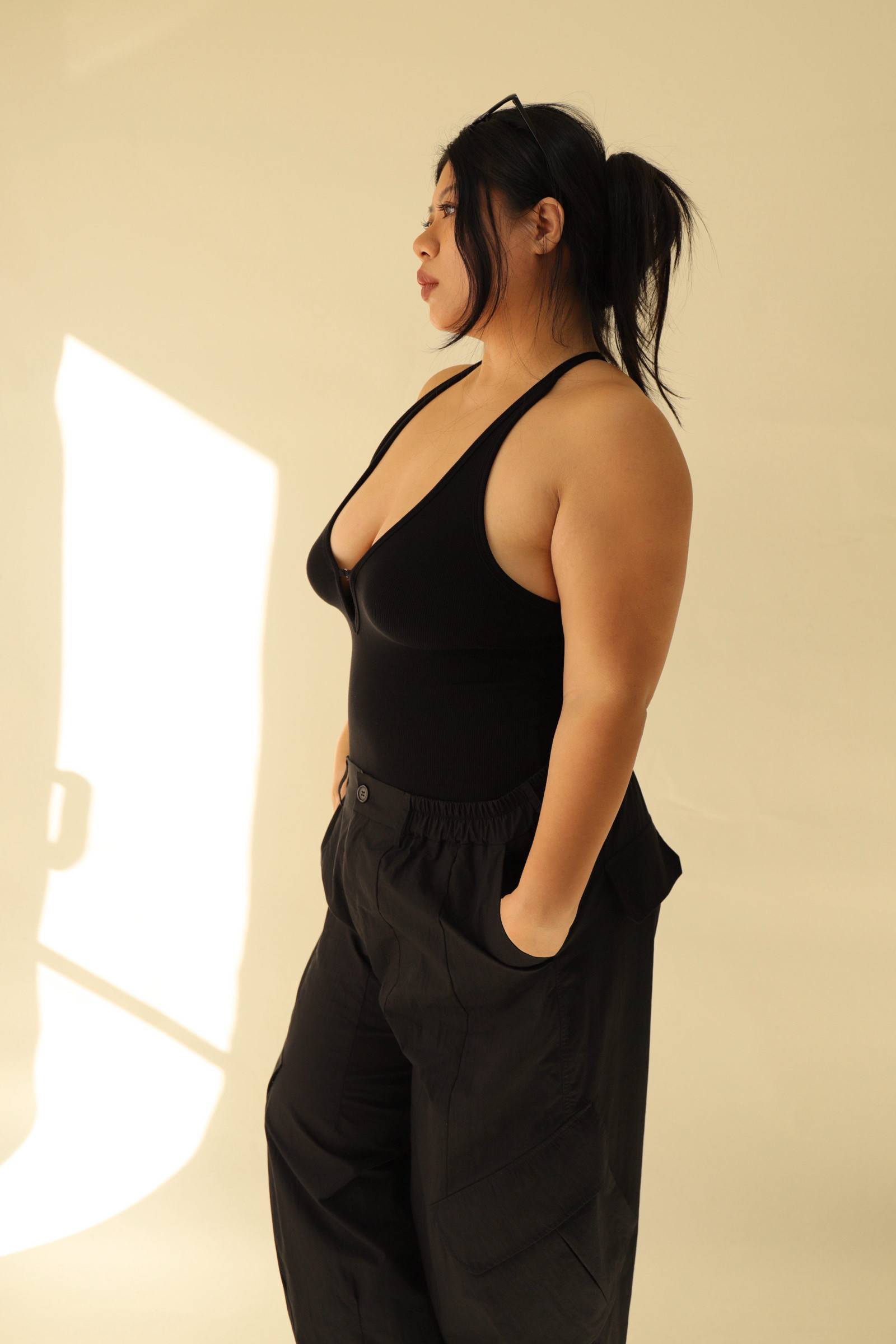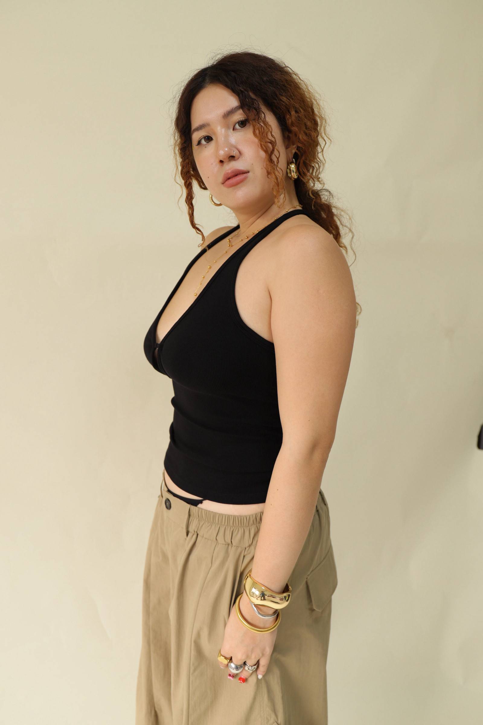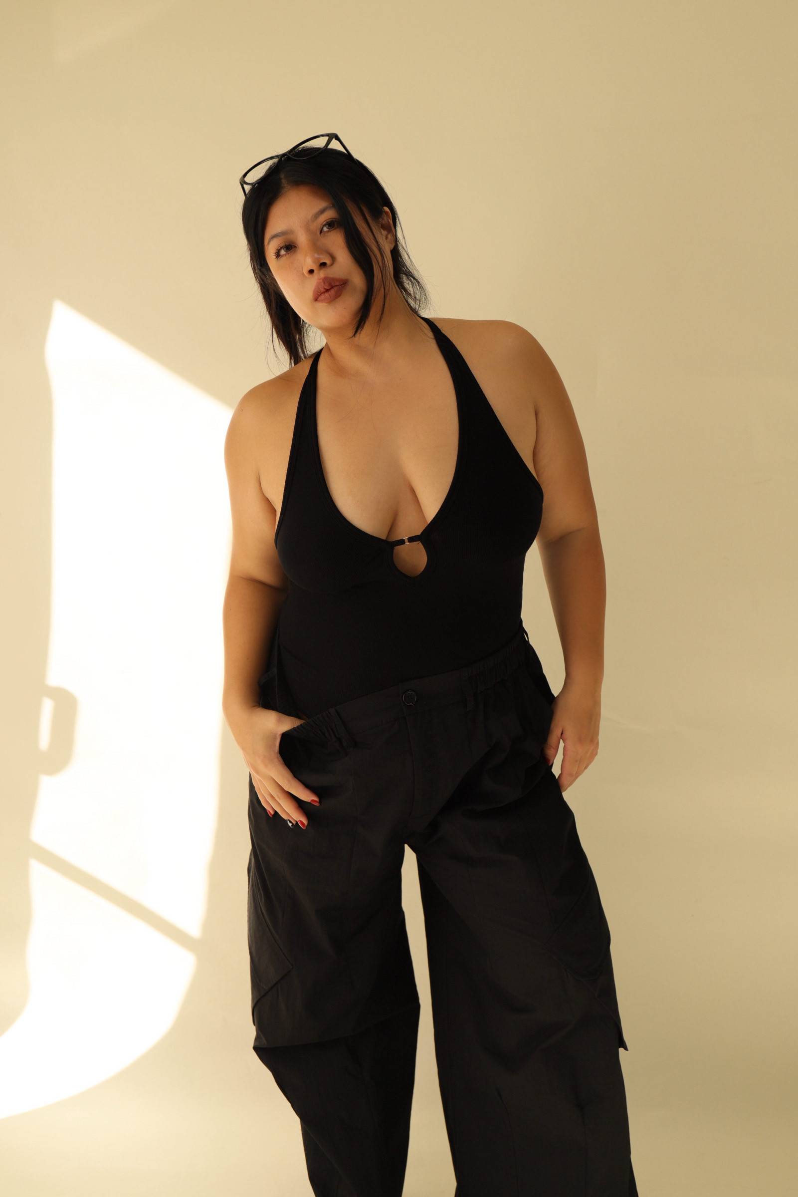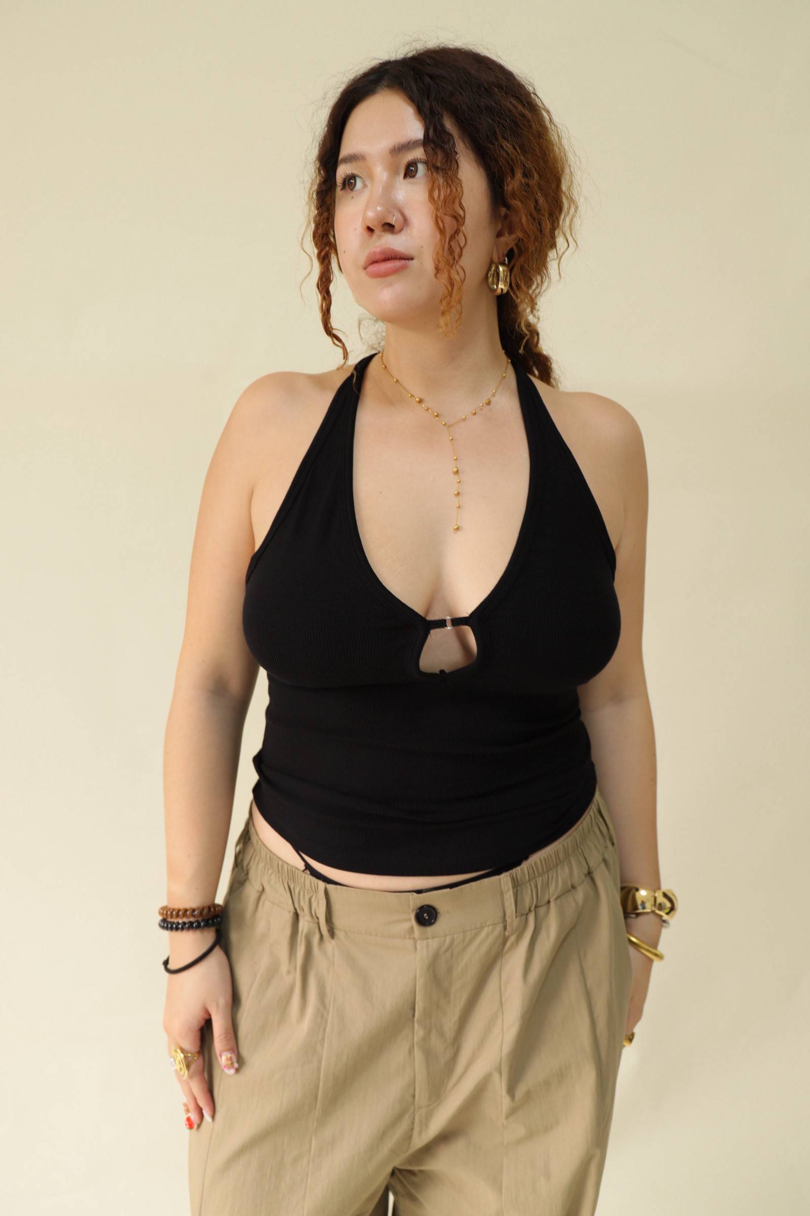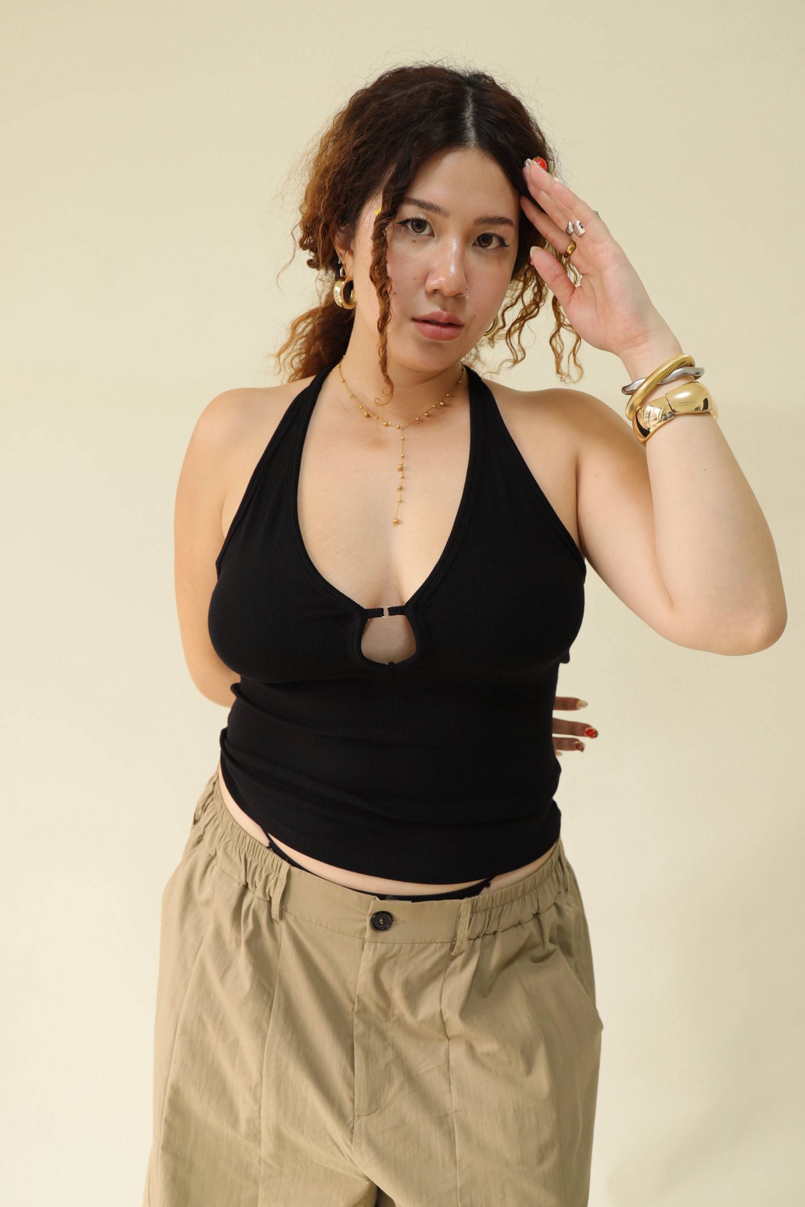 大鏤空掛脖彈力背心(黑),LEILASHAW 你的美不該被數字綁架