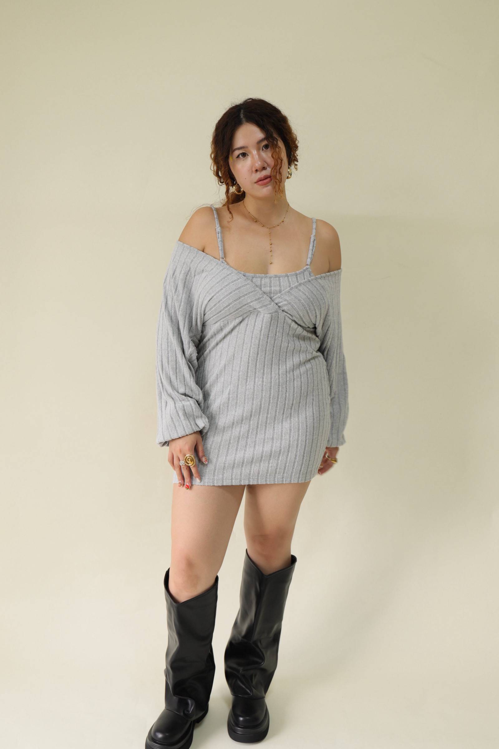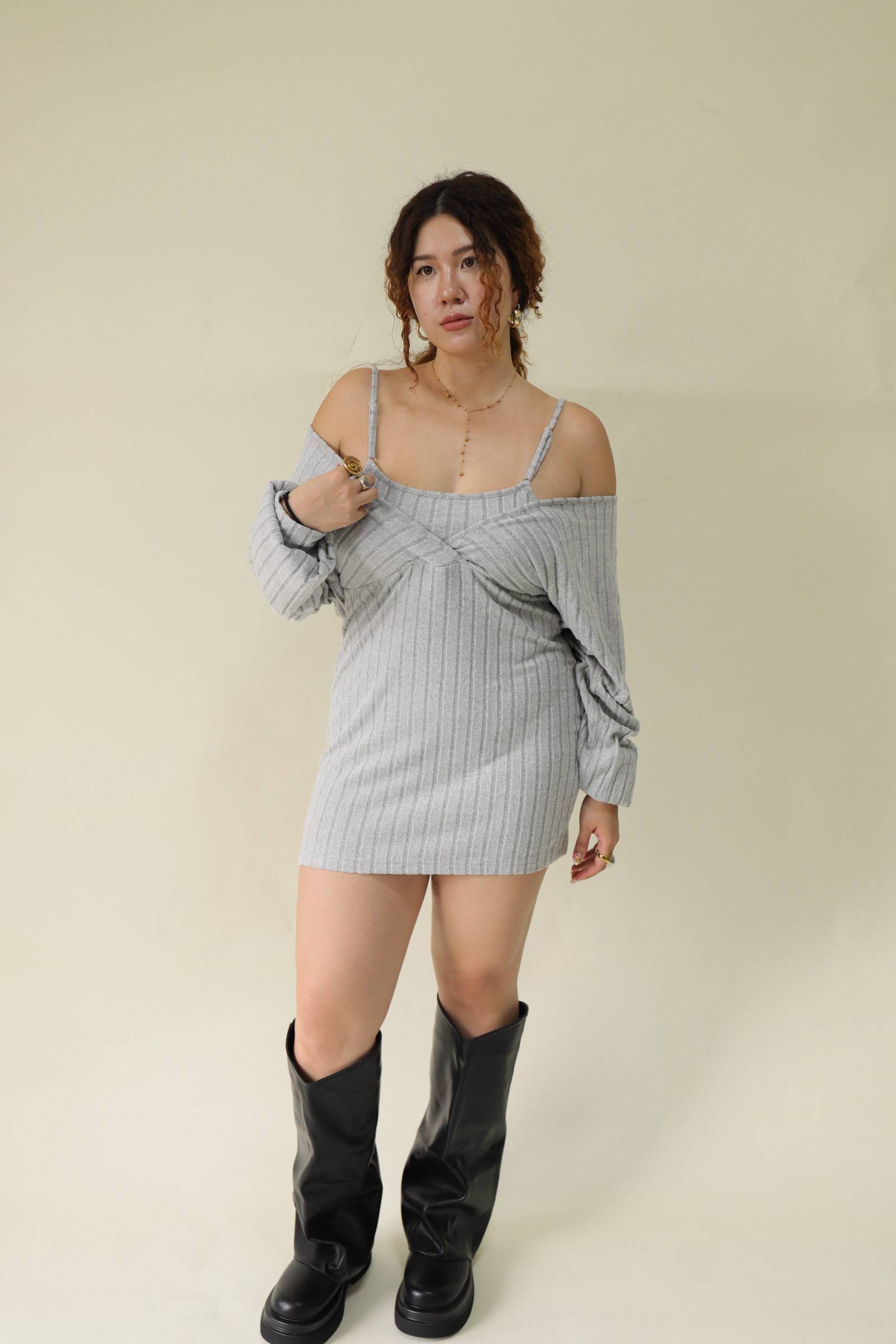純慾感假兩件顯瘦洋裝,LEILASHAW 你的美不該被數字綁架