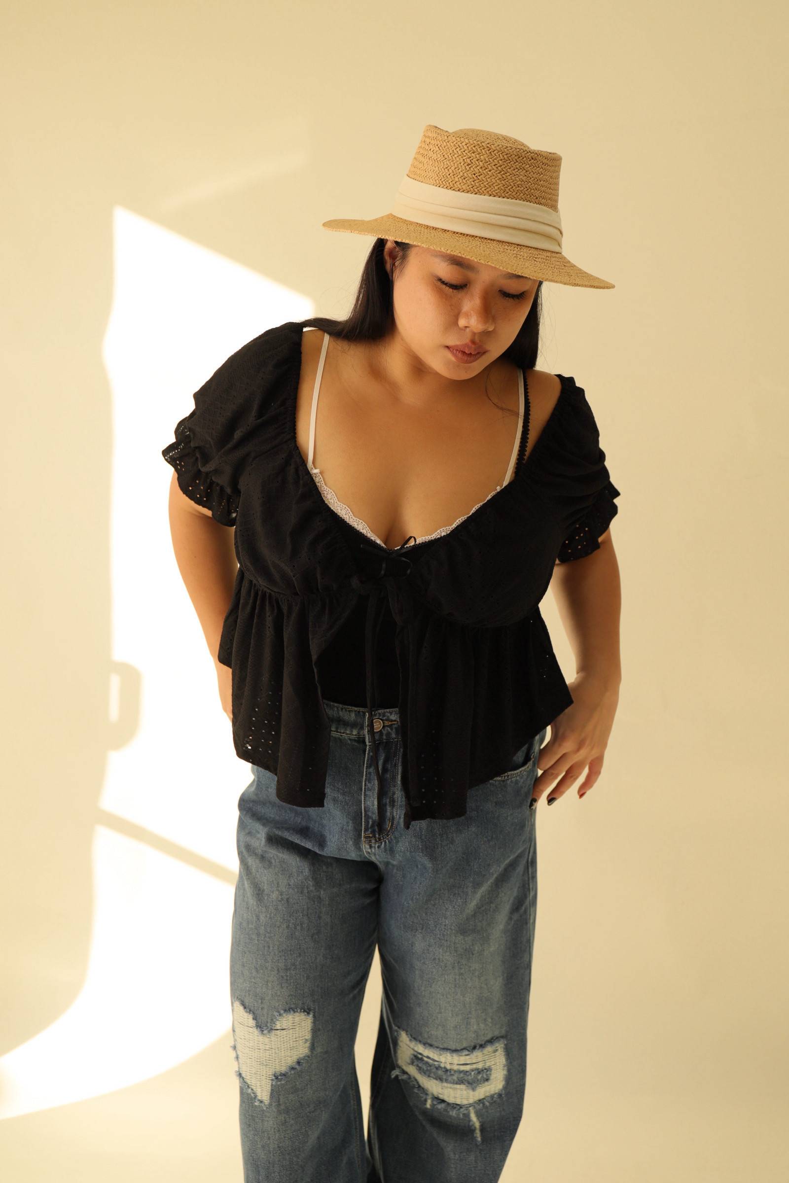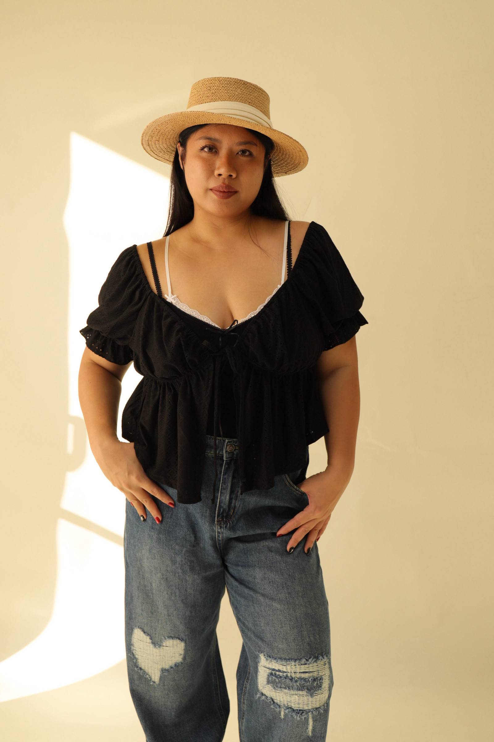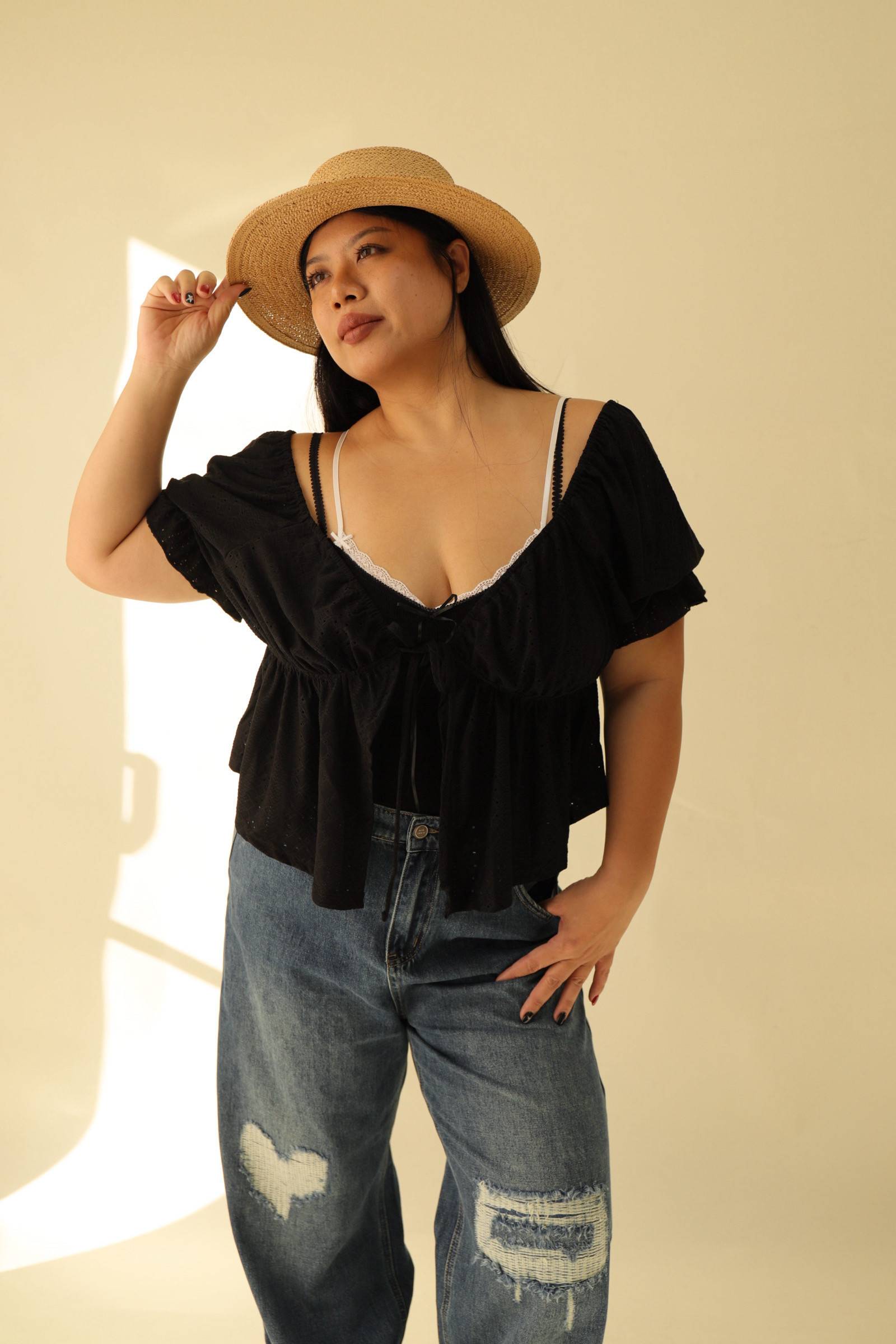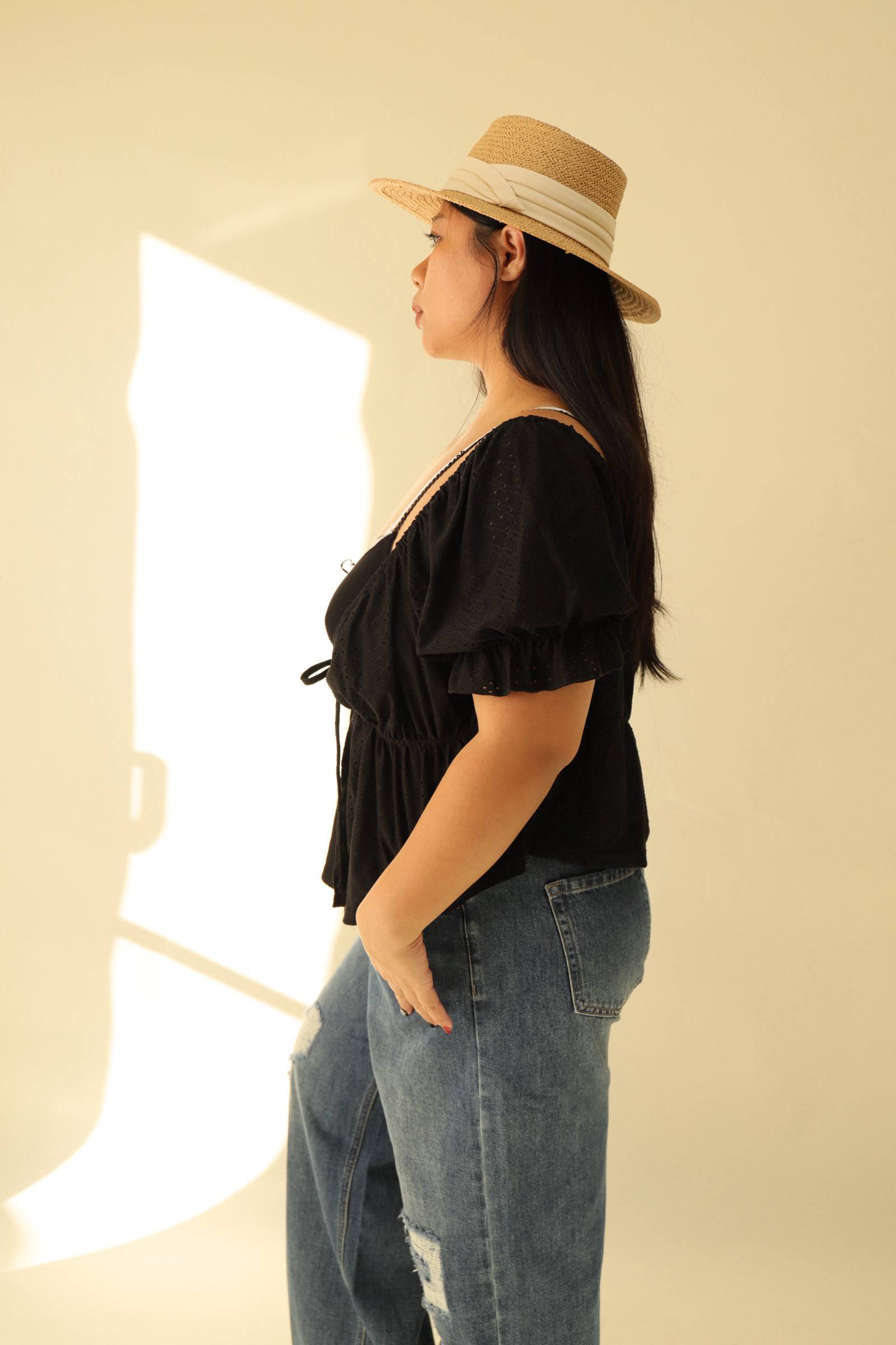 雕花荷葉邊短袖上衣,LEILASHAW 你的美不該被數字綁架