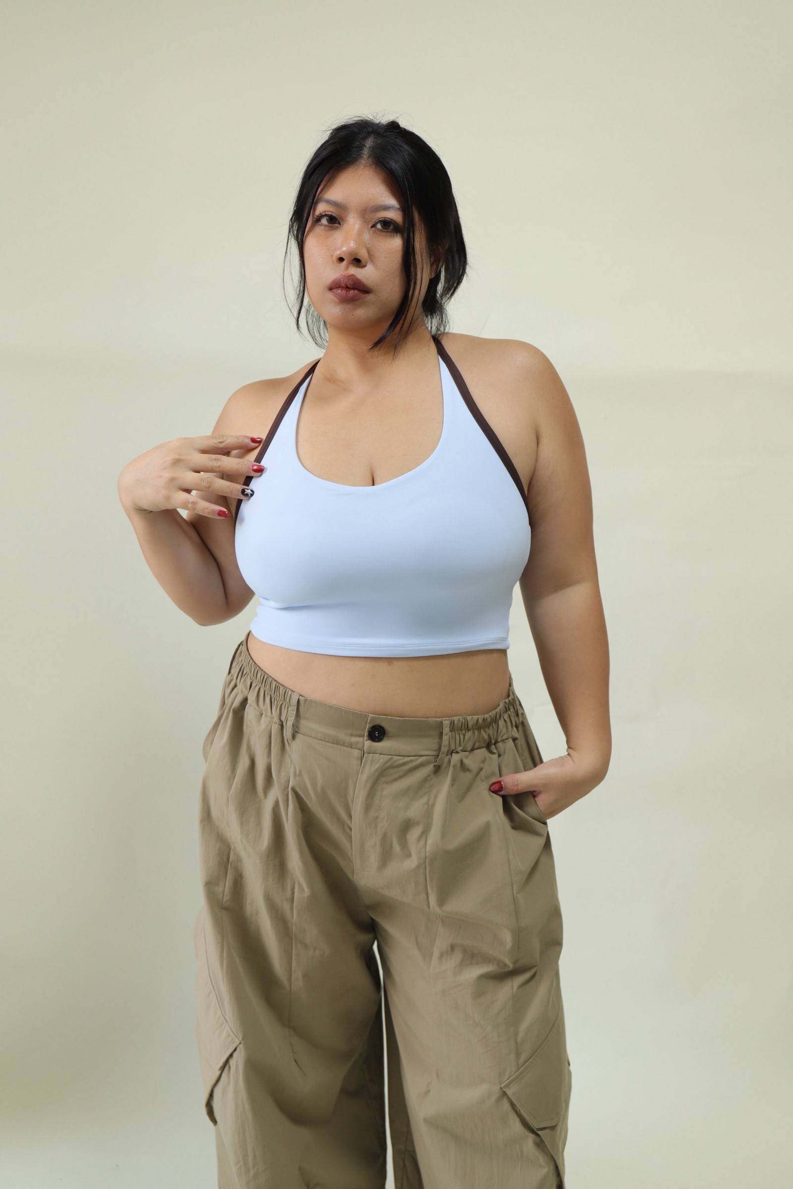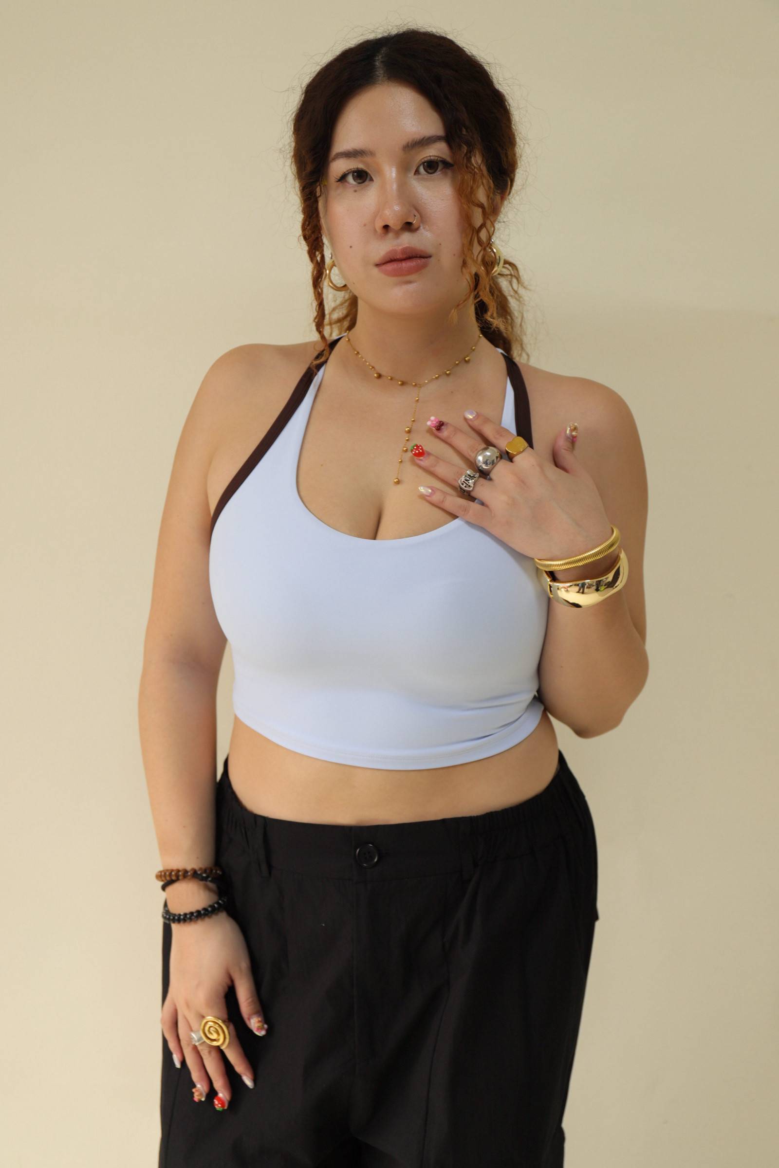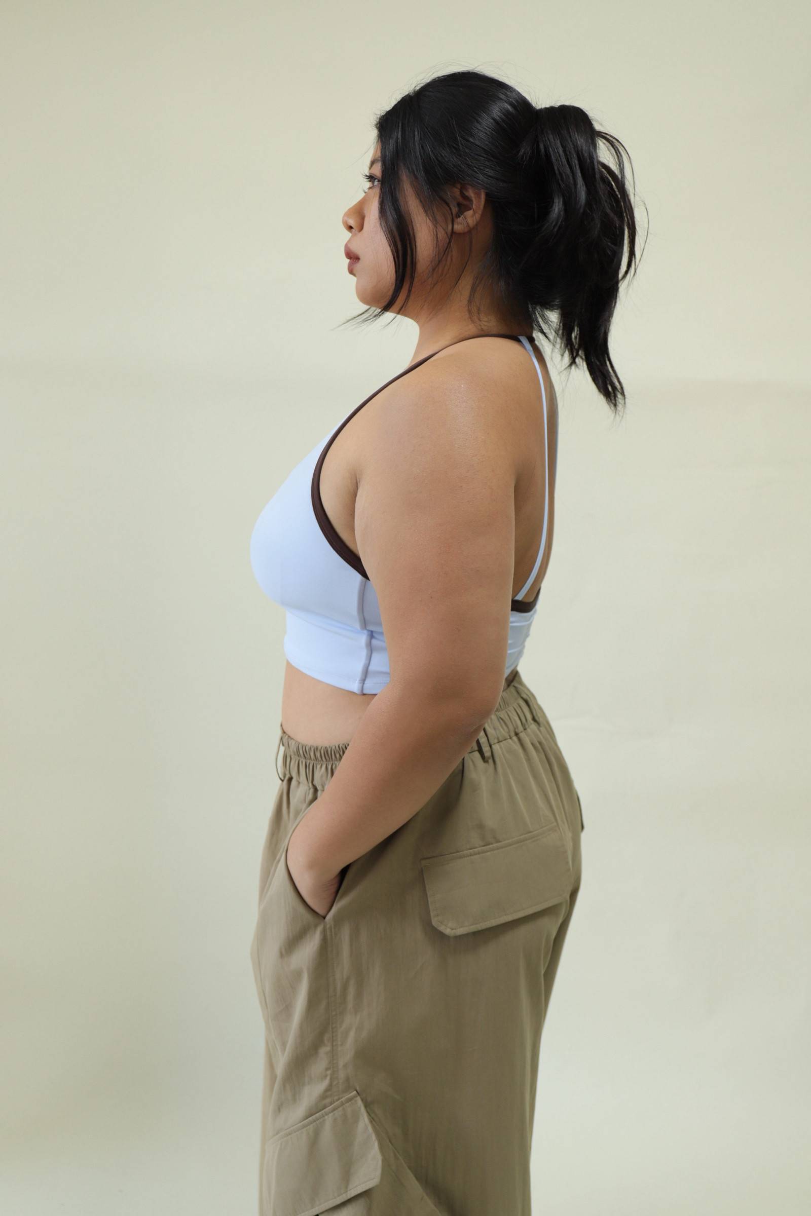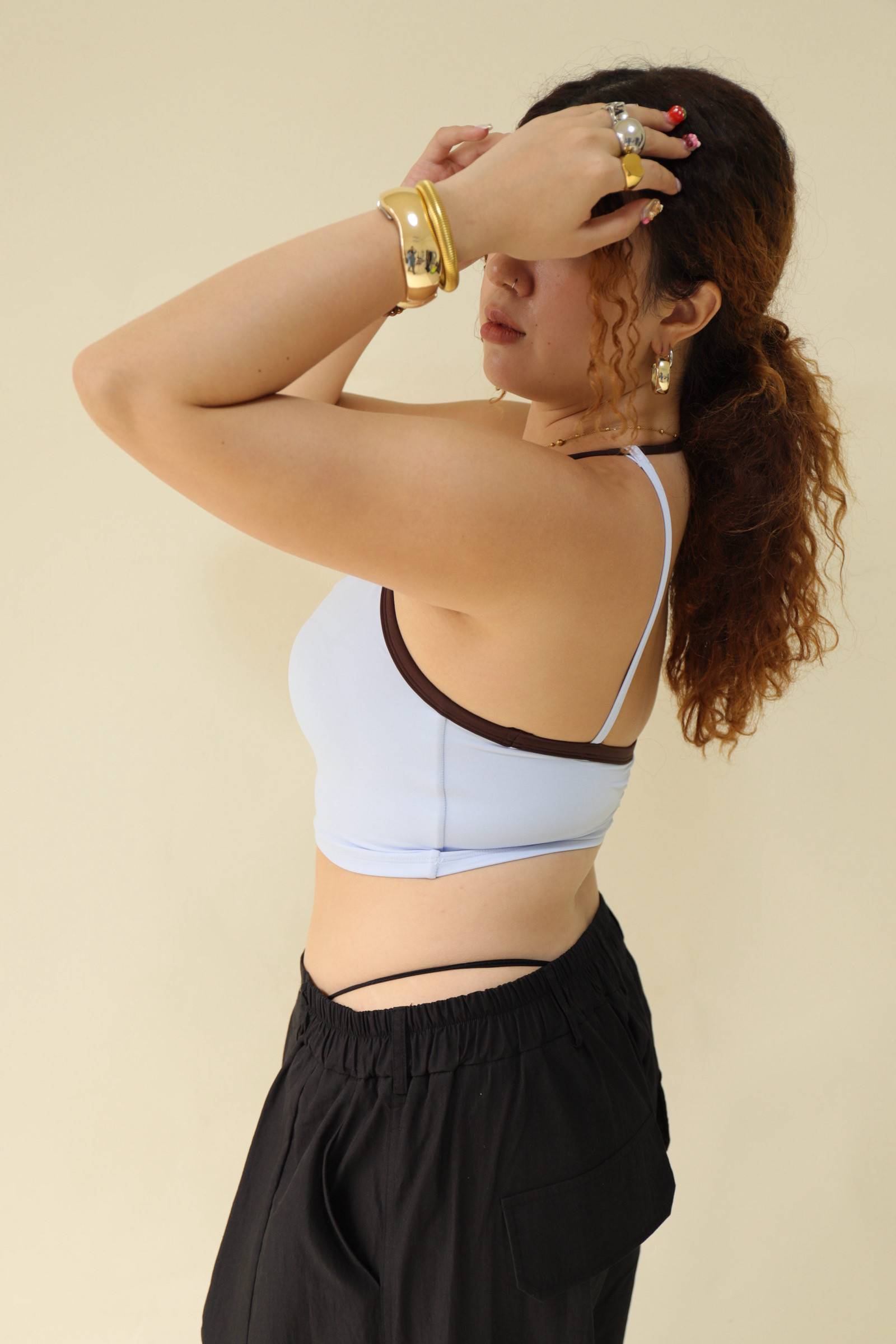 雙色拼接削肩運動內衣-藍,LEILASHAW 你的美不該被數字綁架