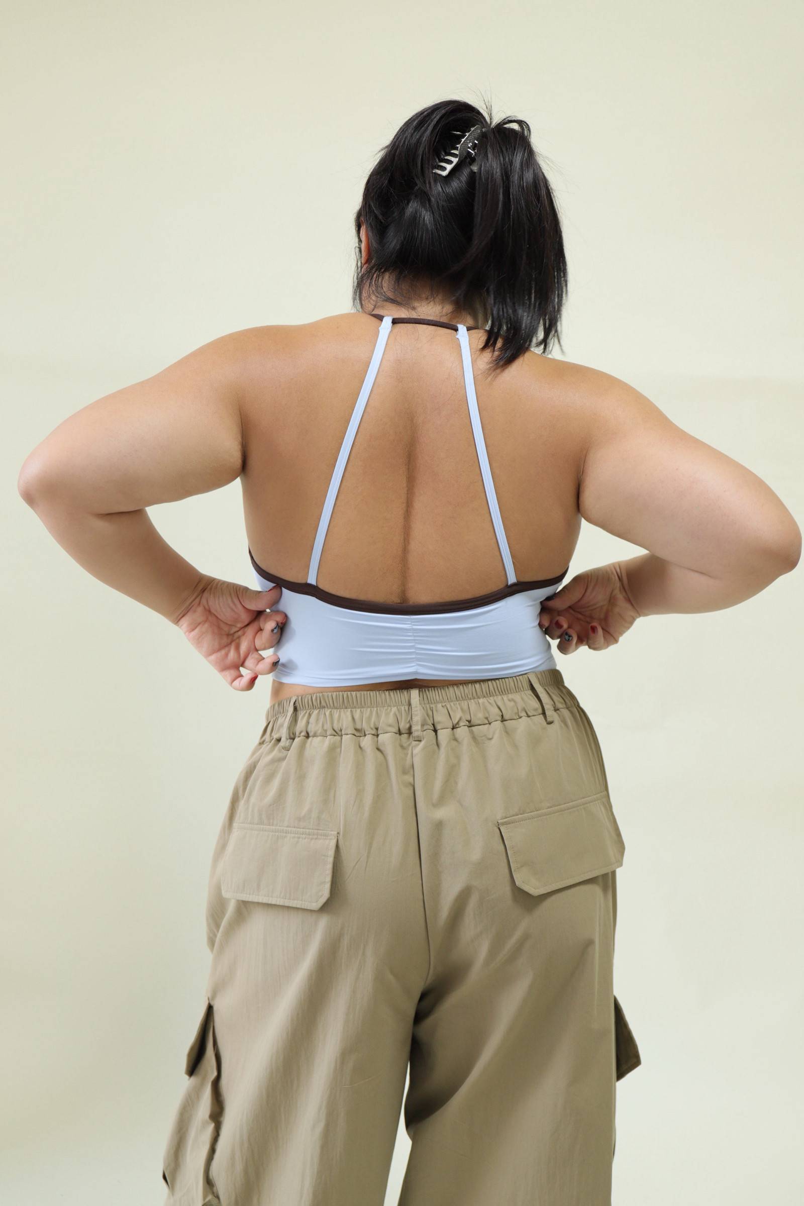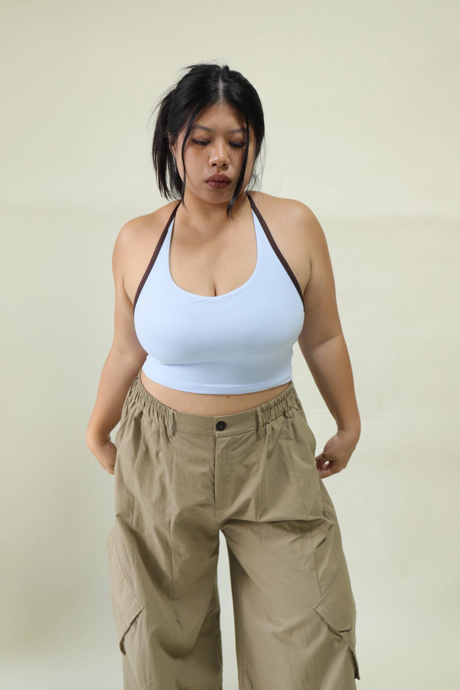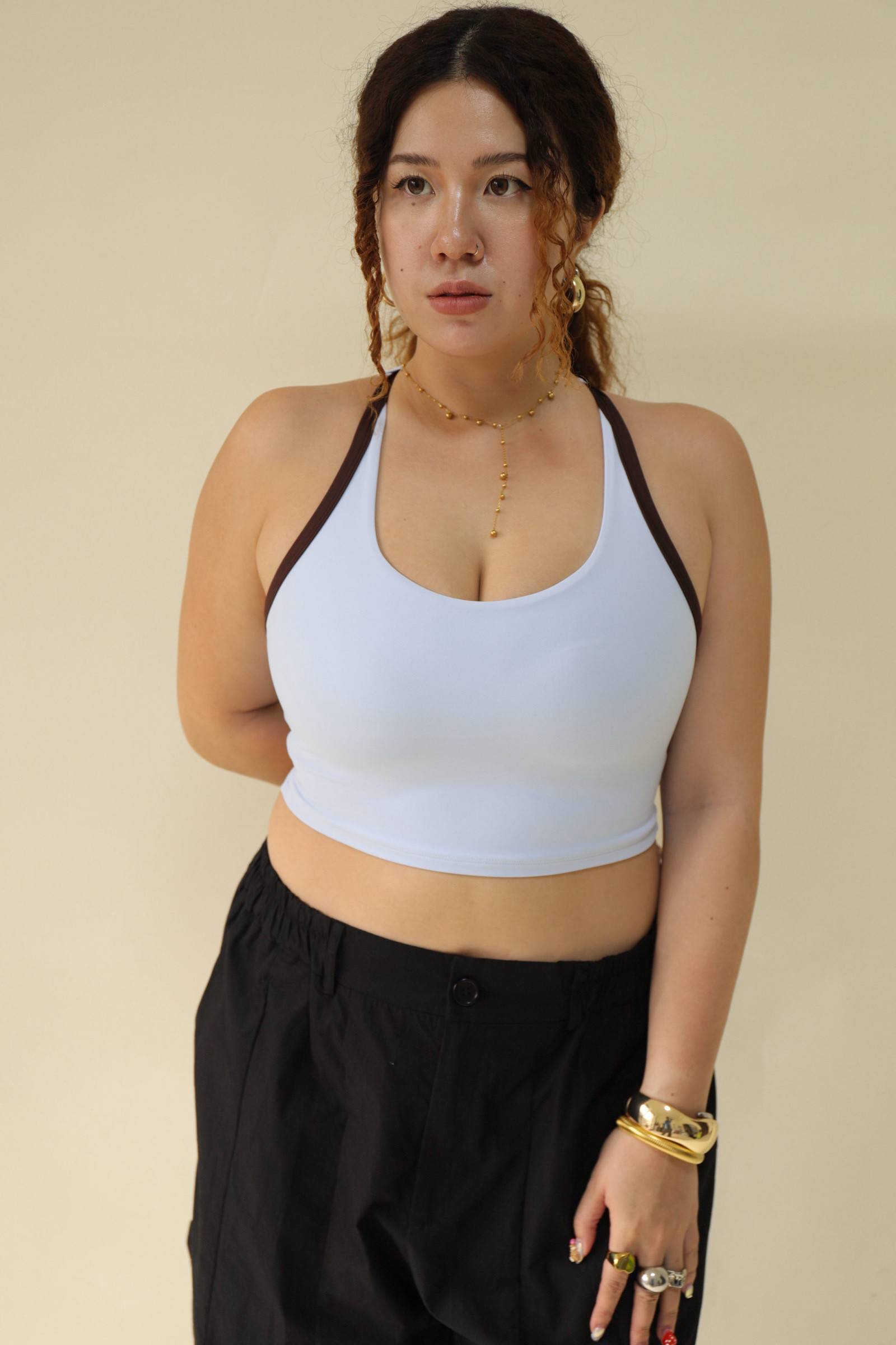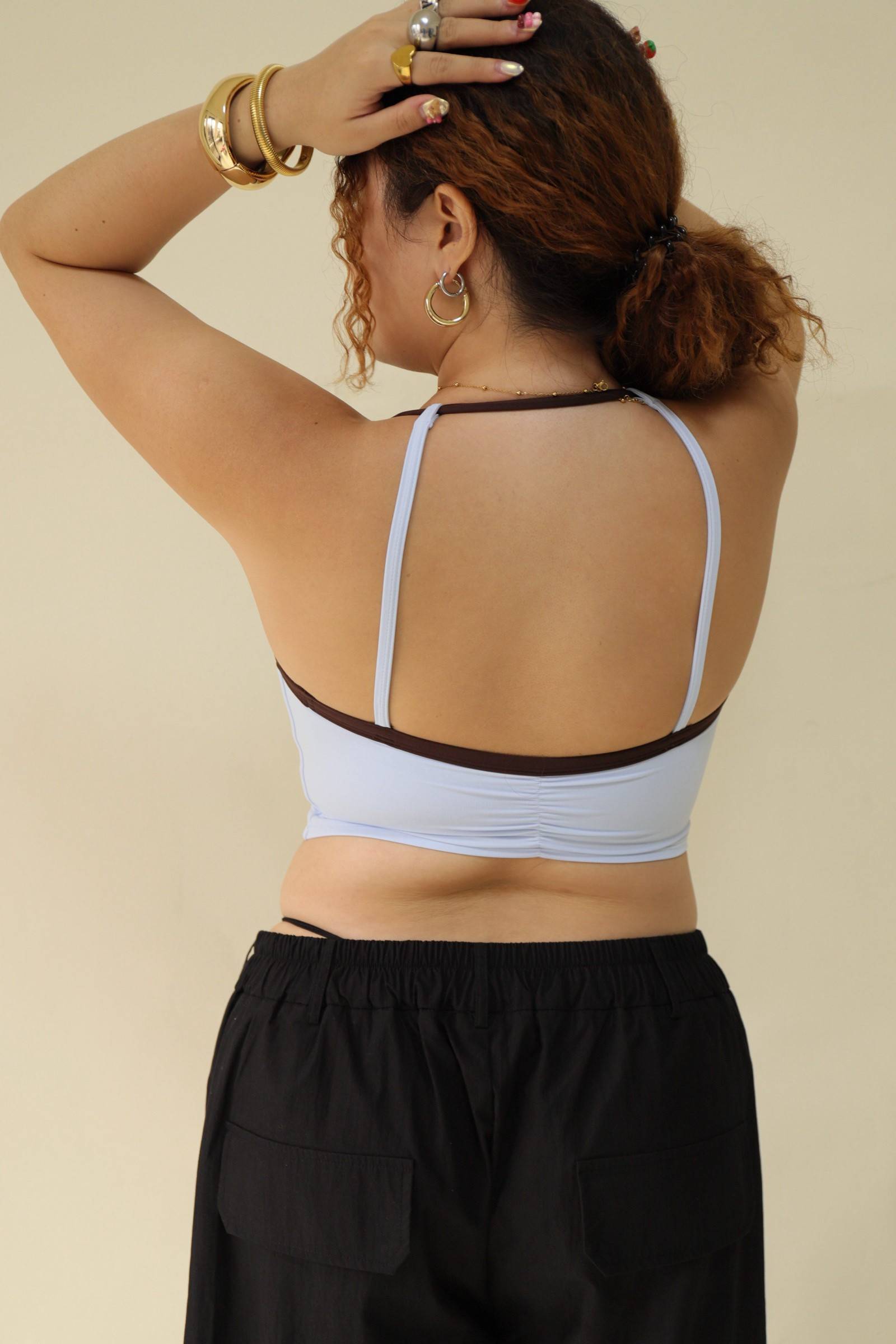 雙色拼接削肩運動內衣-藍,LEILASHAW 你的美不該被數字綁架