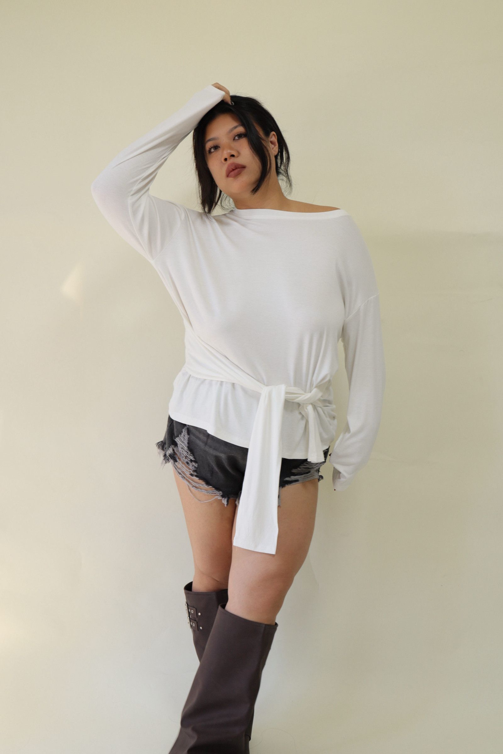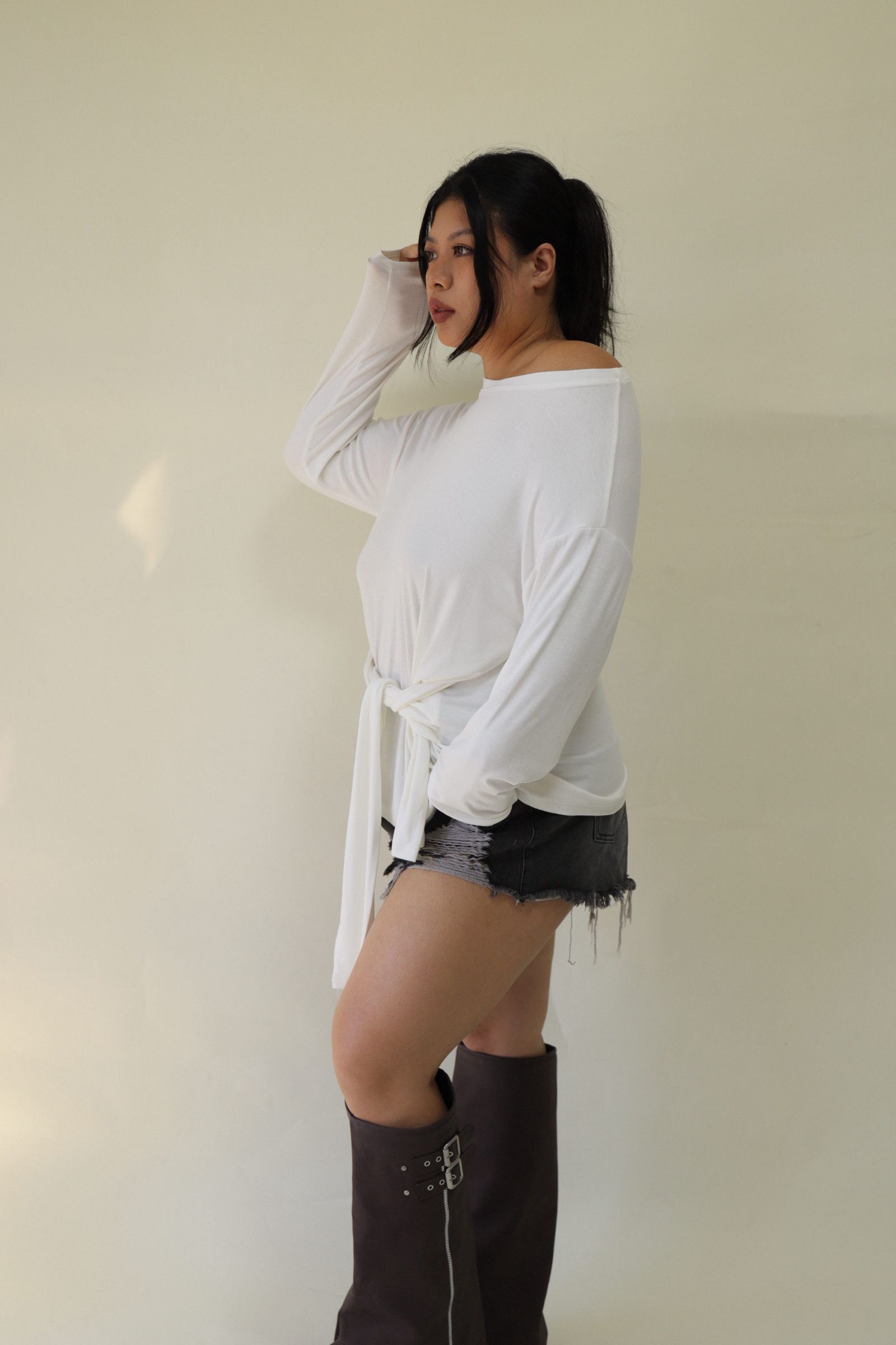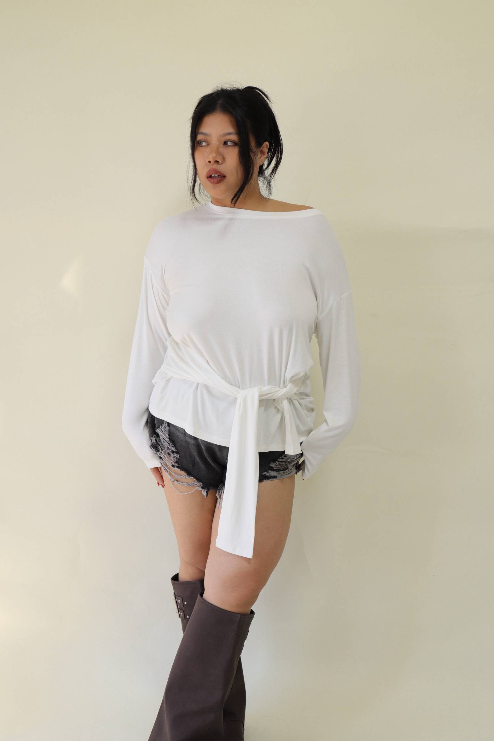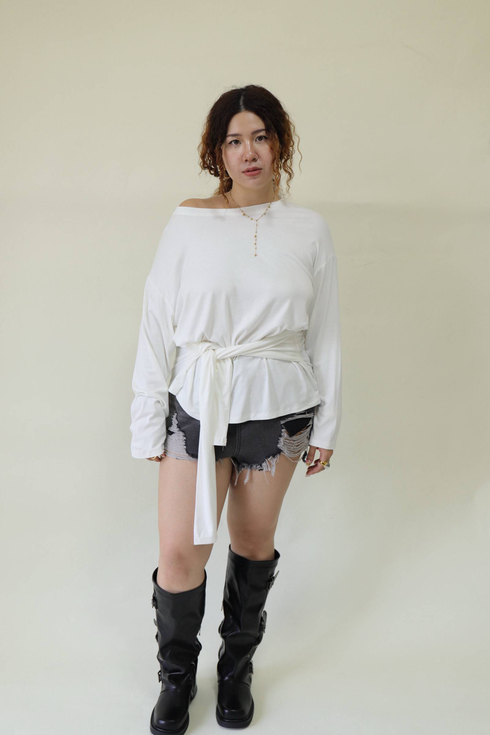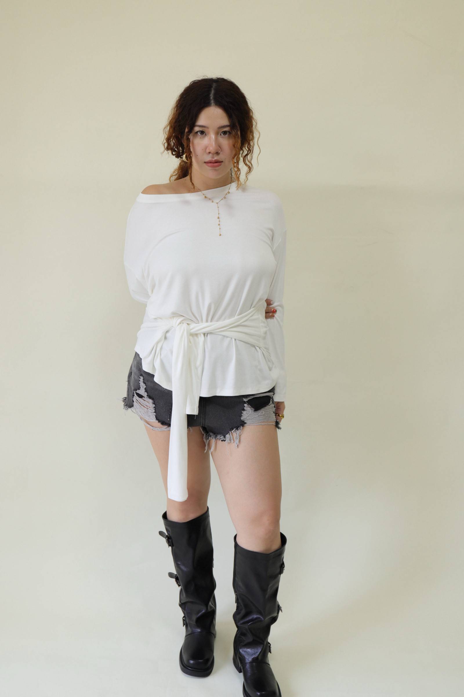 舒服穿假兩件綁帶上衣(白),LEILASHAW 你的美不該被數字綁架