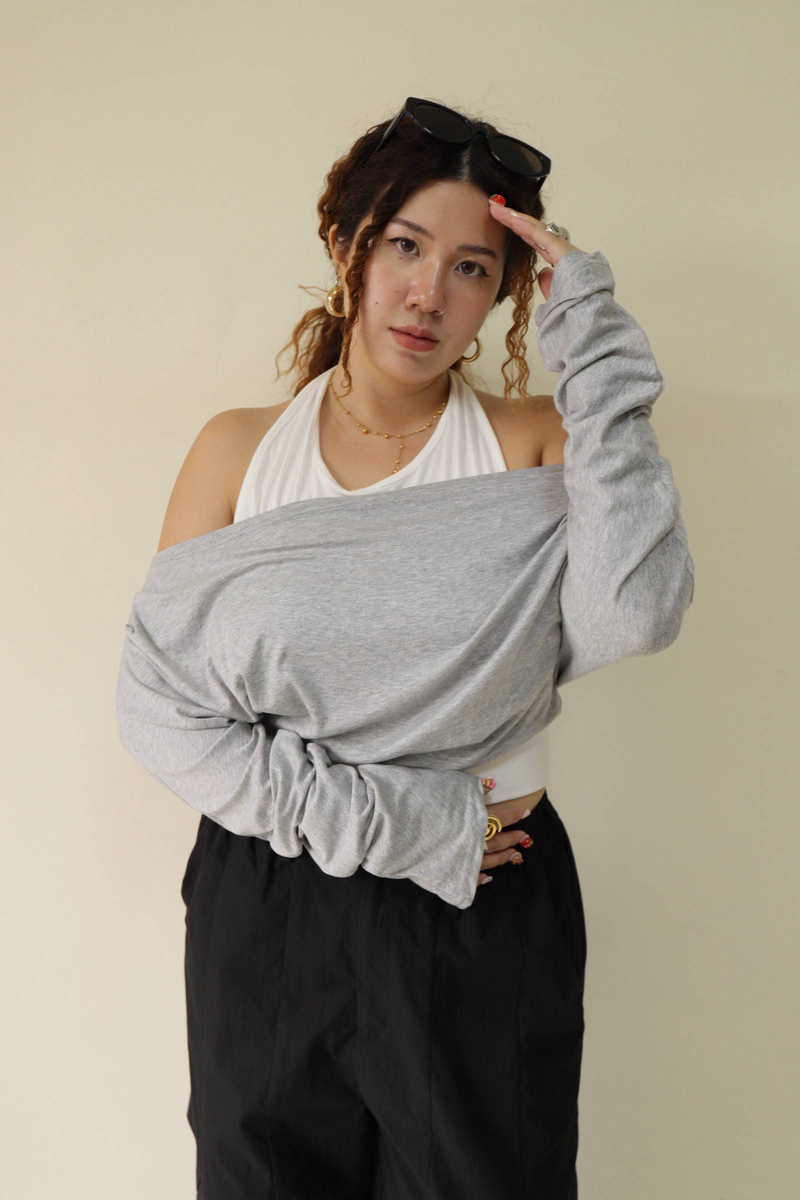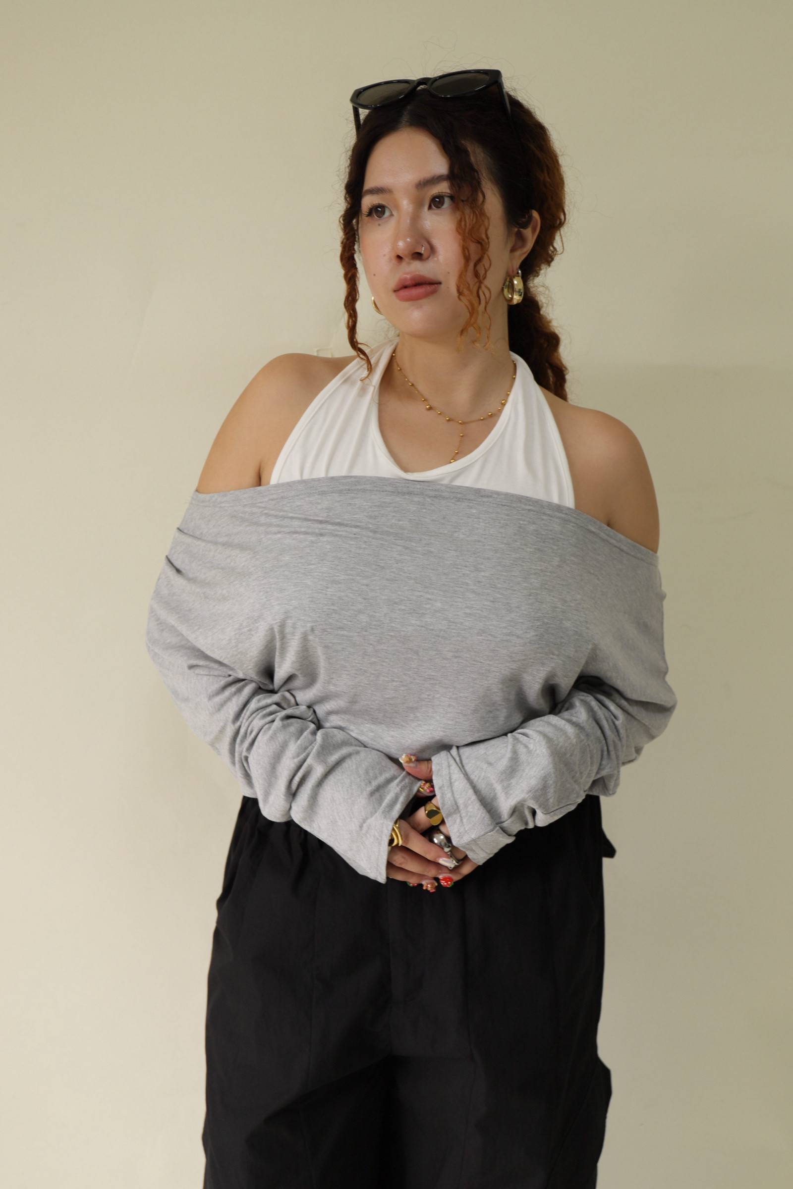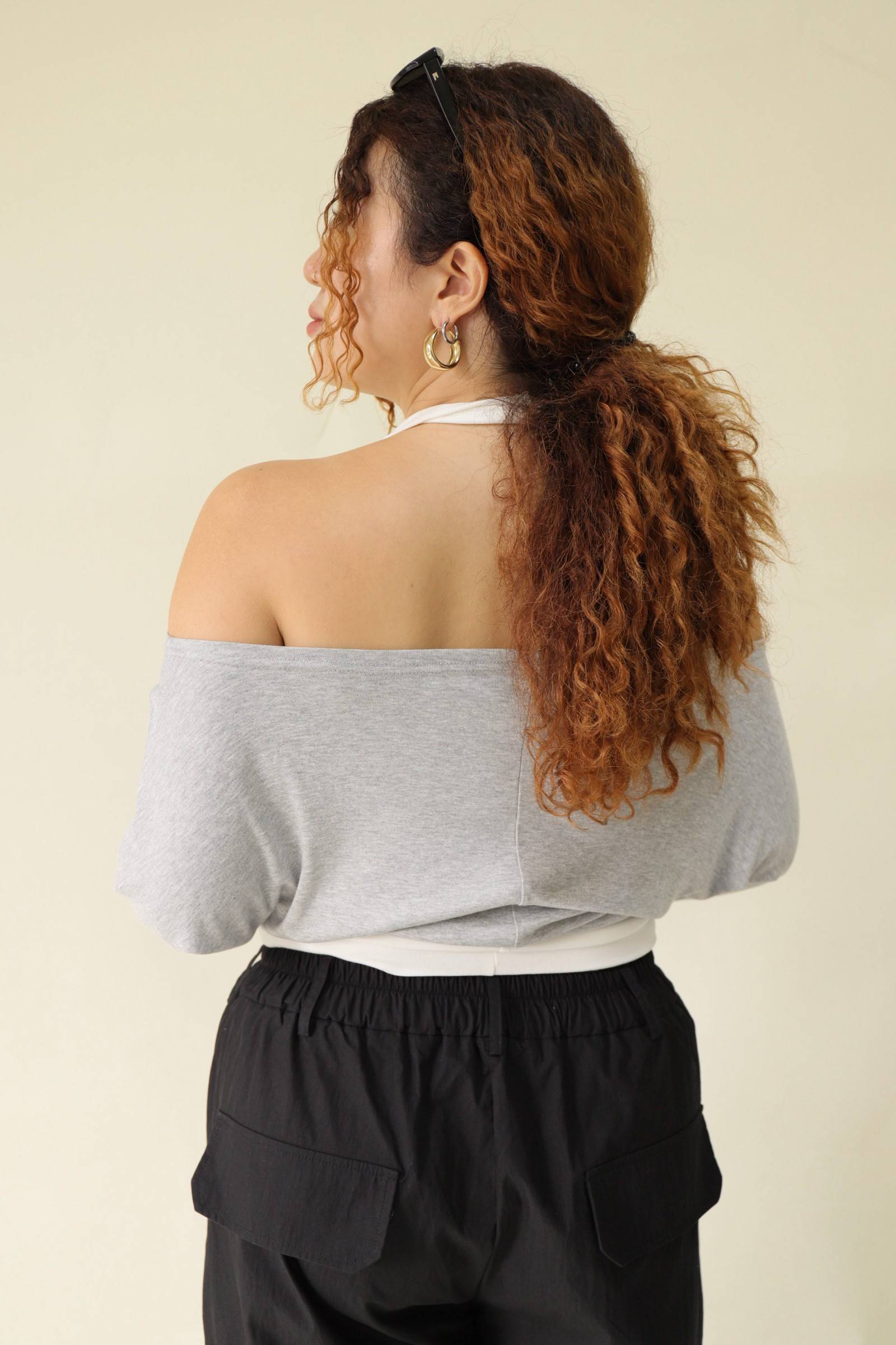 假兩件掛脖舒適上衣(灰),LEILASHAW 你的美不該被數字綁架
