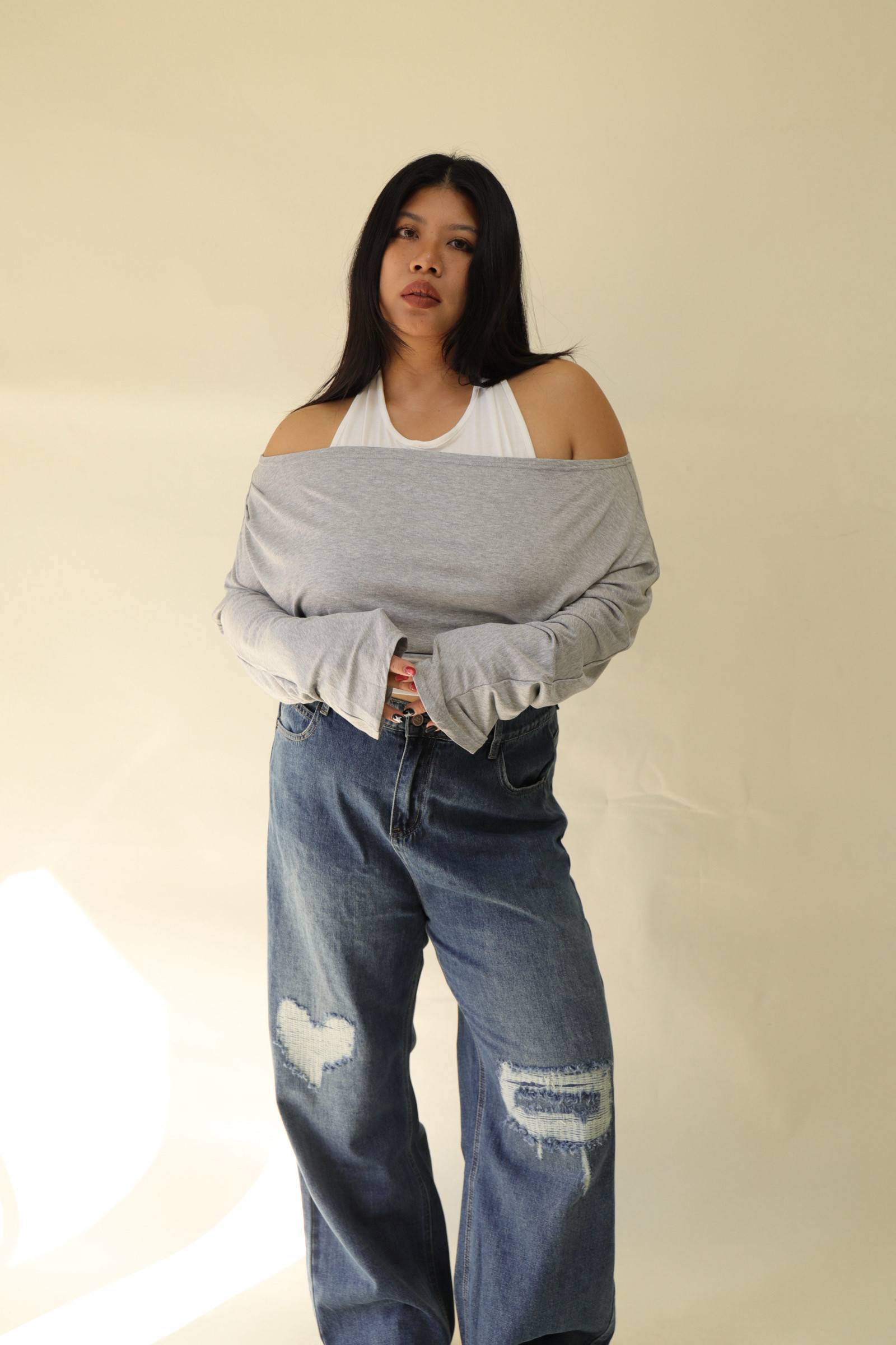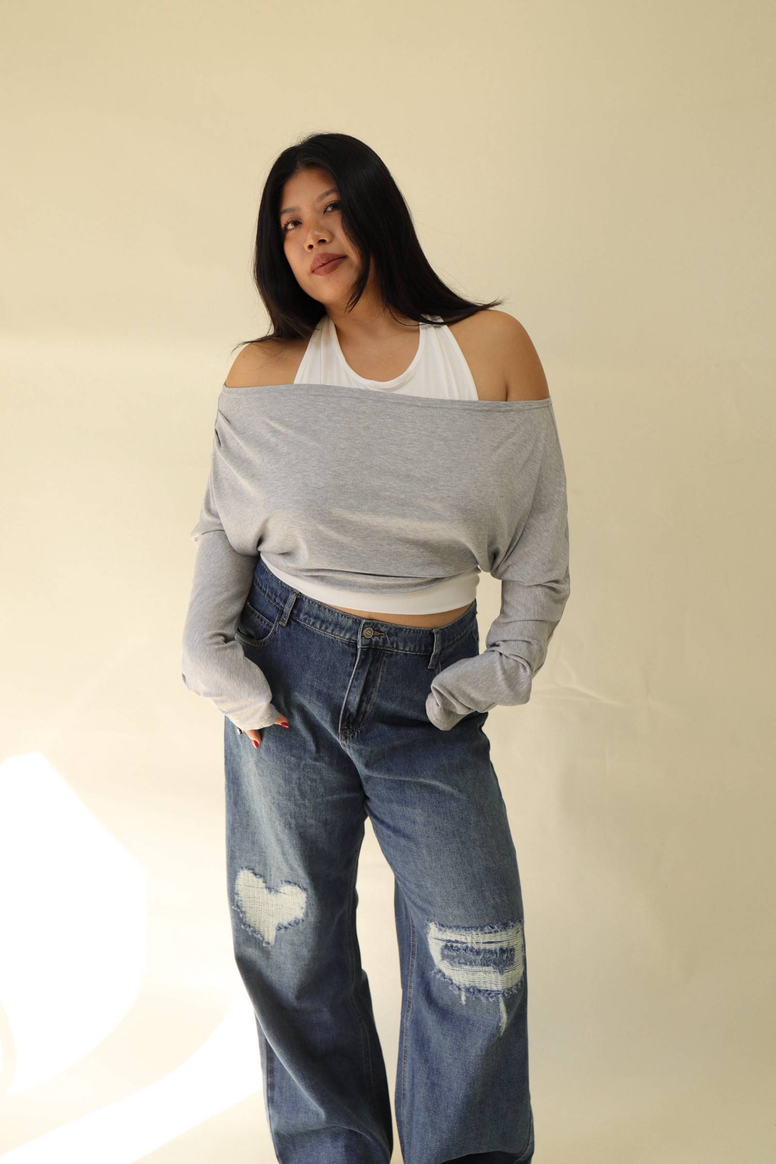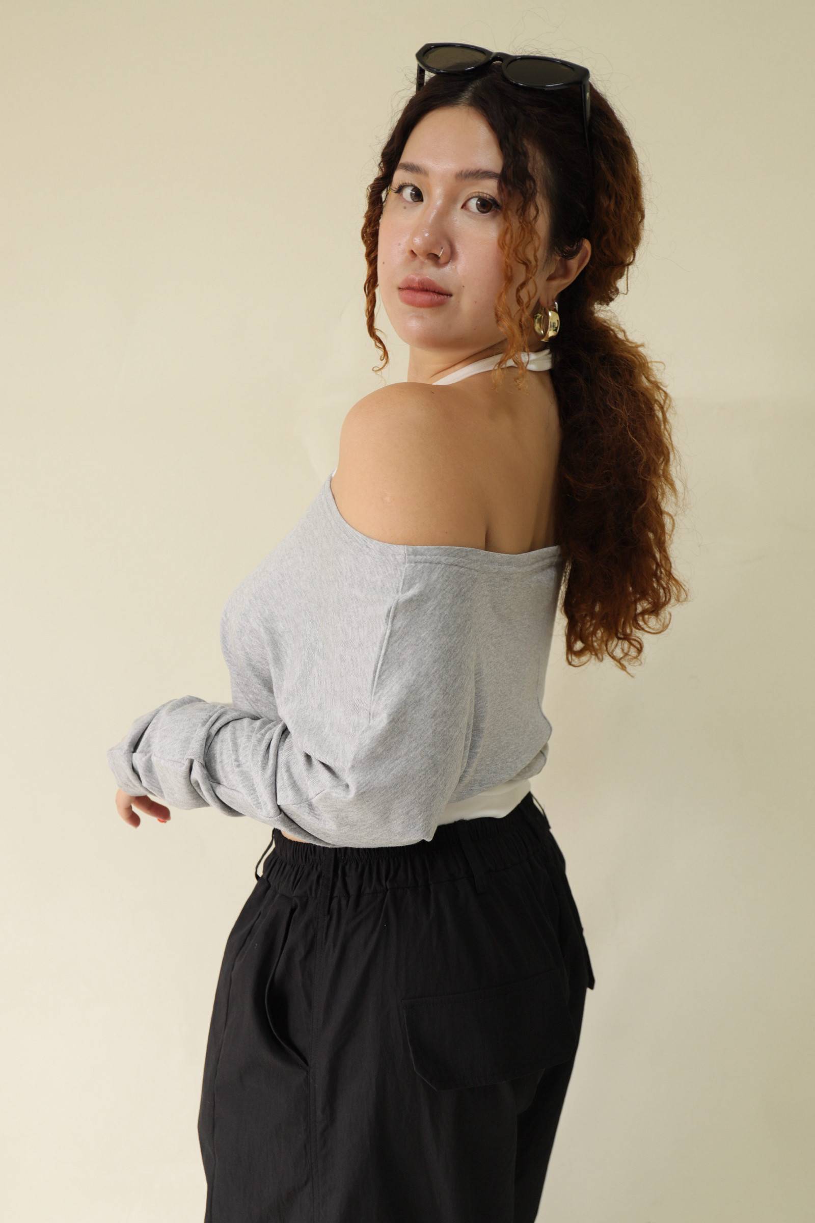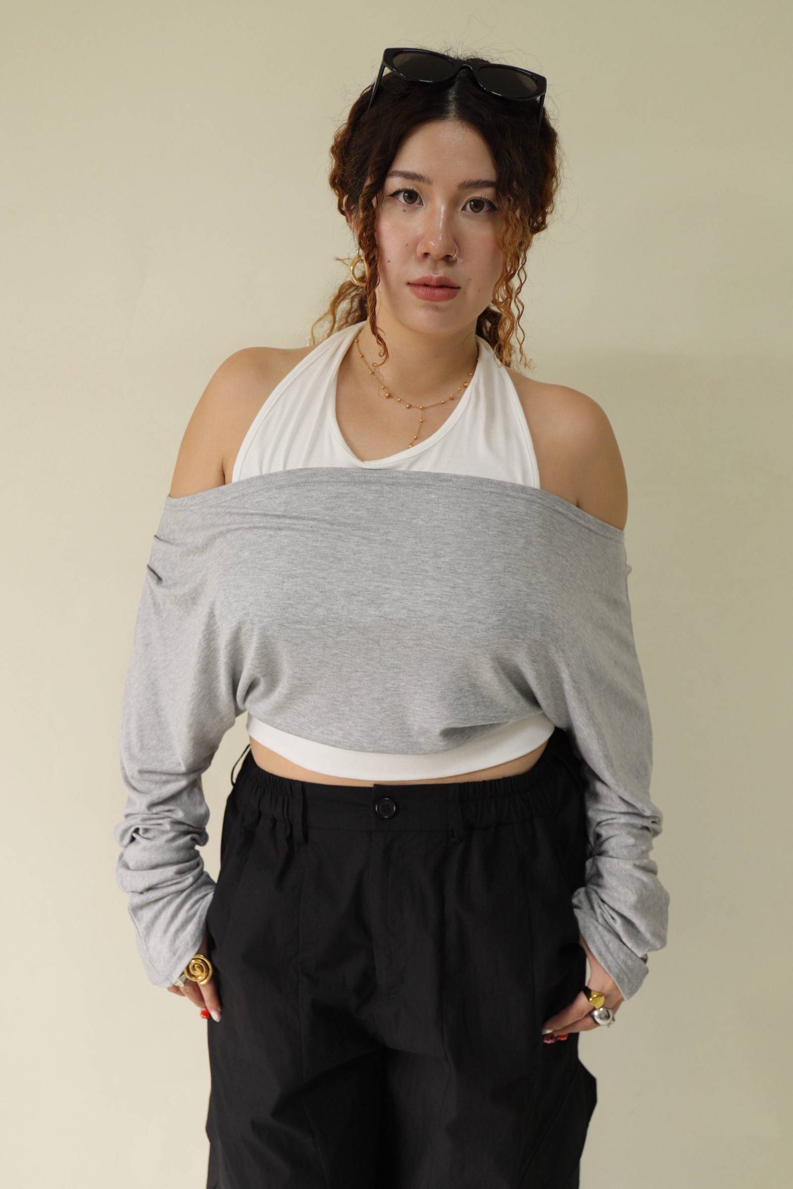 假兩件掛脖舒適上衣(灰),LEILASHAW 你的美不該被數字綁架