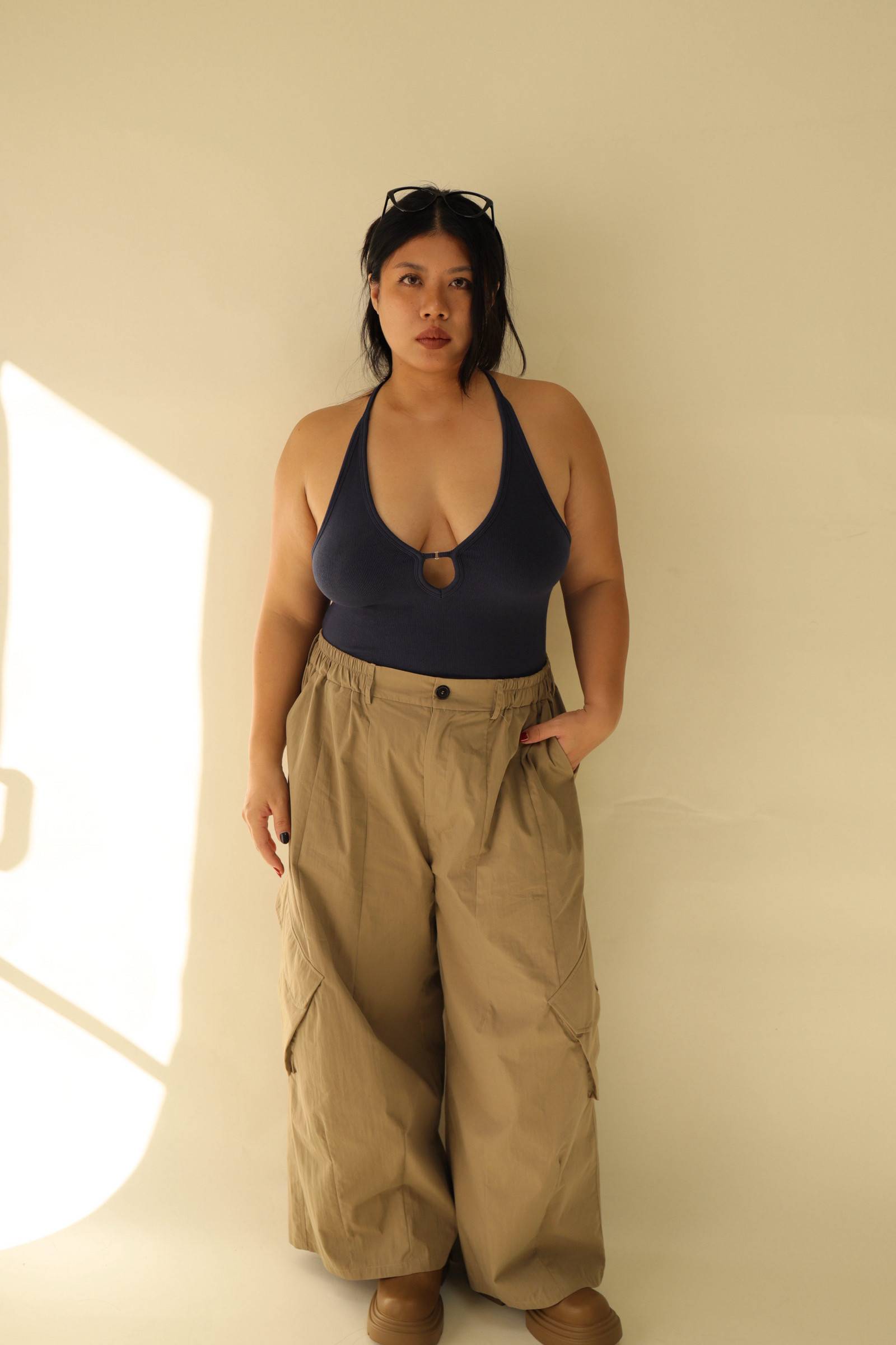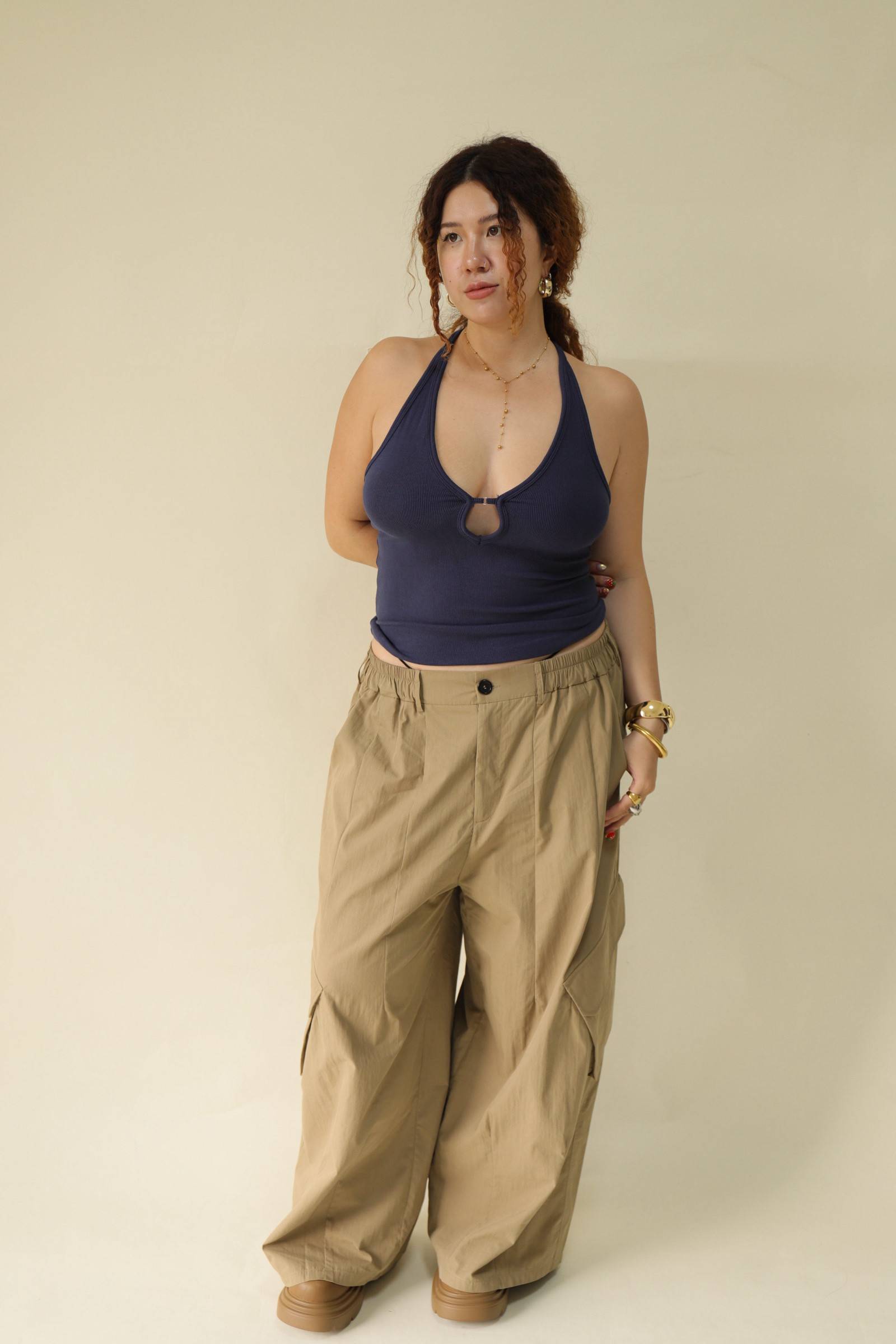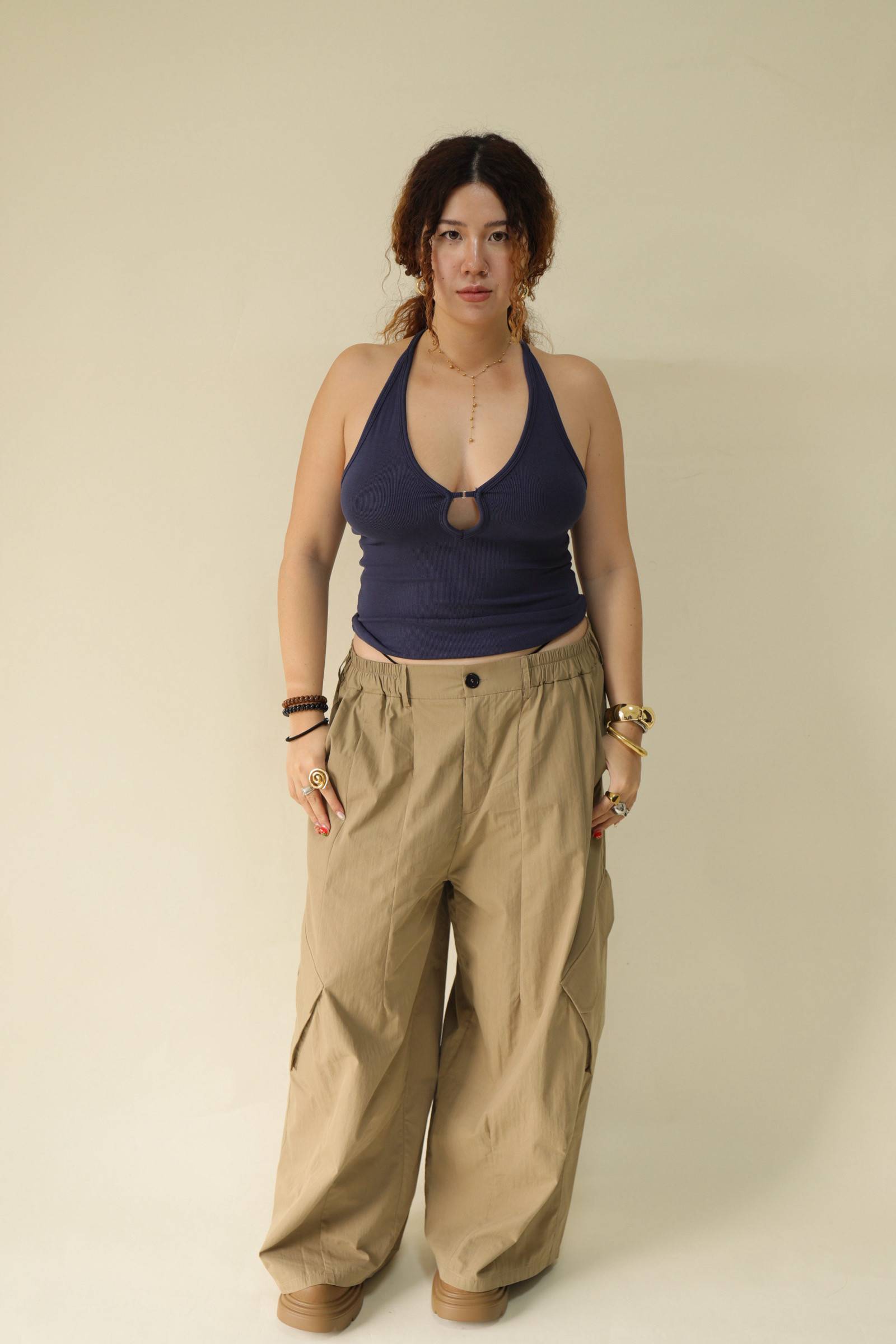 【EASE】大口袋寬鬆工裝褲(棕),LEILASHAW 你的美不該被數字綁架