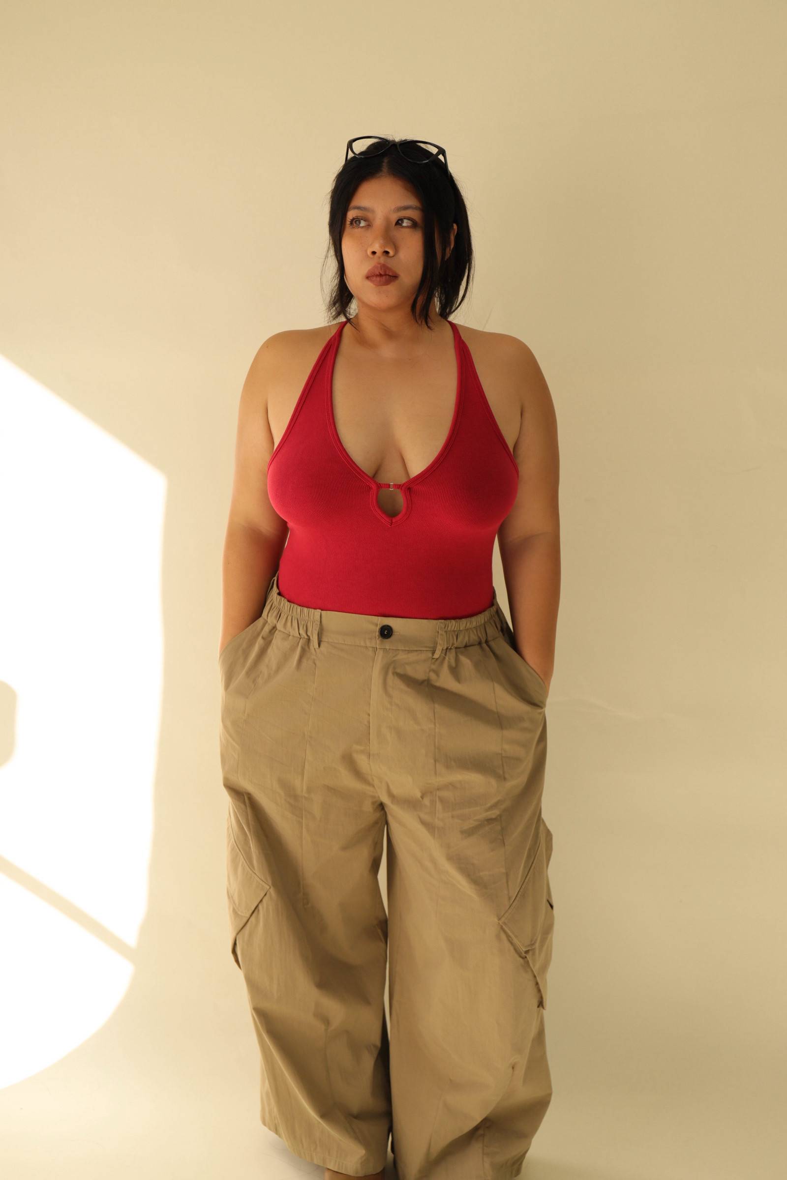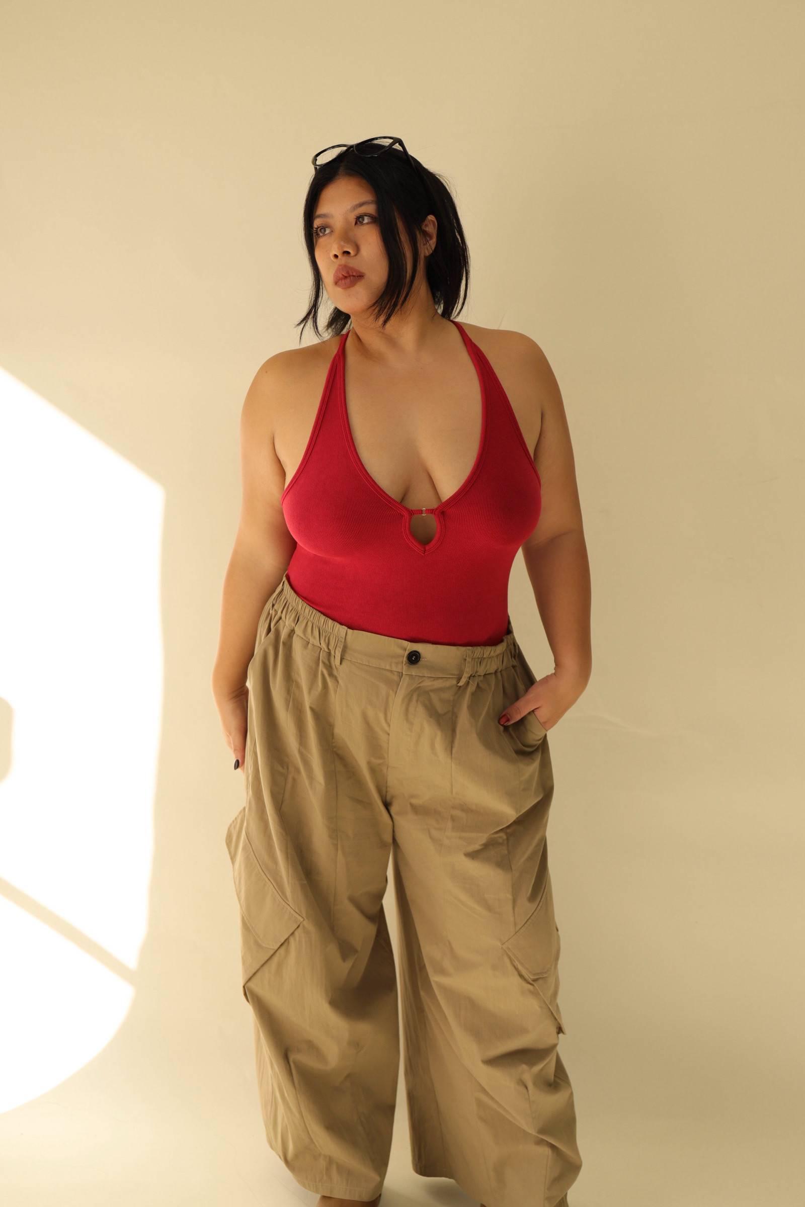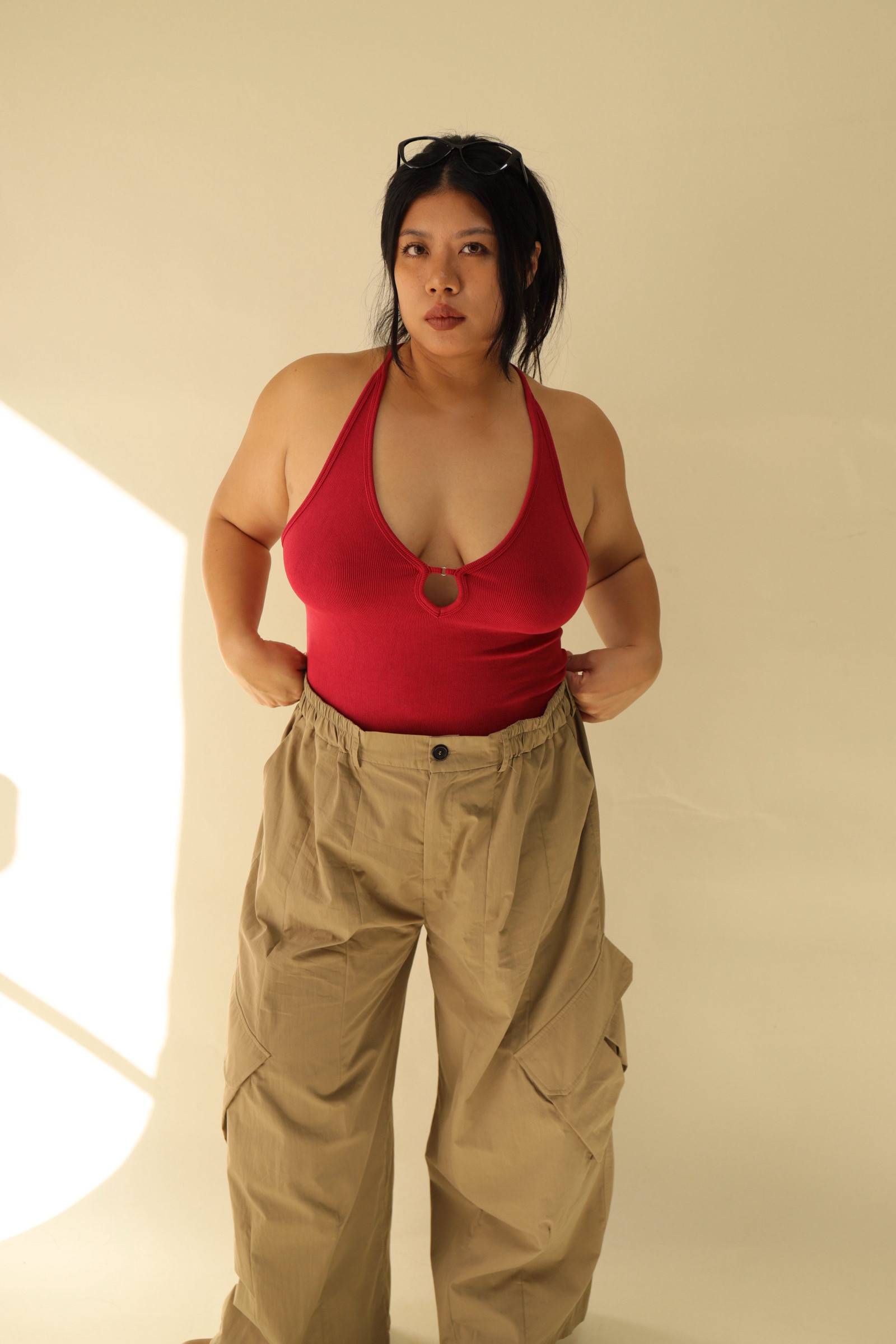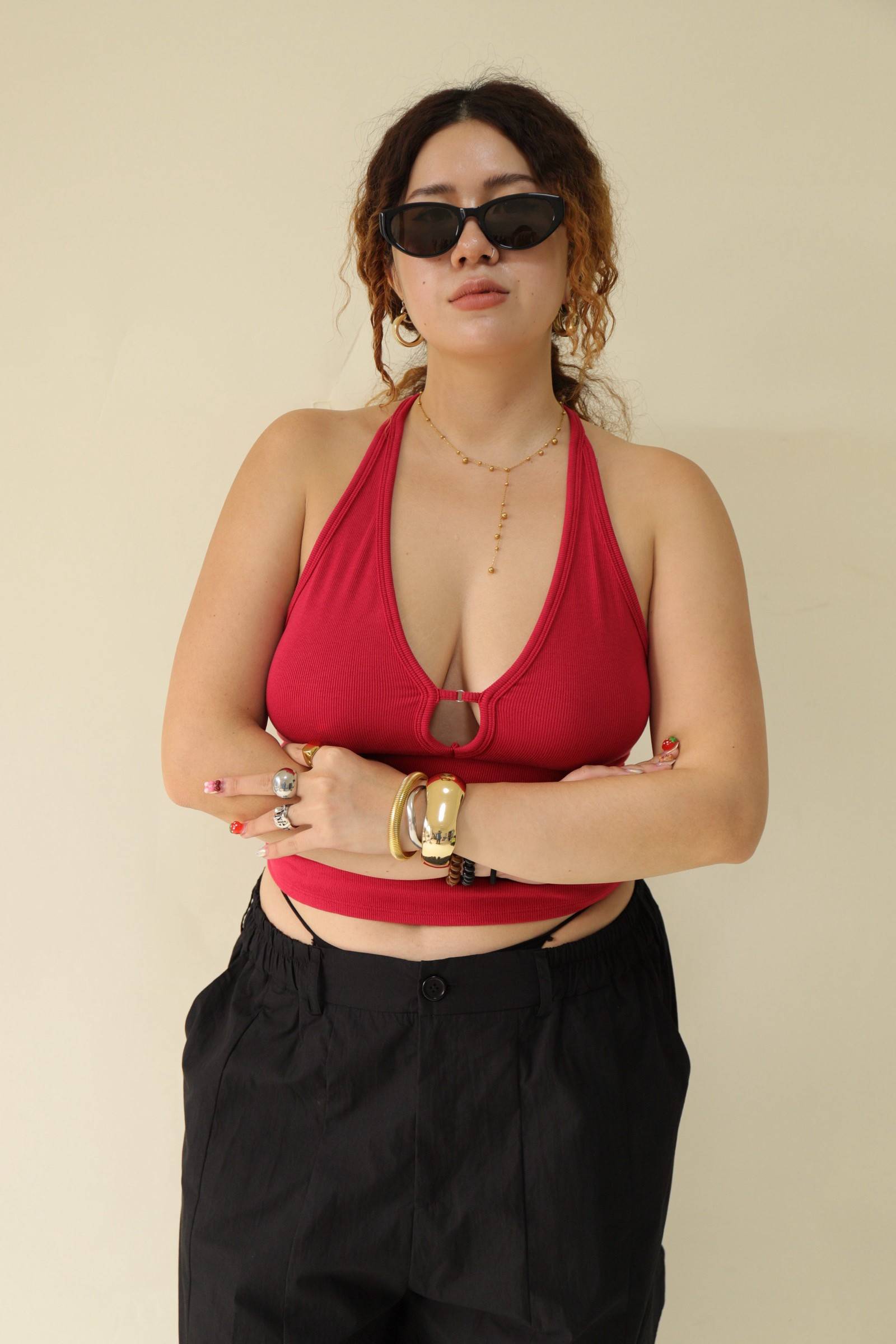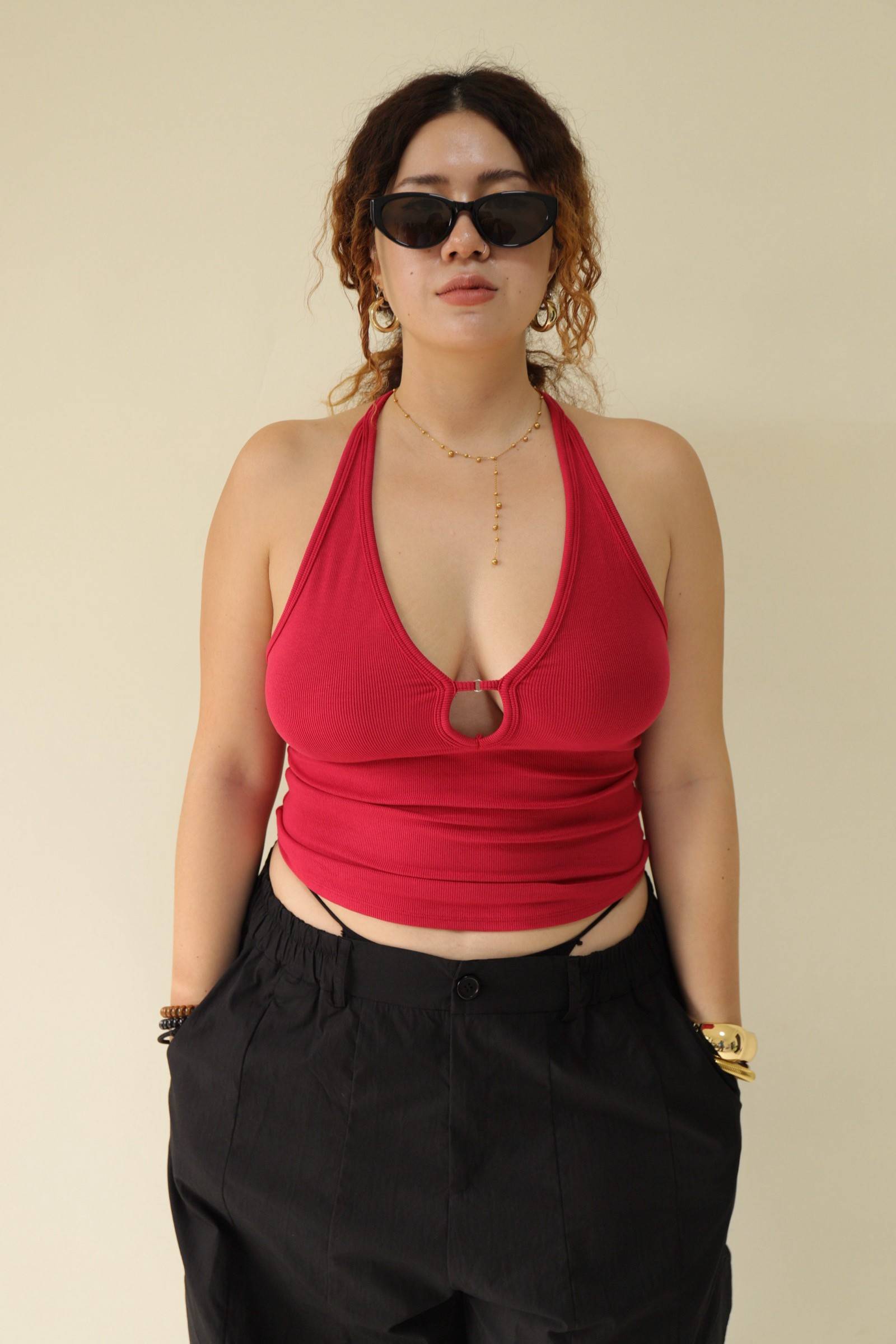 大鏤空掛脖彈力背心(紅),LEILASHAW 你的美不該被數字綁架