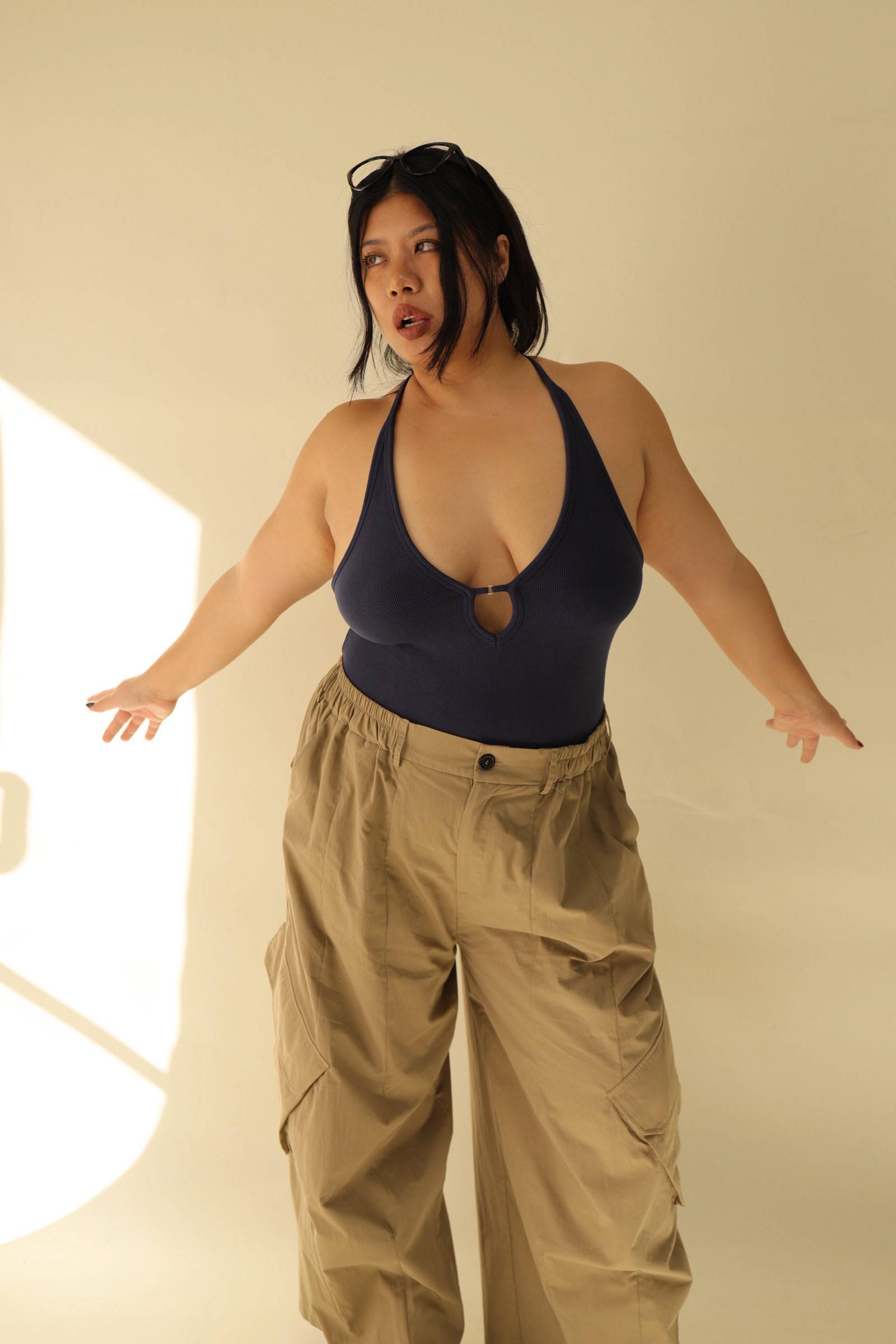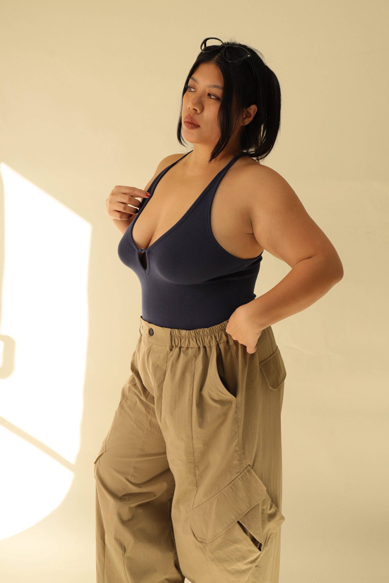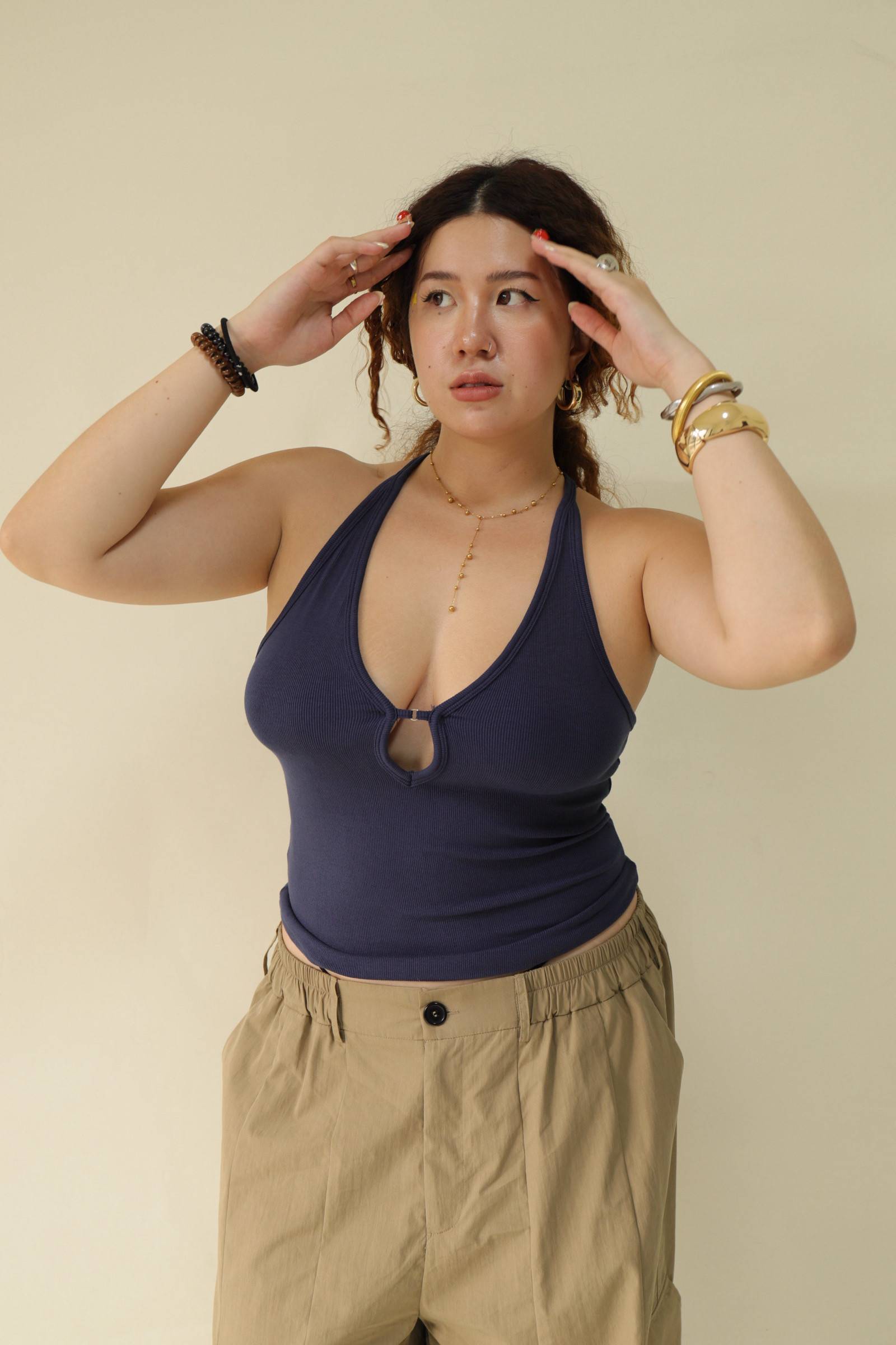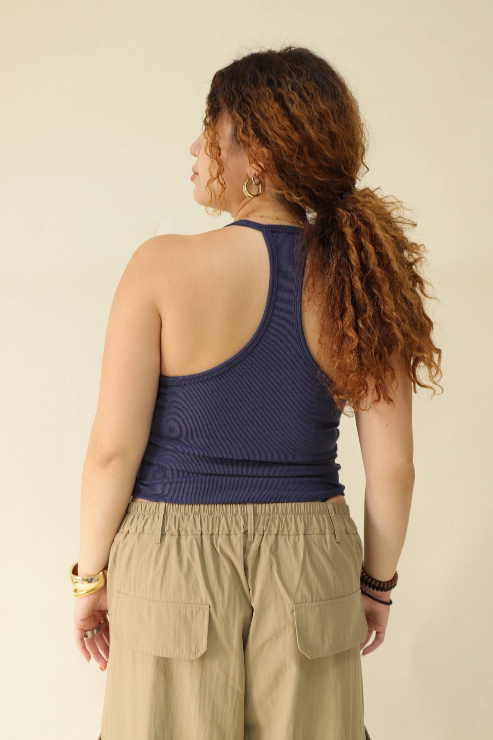 大鏤空掛脖彈力背心(藍),LEILASHAW 你的美不該被數字綁架