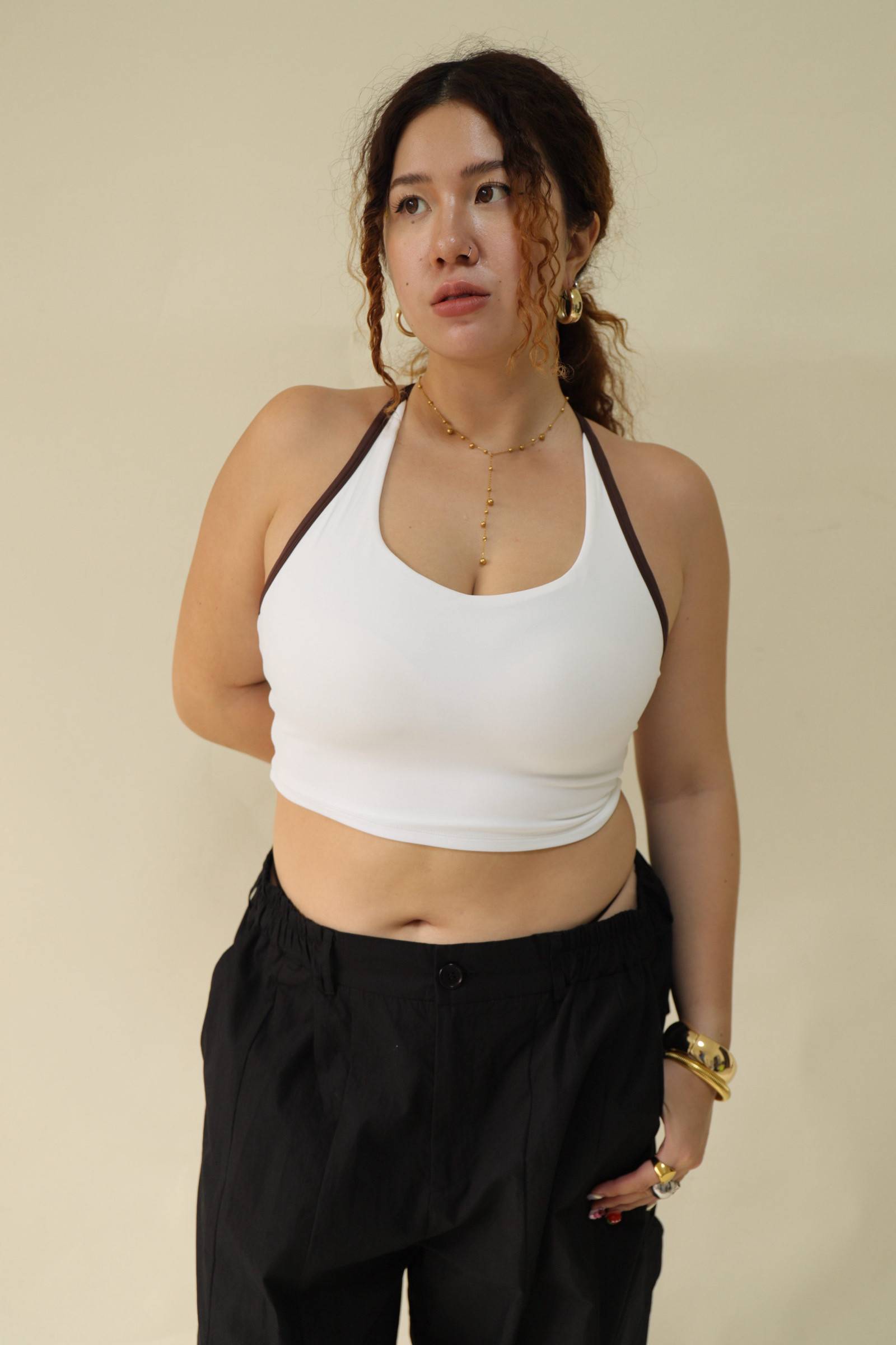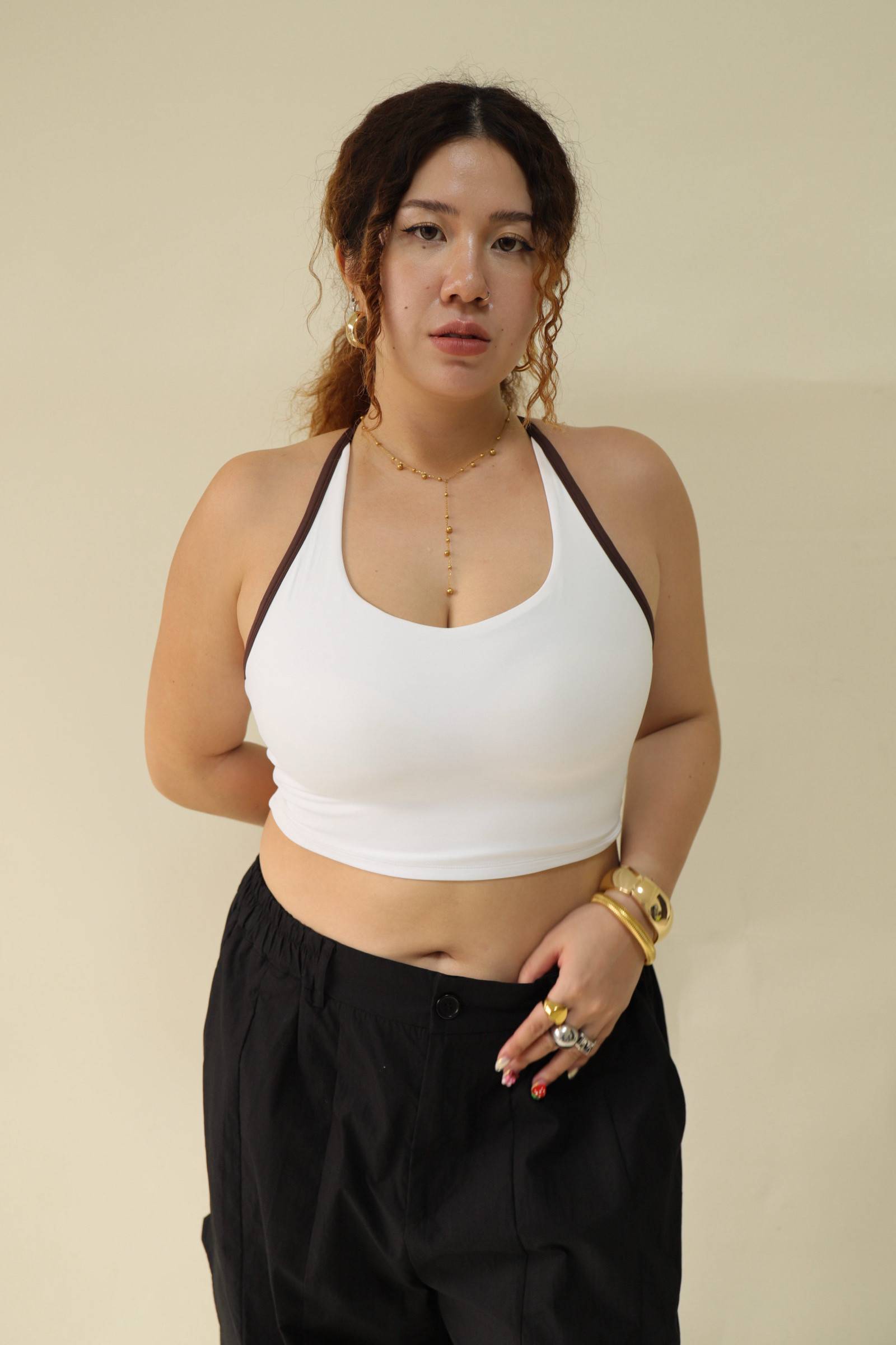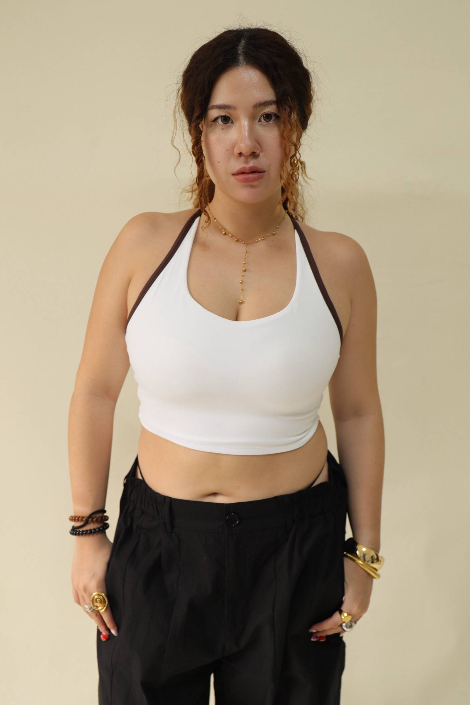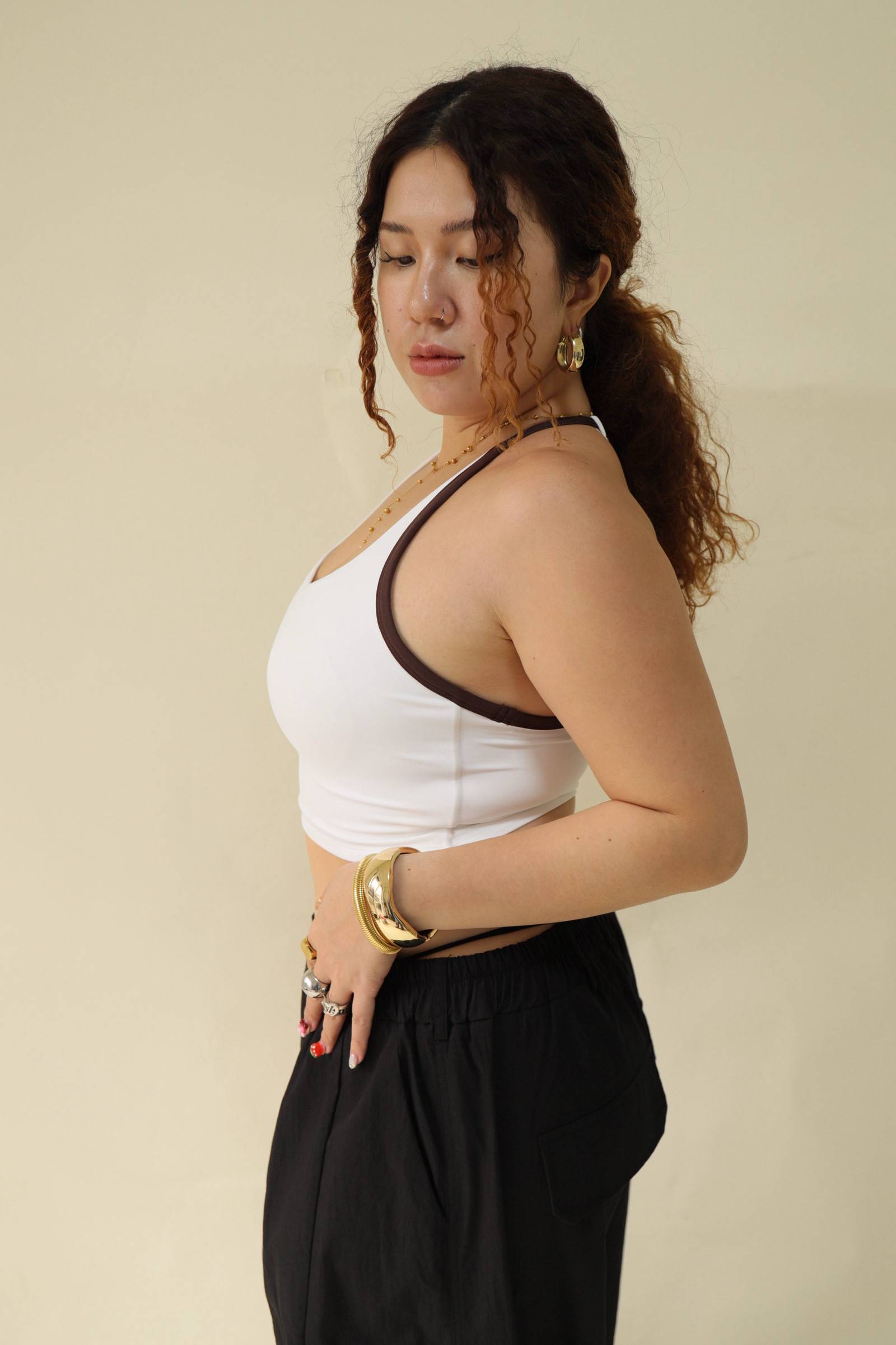 雙色拼接削肩運動內衣-白,LEILASHAW 你的美不該被數字綁架