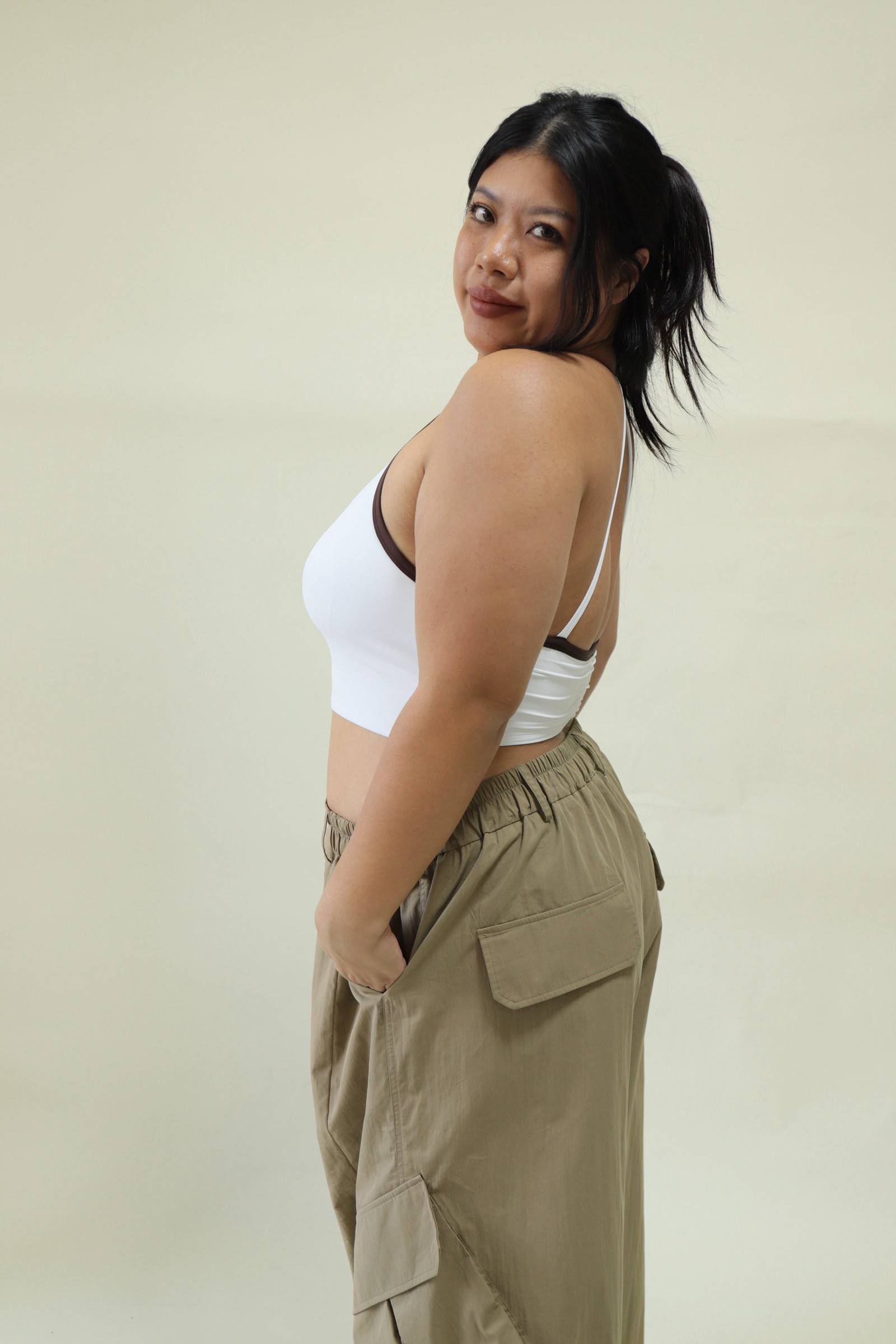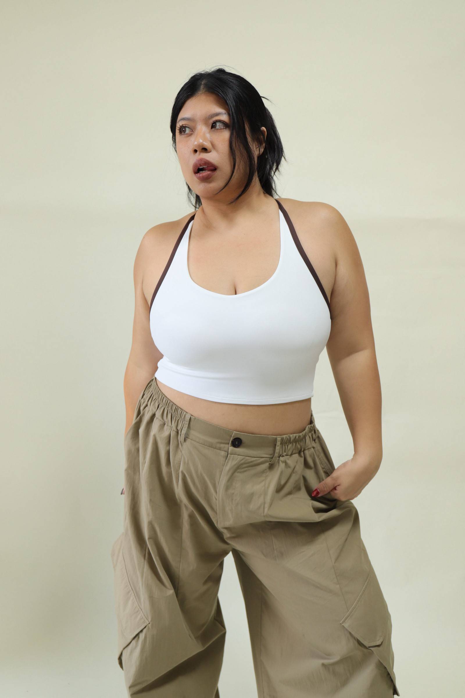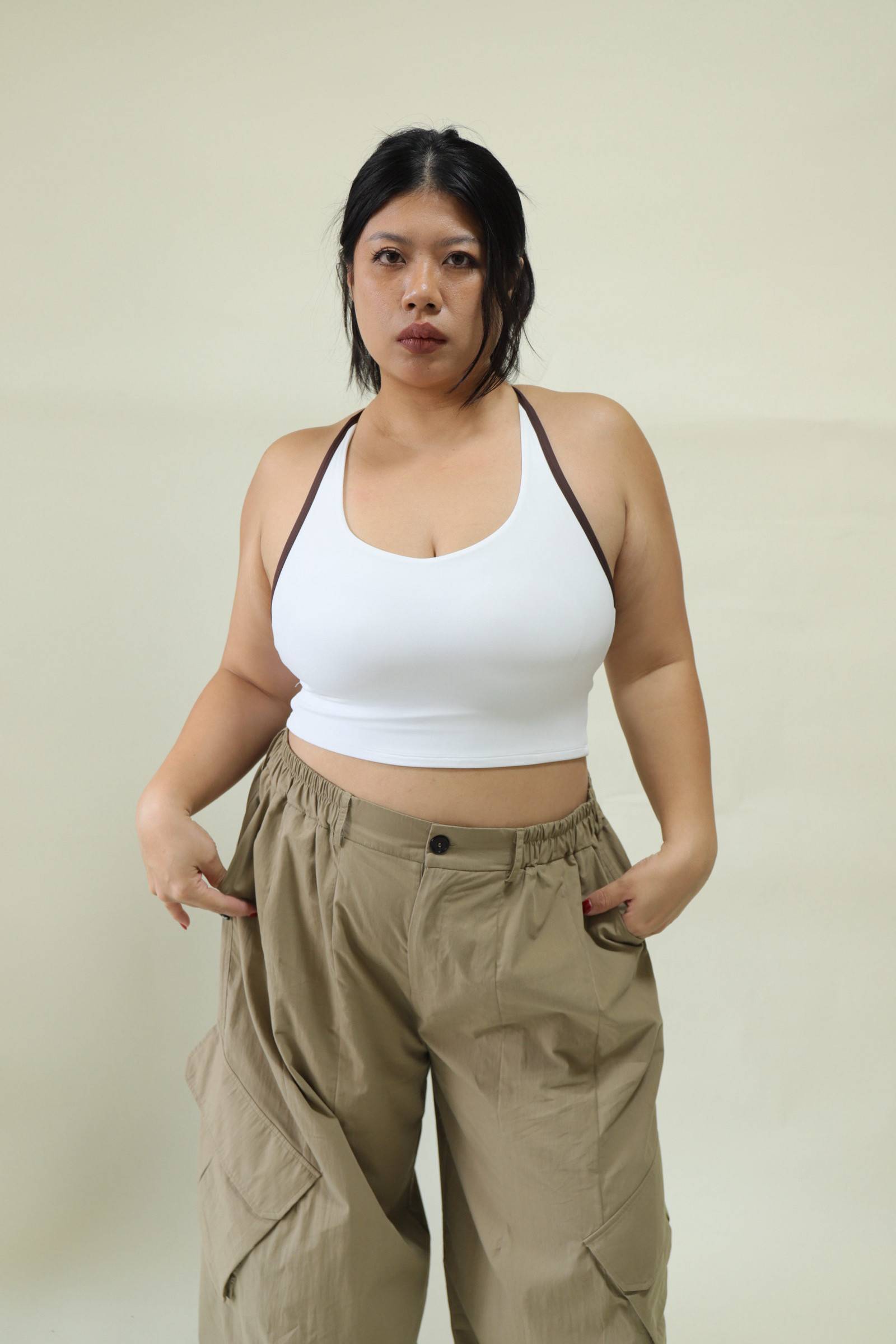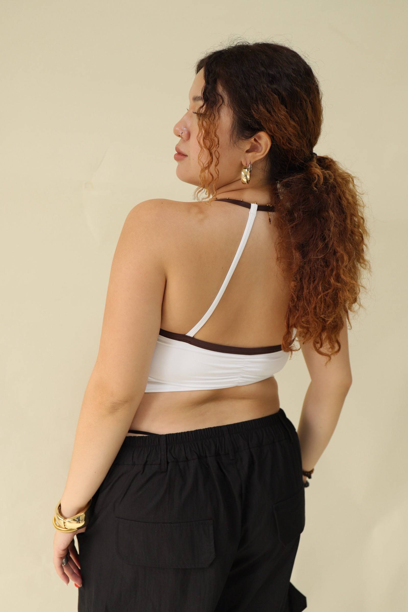 雙色拼接削肩運動內衣-白,LEILASHAW 你的美不該被數字綁架