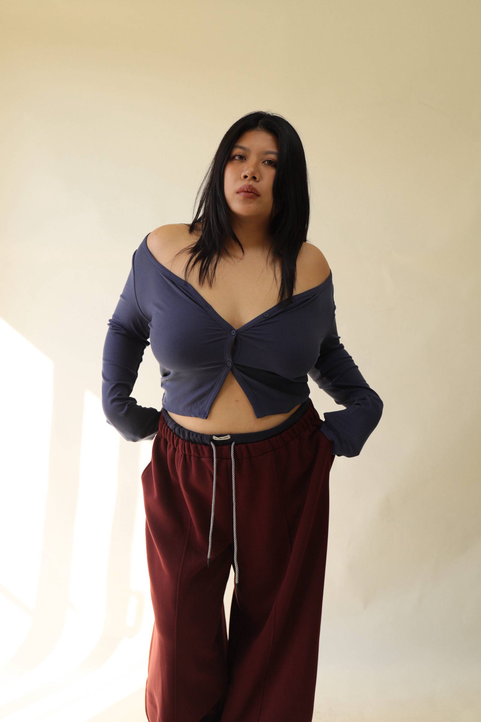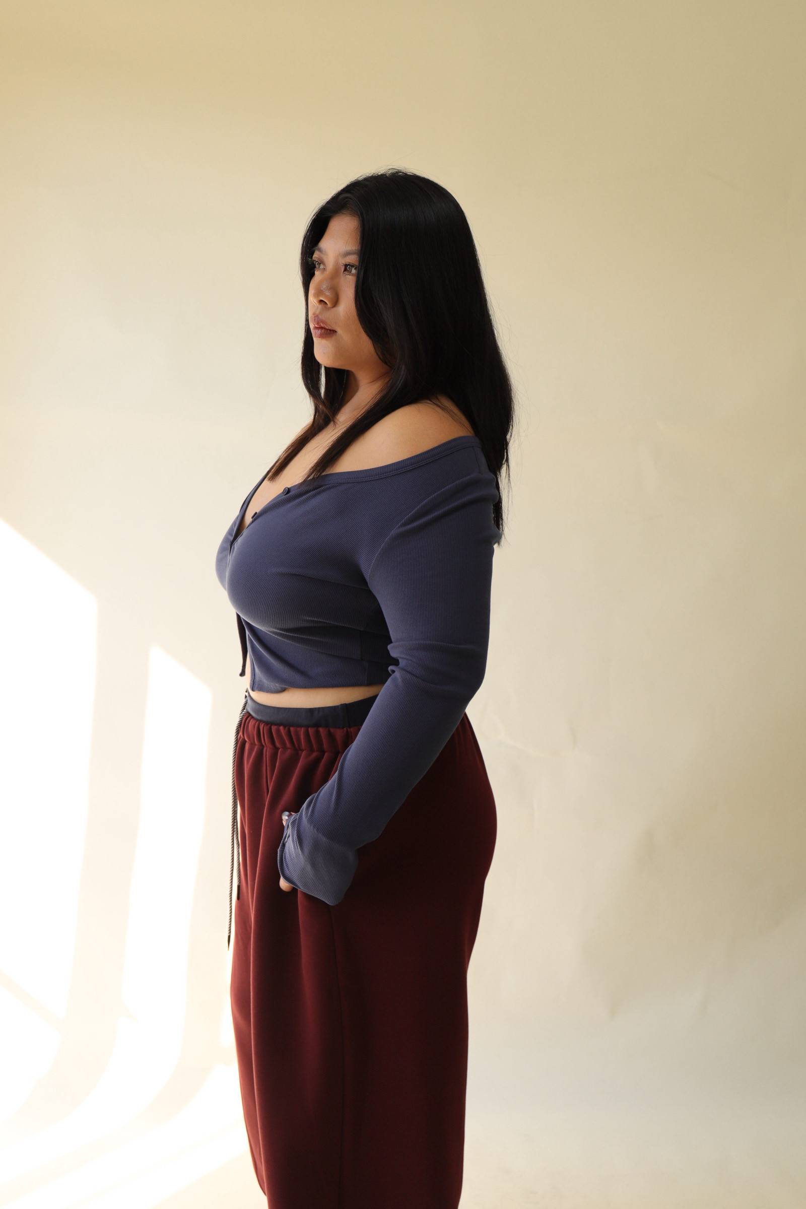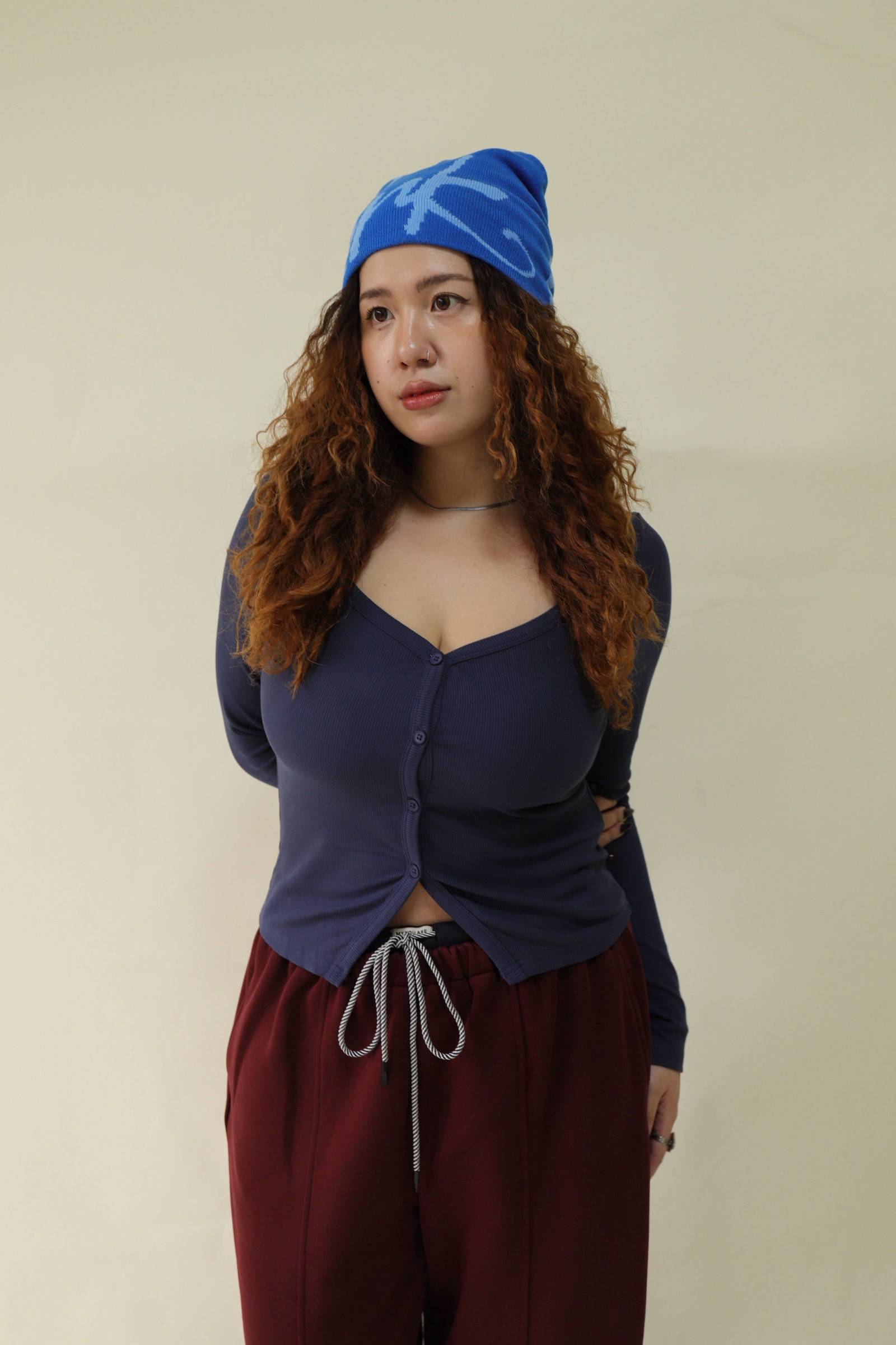 V領羅紋開釦上衣(藍),LEILASHAW 你的美不該被數字綁架