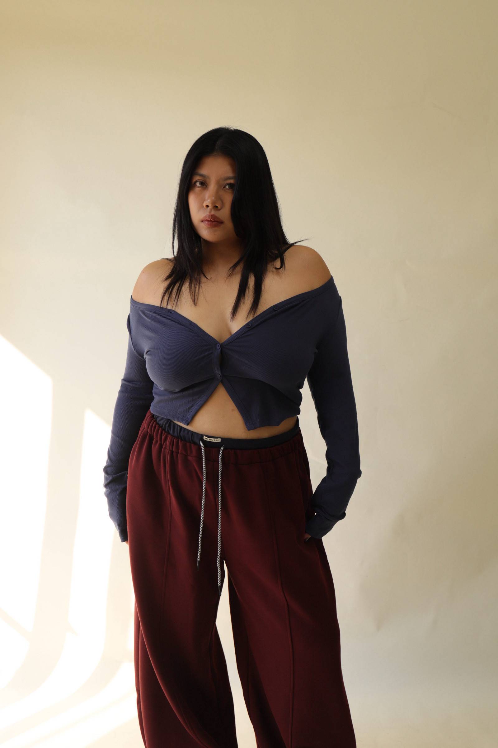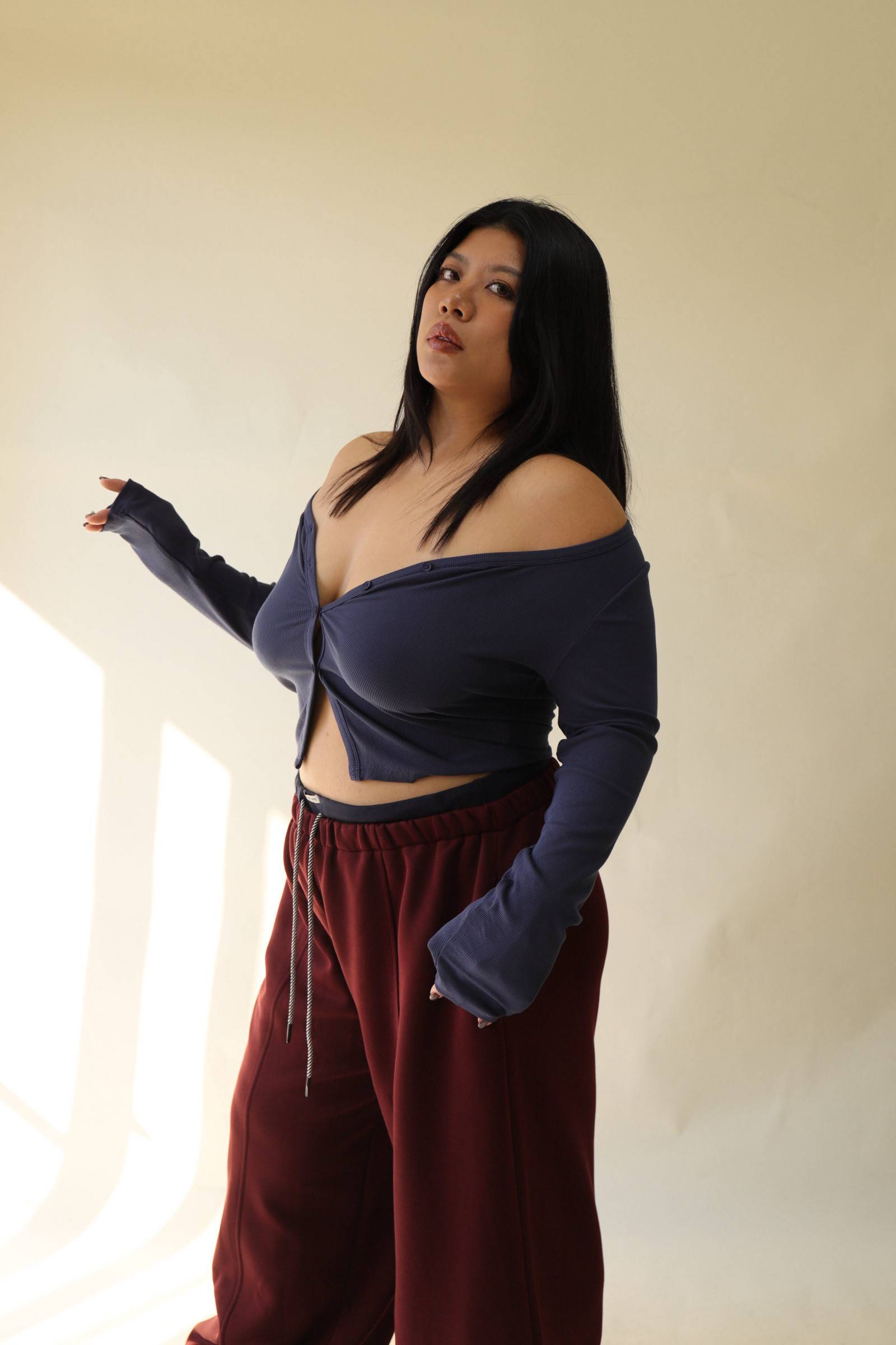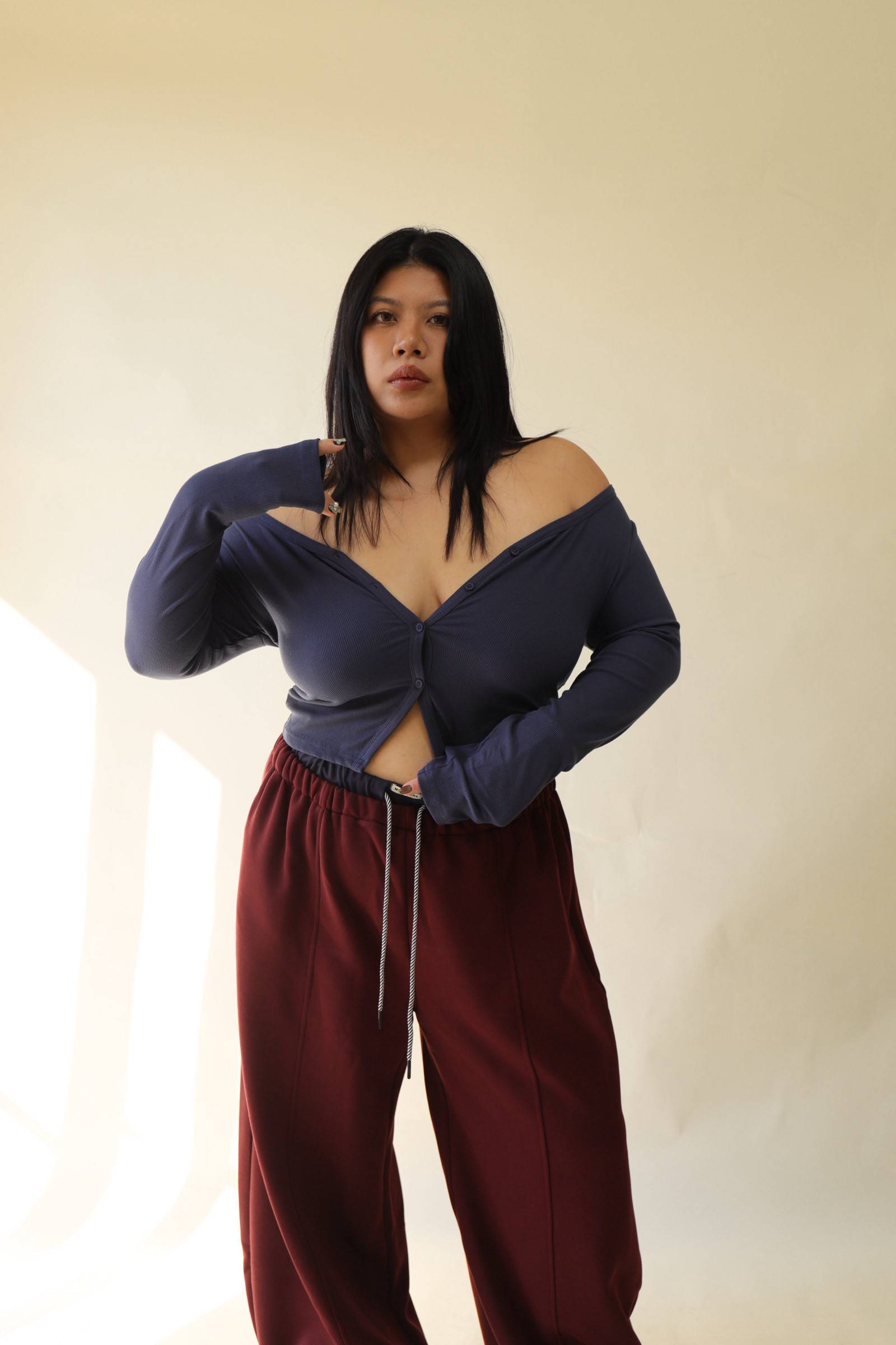 V領羅紋開釦上衣(藍),LEILASHAW 你的美不該被數字綁架