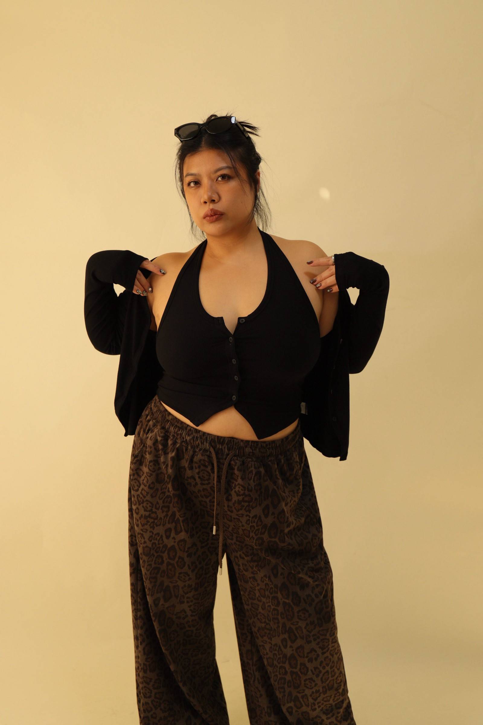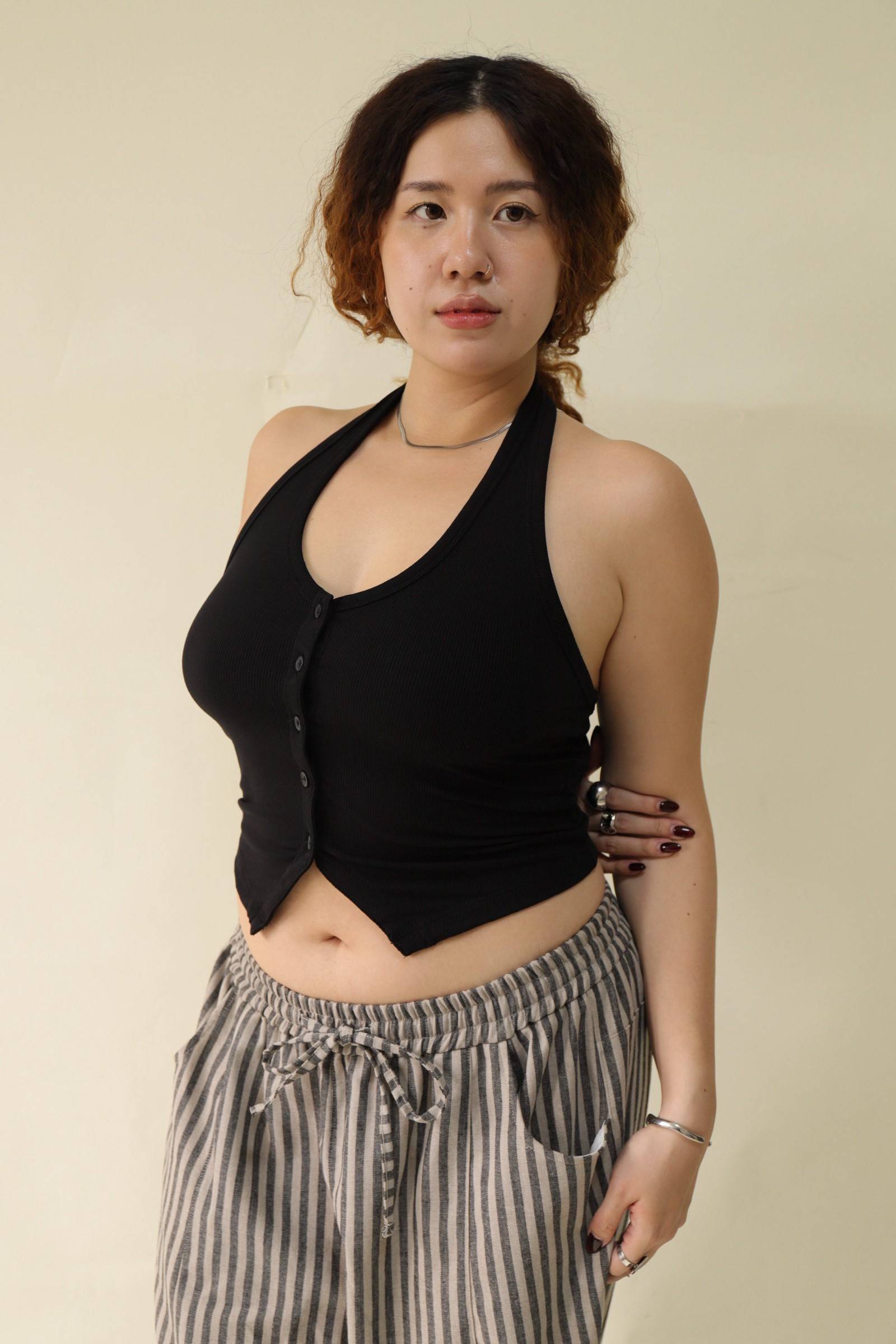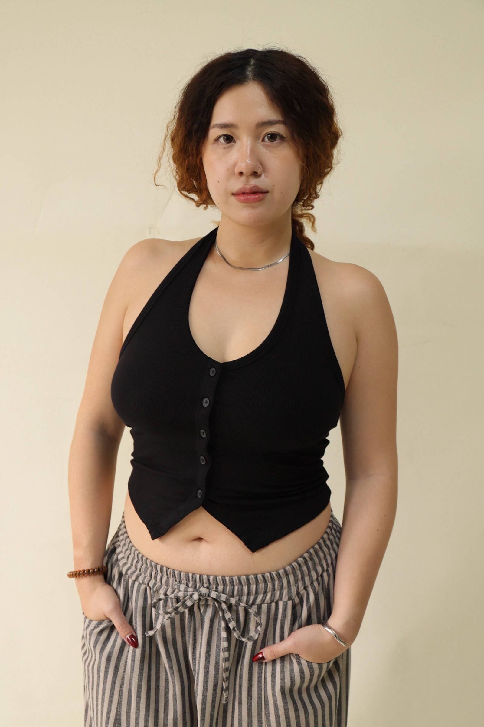 掛脖收腰排釦背心(黑),LEILASHAW 你的美不該被數字綁架