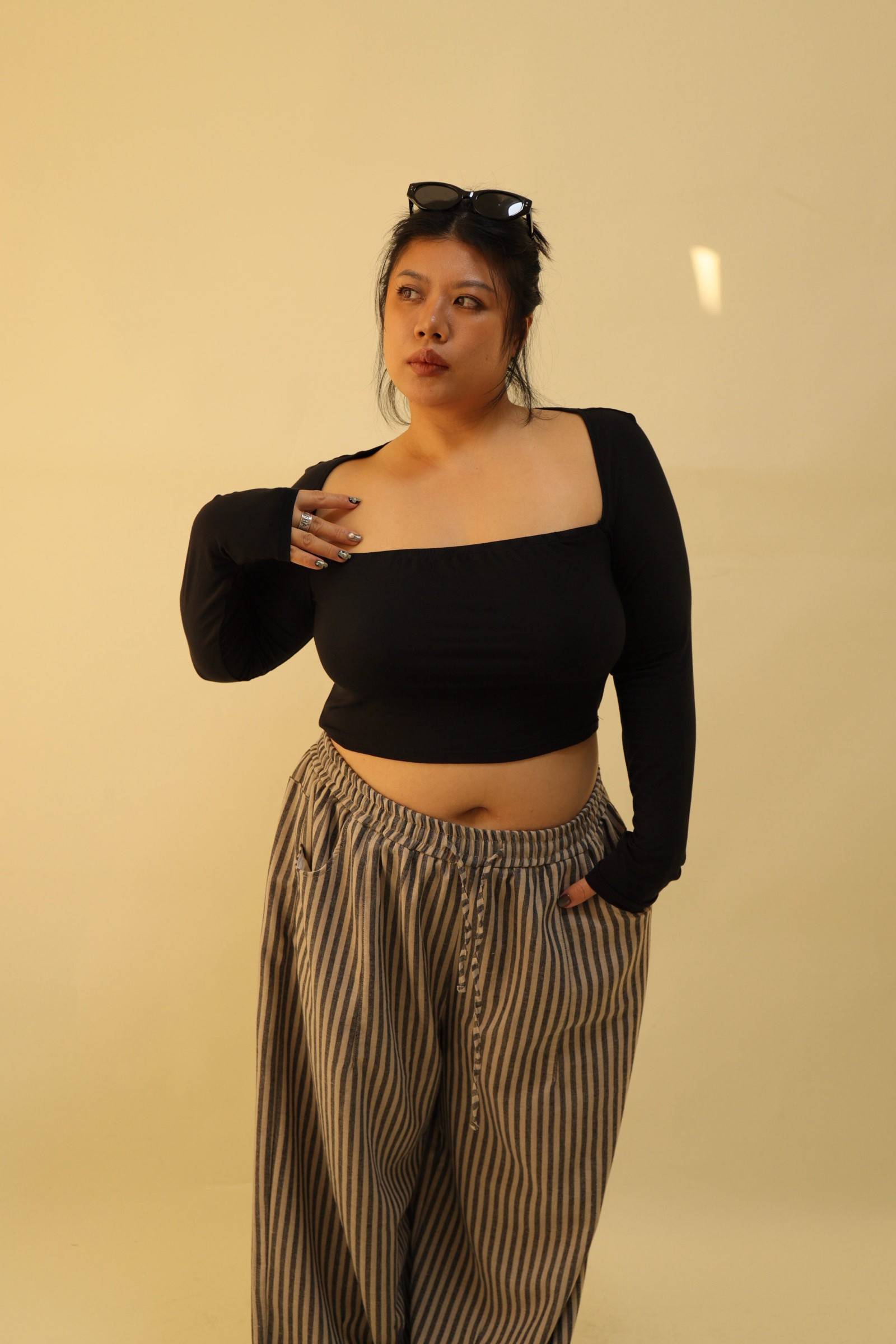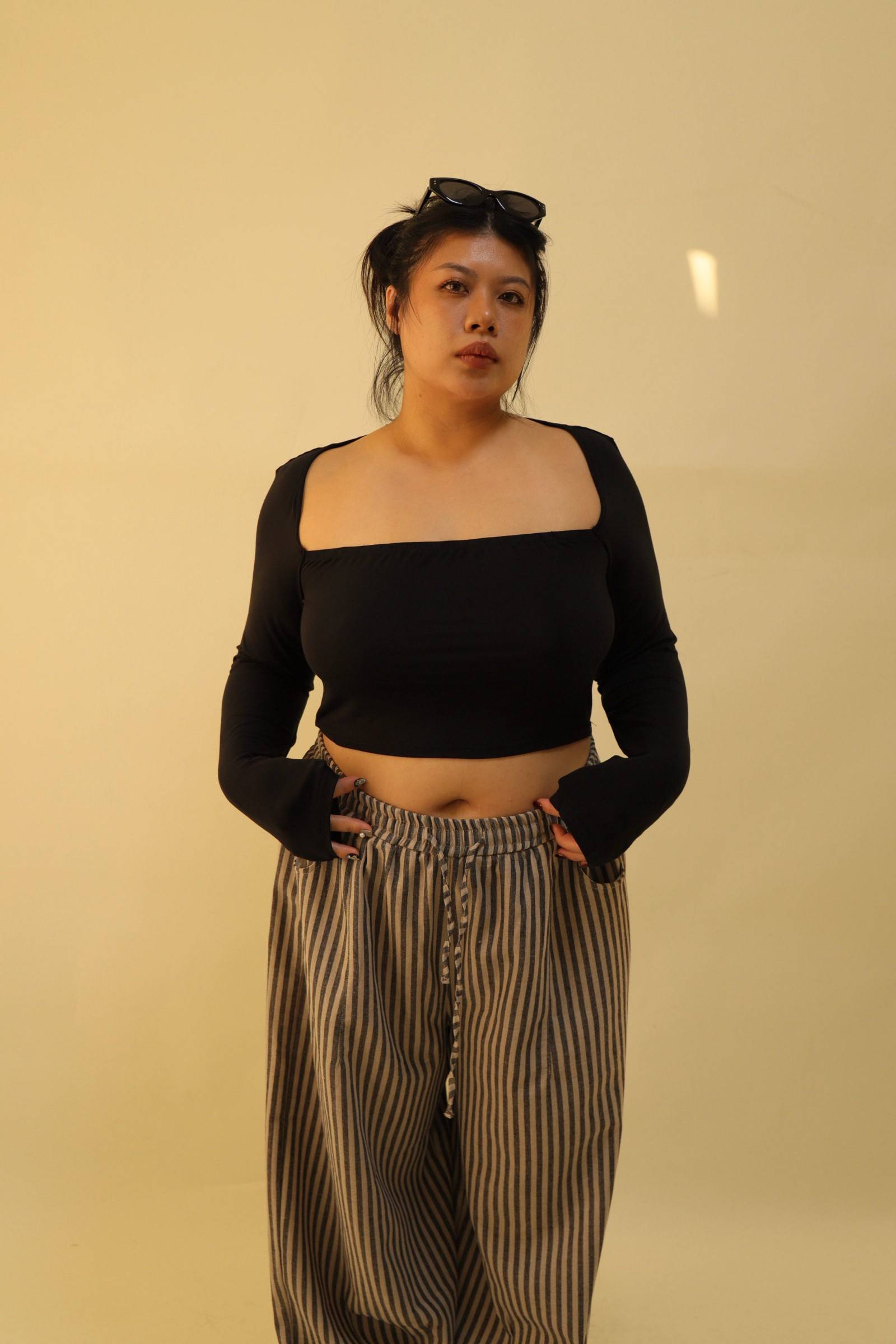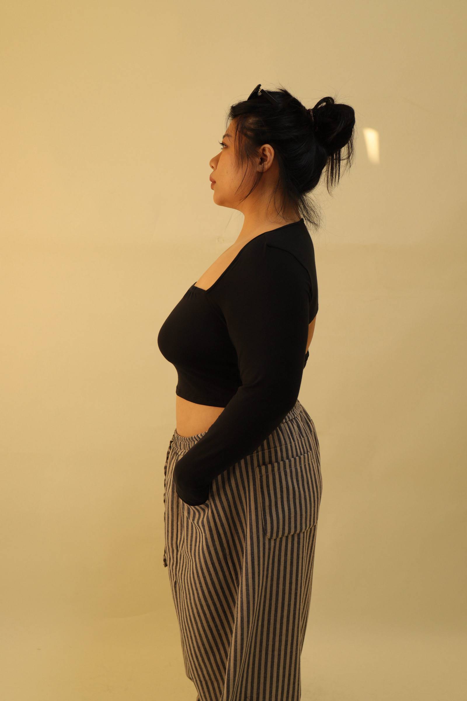 直角肩平口短版上衣(黑),LEILASHAW 你的美不該被數字綁架