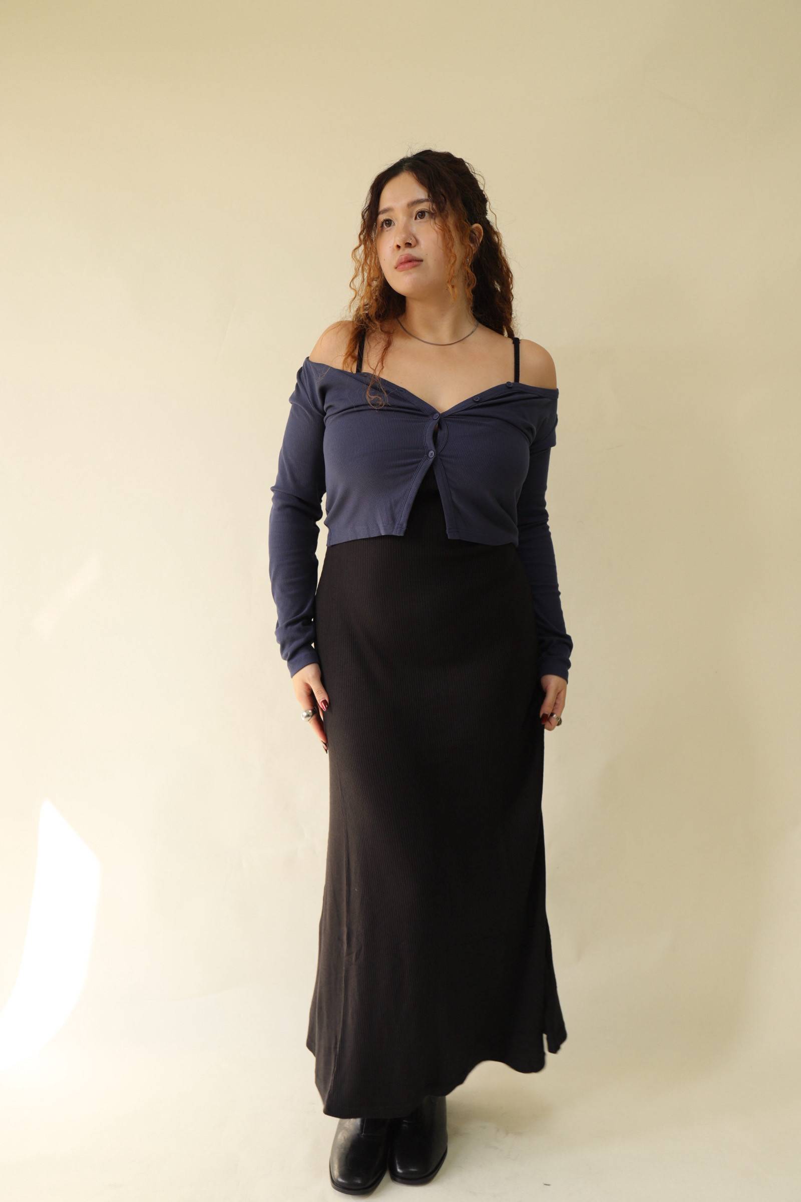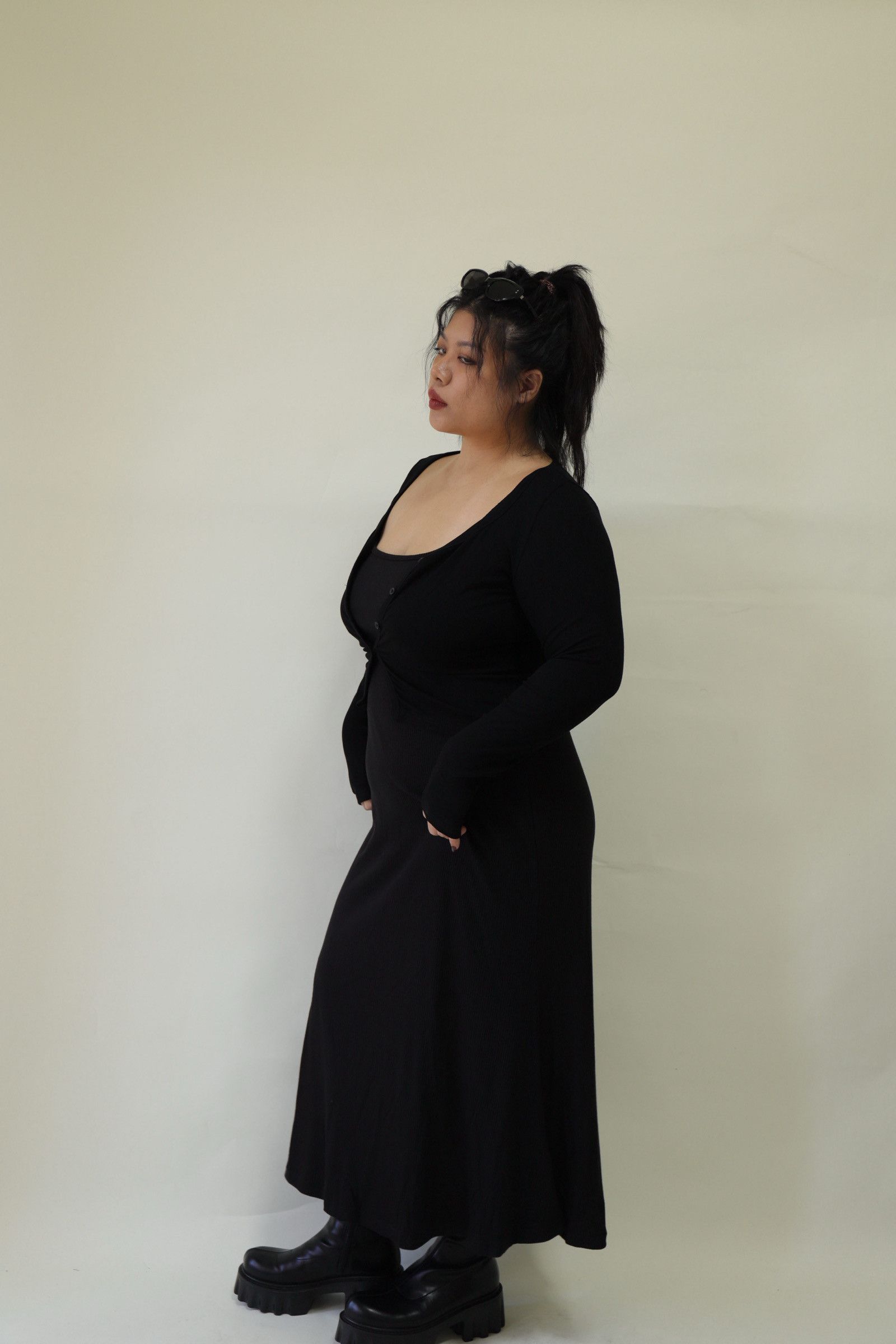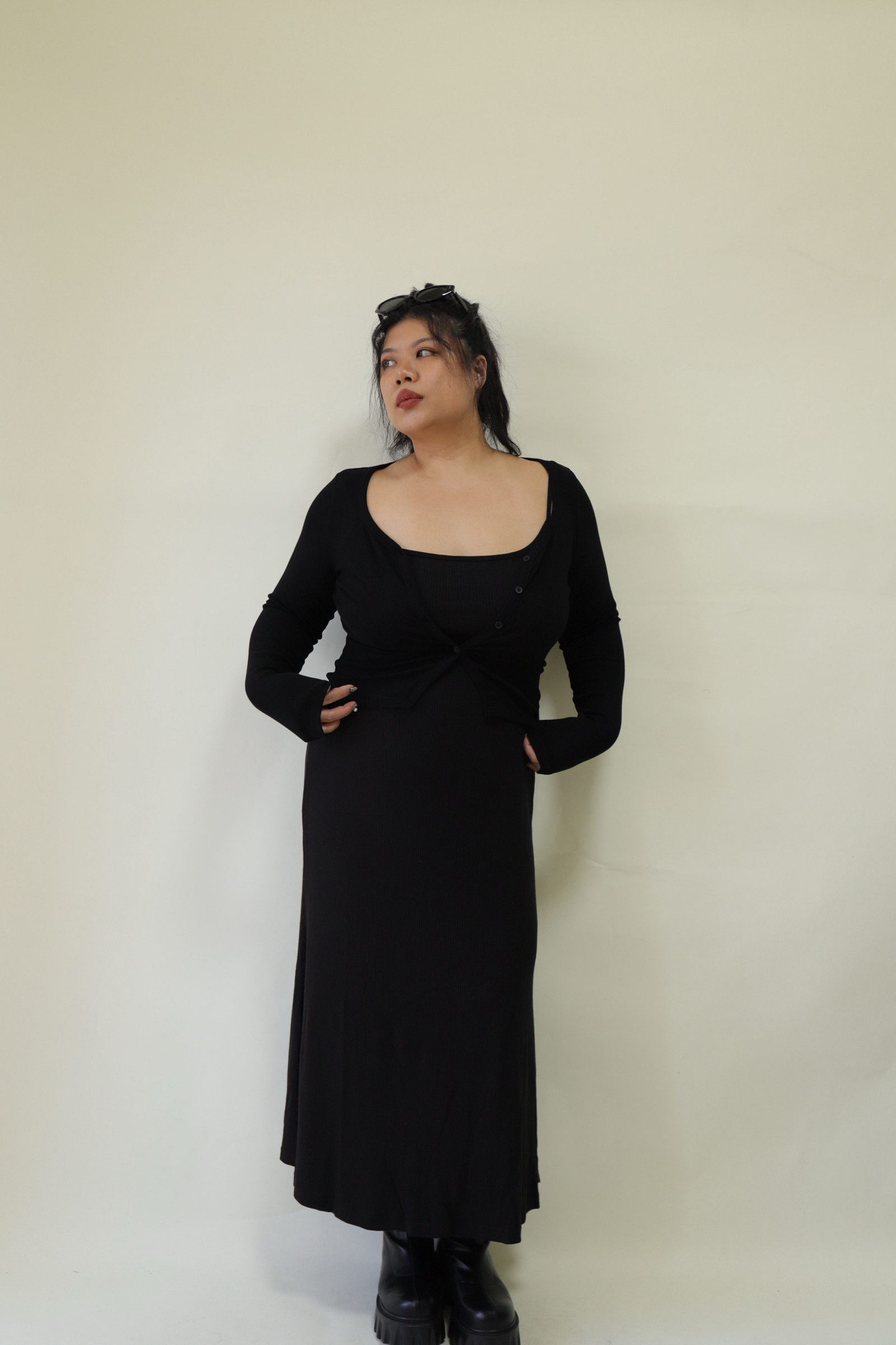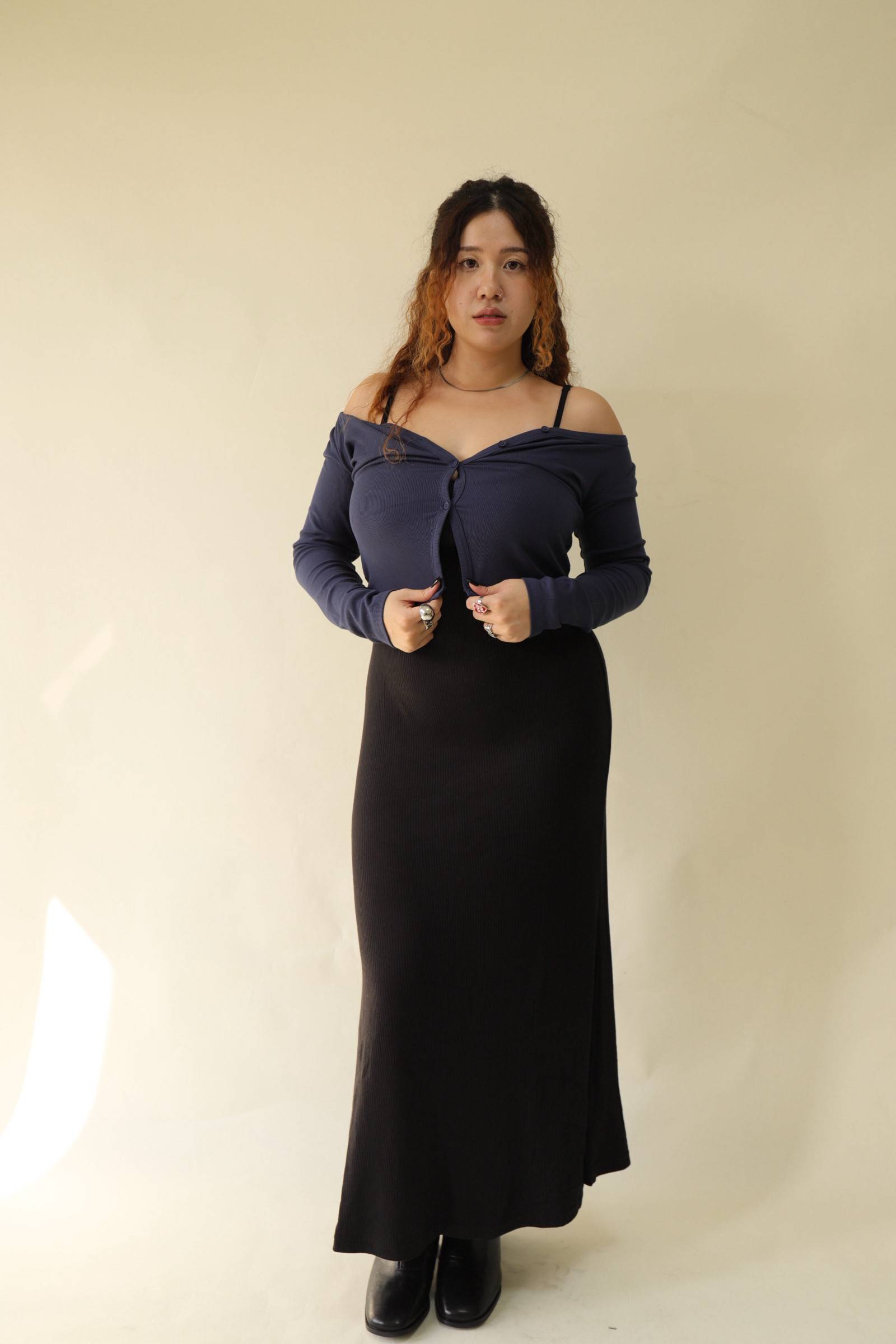【 EASE 】仿羊絨細肩精緻洋裝(黑)