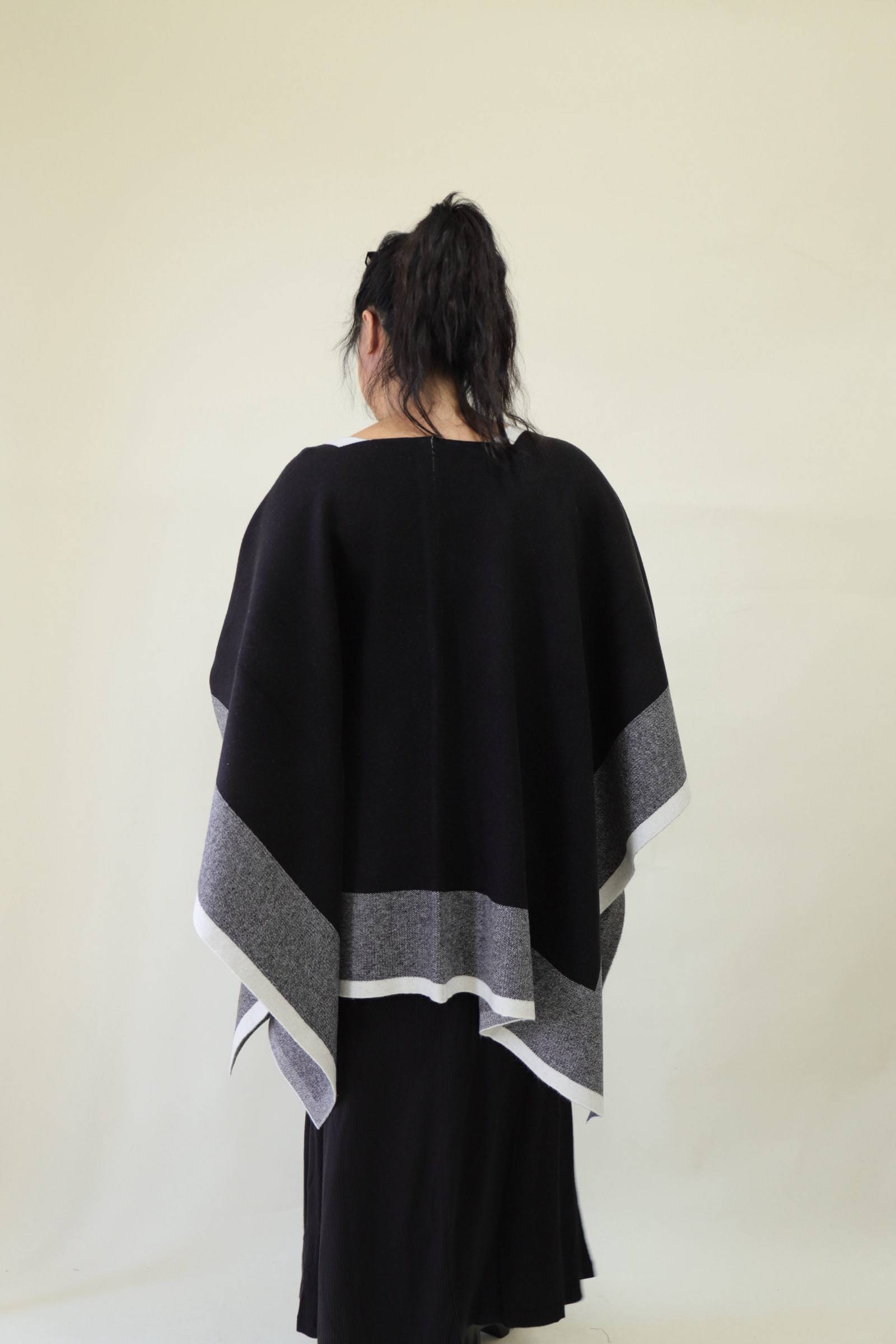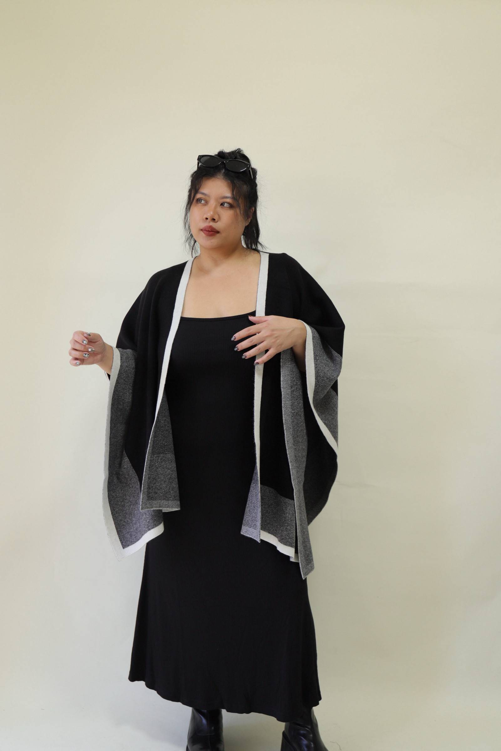 【 EASE 】老錢風針織撞色斗篷披肩 (黑)