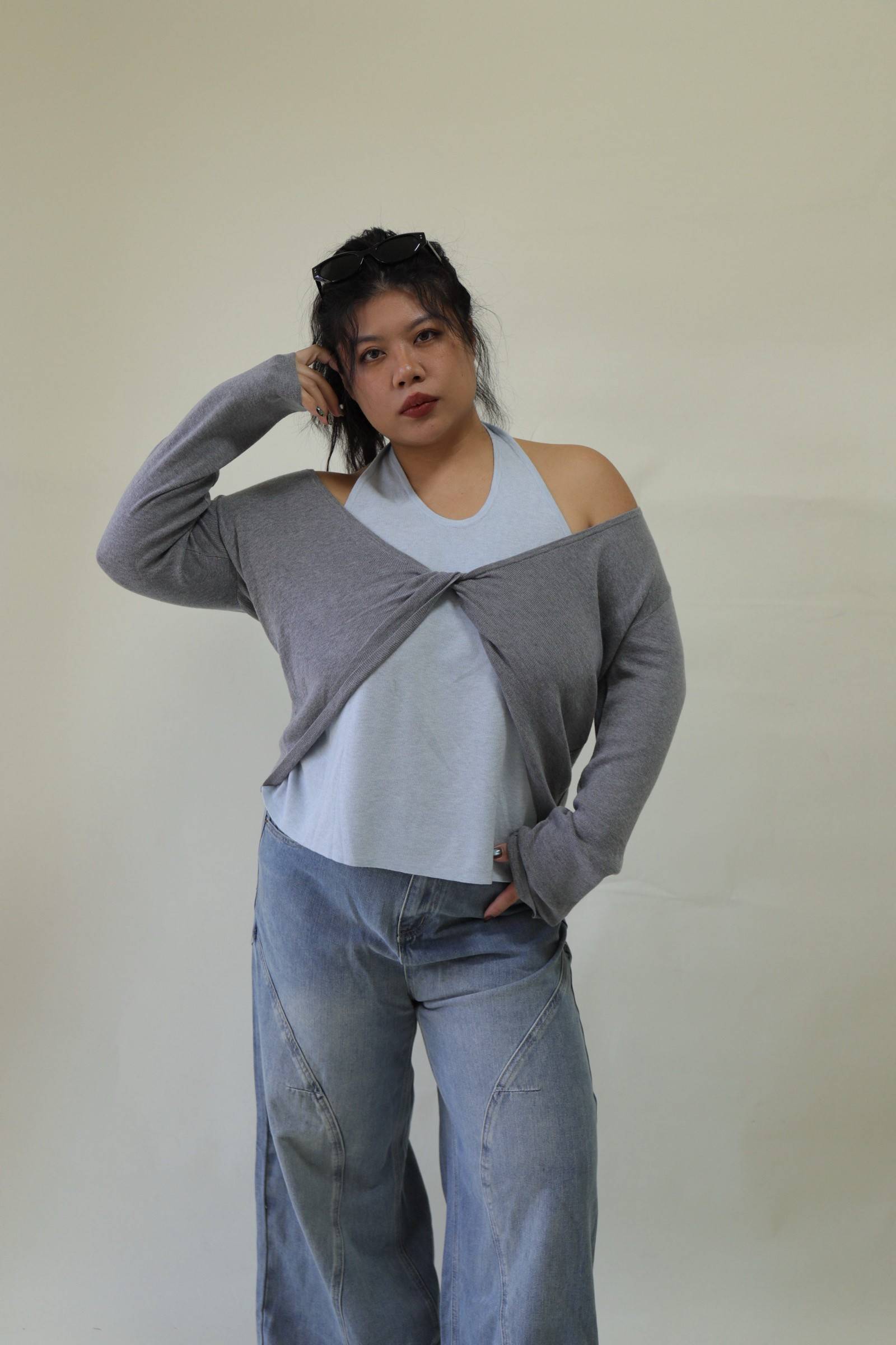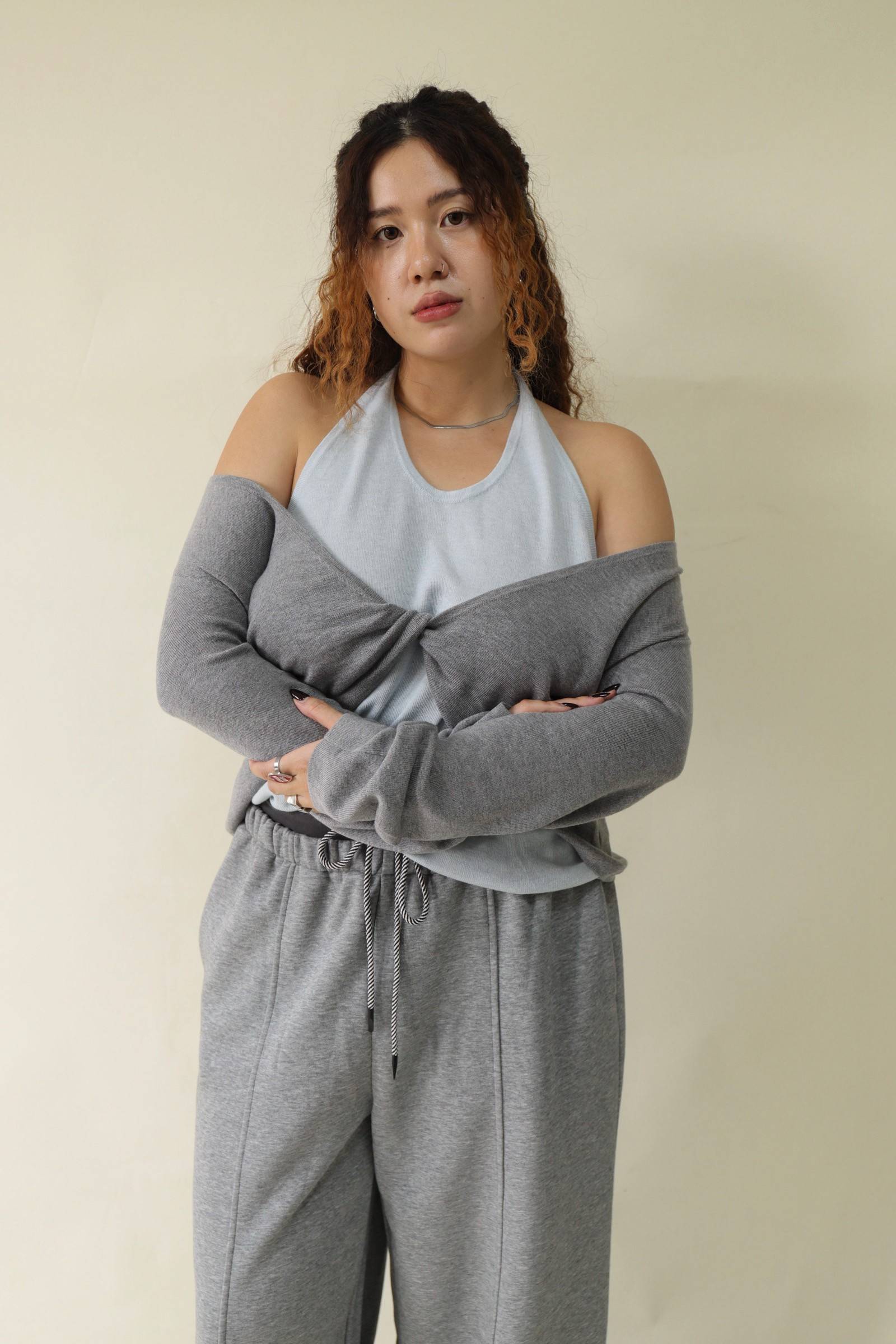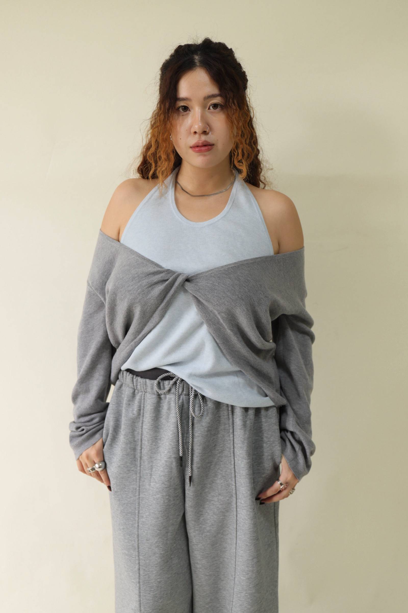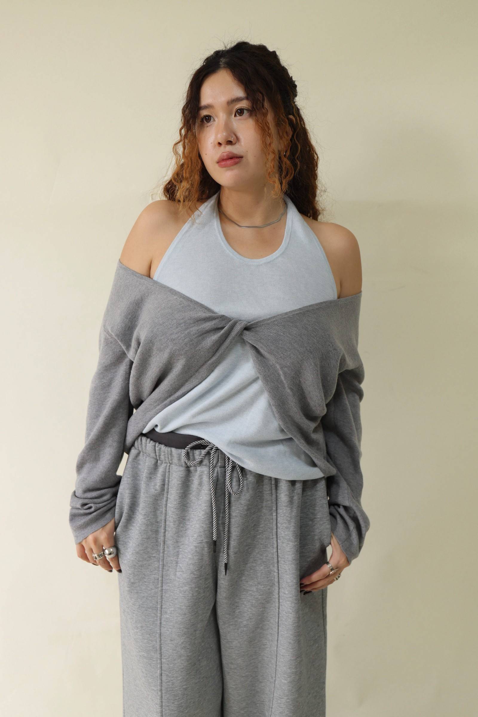 【EASE】掛脖假兩件針織上衣 (灰),LEILASHAW 你的美不該被數字綁架