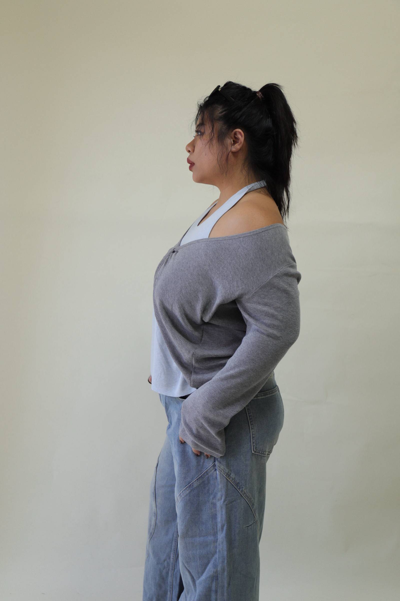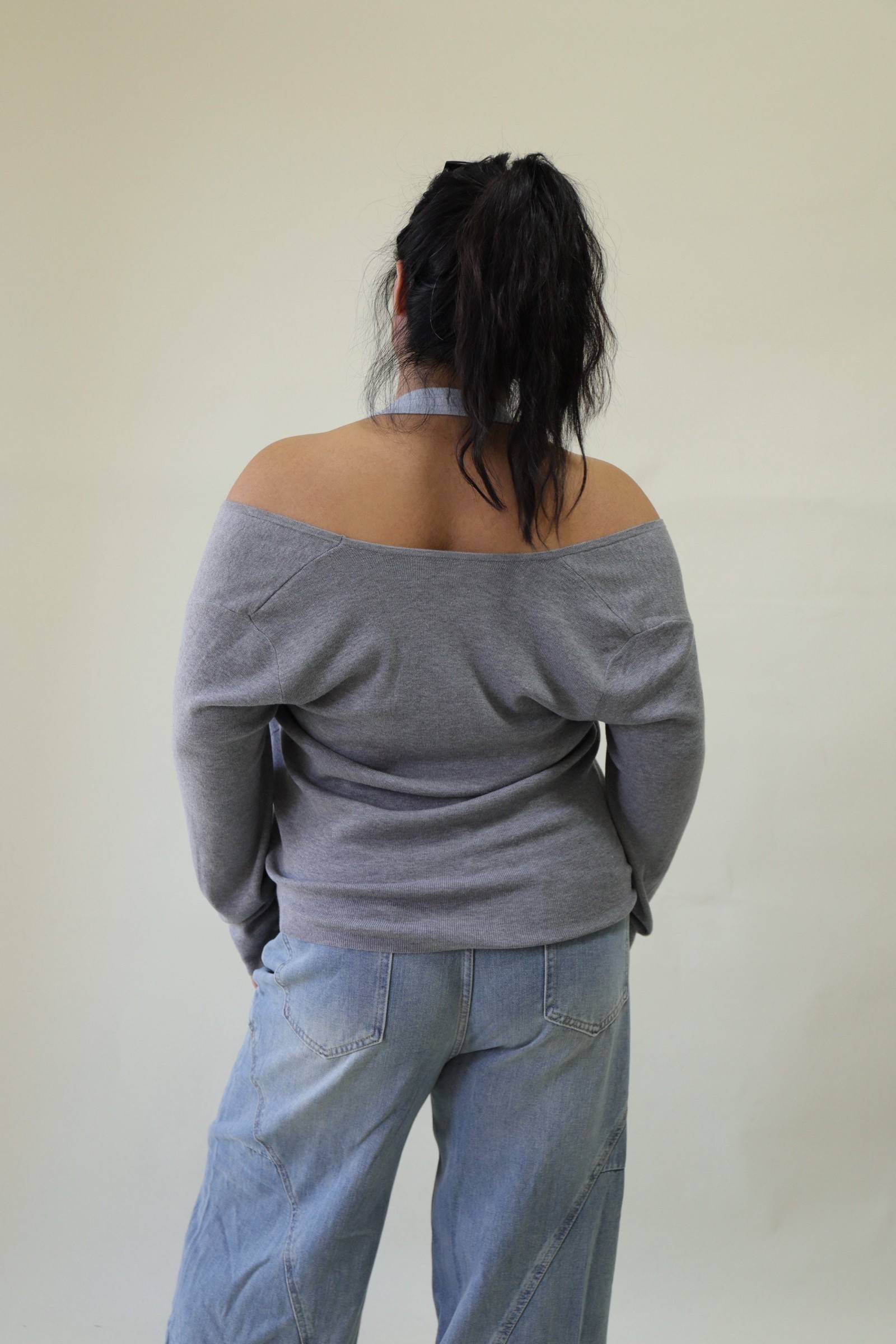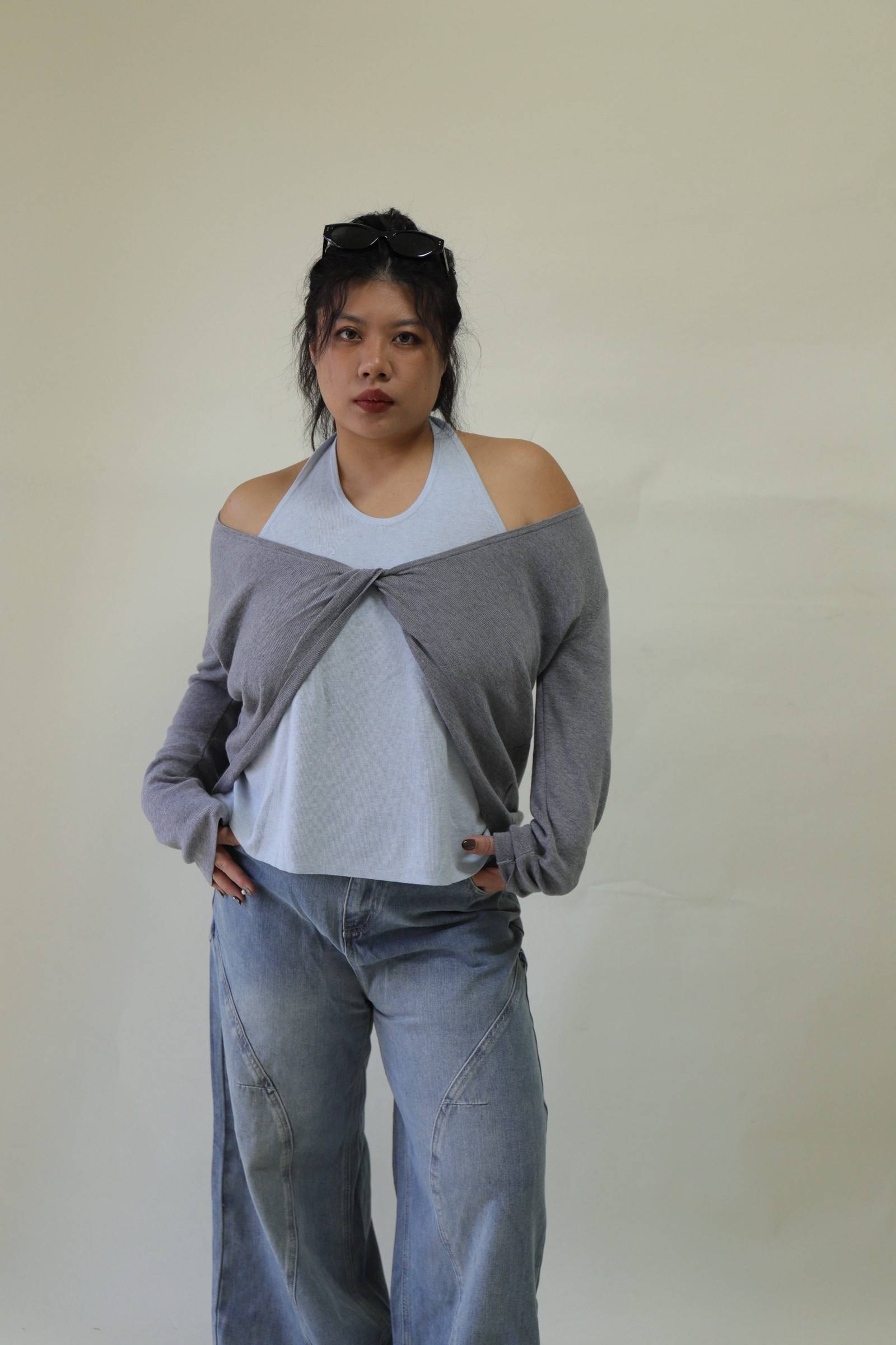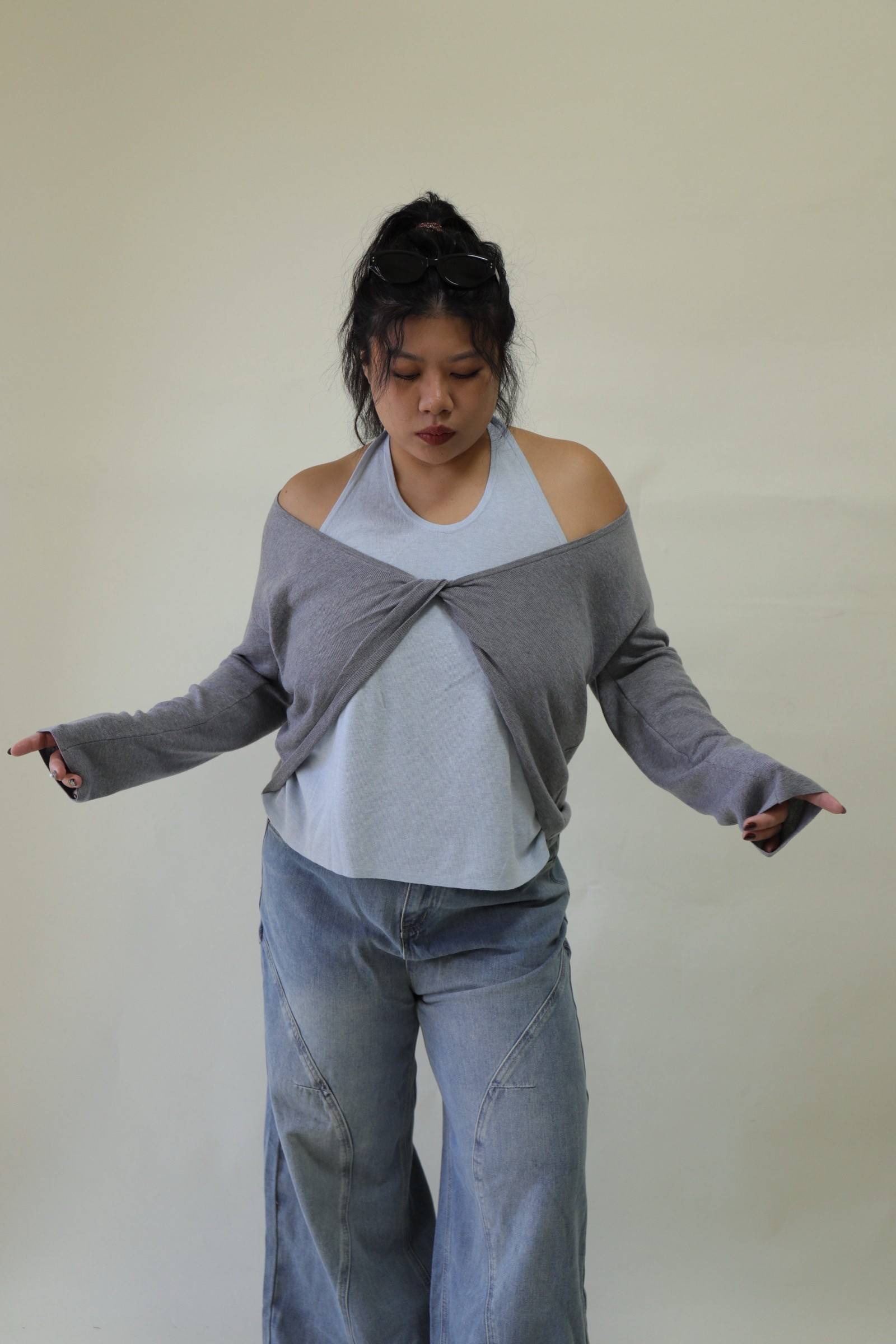 【EASE】掛脖假兩件針織上衣 (灰),LEILASHAW 你的美不該被數字綁架