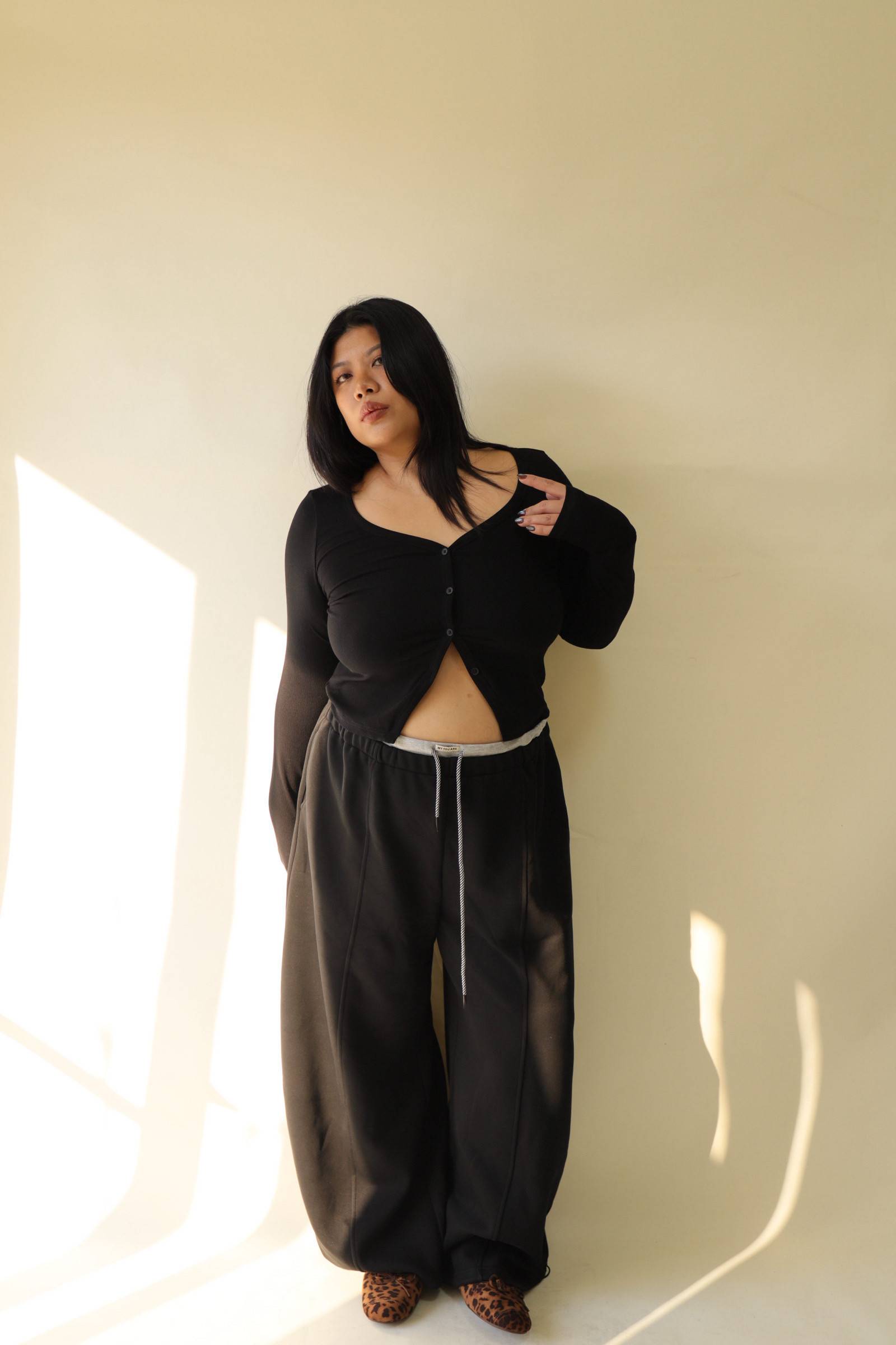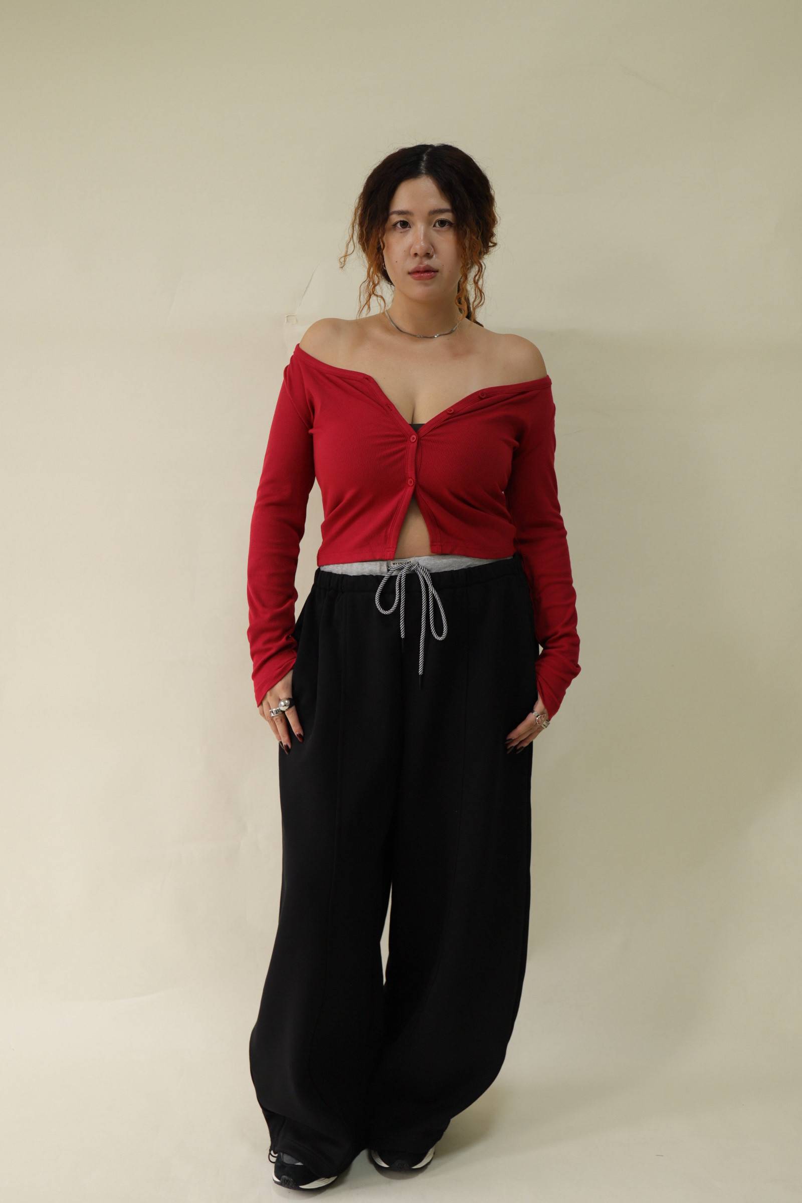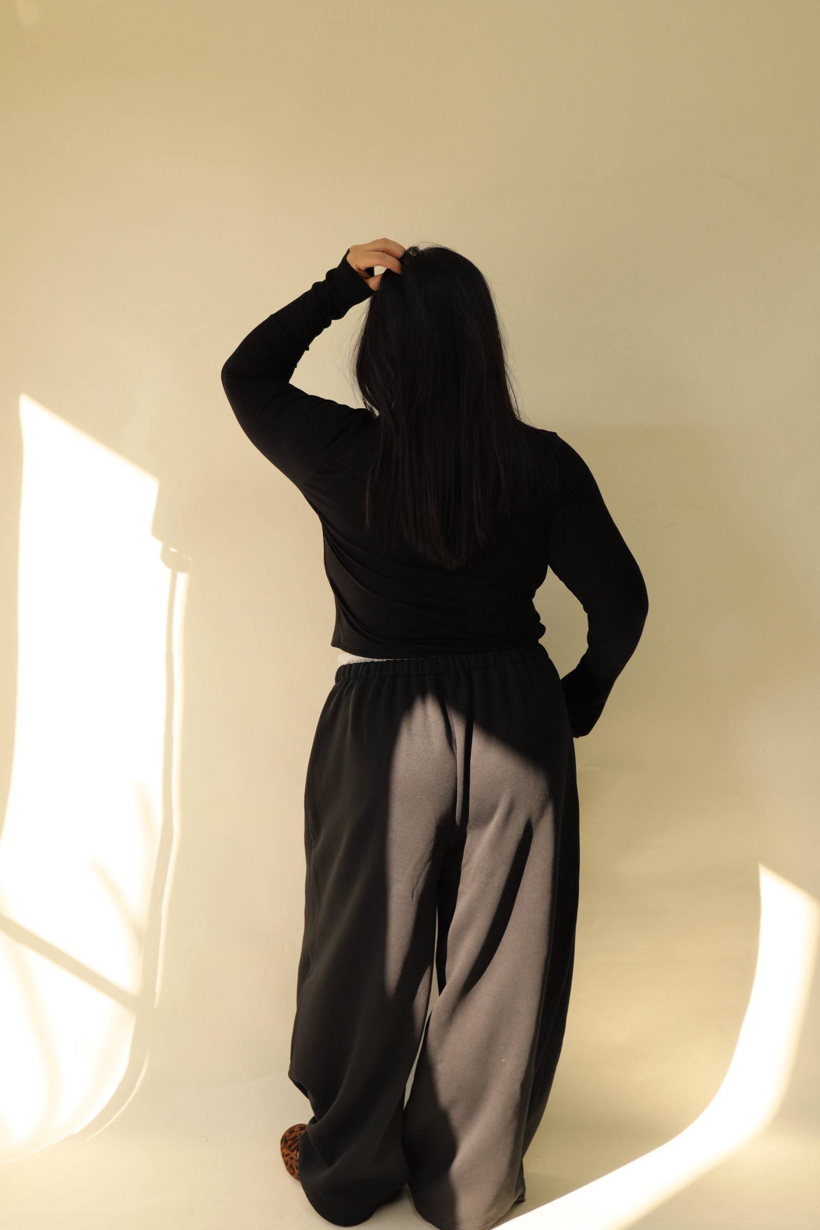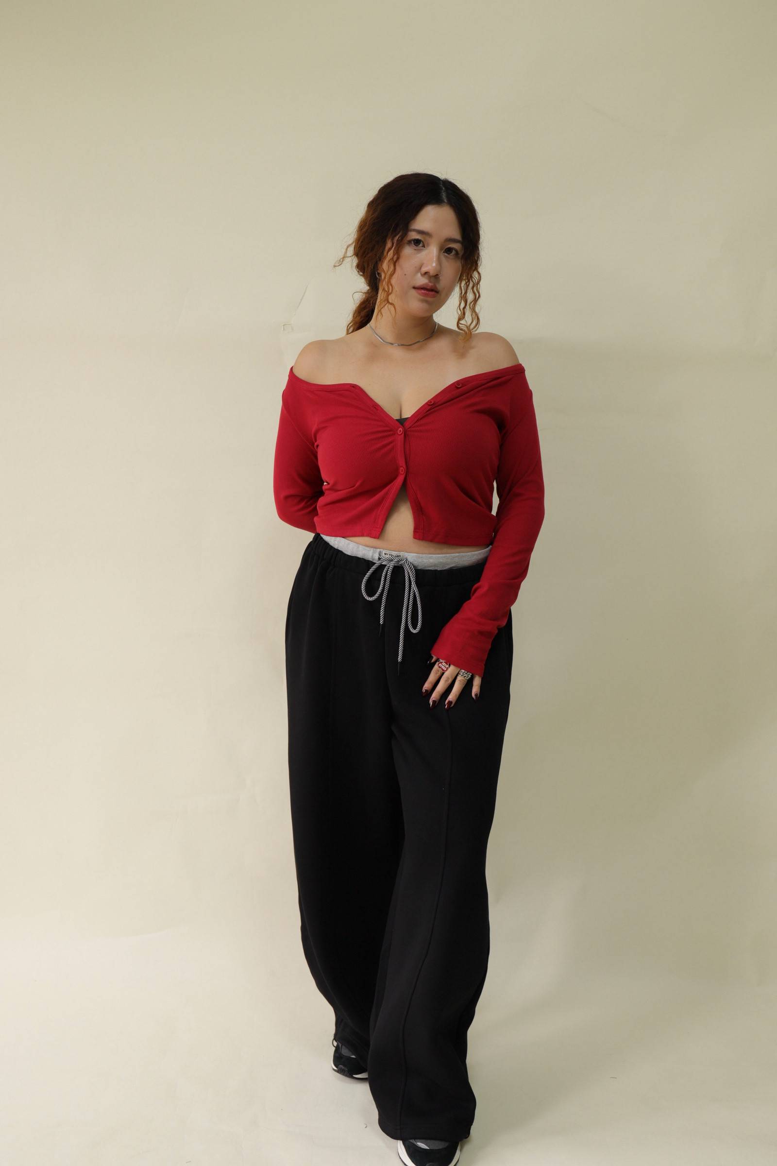 【EASE】設計感雙層抽繩棉褲 (黑),LEILASHAW 你的美不該被數字綁架