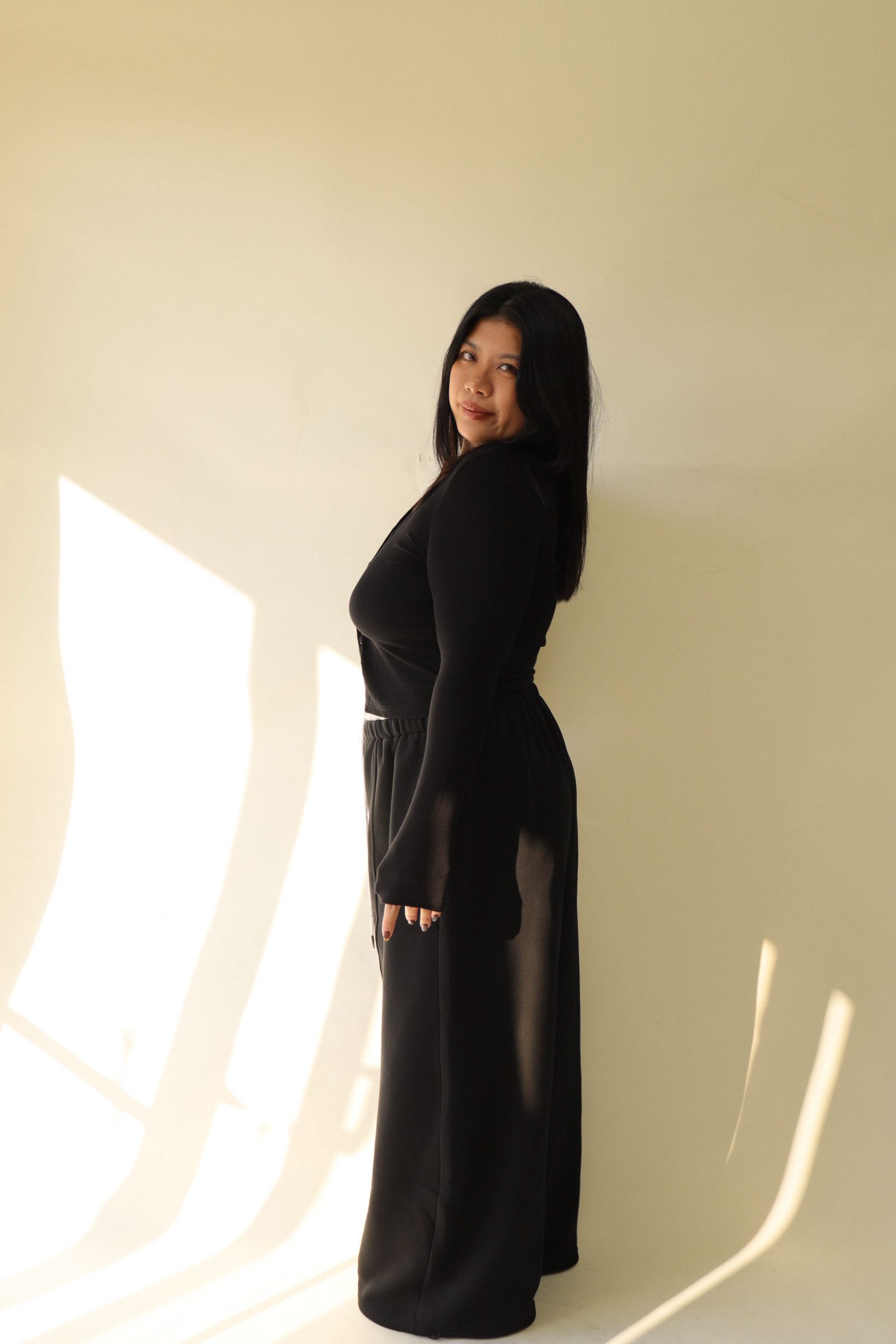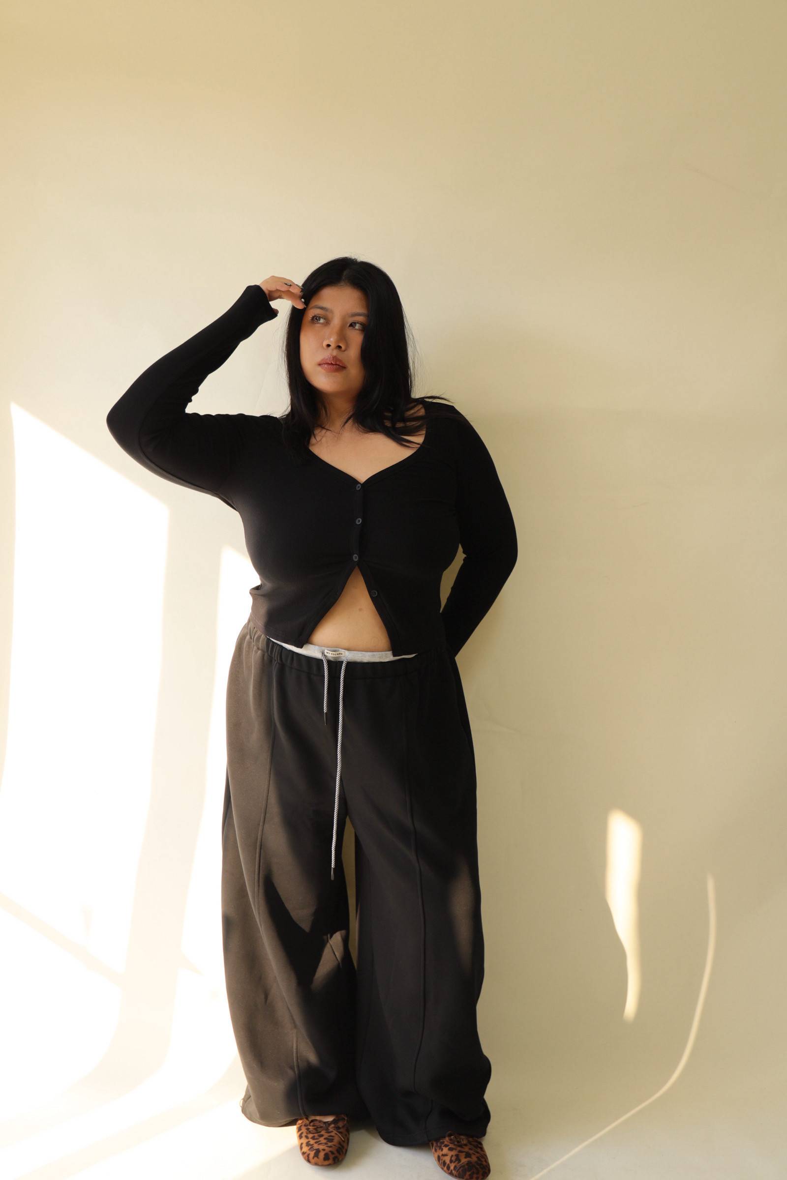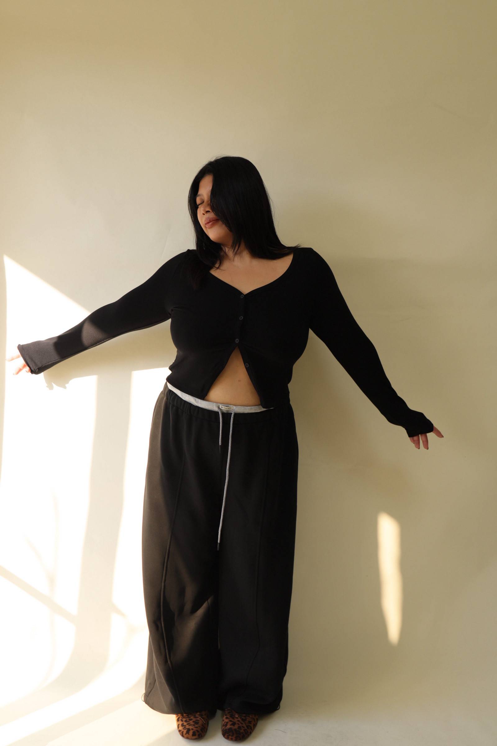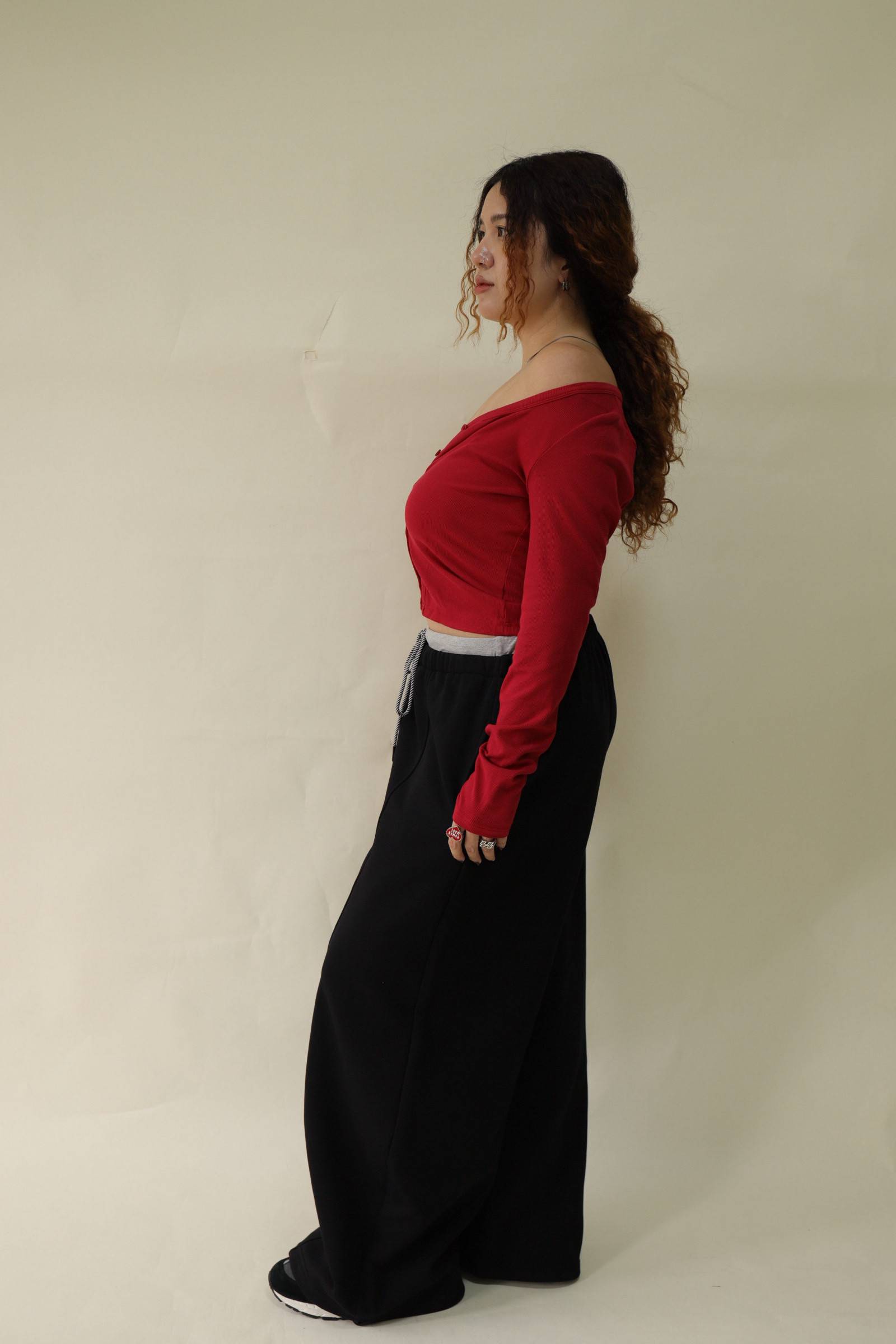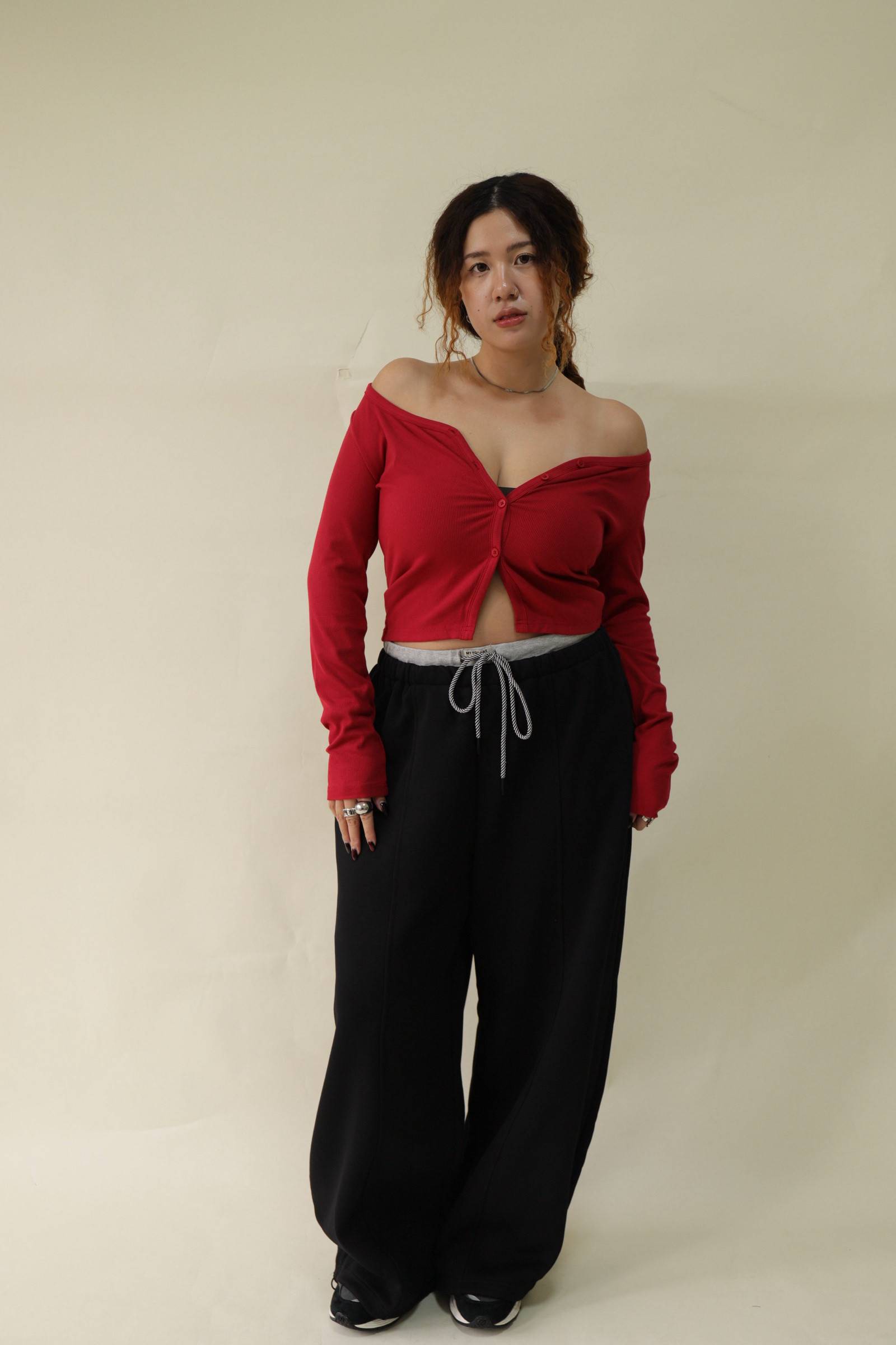 【EASE】設計感雙層抽繩棉褲 (黑),LEILASHAW 你的美不該被數字綁架
