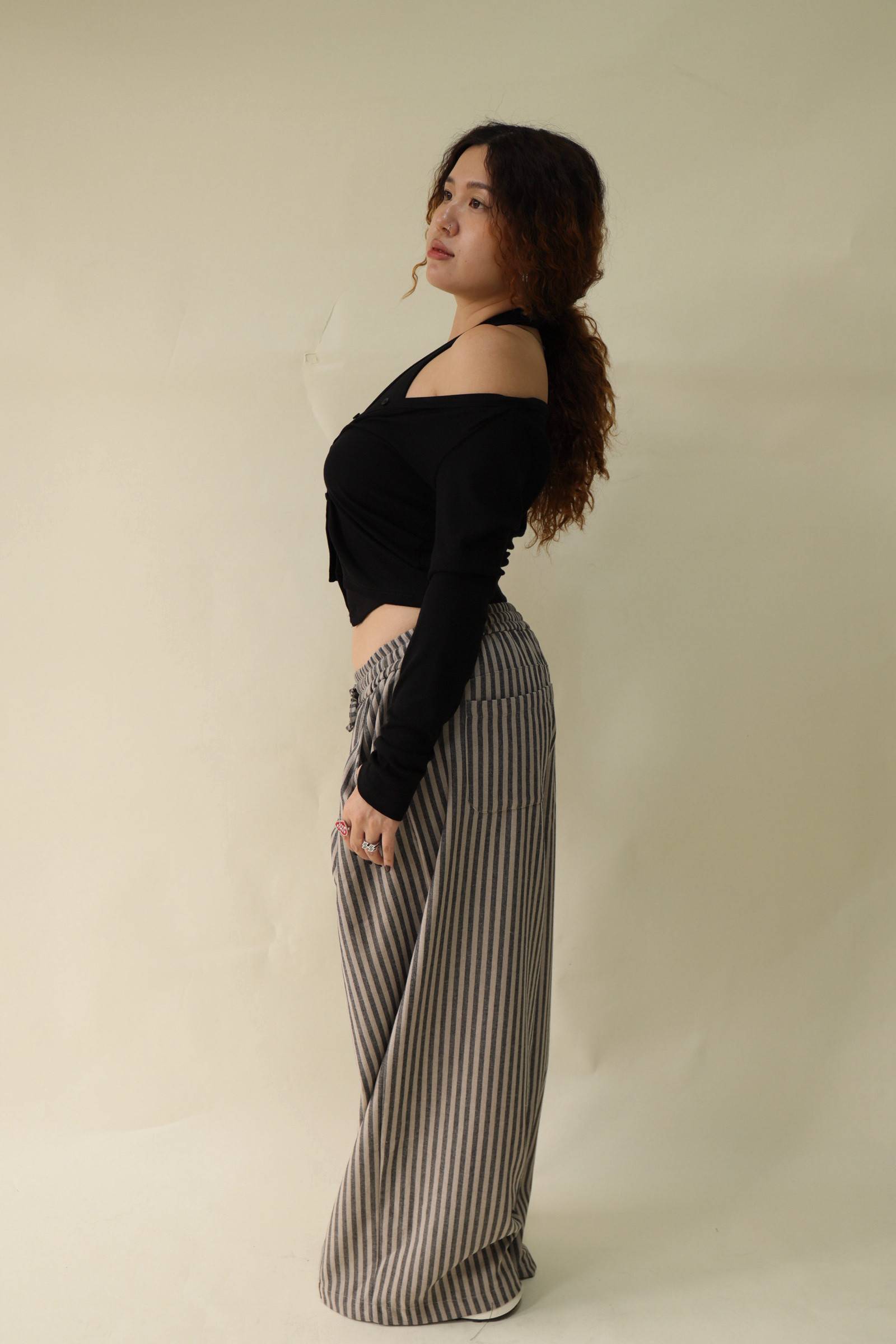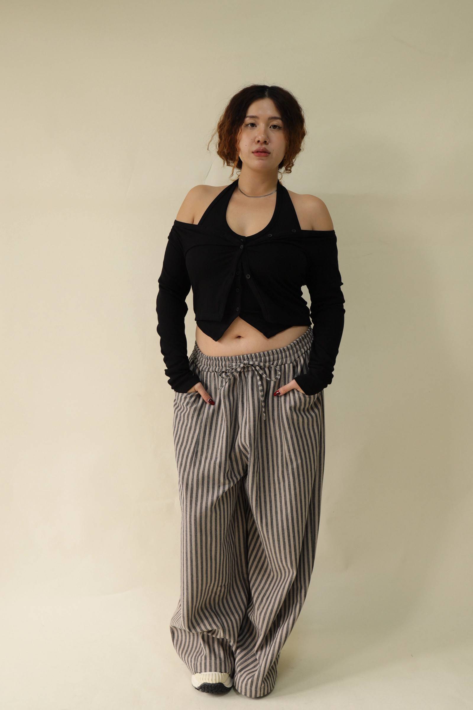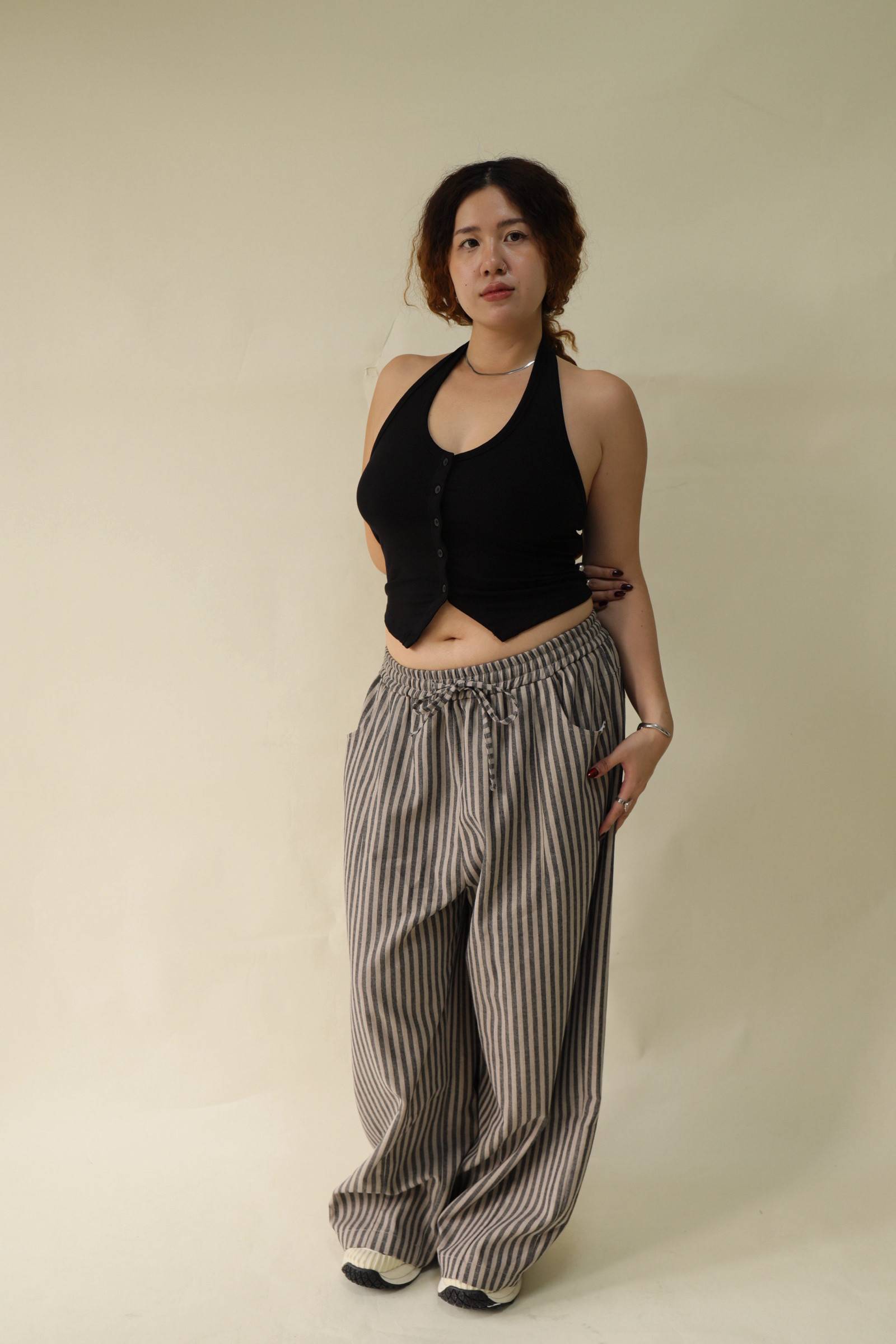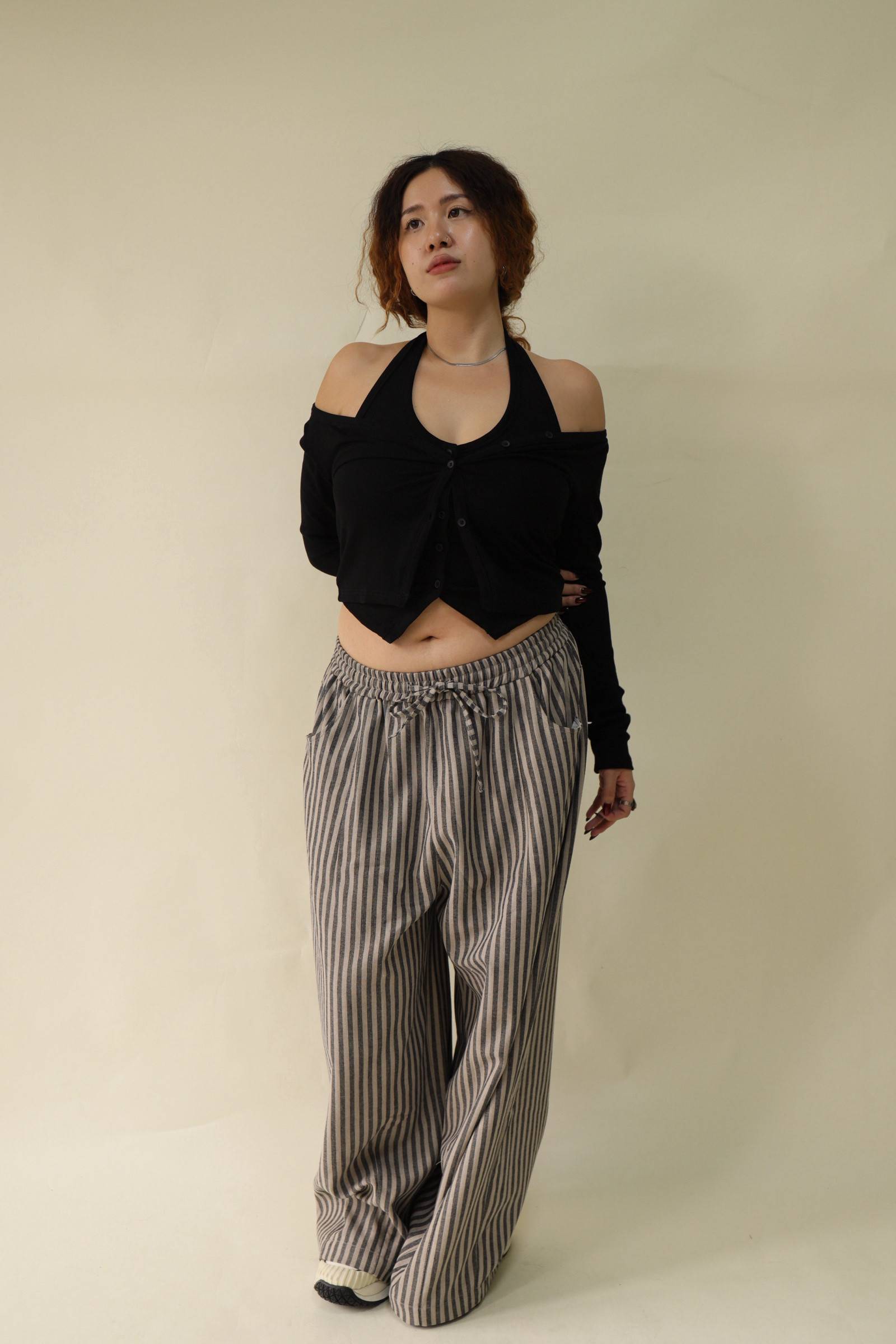 【EASE】藏肉系不鬆垮條紋寬褲(栗子咖)