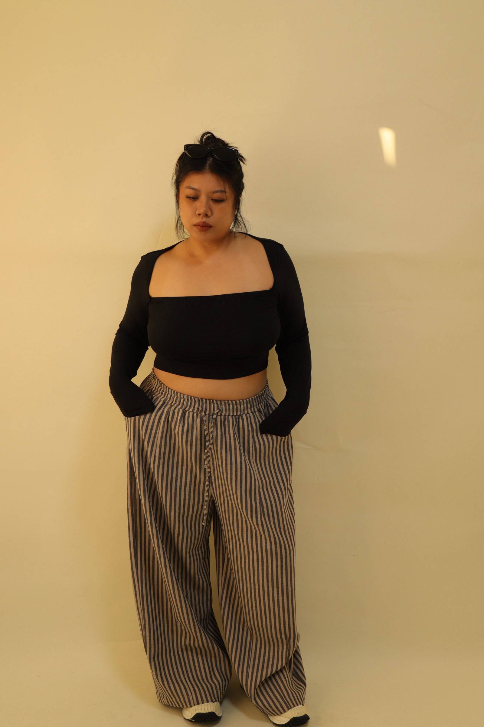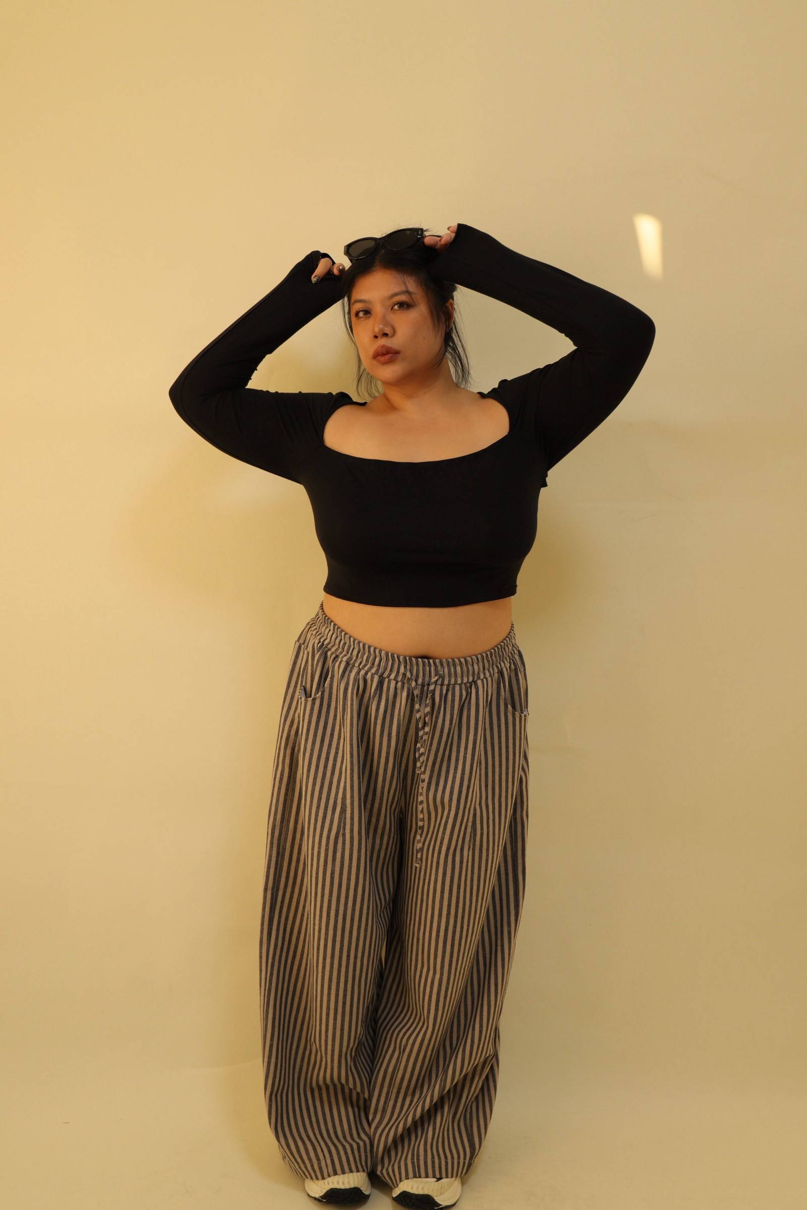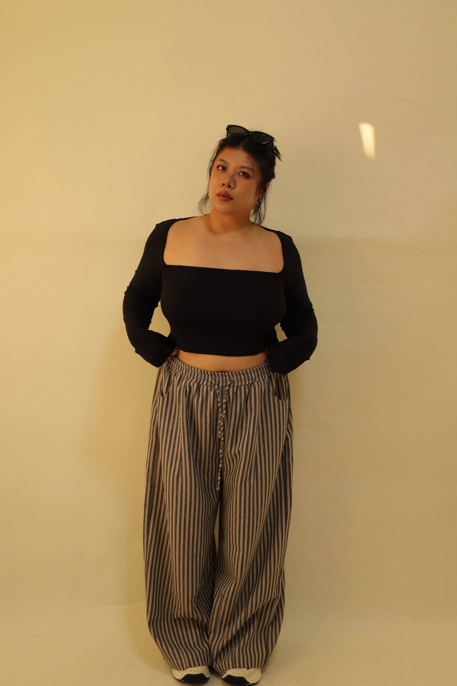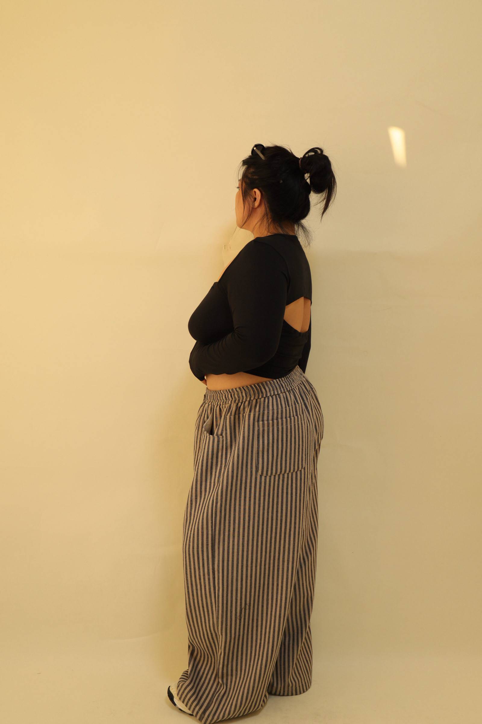【EASE】藏肉系不鬆垮條紋寬褲(栗子咖)