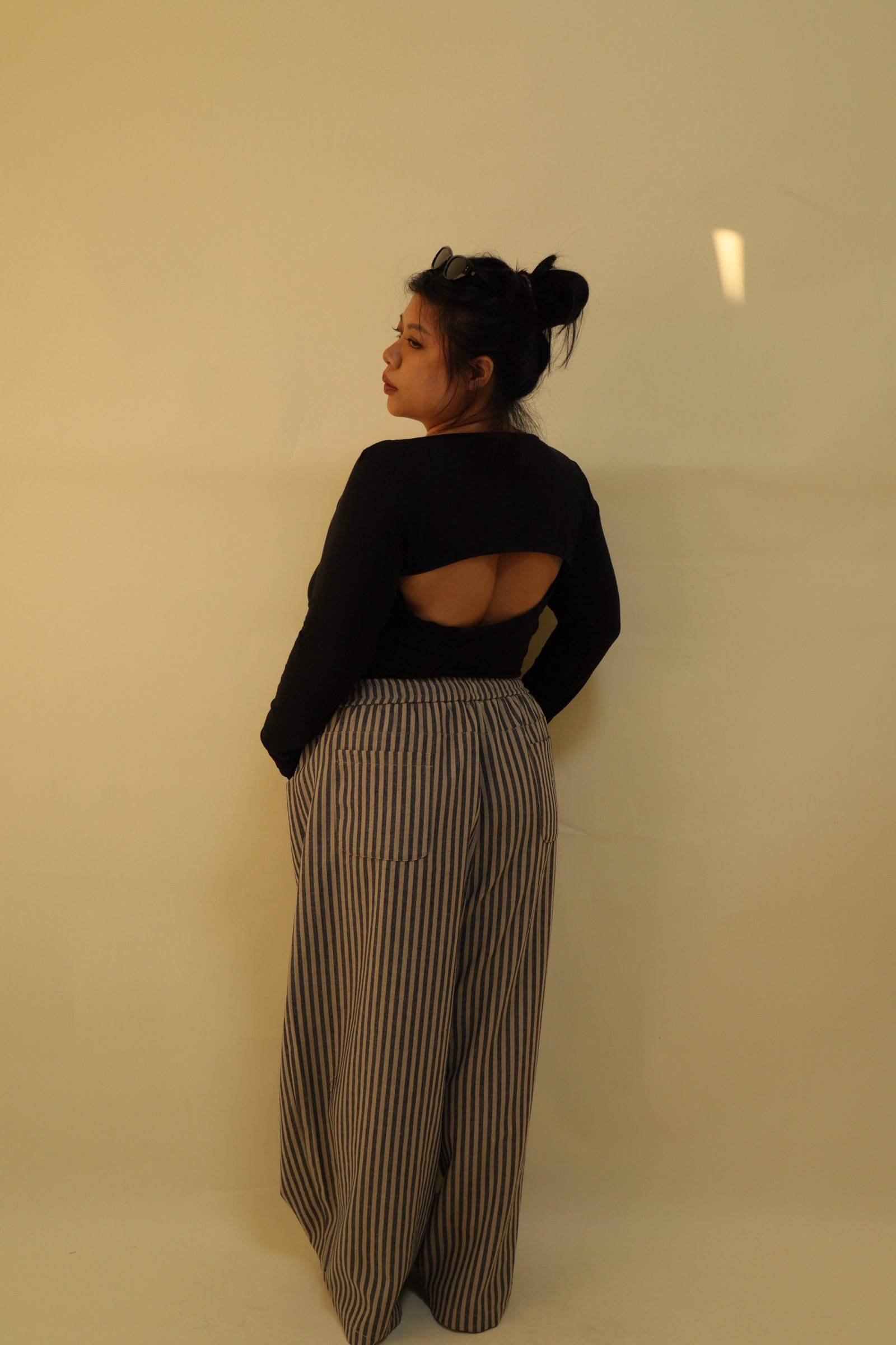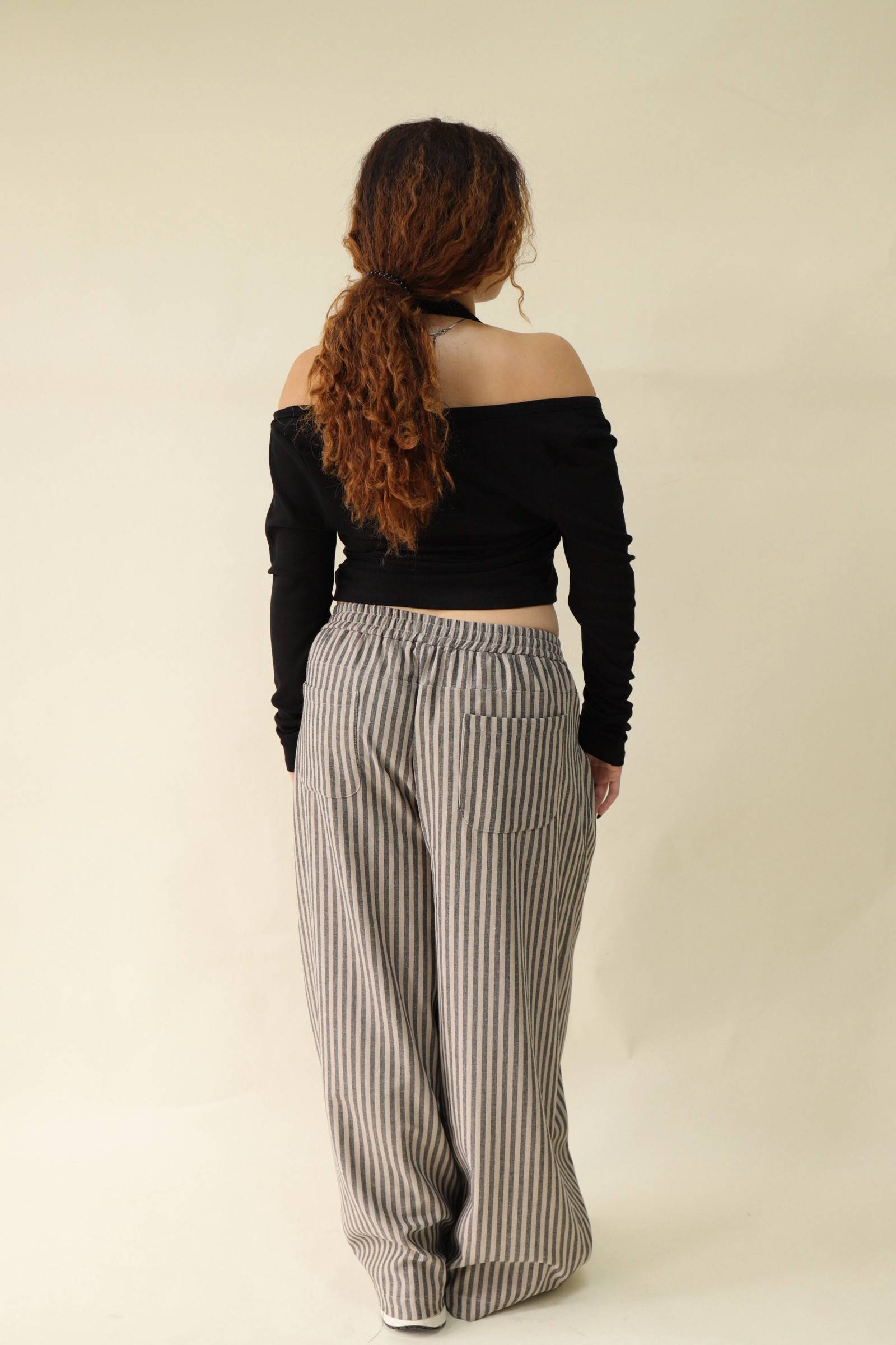 【EASE】藏肉系不鬆垮條紋寬褲(栗子咖),LEILASHAW 你的美不該被數字綁架