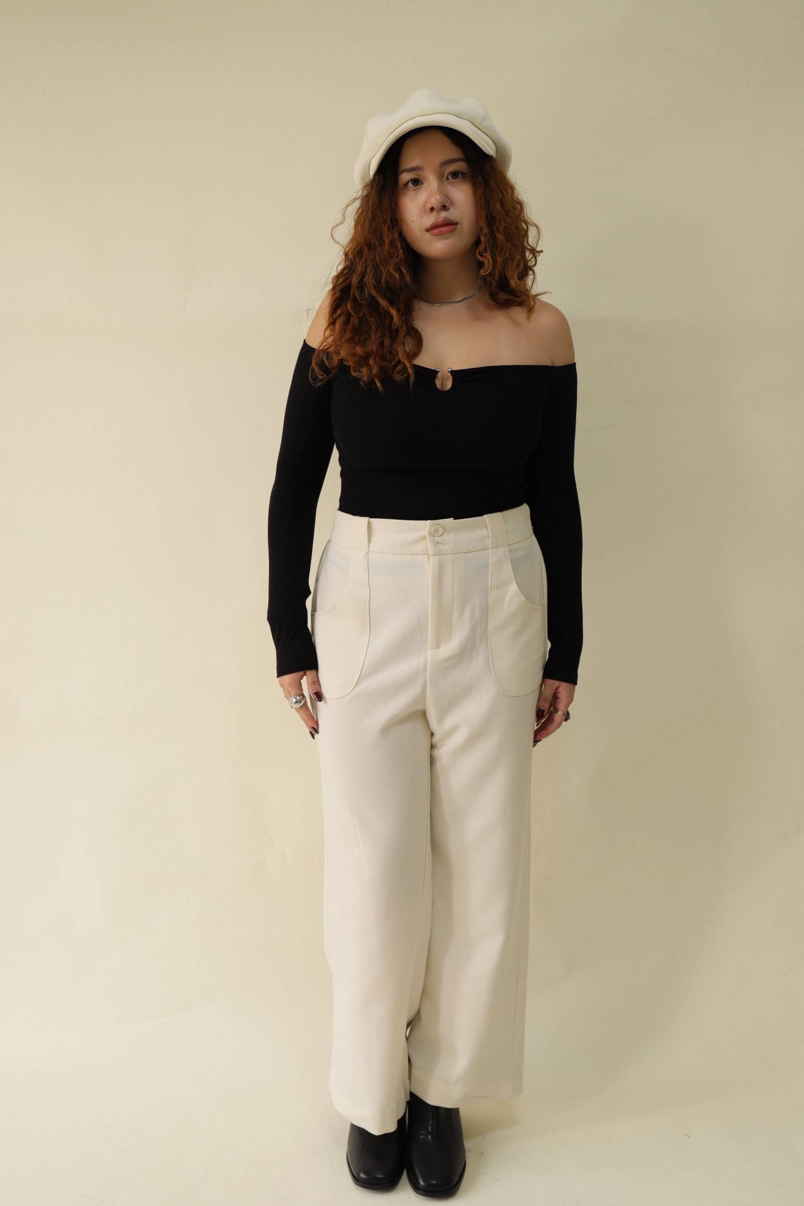 【EASE】長腿系修胯斜紋直筒褲(杏)