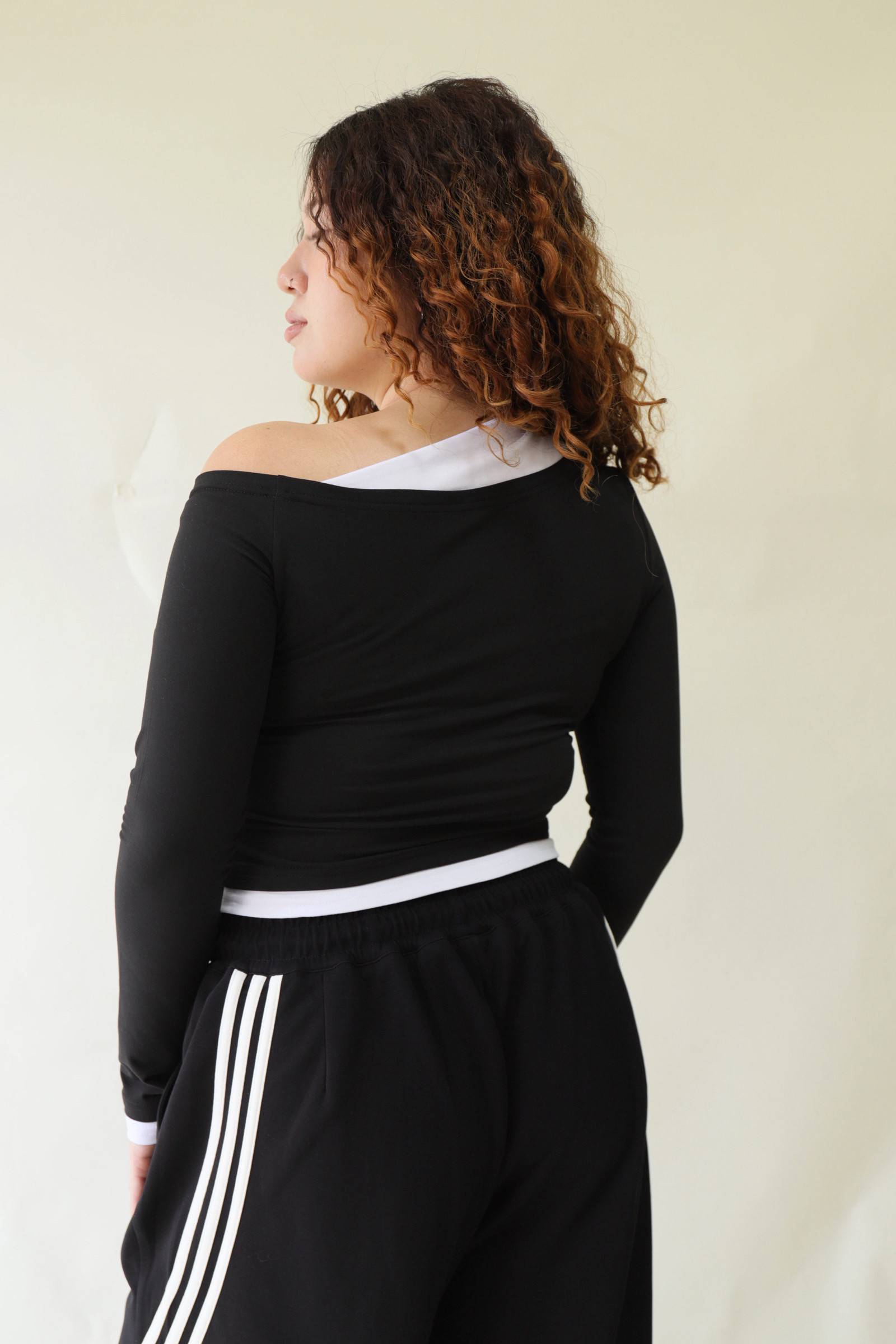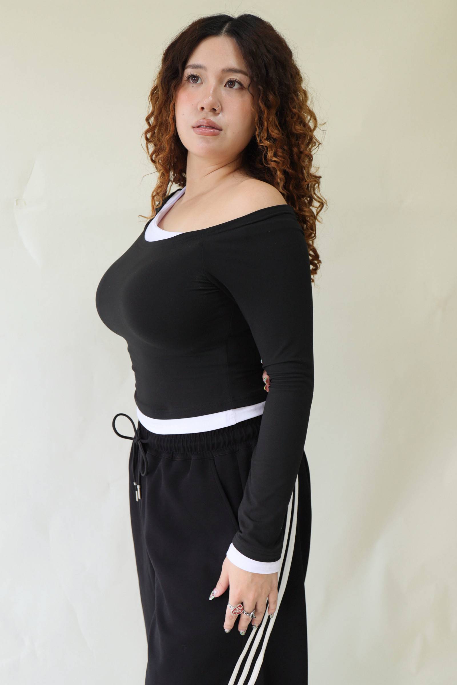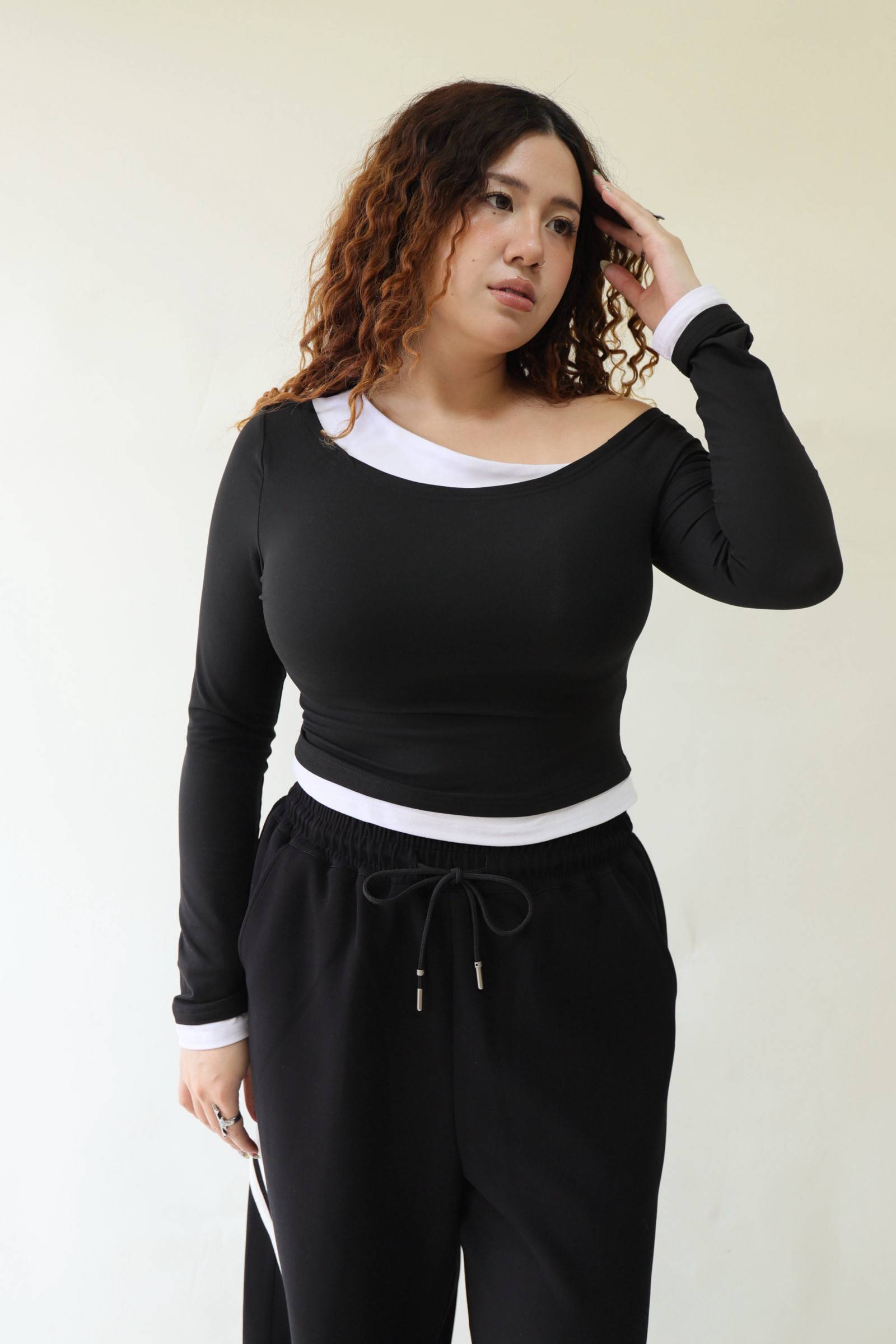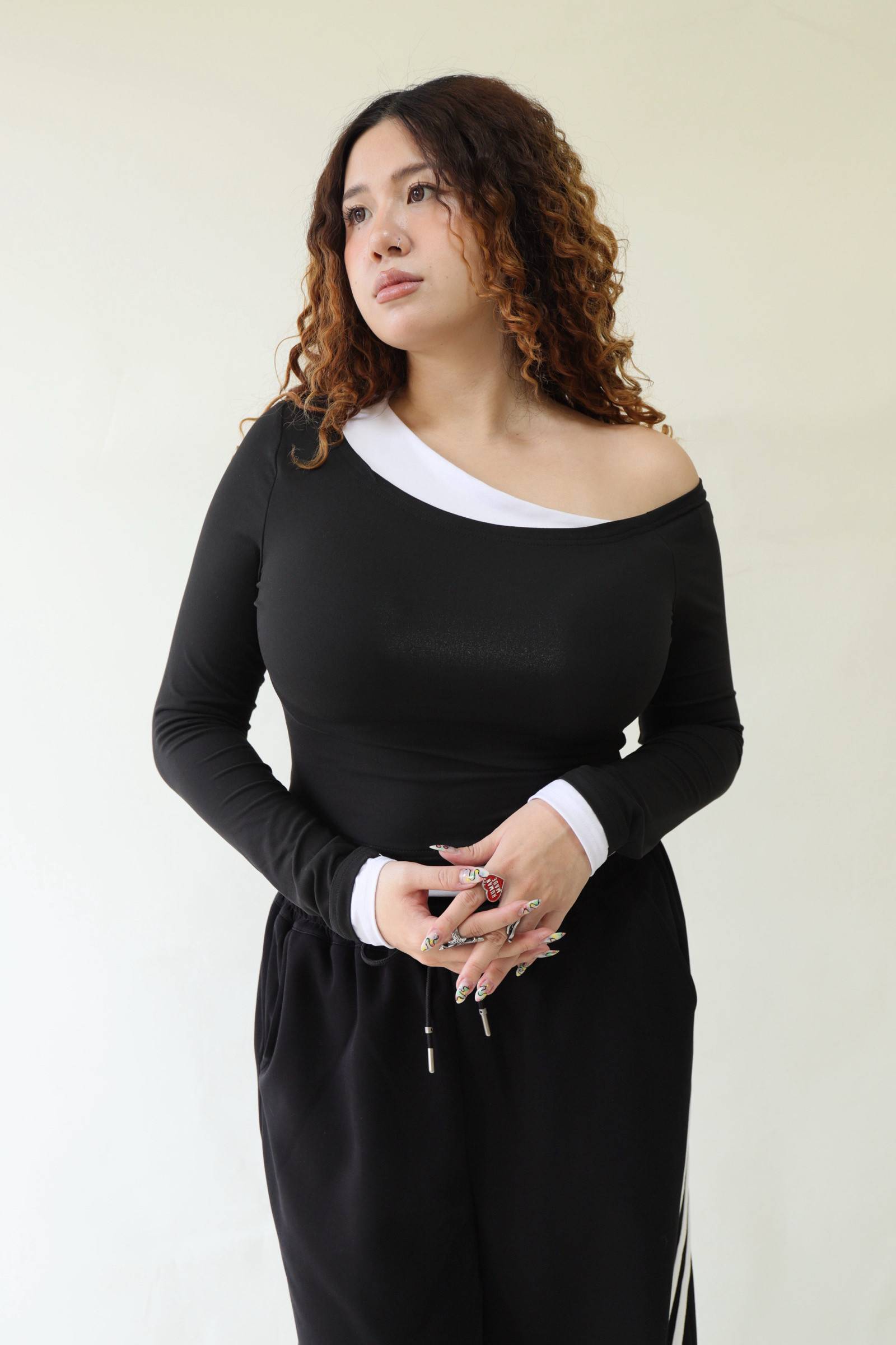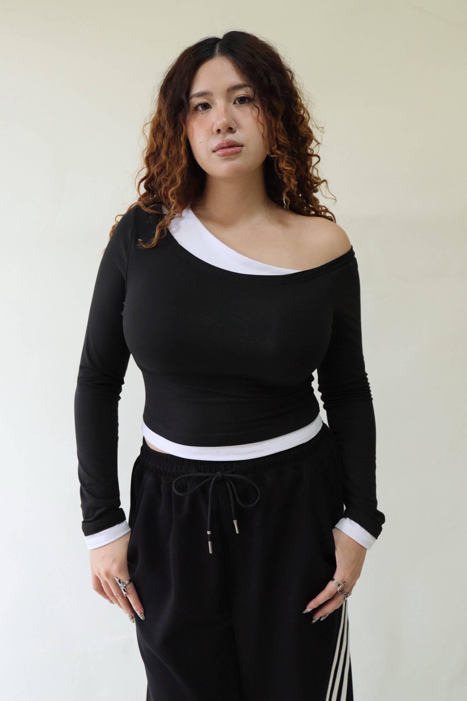 撞色斜肩修身上衣,LEILASHAW 你的美不該被數字綁架