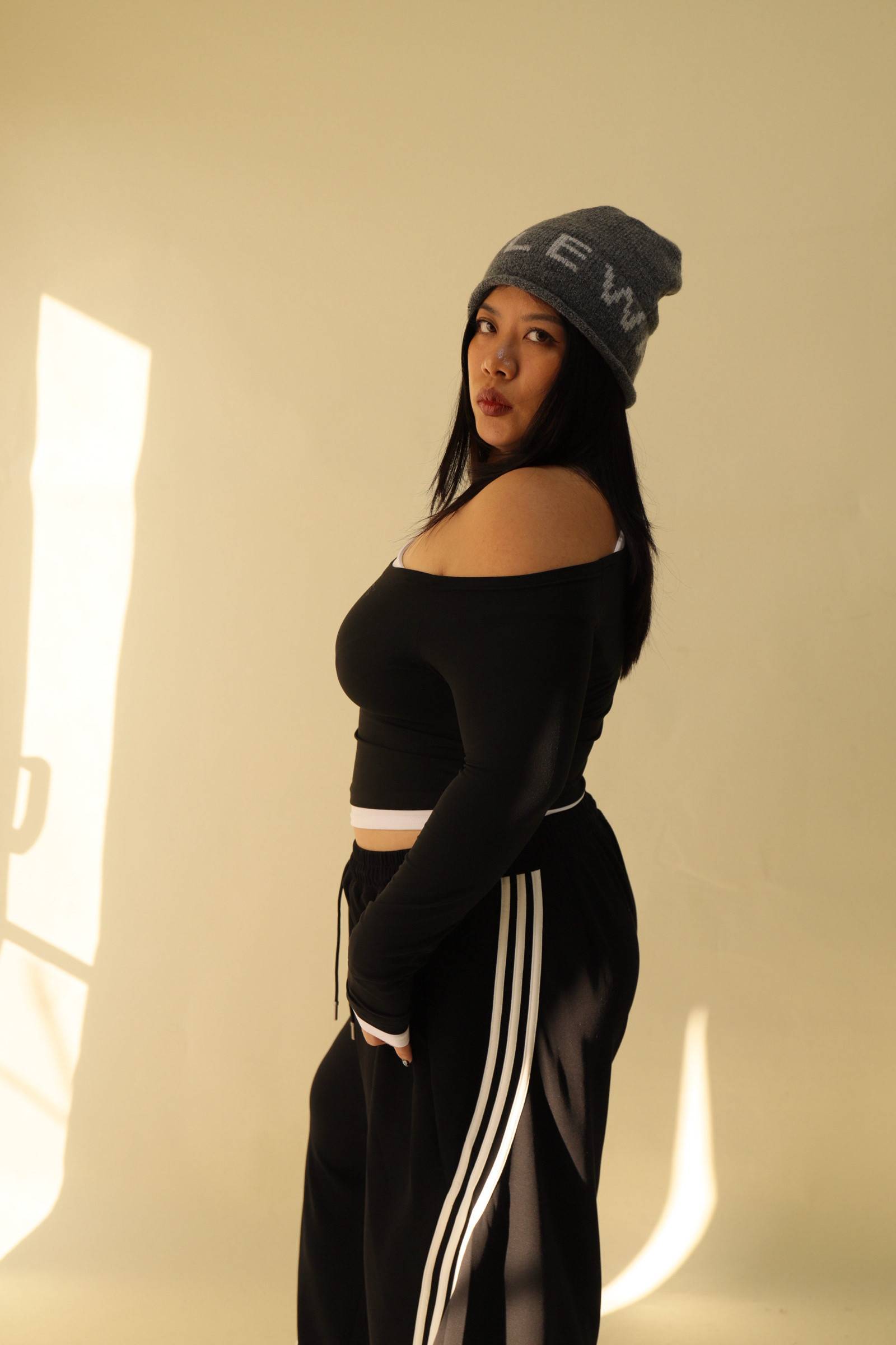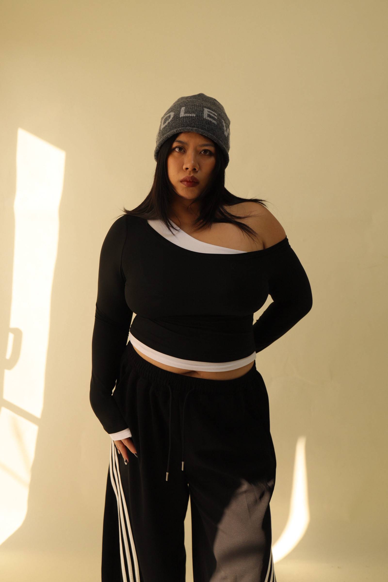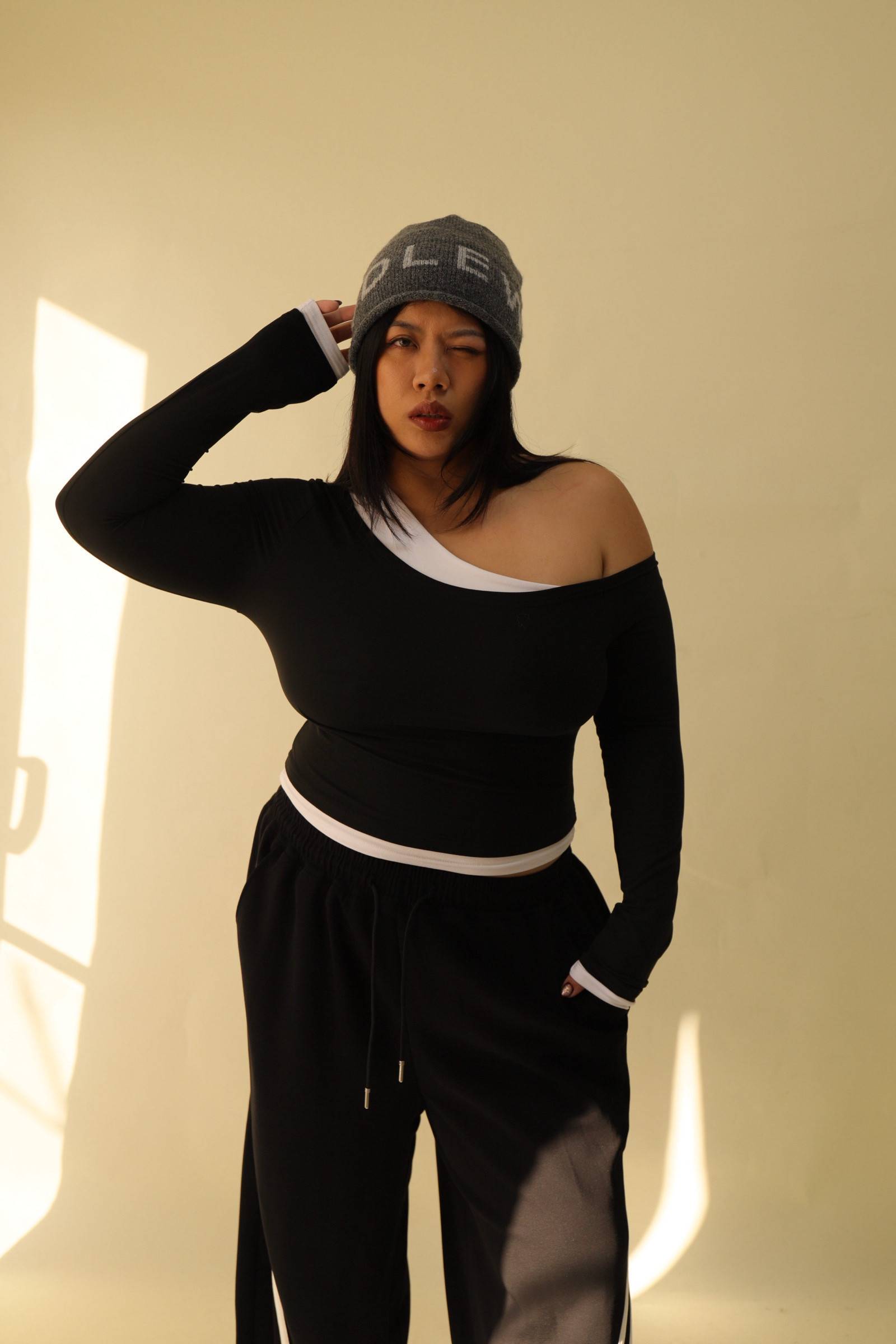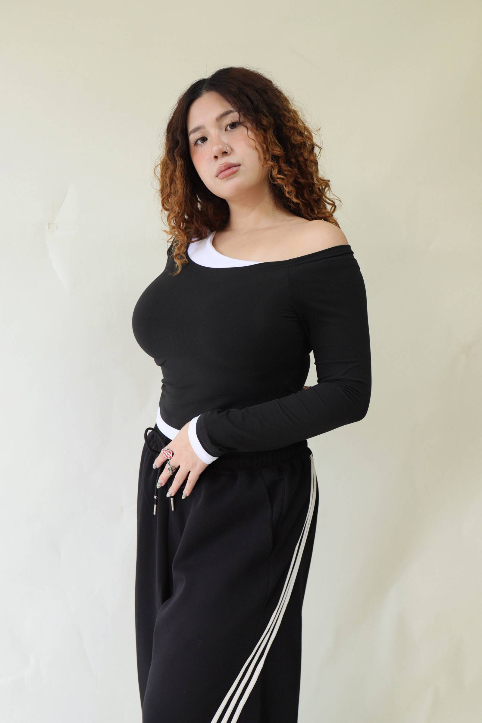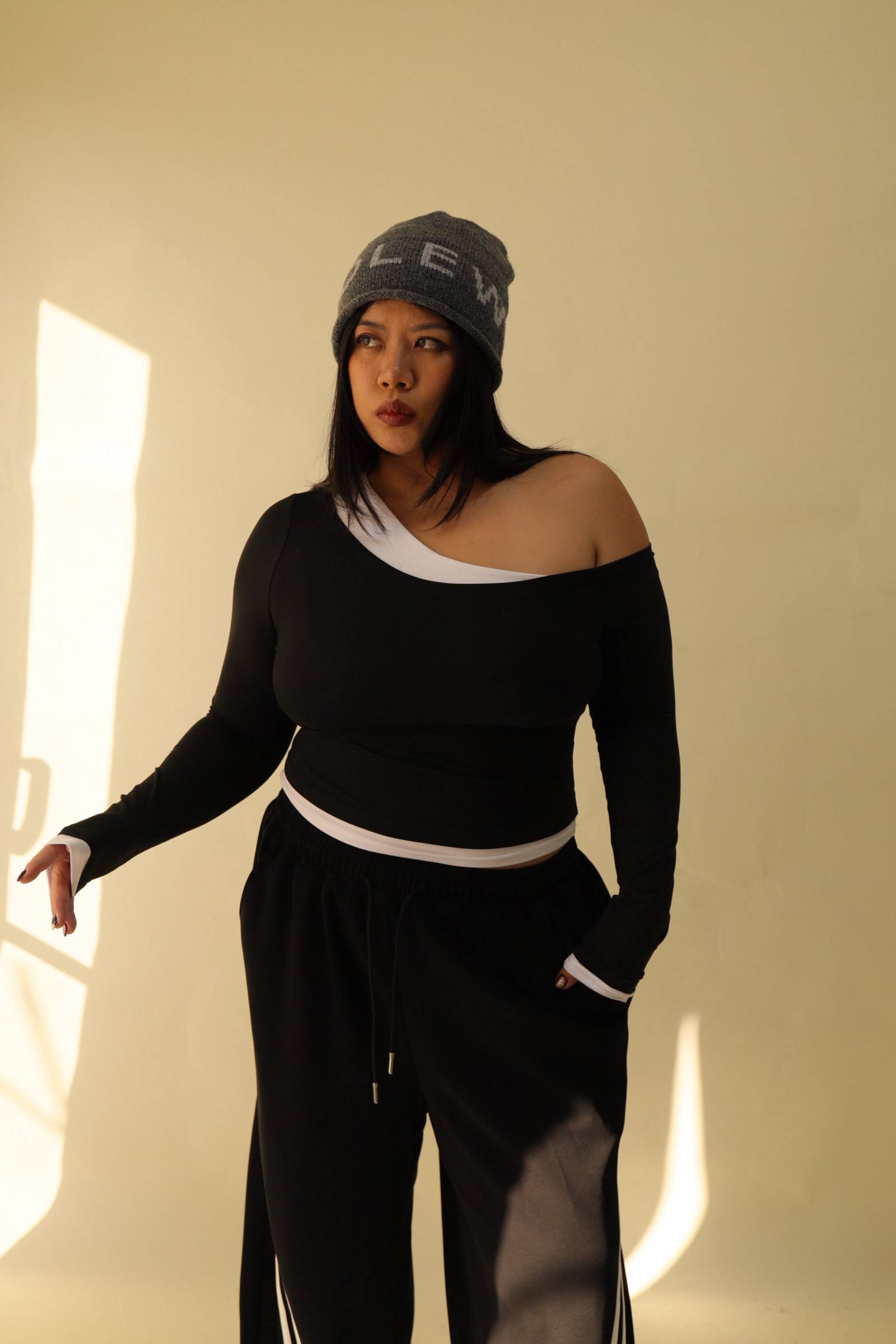 撞色斜肩修身上衣,LEILASHAW 你的美不該被數字綁架