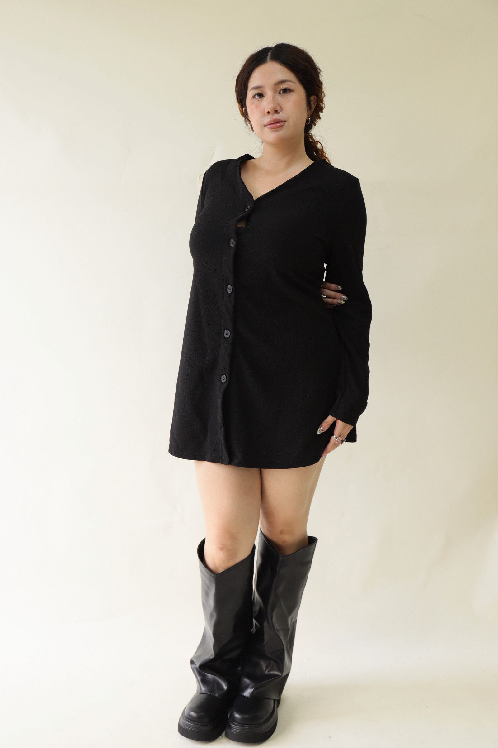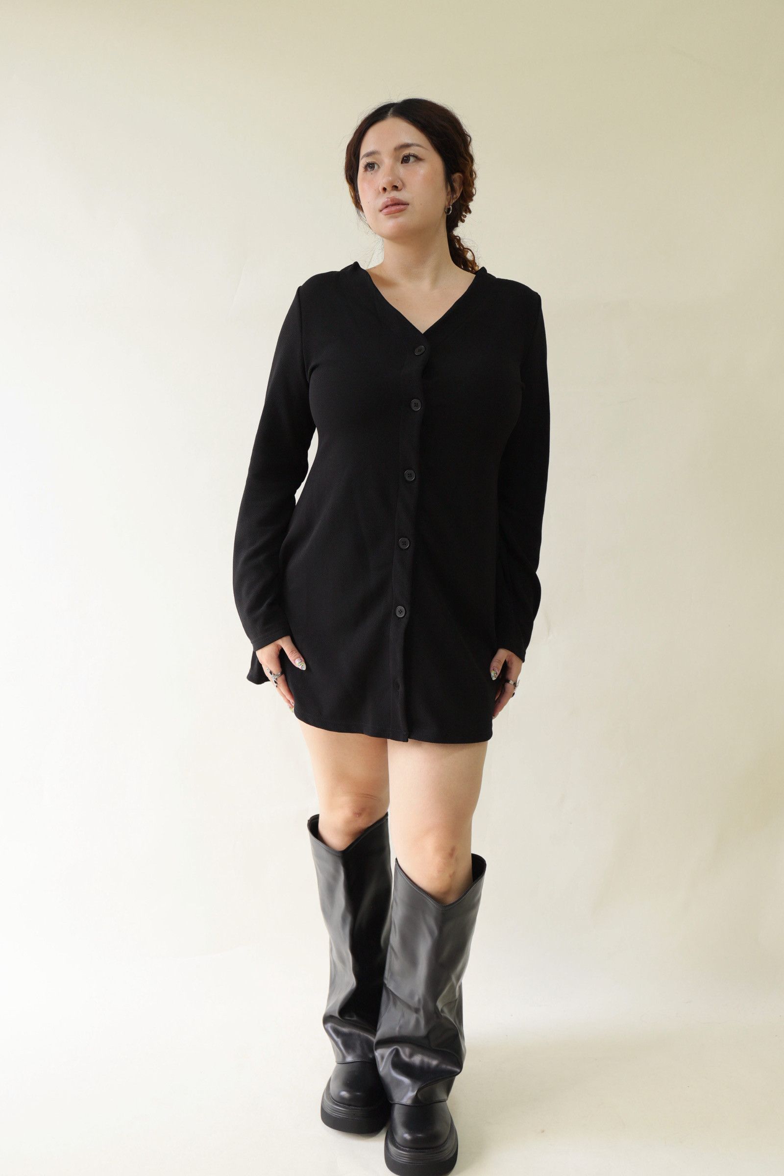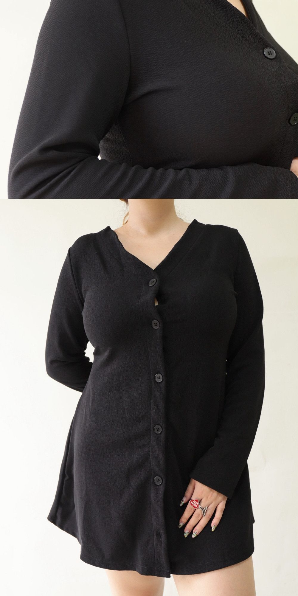 V領全排釦A字收腰洋裝,LEILASHAW 你的美不該被數字綁架