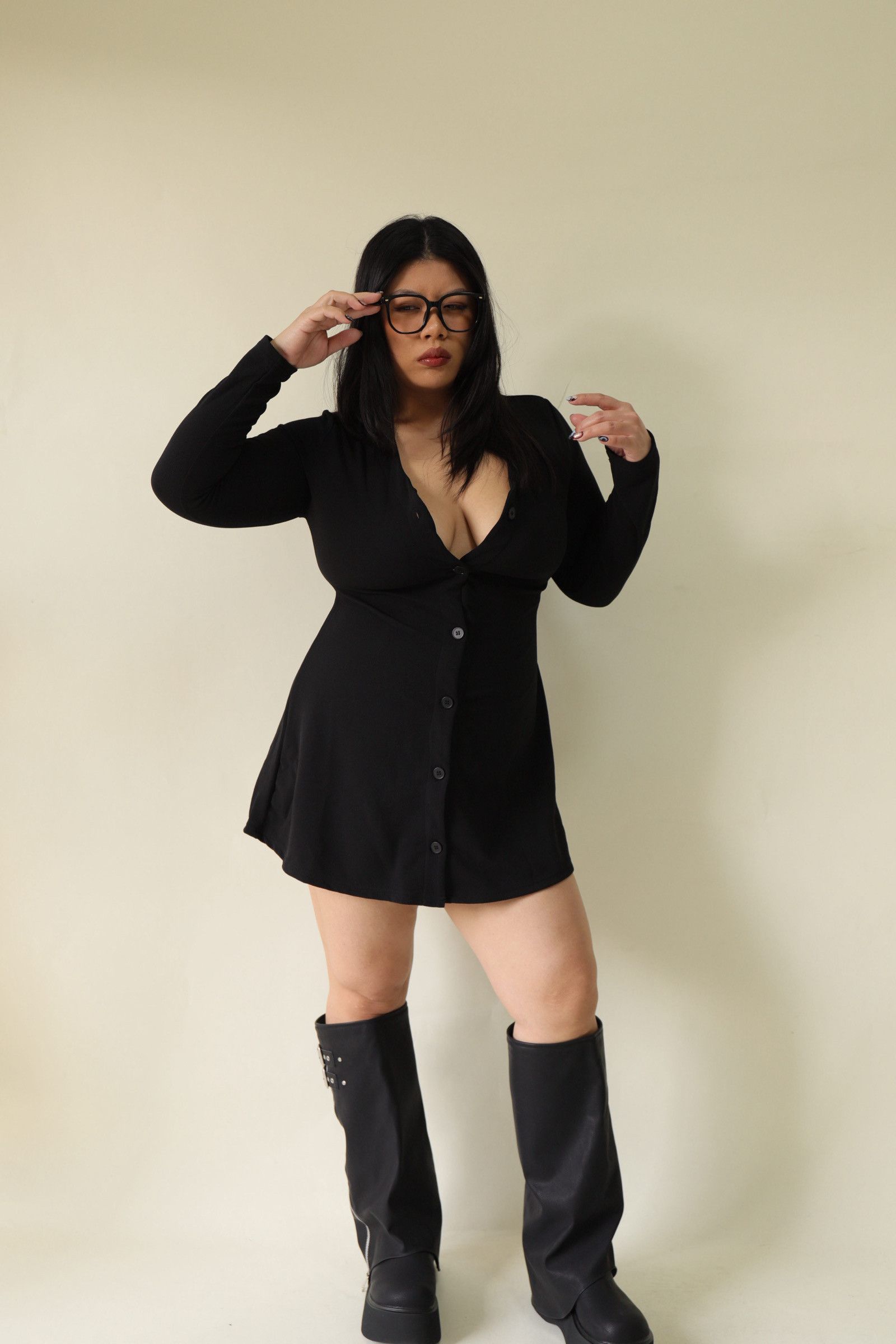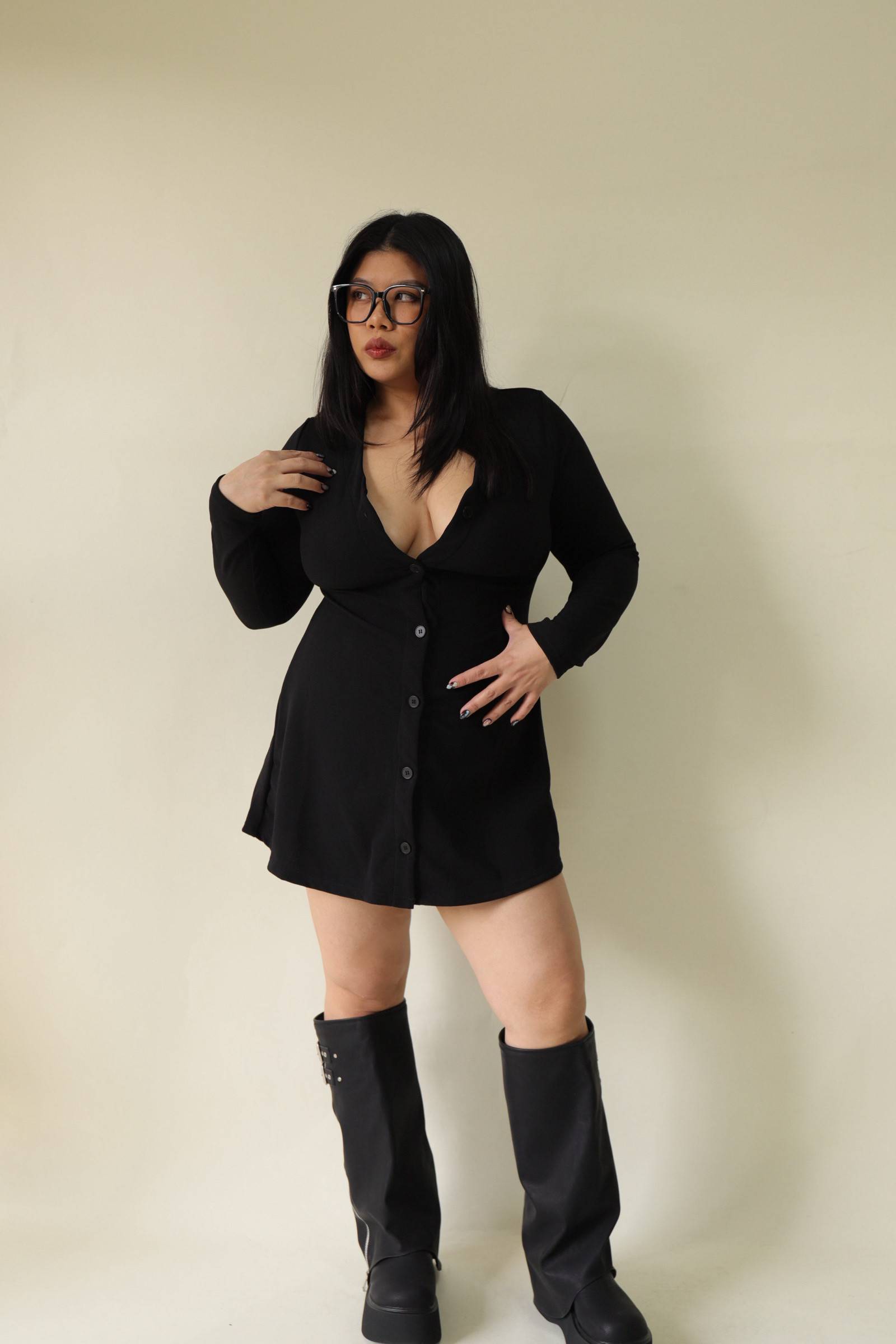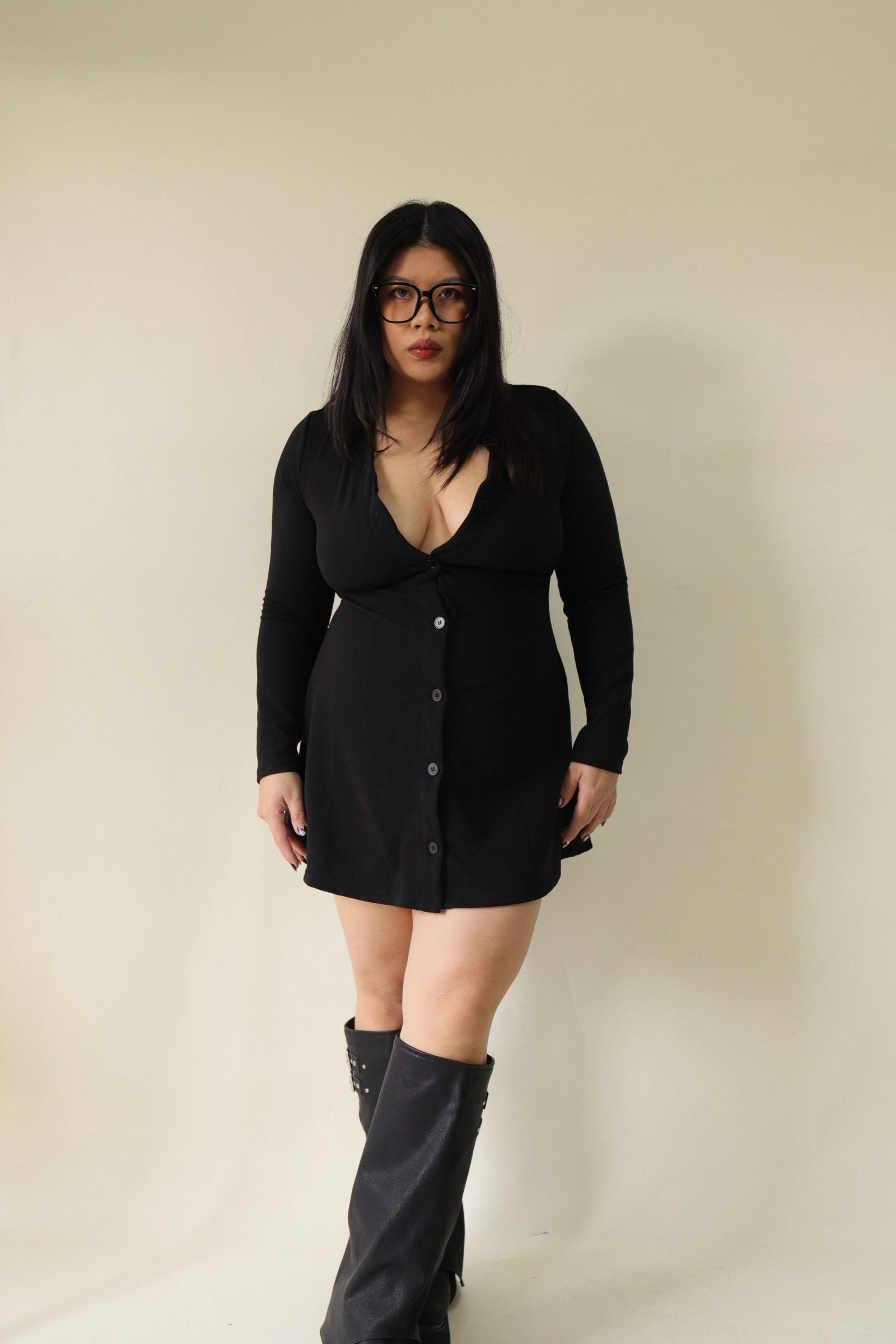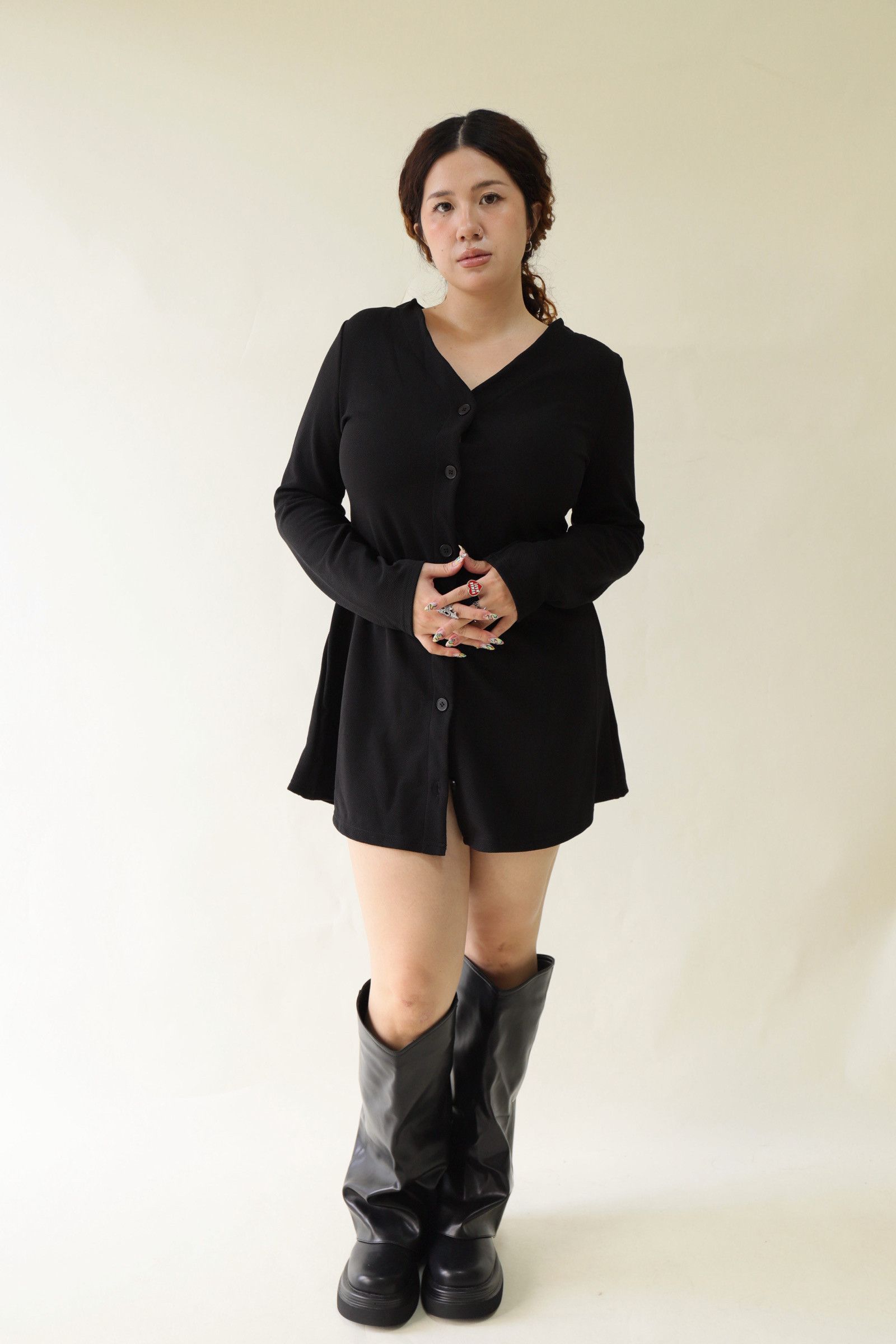 V領全排釦A字收腰洋裝,LEILASHAW 你的美不該被數字綁架