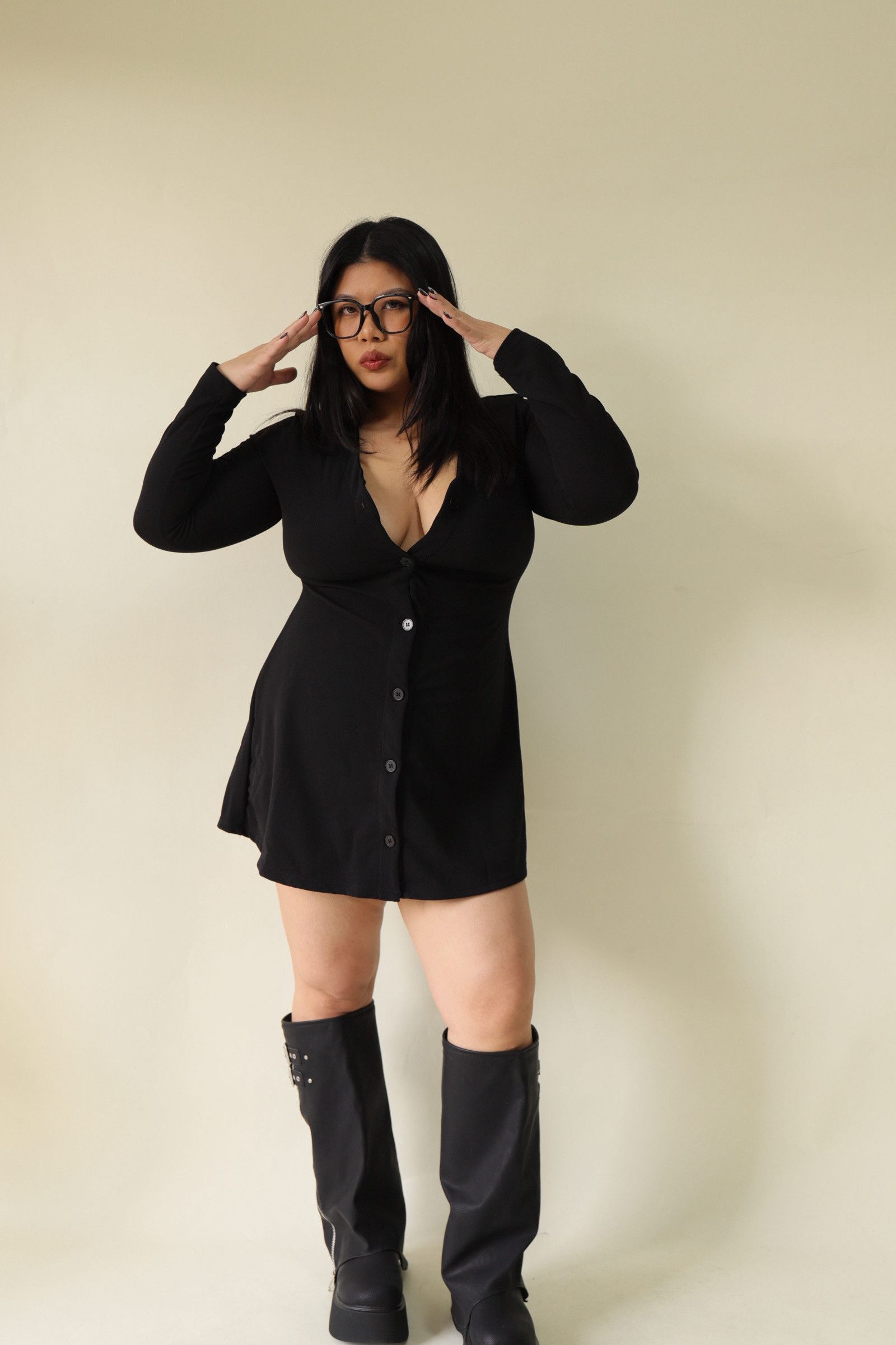 V領全排釦A字收腰洋裝