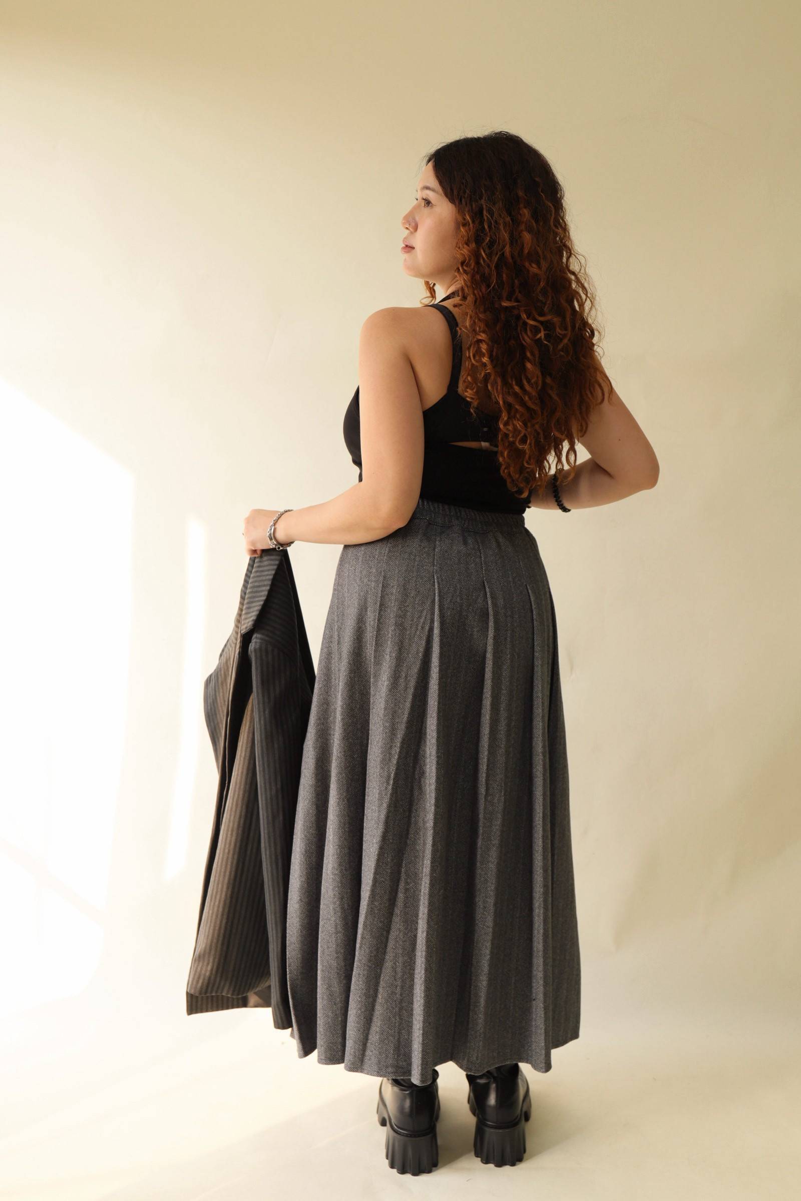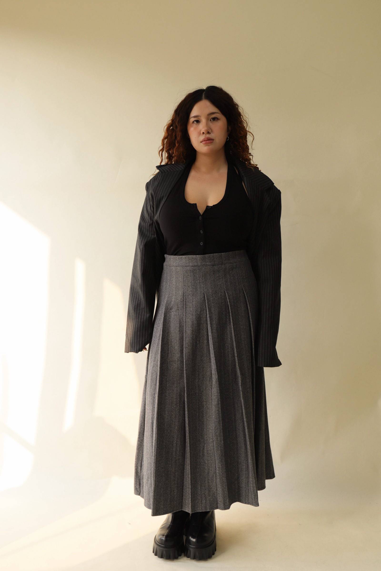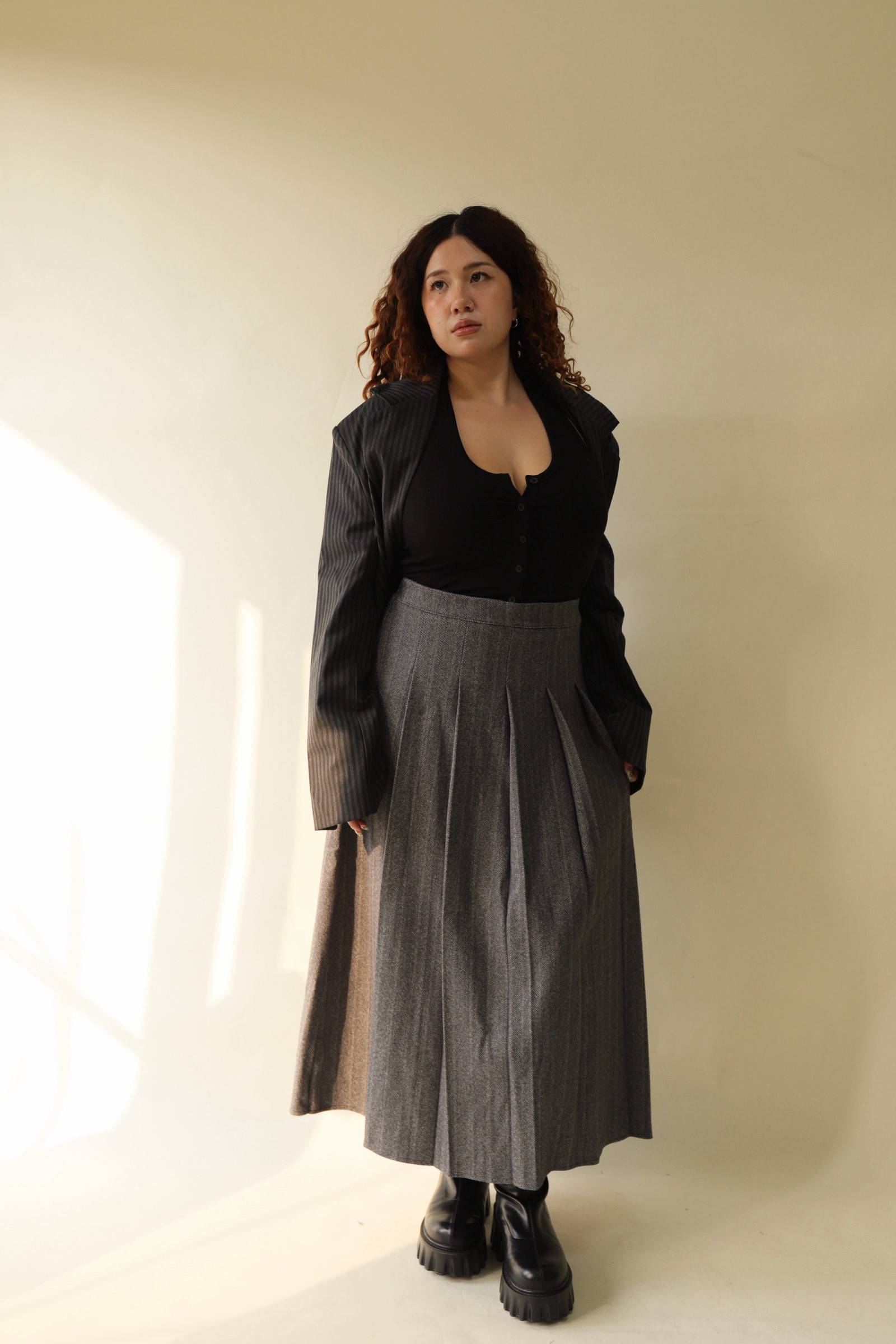 【EASE】高級感亞麻灰重工西裝百摺裙